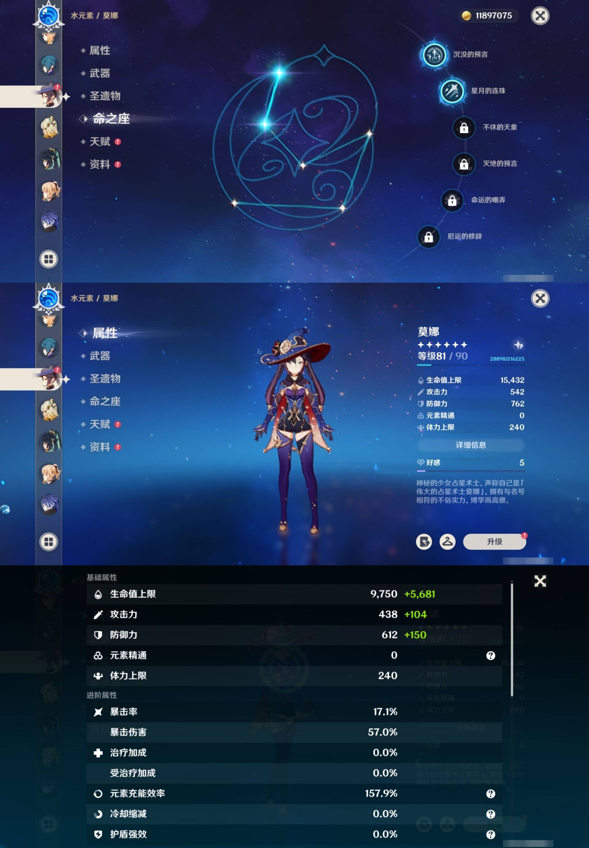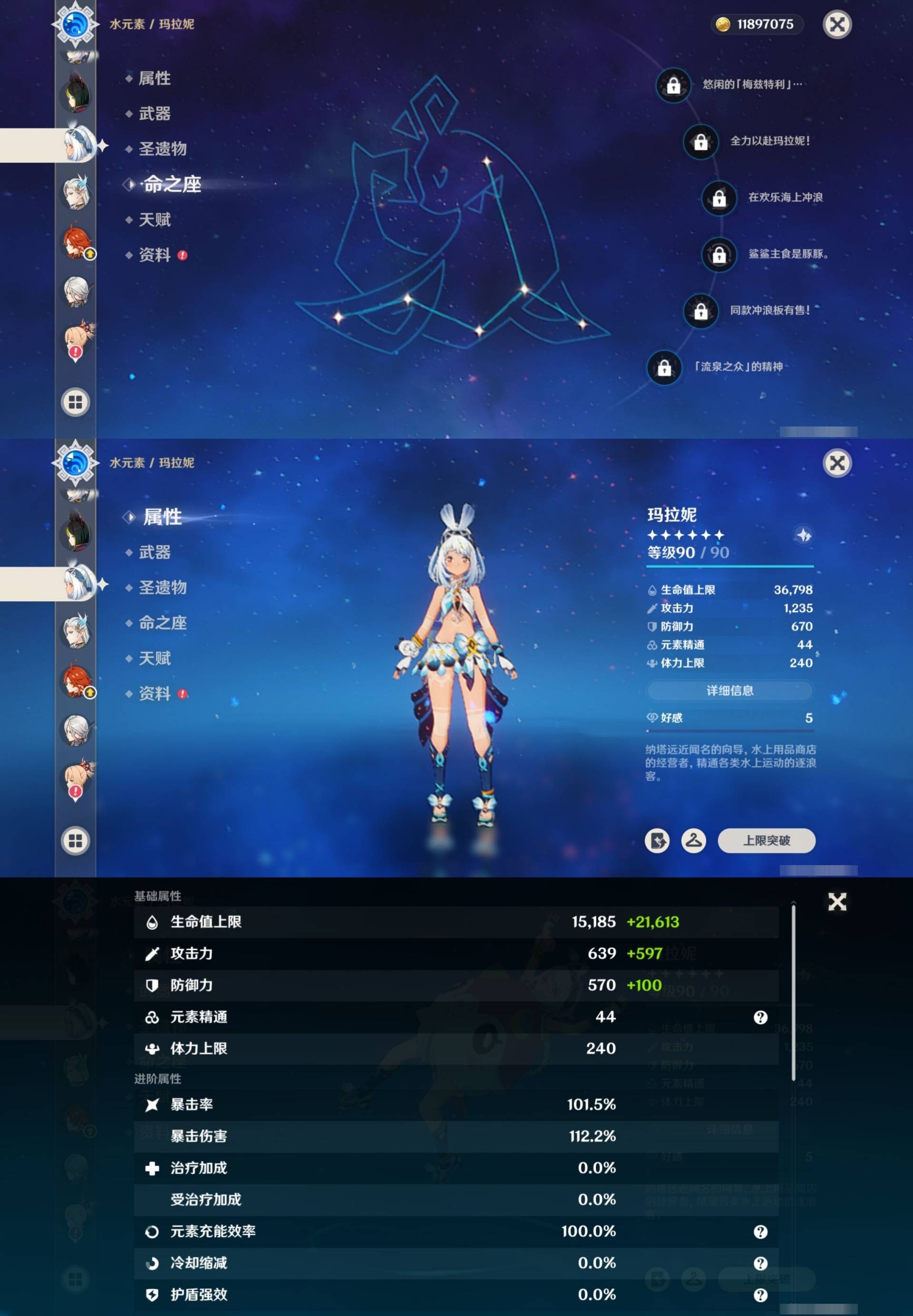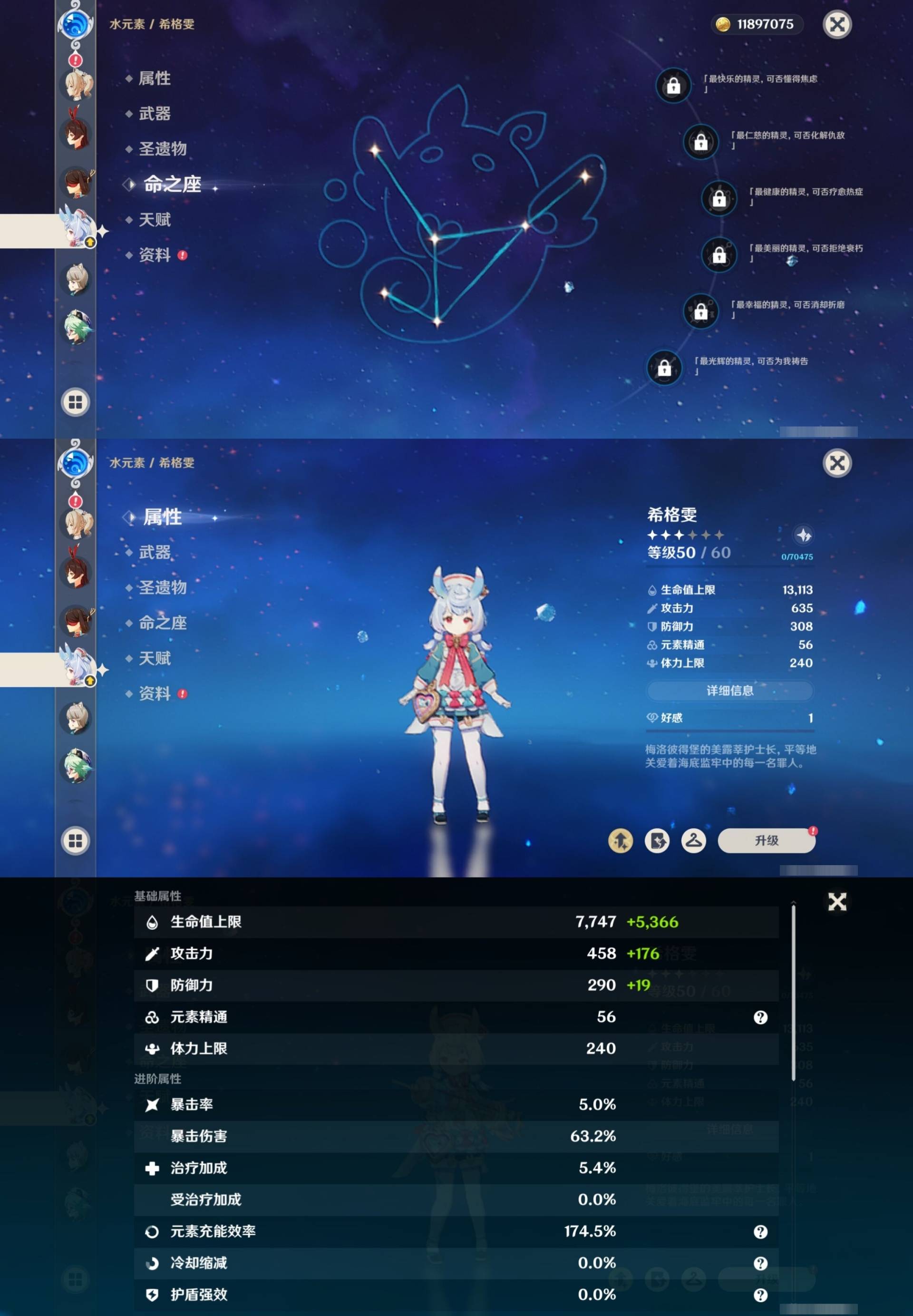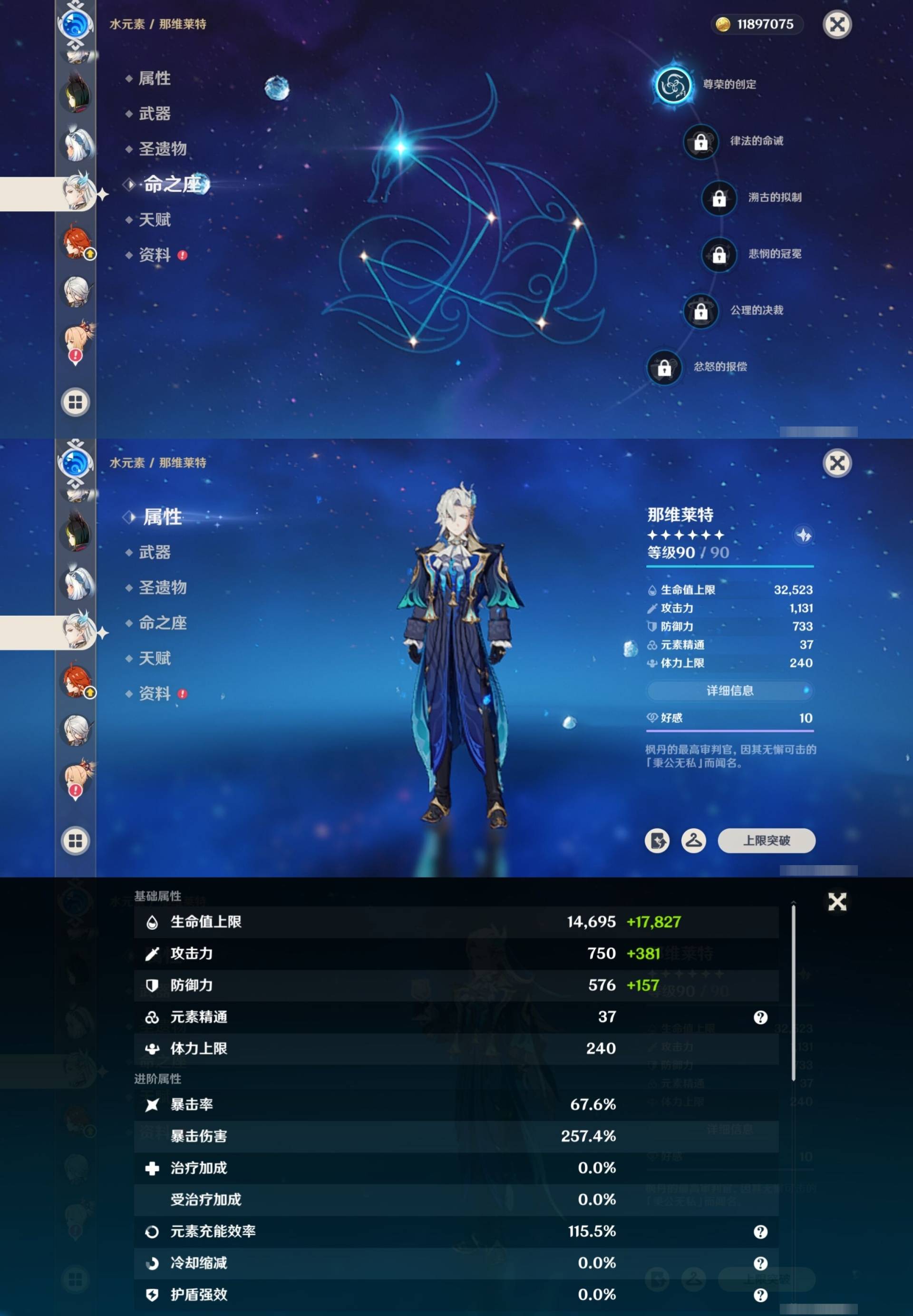 [15170894]57黄 风系:0命枫原万叶/0命闲云/6命琴/0命温迪 火系:0命玛薇卡/0命阿蕾奇诺/0命宵宫/0命迪卢克 水系:0命芙宁娜/0命玛拉妮/1命那维莱特/2命莫娜/0命妮露/0命希格雯 冰系:0命优菈/0命神里绫华/4命七七 岩系:2命钟离/0命希诺宁 雷系:0命克洛琳德/2命雷电将军/0命刻晴/0命菲林斯/0命八重神子/0命伊涅芙 草系:0命纳西妲/1命提纳里 [四星角色等级及命座] 风系: 2命鹿野院平藏/3命琳妮特/6命砂糖/2命珐露珊/5命早柚 火系: 6命烟绯/6命香菱/2命嘉明/3命安柏/3命托马/6命辛焱/2命夏沃蕾/6命班尼特 水系:6命行秋/6命芭芭拉/6命坎蒂丝/3命爱诺 冰系:2命夏洛蒂/6命莱依拉/6命迪奥娜/2命重云/3命菲米尼/1命米卡/6命罗莎莉亚/0命凯亚 岩系:6命诺艾尔/6命凝光/6命云堇/5命五郎 雷系:2命久岐忍/6命北斗/4命九条裟罗/6命雷泽/4命赛索斯/0命伊安珊/0命欧洛伦/6命多莉/0命丽莎/6命菲谢尔 草系:1命瑶瑶/3命柯莱/6命绮良良/1命卡维 [角色经验书] 紫色42/蓝色46 [小物品] 脆弱树脂16/嬗变之尘6 [特殊材料] 东风之翎1/东风之爪1/东风的吐息6/北风之环3/北风的魂匣3/吞天之鲸·只角13/魔王之刃·残片9 武炼之魂·孤影12/龙王之冕2/血玉之枝4/鎏金之鳞5/智识之冕31 [神瞳剩余数量] 风神瞳1/岩神瞳1/雷神瞳1