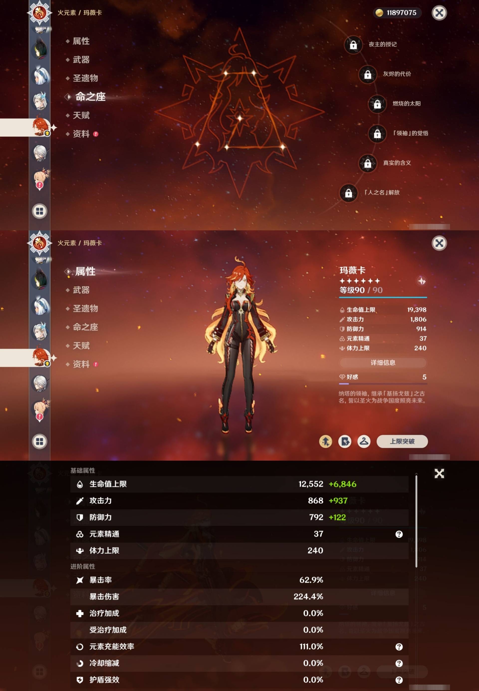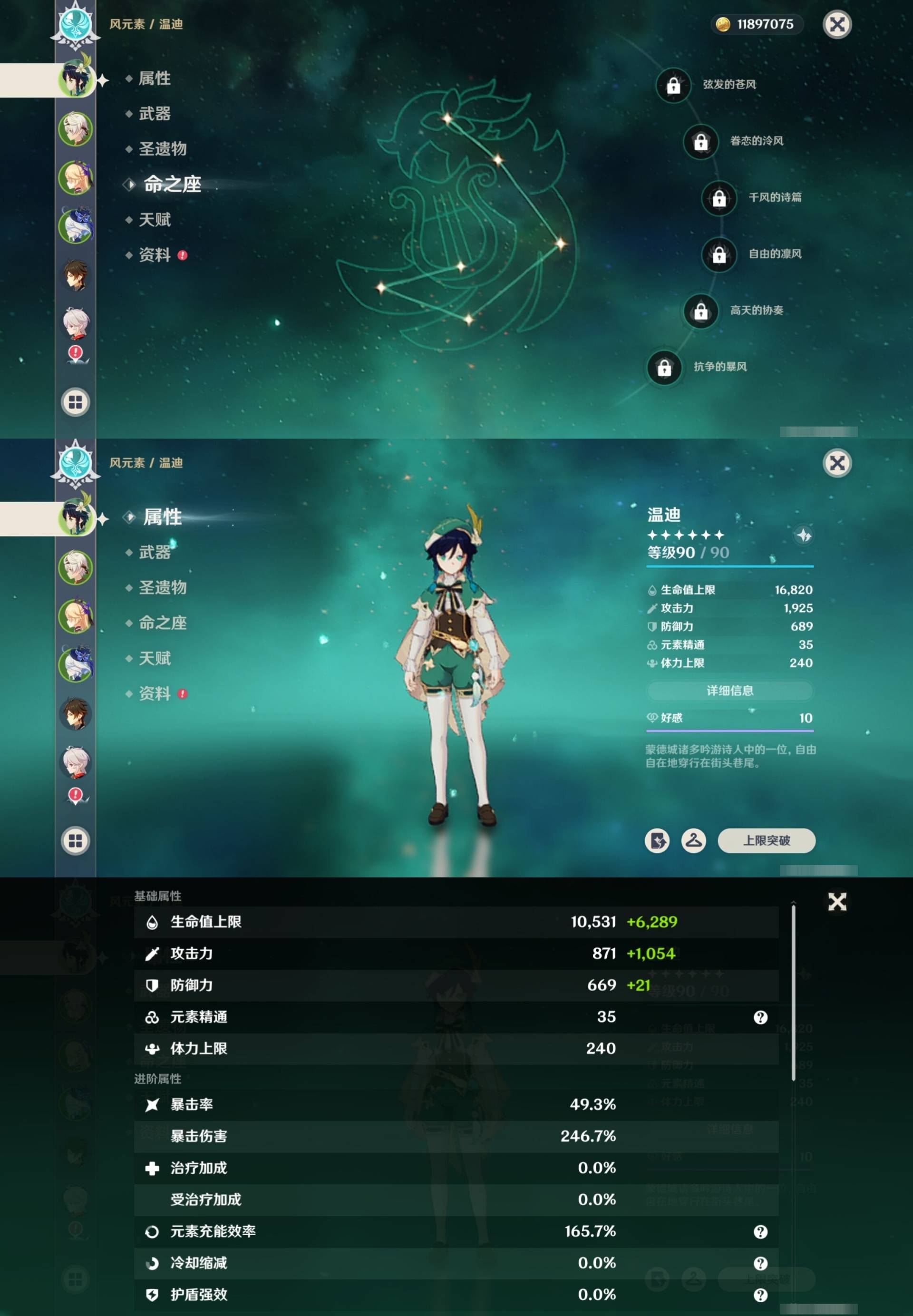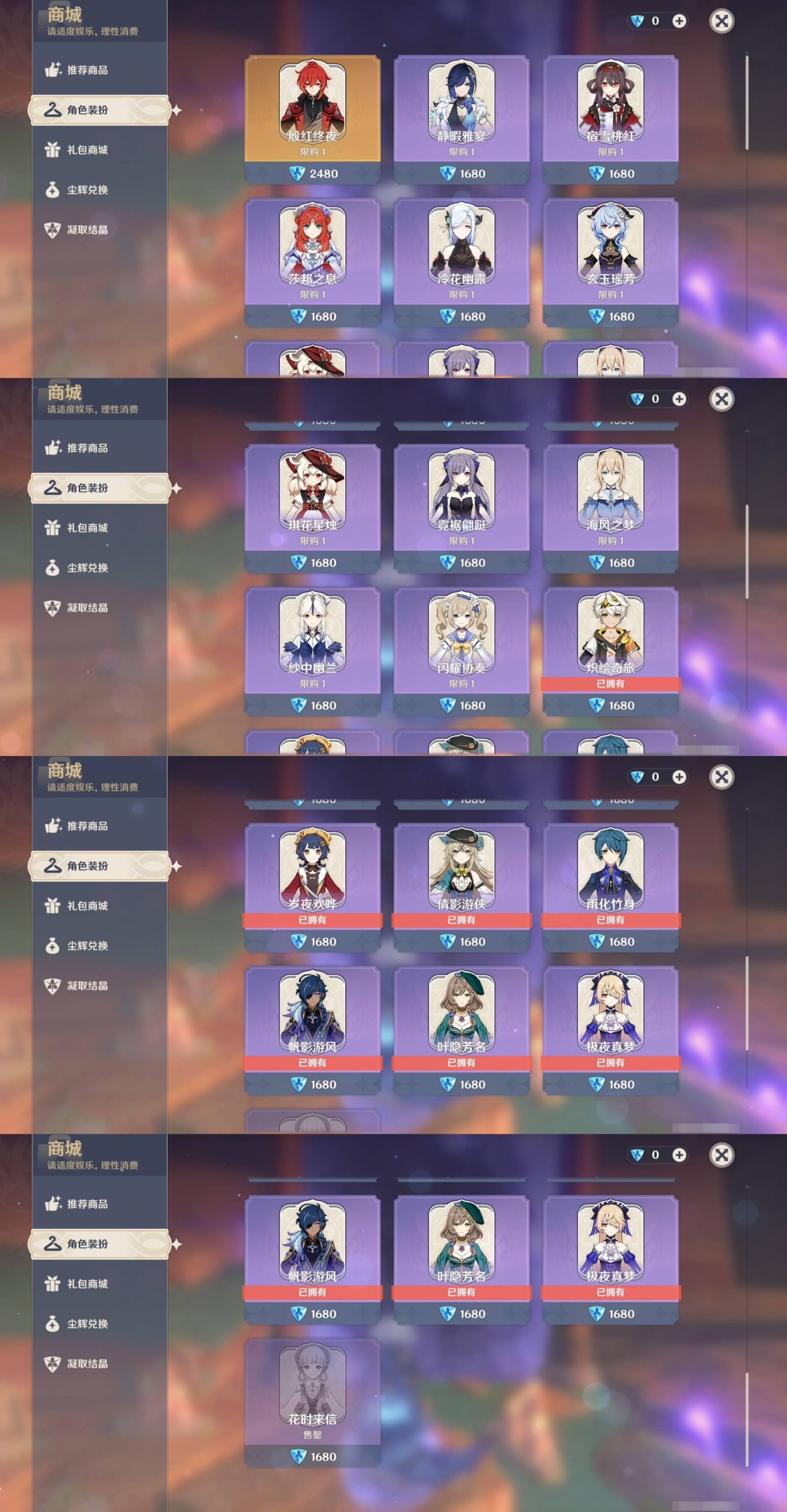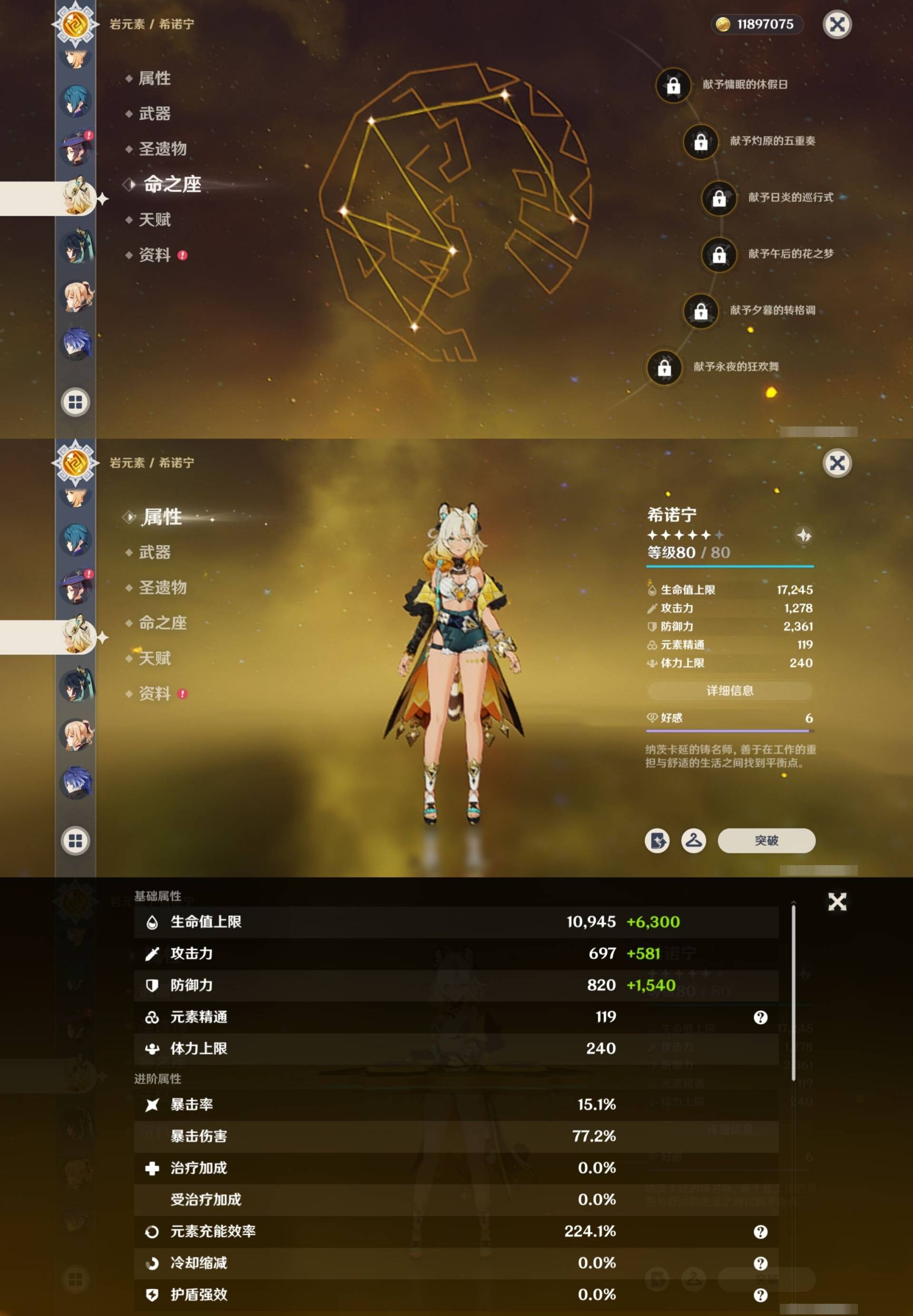 [15170894]57黄 风系:0命枫原万叶/0命闲云/6命琴/0命温迪 火系:0命玛薇卡/0命阿蕾奇诺/0命宵宫/0命迪卢克 水系:0命芙宁娜/0命玛拉妮/1命那维莱特/2命莫娜/0命妮露/0命希格雯 冰系:0命优菈/0命神里绫华/4命七七 岩系:2命钟离/0命希诺宁 雷系:0命克洛琳德/2命雷电将军/0命刻晴/0命菲林斯/0命八重神子/0命伊涅芙 草系:0命纳西妲/1命提纳里 [四星角色等级及命座] 风系: 2命鹿野院平藏/3命琳妮特/6命砂糖/2命珐露珊/5命早柚 火系: 6命烟绯/6命香菱/2命嘉明/3命安柏/3命托马/6命辛焱/2命夏沃蕾/6命班尼特 水系:6命行秋/6命芭芭拉/6命坎蒂丝/3命爱诺 冰系:2命夏洛蒂/6命莱依拉/6命迪奥娜/2命重云/3命菲米尼/1命米卡/6命罗莎莉亚/0命凯亚 岩系:6命诺艾尔/6命凝光/6命云堇/5命五郎 雷系:2命久岐忍/6命北斗/4命九条裟罗/6命雷泽/4命赛索斯/0命伊安珊/0命欧洛伦/6命多莉/0命丽莎/6命菲谢尔 草系:1命瑶瑶/3命柯莱/6命绮良良/1命卡维 [角色经验书] 紫色42/蓝色46 [小物品] 脆弱树脂16/嬗变之尘6 [特殊材料] 东风之翎1/东风之爪1/东风的吐息6/北风之环3/北风的魂匣3/吞天之鲸·只角13/魔王之刃·残片9 武炼之魂·孤影12/龙王之冕2/血玉之枝4/鎏金之鳞5/智识之冕31 [神瞳剩余数量] 风神瞳1/岩神瞳1/雷神瞳1