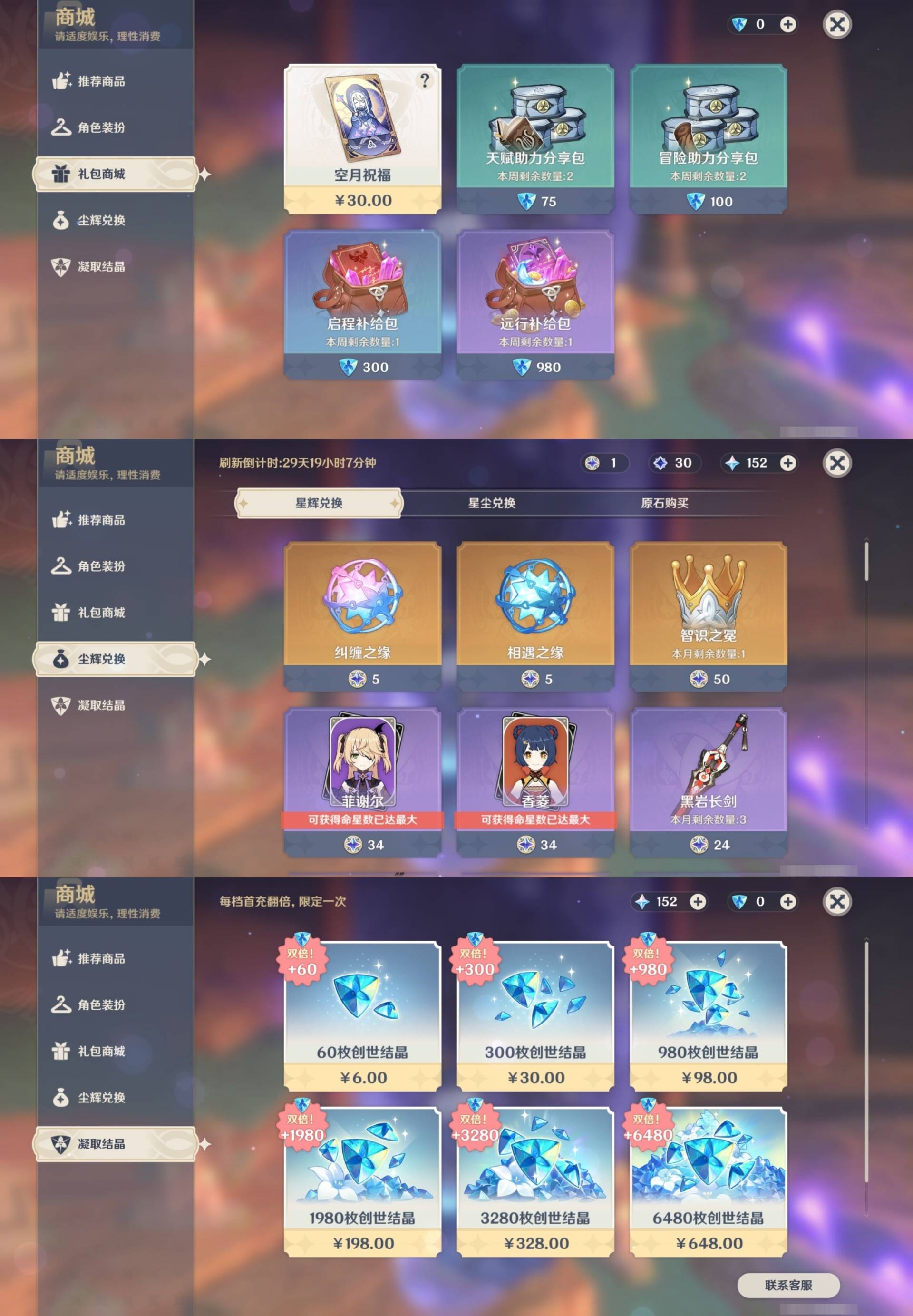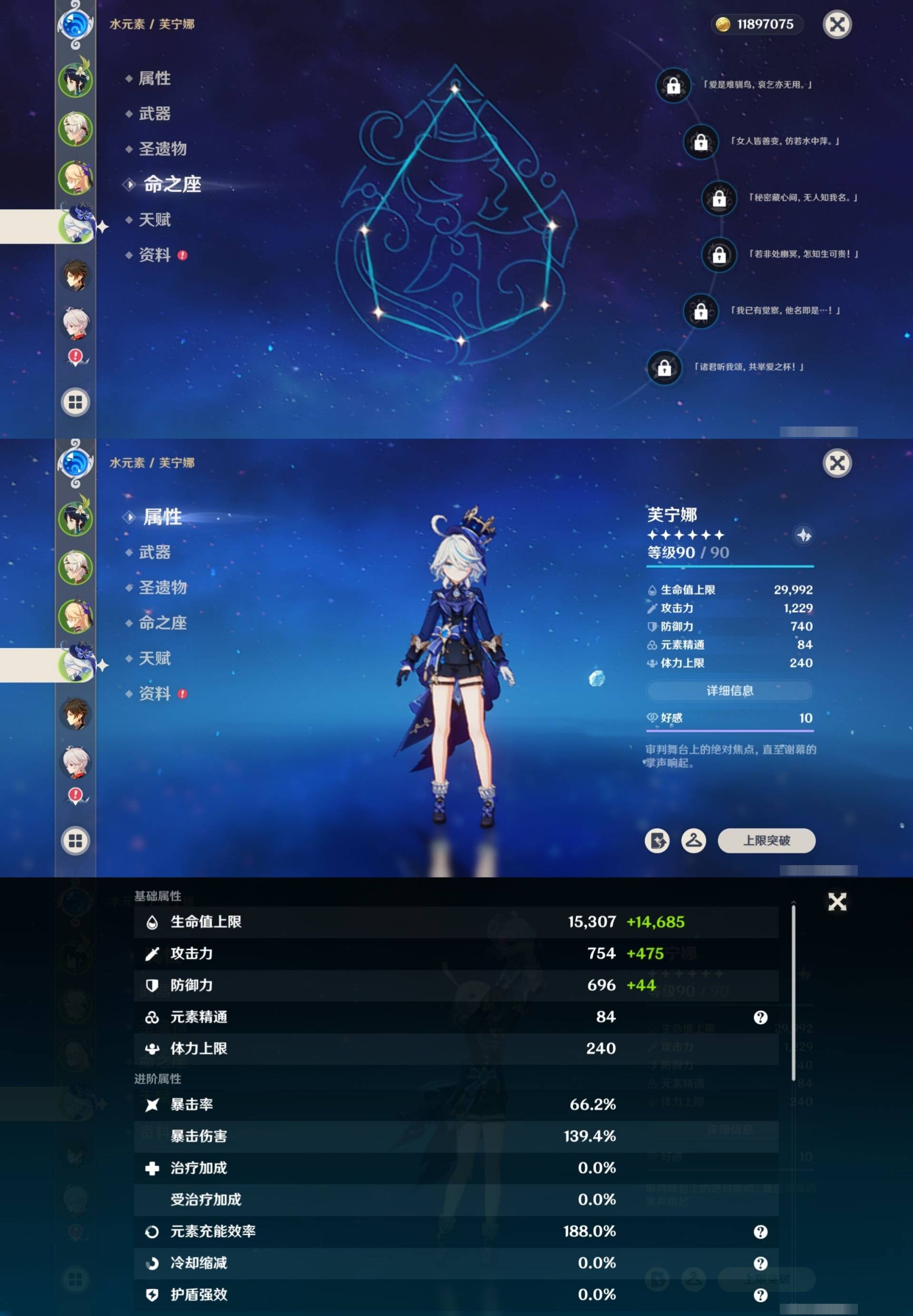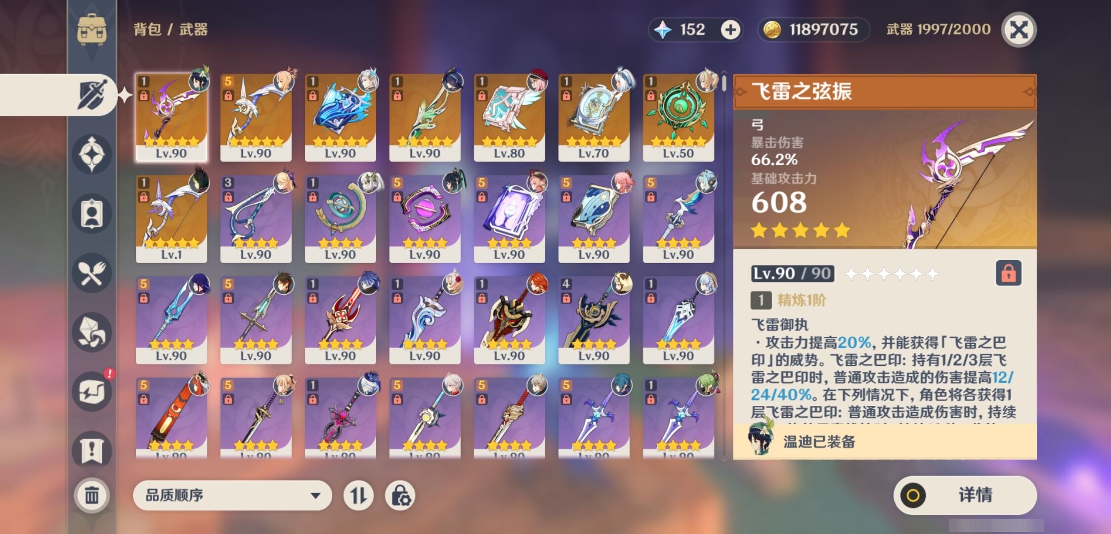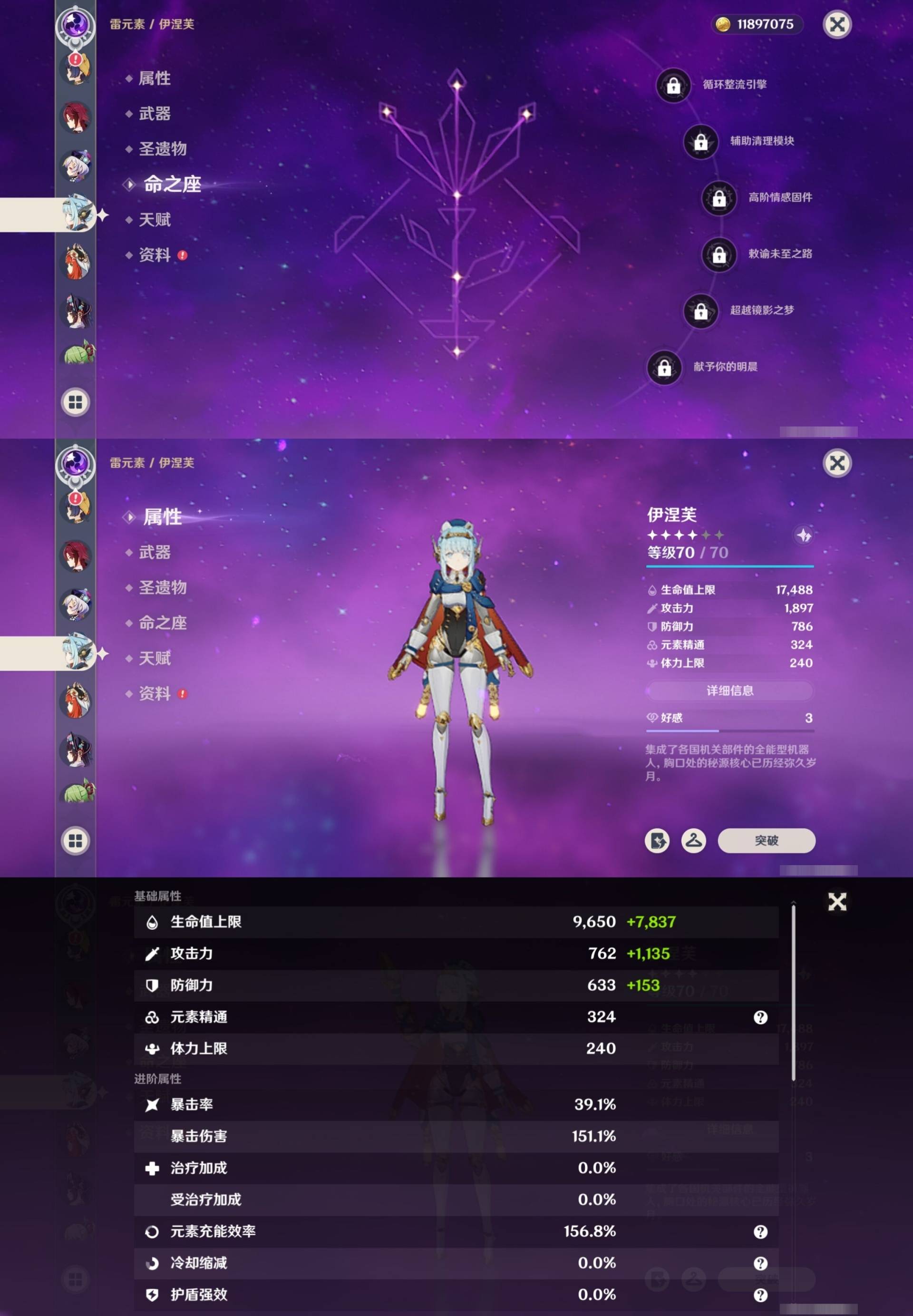 [15170894]57黄 风系:0命枫原万叶/0命闲云/6命琴/0命温迪 火系:0命玛薇卡/0命阿蕾奇诺/0命宵宫/0命迪卢克 水系:0命芙宁娜/0命玛拉妮/1命那维莱特/2命莫娜/0命妮露/0命希格雯 冰系:0命优菈/0命神里绫华/4命七七 岩系:2命钟离/0命希诺宁 雷系:0命克洛琳德/2命雷电将军/0命刻晴/0命菲林斯/0命八重神子/0命伊涅芙 草系:0命纳西妲/1命提纳里 [四星角色等级及命座] 风系: 2命鹿野院平藏/3命琳妮特/6命砂糖/2命珐露珊/5命早柚 火系: 6命烟绯/6命香菱/2命嘉明/3命安柏/3命托马/6命辛焱/2命夏沃蕾/6命班尼特 水系:6命行秋/6命芭芭拉/6命坎蒂丝/3命爱诺 冰系:2命夏洛蒂/6命莱依拉/6命迪奥娜/2命重云/3命菲米尼/1命米卡/6命罗莎莉亚/0命凯亚 岩系:6命诺艾尔/6命凝光/6命云堇/5命五郎 雷系:2命久岐忍/6命北斗/4命九条裟罗/6命雷泽/4命赛索斯/0命伊安珊/0命欧洛伦/6命多莉/0命丽莎/6命菲谢尔 草系:1命瑶瑶/3命柯莱/6命绮良良/1命卡维 [角色经验书] 紫色42/蓝色46 [小物品] 脆弱树脂16/嬗变之尘6 [特殊材料] 东风之翎1/东风之爪1/东风的吐息6/北风之环3/北风的魂匣3/吞天之鲸·只角13/魔王之刃·残片9 武炼之魂·孤影12/龙王之冕2/血玉之枝4/鎏金之鳞5/智识之冕31 [神瞳剩余数量] 风神瞳1/岩神瞳1/雷神瞳1