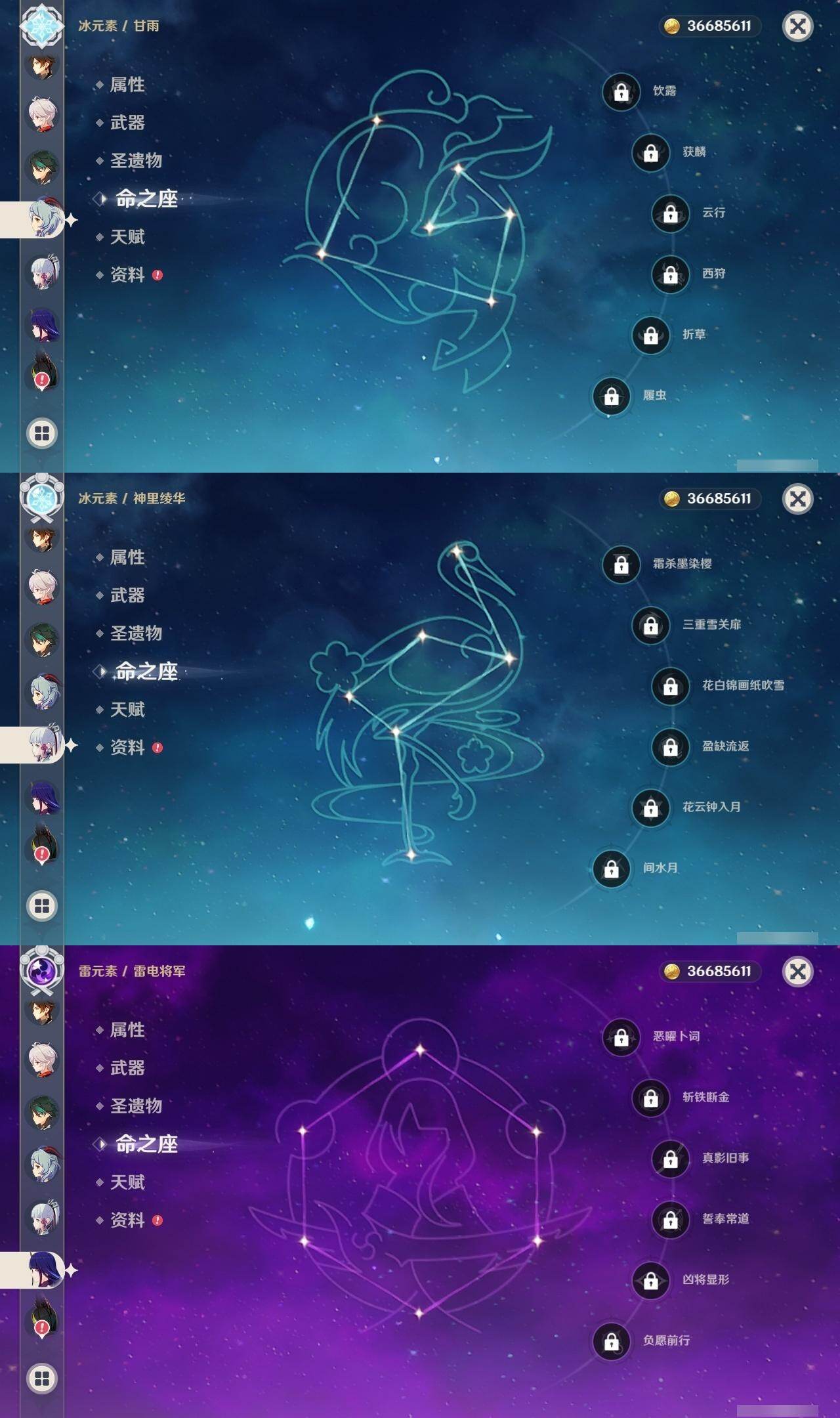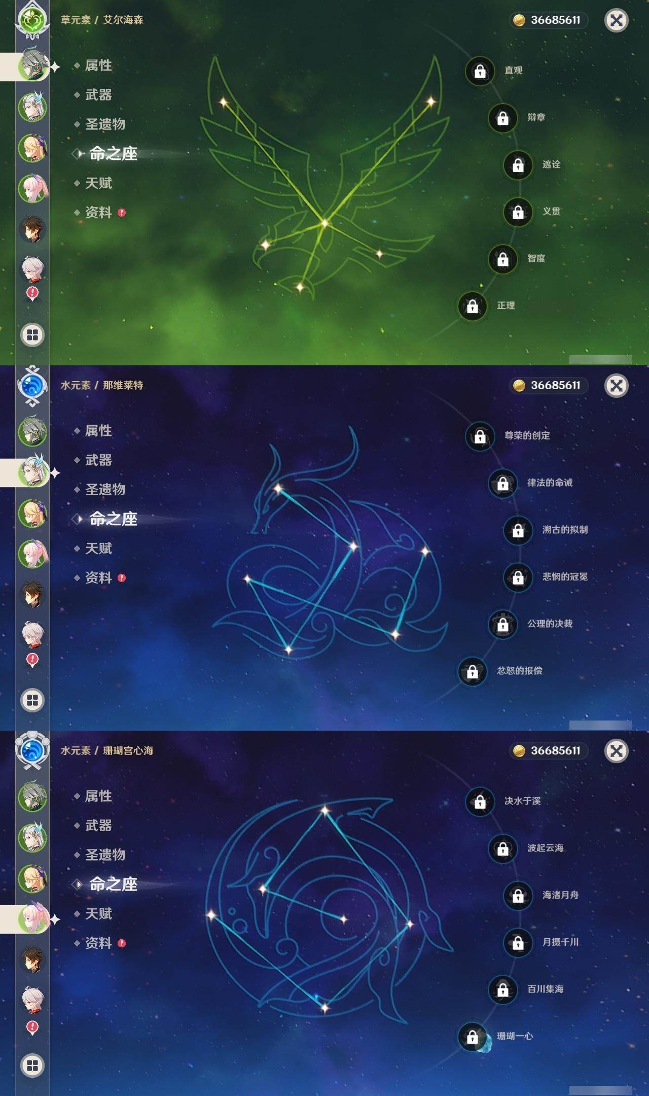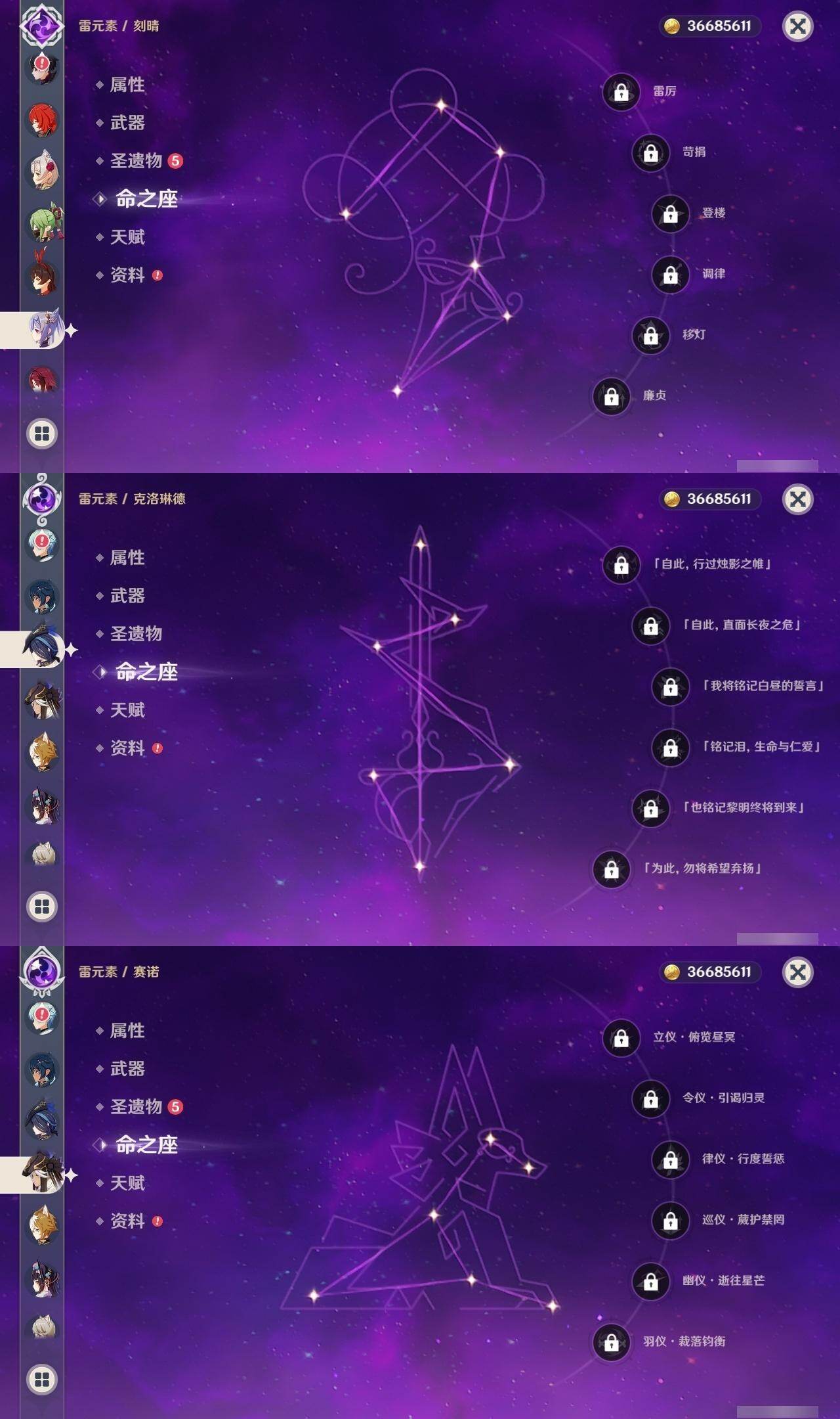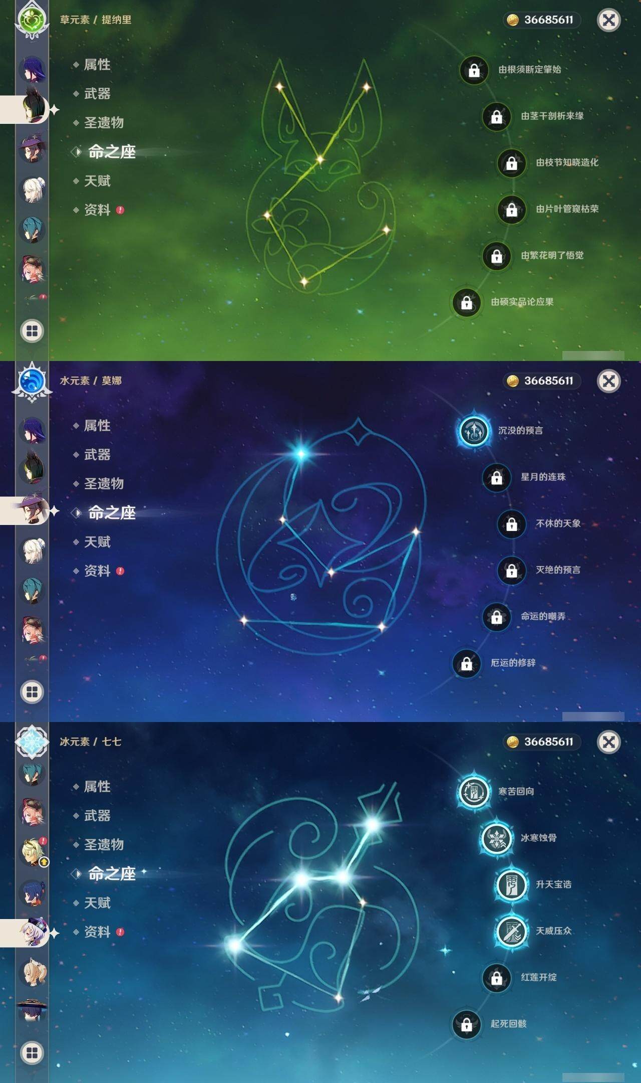 59级/40黄/男主/21个五星角色/5个五星武器 0命克洛琳德0命莱欧斯利0命那维莱特0命白术0命艾尔海森0命流浪者0命赛诺0命提纳里0命雷电将军0命枫原万叶0命神里绫华1命钟离0命甘雨1命魈0命温迪0命珊瑚宫心海0命刻晴4命七七4命琴1命莫娜2命迪卢克精1裁叶萃光精1四风原典精2天空之脊精1贯虹之槊精1天空之卷