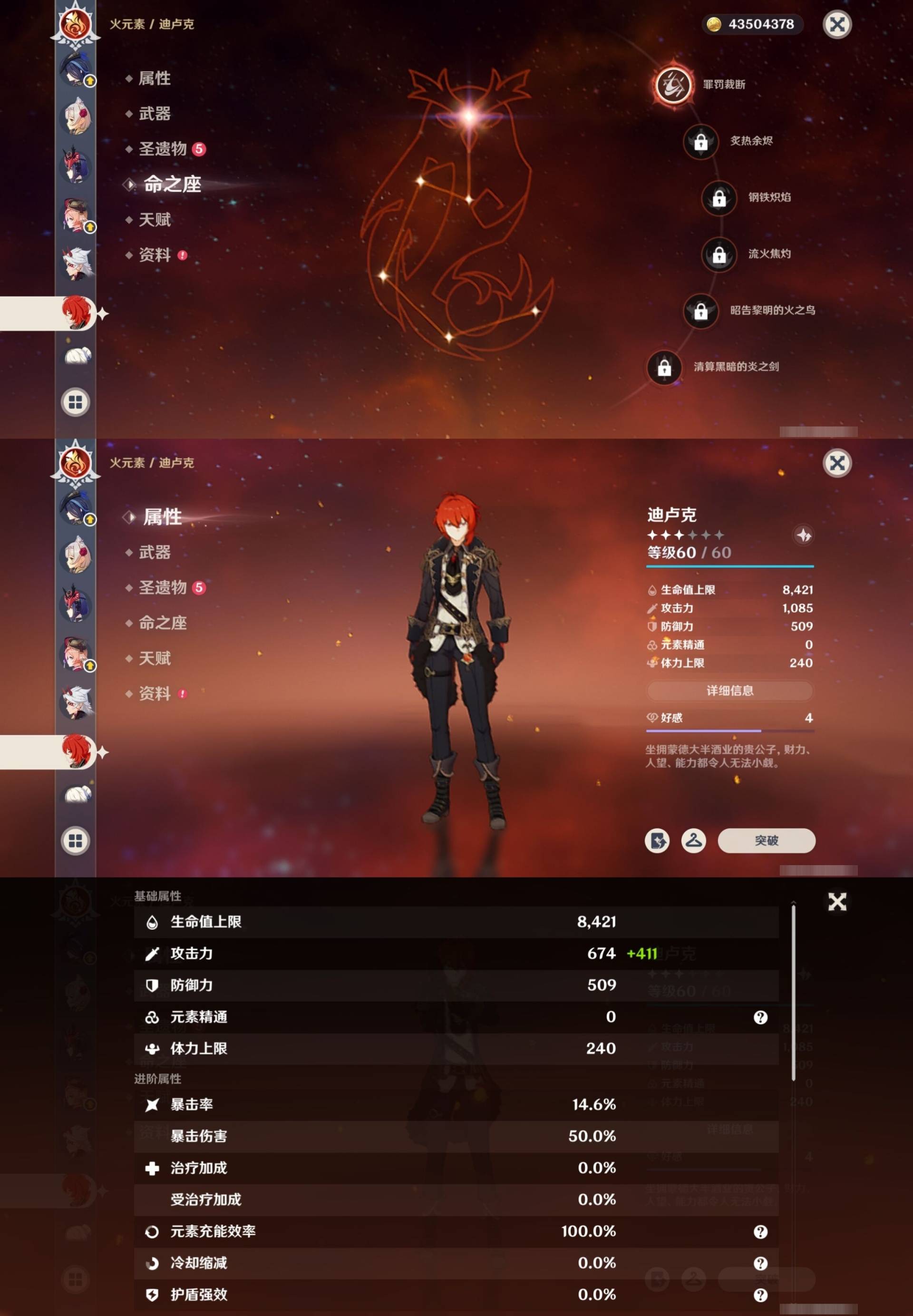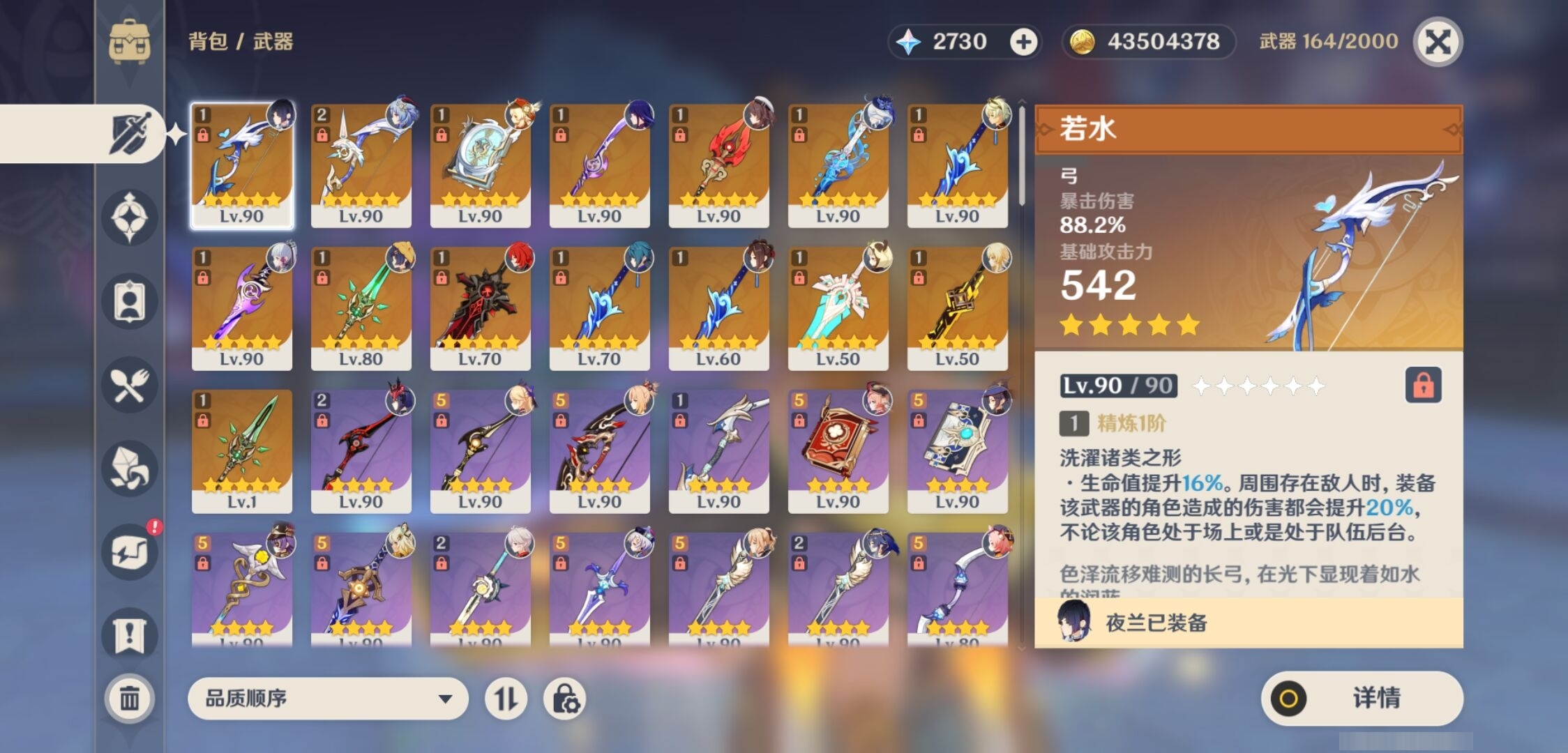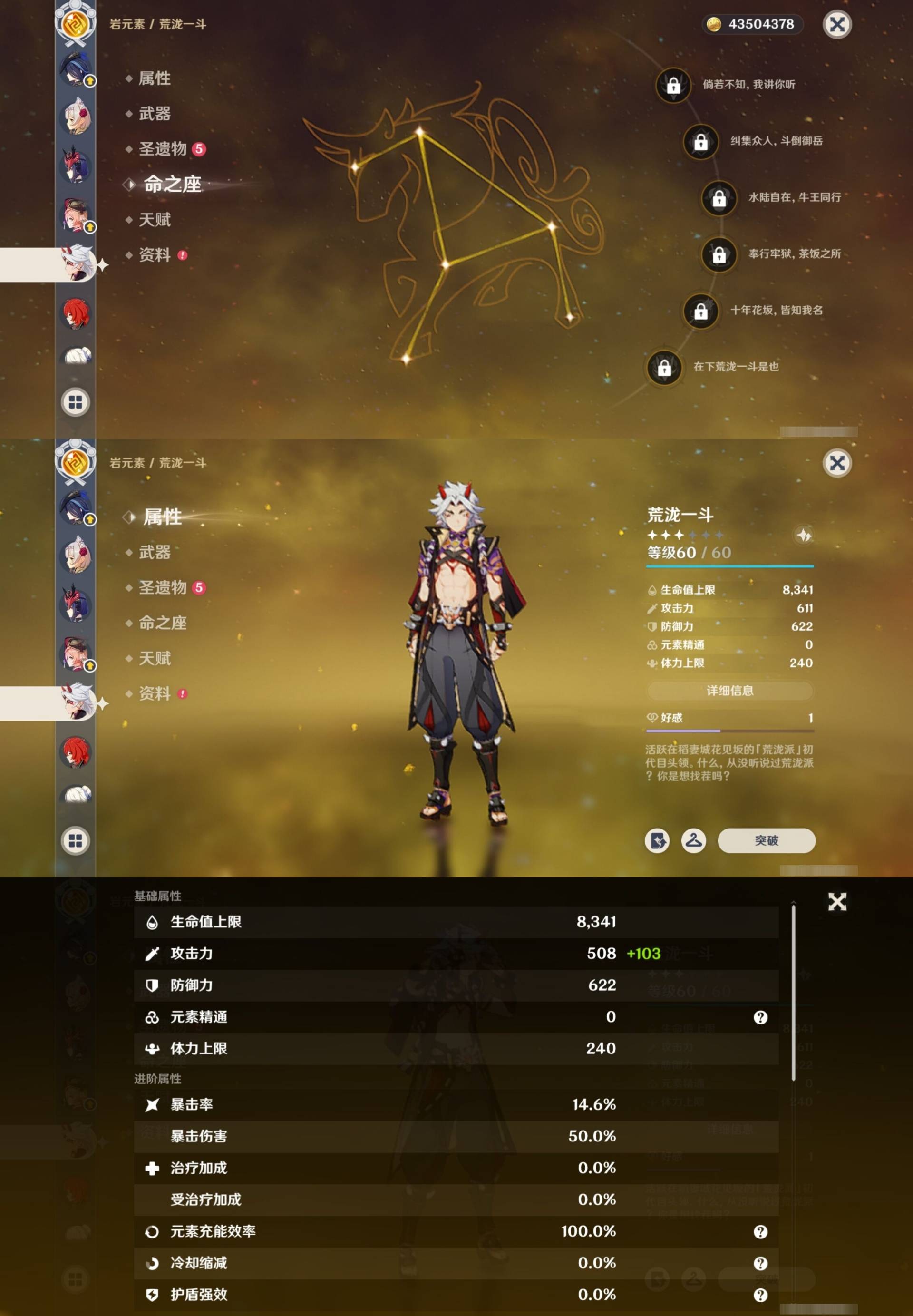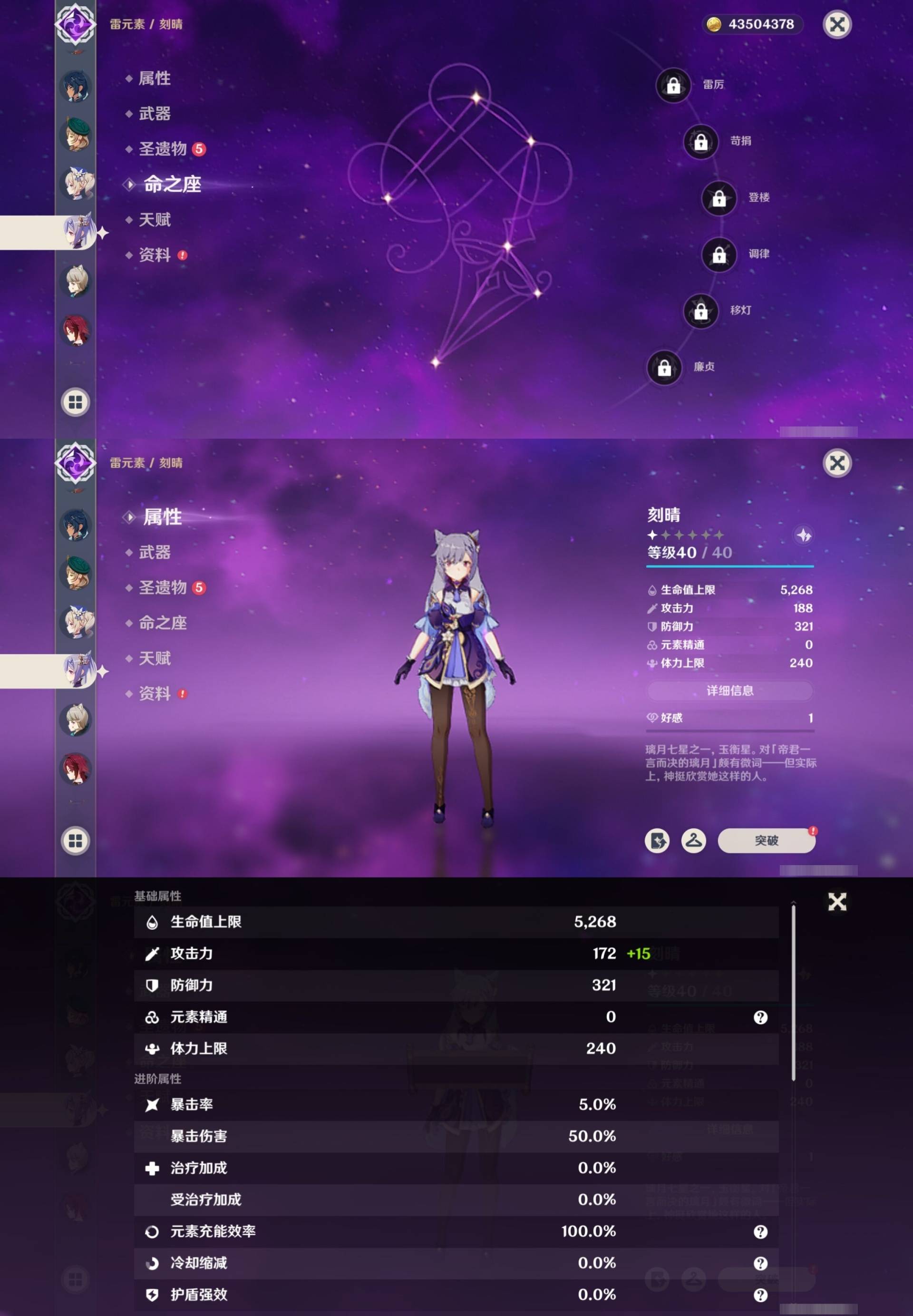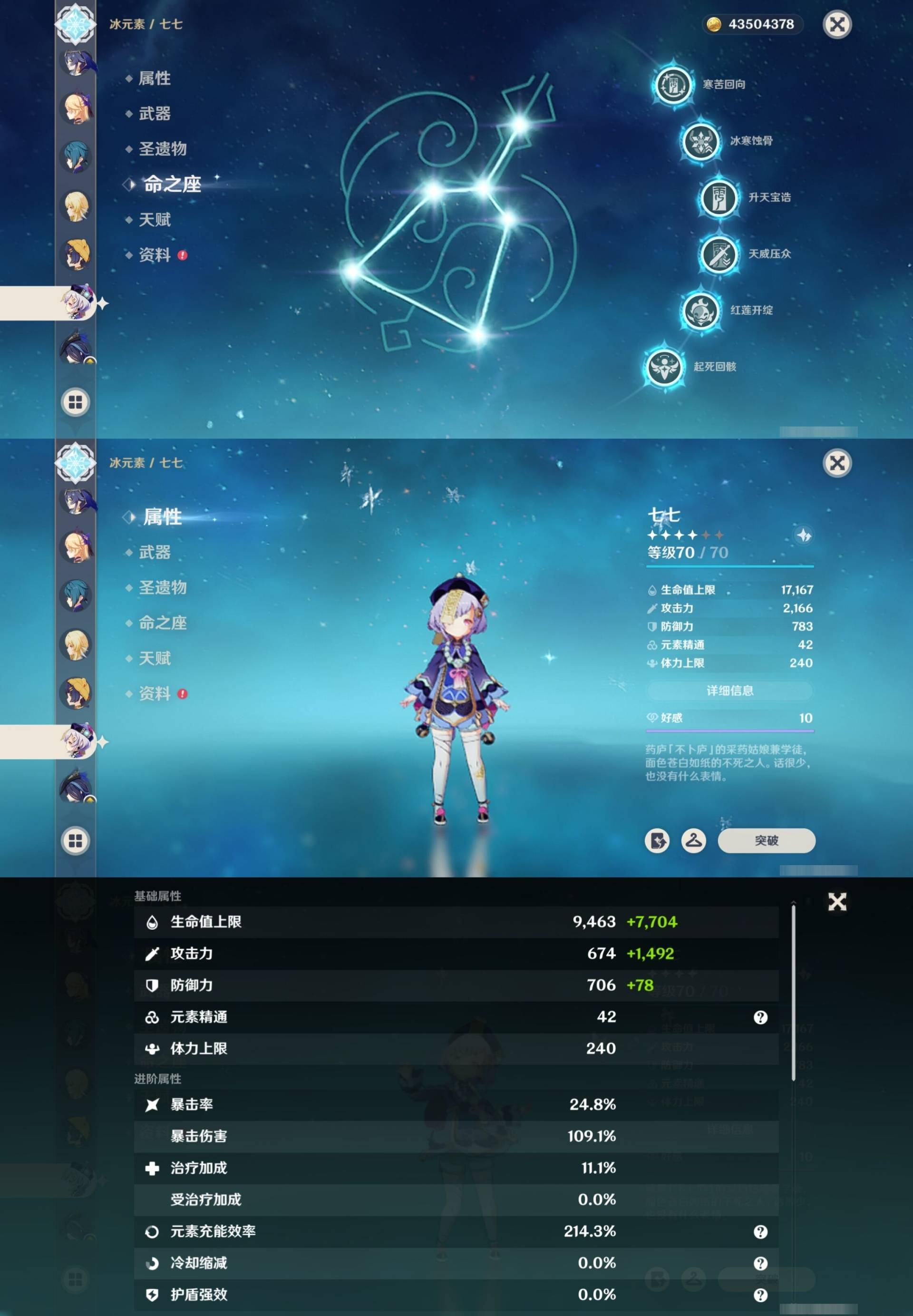 [15205221]62黄 风系:0命枫原万叶/3命琴 火系:1命胡桃/0命可莉/1命宵宫/1命迪卢克/0命迪希雅 水系:6命芙宁娜/1命夜兰/1命莫娜 冰系:1命甘雨/0命神里绫华/6命七七/0命埃洛伊 岩系:0命希诺宁/0命钟离/0命荒泷一斗/0命千织 雷系:3命雷电将军/0命克洛琳德/0命刻晴 草系:1命提纳里 [四星角色等级及命座] 风系: 0命琳妮特/5命鹿野院平藏/4命早柚/0命蓝砚/4命珐露珊/2命砂糖 火系: 6命班尼特/4命夏沃蕾/6命香菱/6命烟绯/2命安柏/5命托马/4命嘉明 水系:6命行秋/5命芭芭拉/0命爱诺/2命塔利雅/6命坎蒂丝 冰系:1命莱依拉/6命夏洛蒂/6命迪奥娜/1命凯亚/6命重云/1命菲米尼/0命米卡/6命罗莎莉亚 岩系:6命诺艾尔/6命凝光/4命云堇/6命五郎 雷系:6命菲谢尔/6命九条裟罗/4命雷泽/1命丽莎/1命伊安珊/0命欧洛伦/0命赛索斯/2命多莉/6命久岐忍/6命北斗 草系:1命绮良良/6命柯莱/4命卡维/6命瑶瑶 [角色经验书] 紫色1553/蓝色2122/绿色25 [小物品] 脆弱树脂48/异梦溶媒114/嬗变之尘108 [特殊材料] 东风之翎23/东风之爪28/东风的吐息32/北风之尾27/北风之环20/北风的魂匣30/吞天之鲸·只角36 魔王之刃·残片19/武炼之魂·孤影34/龙王之冕27/血玉之枝22/鎏金之鳞15/智识之冕20