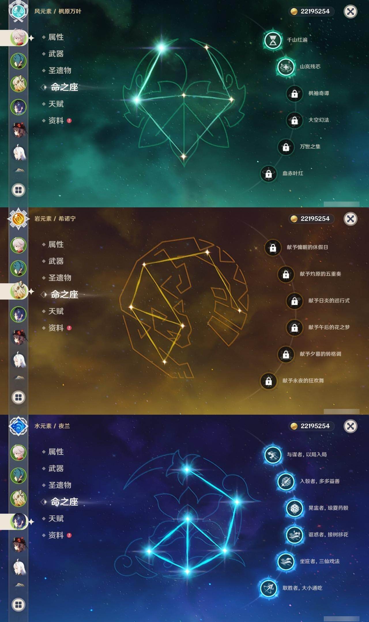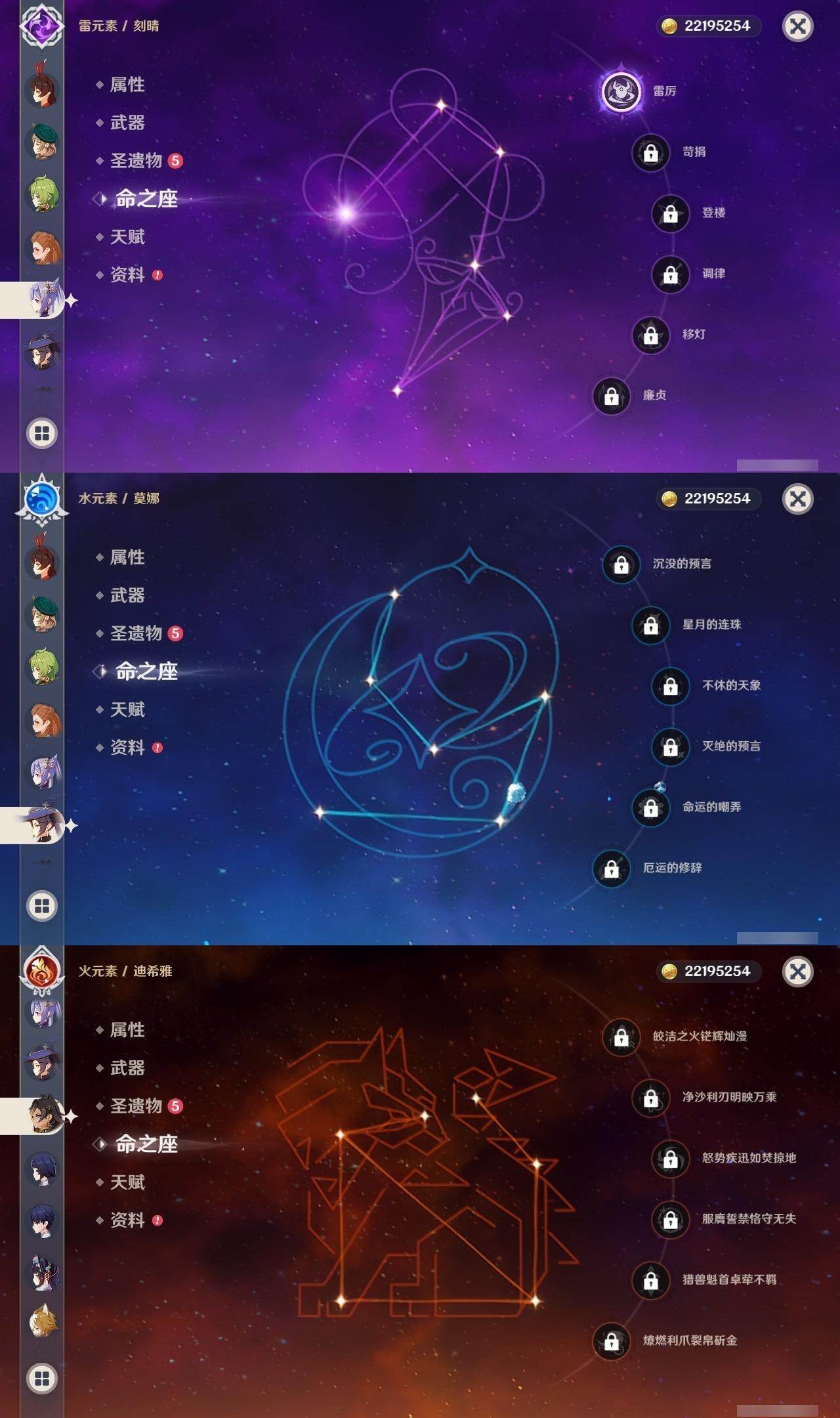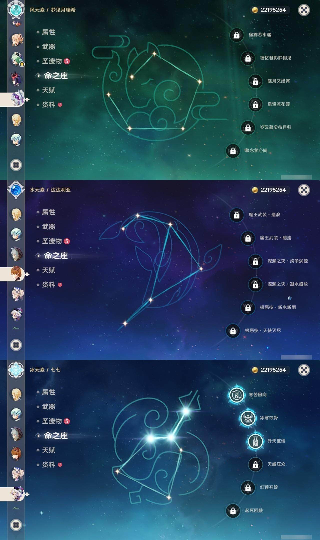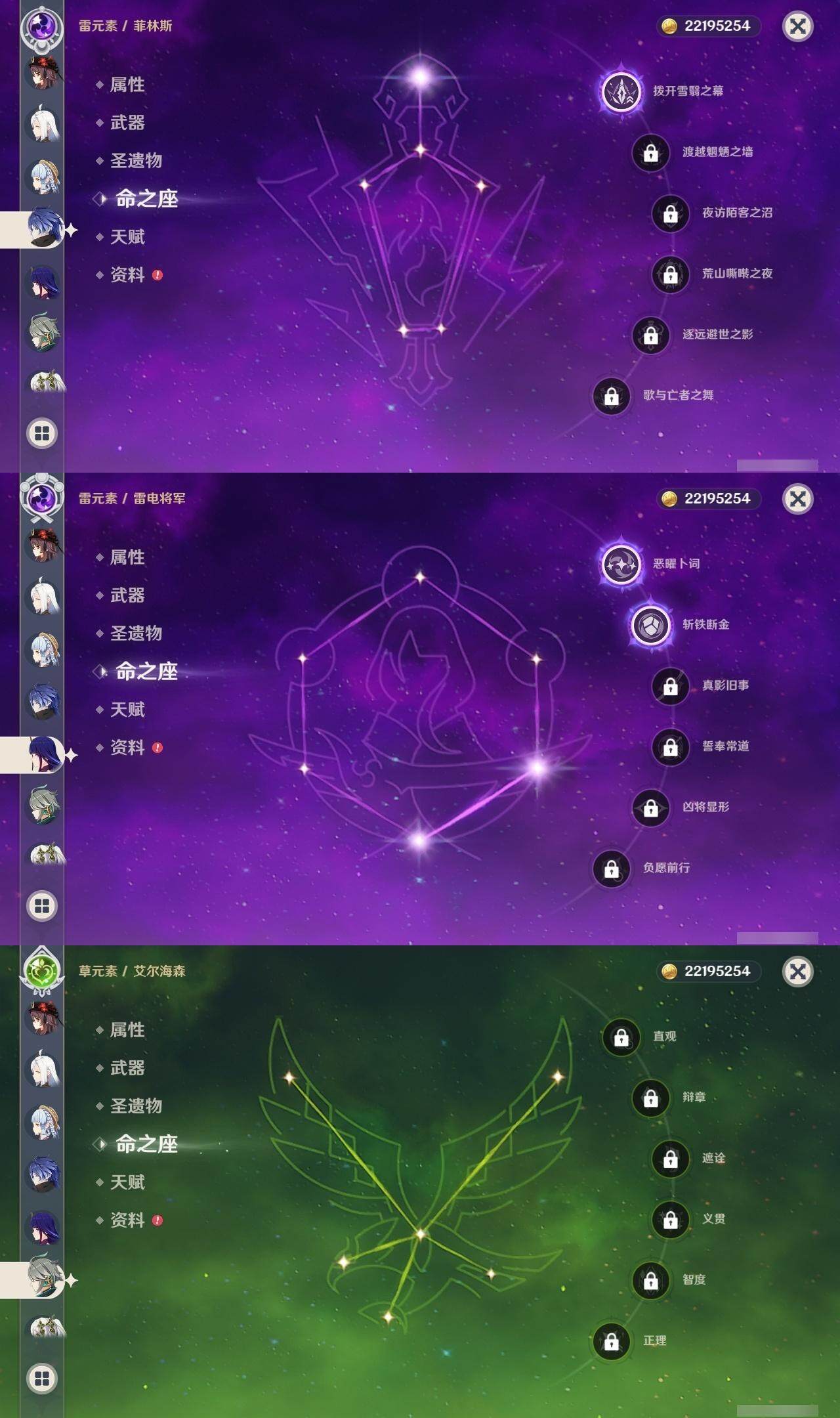 59级/61黄/女主/21个五星角色/18个五星武器 0命白术0命迪希雅0命艾尔海森0命纳西妲0命提纳里满命夜兰0命申鹤2命雷电将军2命枫原万叶0命神里绫华1命胡桃0命达达利亚0命珊瑚宫心海1命刻晴3命七七3命琴0命莫娜3命迪卢克0命希诺宁0命梦见月瑞希1命菲林斯精1裁叶萃光精1若水精1不灭月华精1薙草之稻光精1雾切之回光精1苍古自由之誓精1四风原典精1和璞鸢精1天空之脊精1阿莫斯之弓精1尘世之锁精1风鹰剑精1天空之傲精1血染荒城