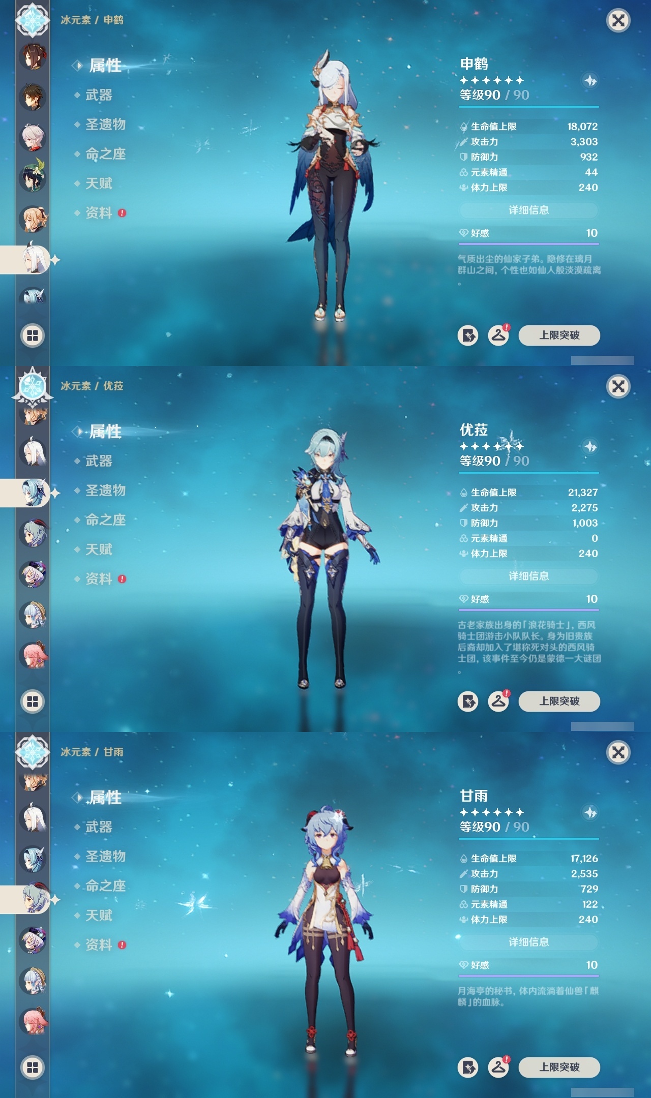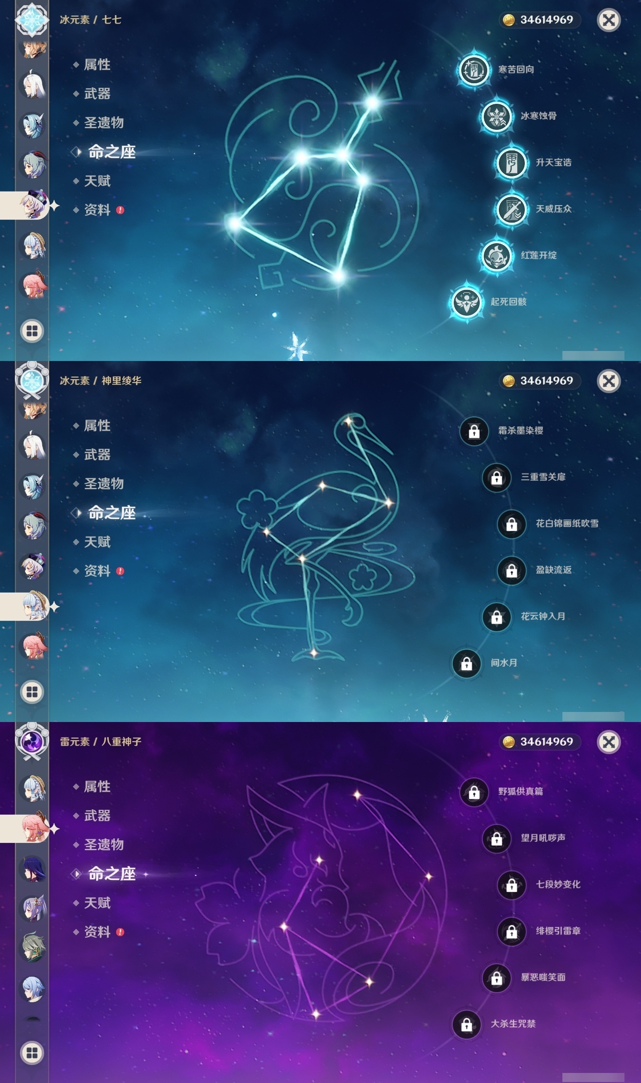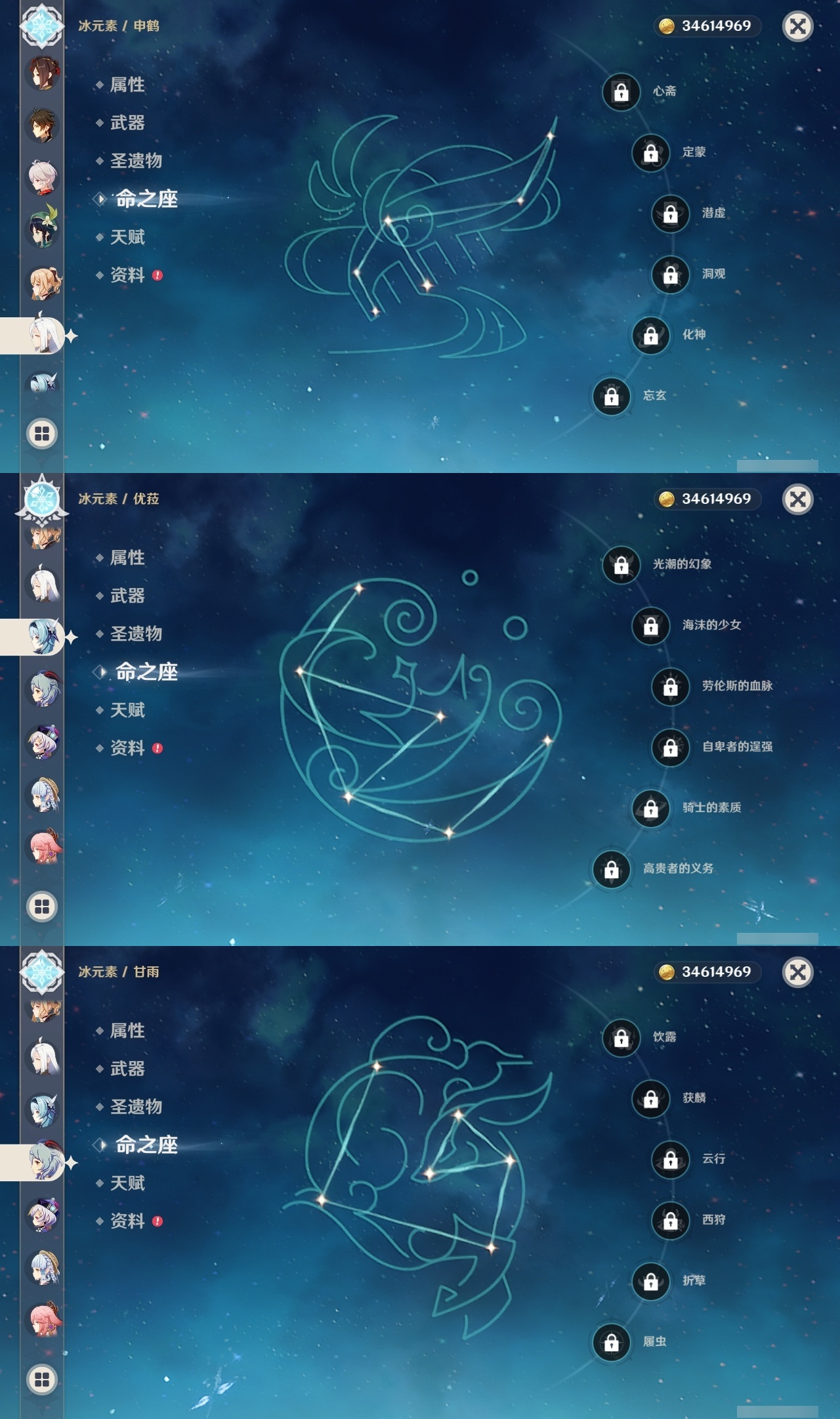 【原神】【lyys10086】冒险等级:60,五星数量:51,五星角色:七七 6命纳西妲 6命莫娜 5命迪卢克 2命琴 2命迪希雅 1命胡桃 1命可莉 1命基尼奇珊瑚宫心海神里绫华温迪优菈钟离梦见月瑞希申鹤八重神子神里绫人林尼夜兰芙宁娜提纳里千织妮露菲林斯艾尔海森枫原万叶甘雨刻晴雷电将军__五星武器:碧落之珑静水流涌之辉裁叶萃光阿莫斯之弓苍古自由之誓风鹰剑和璞鸢护摩之杖狼的末路磐岩结绿四风原典松籁响起之时天空之傲天空之刃天空之翼雾切之回光神乐之真意若水圣显之钥千夜浮梦__四星角色:班尼特 6命行秋 6命九条裟罗 6命香菱 6命久岐忍 6命凝光 6命迪奥娜 6命砂糖 6命莱依拉 6命坎蒂丝 6命多莉 6命芭芭拉 6命云堇 6命早柚 6命托马 6命烟绯 6命重云 6命辛焱 6命诺艾尔 6命罗莎莉亚 6命雷泽 6命菲谢尔 6命北斗 6命瑶瑶 5命米卡 5命珐露珊 4命柯莱 4命五郎 4命鹿野院平藏 3命绮良良 3命爱诺 2命琳妮特 1命夏洛蒂 1命埃洛伊卡齐娜卡维蓝砚嘉明伊安珊塔利雅赛索斯