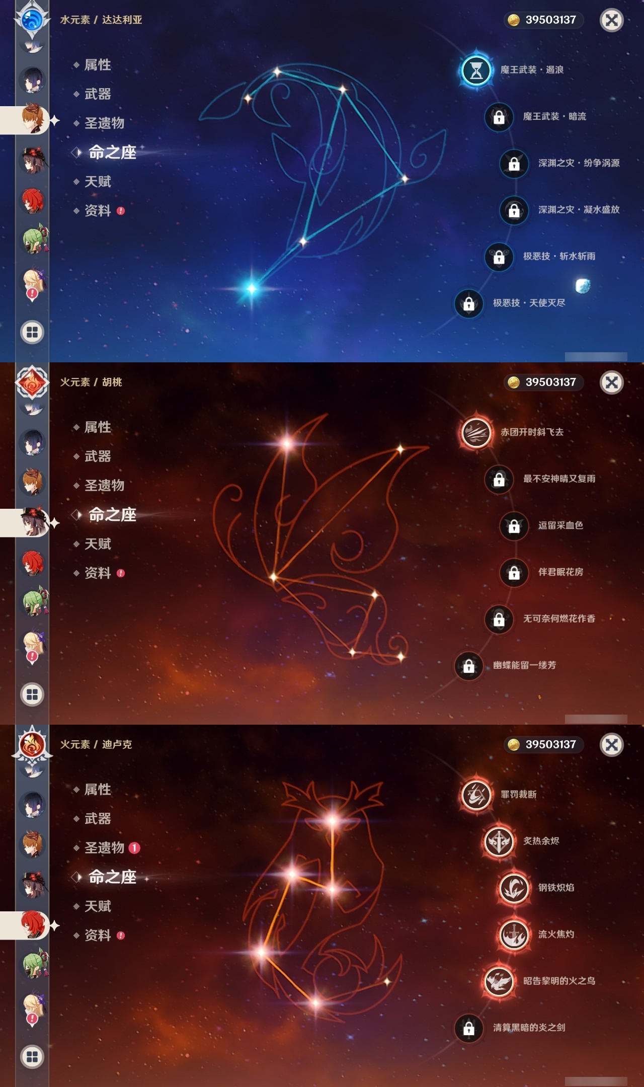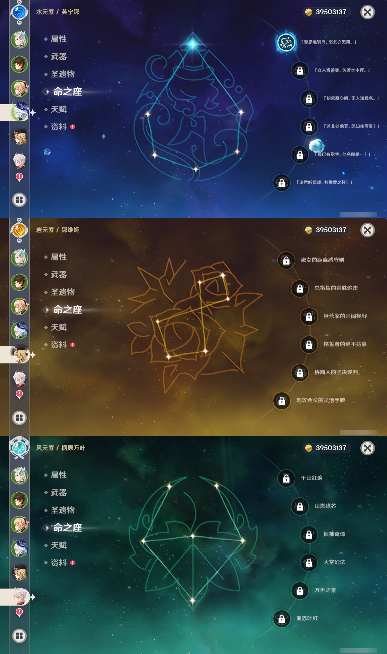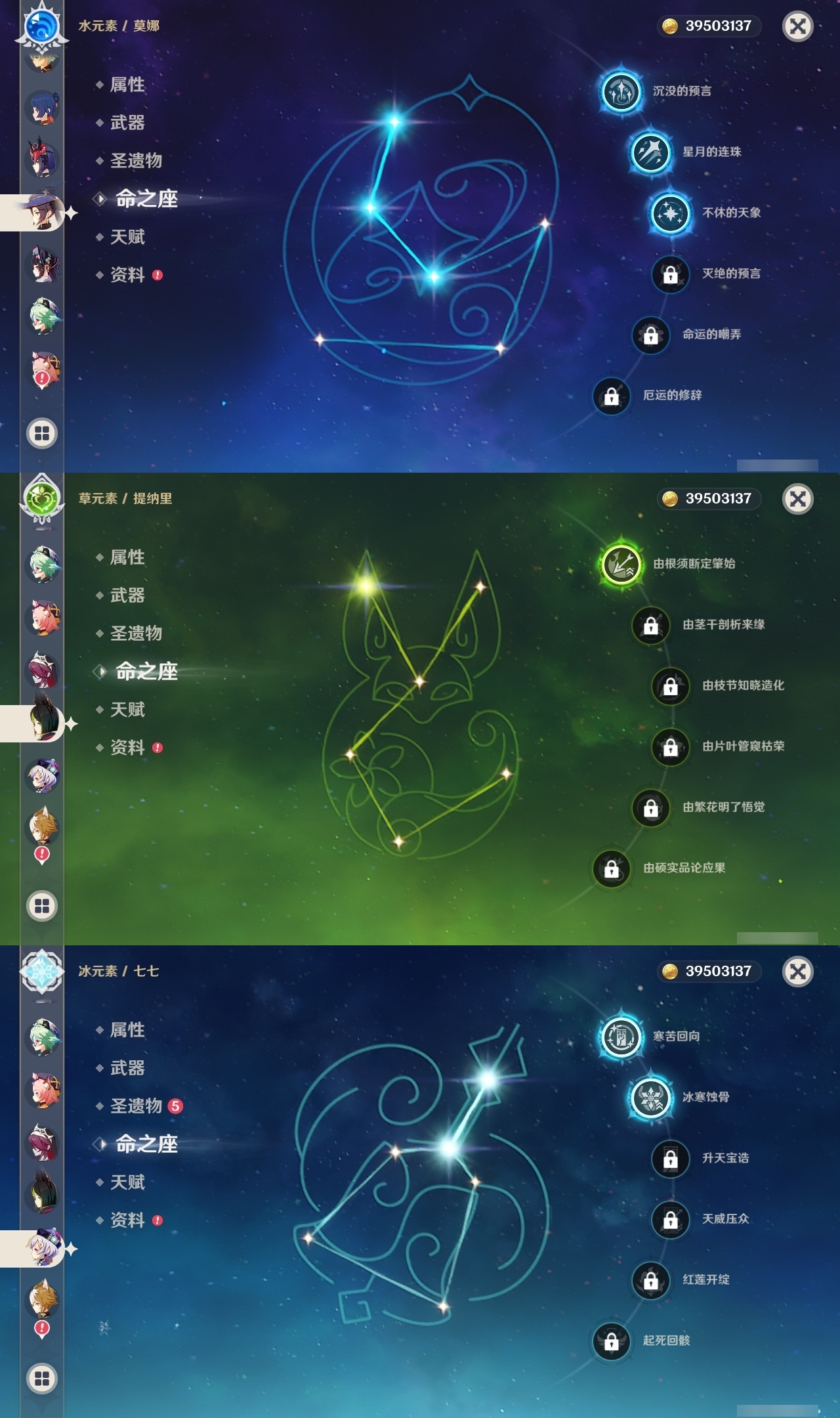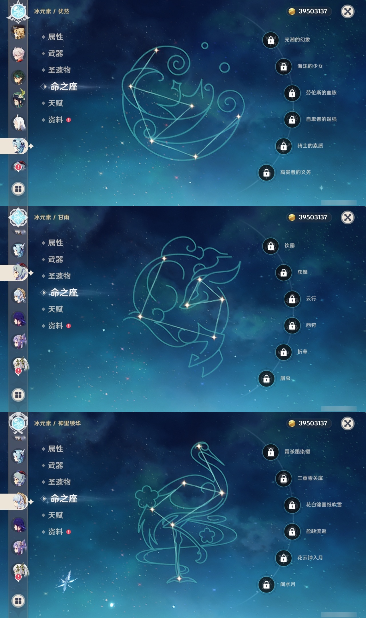 【原神】【lyys10145】冒险等级:60,五星数量:33,五星角色:夜兰 6命迪卢克 5命琴 4命刻晴 3命莫娜 3命那维莱特 2命七七 2命芙宁娜 1命达达利亚 1命胡桃 1命提纳里 1命神里绫华温迪优菈钟离申鹤神里绫人娜维娅妮露纳西妲枫原万叶甘雨魈雷电将军__五星武器:护摩之杖 2精息灾 2精万世流涌大典风鹰剑和璞鸢狼的末路天空之翼雾切之回光若水__四星角色:班尼特 6命行秋 6命九条裟罗 6命香菱 6命久岐忍 6命凝光 6命迪奥娜 6命砂糖 6命柯莱 6命芭芭拉 6命早柚 6命烟绯 6命重云 6命辛焱 6命诺艾尔 6命罗莎莉亚 6命雷泽 6命菲谢尔 6命北斗 6命珐露珊 3命坎蒂丝 3命云堇 3命五郎 3命多莉 2命米卡 1命托马 1命夏洛蒂 1命鹿野院平藏瑶瑶莱依拉卡维菲米尼琳妮特夏沃蕾嘉明