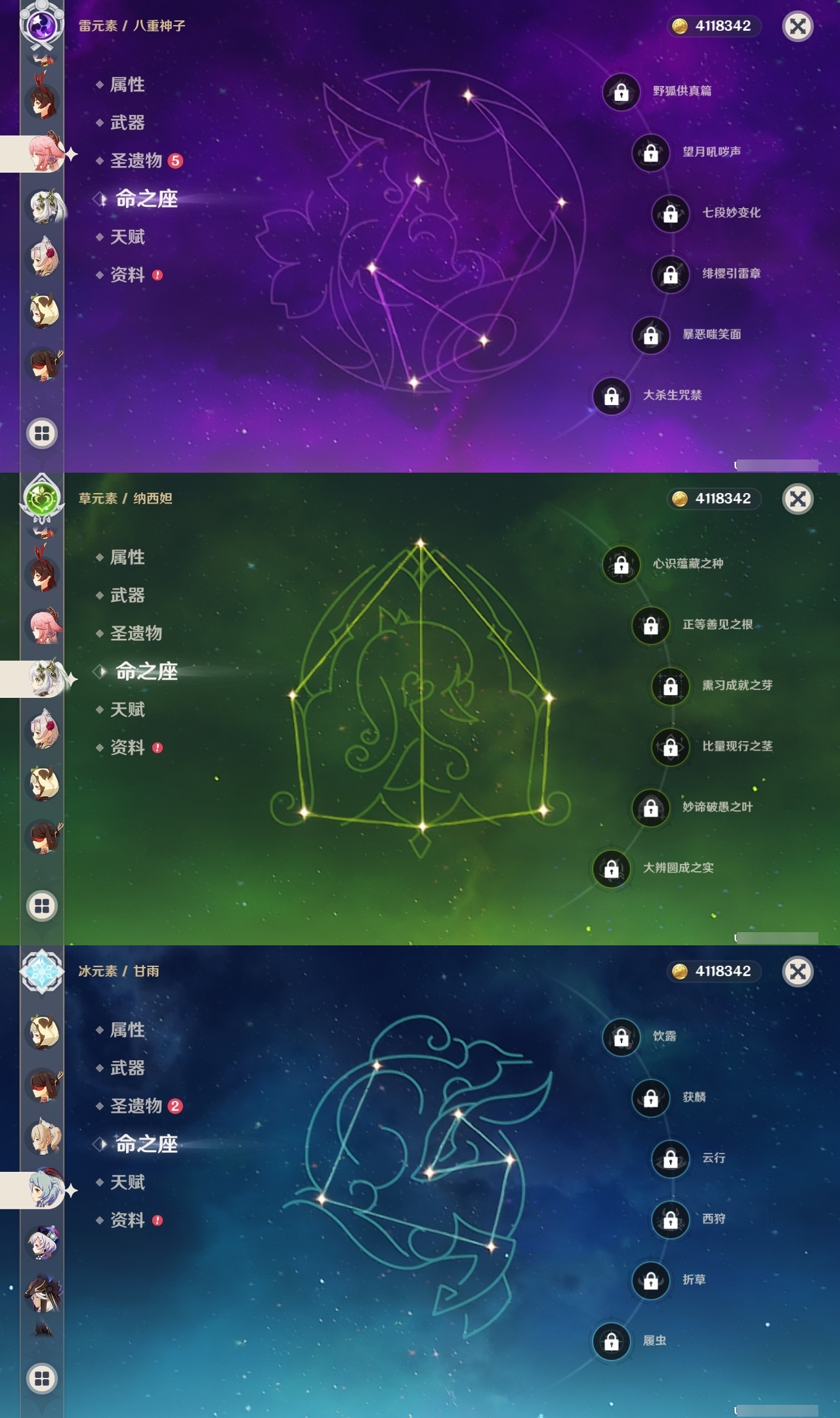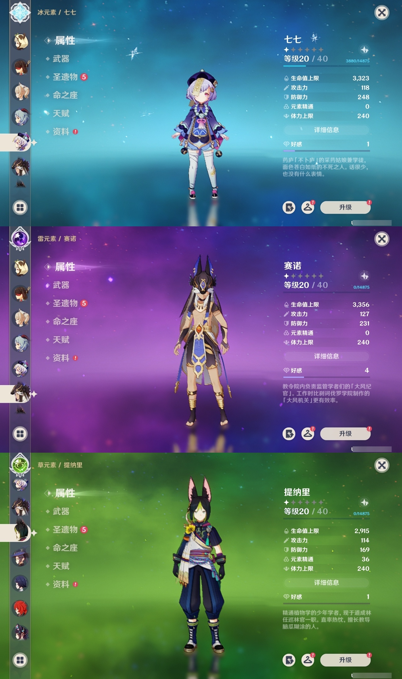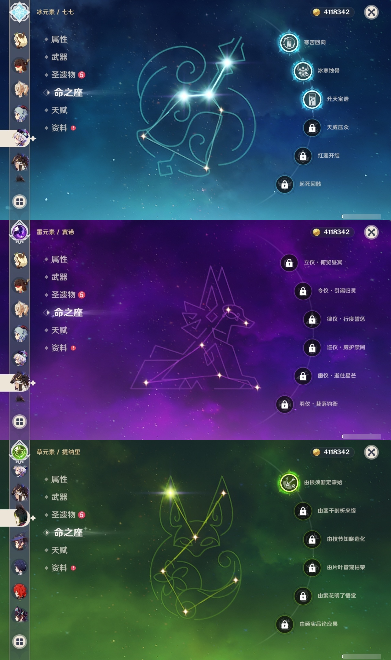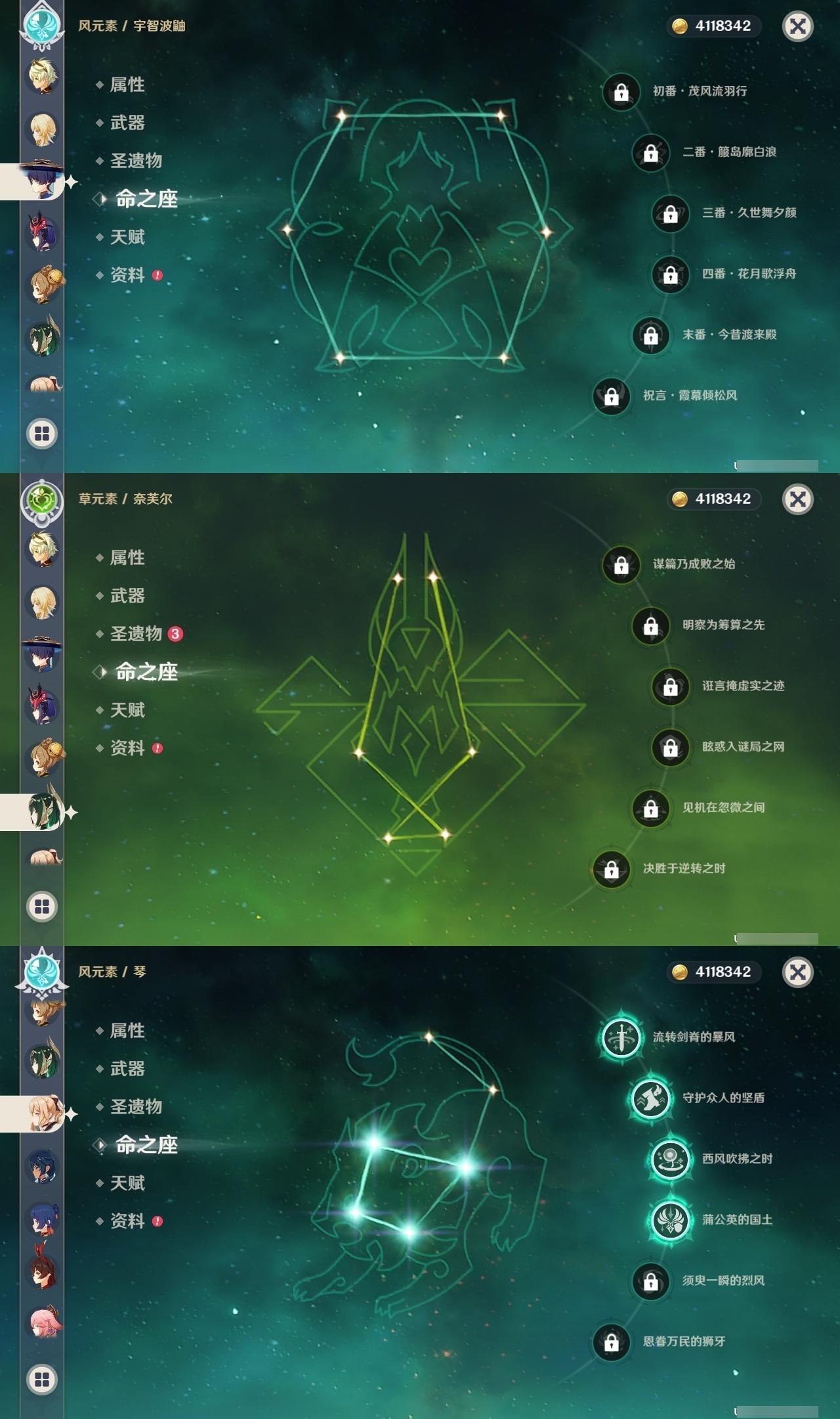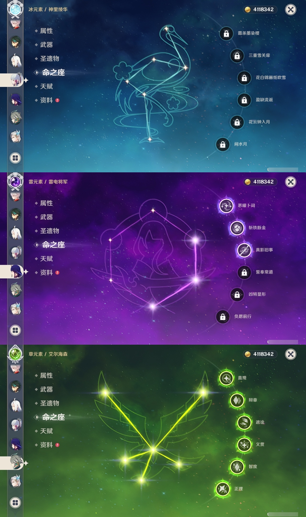 【原神】【lyys10143】冒险等级:57,五星数量:41,五星角色:艾尔海森 6命琴 4命迪卢克 3命雷电将军 3命七七 3命胡桃 1命莫娜 1命申鹤 1命夜兰 1命提纳里 1命珊瑚宫心海神里绫华迪希雅钟离梦见月瑞希八重神子神里绫人那维莱特赛诺纳西妲奈芙尔流浪者枫原万叶甘雨魈__五星武器:裁叶萃光 2精阿莫斯之弓苍古自由之誓和璞鸢护摩之杖狼的末路四风原典天空之傲天空之脊天空之刃天空之翼雾切之回光薙草之稻光波乱月白经津若水__四星角色:班尼特 6命行秋 6命珐露珊 6命迪奥娜 6命砂糖 6命瑶瑶 6命米卡 6命坎蒂丝 6命多莉 6命柯莱 6命芭芭拉 6命云堇 6命早柚 6命烟绯 6命辛焱 6命罗莎莉亚 6命北斗 6命久岐忍 5命凝光 5命莱依拉 5命卡维 5命九条裟罗 3命鹿野院平藏 3命菲谢尔 3命夏沃蕾 3命香菱 2命托马 2命重云 2命诺艾尔 2命雷泽 2命菲米尼 2命五郎 1命奇偶·女性卡齐娜琳妮特爱诺