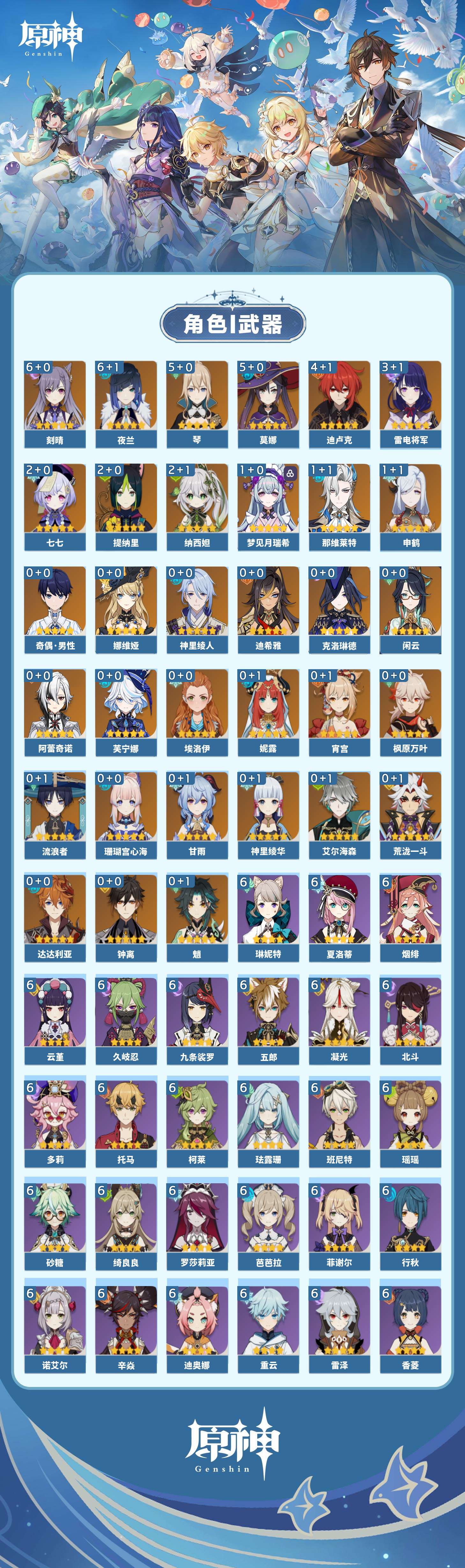 【原神】【lyys10200】冒险等级:60,五星数量:50,五星角色:刻晴 6命夜兰 6命莫娜 5命琴 5命迪卢克 4命雷电将军 3命七七 2命提纳里 2命纳西妲 2命梦见月瑞希 1命那维莱特 1命申鹤 1命珊瑚宫心海神里绫华宵宫迪希雅钟离荒泷一斗达达利亚神里绫人芙宁娜娜维娅闲云阿蕾奇诺妮露艾尔海森流浪者枫原万叶甘雨魈克洛琳德__五星武器:万世流涌大典裁叶萃光图莱杜拉的回忆阿莫斯之弓飞雷之弦振风鹰剑和璞鸢狼的末路天空之傲天空之卷雾切之回光薙草之稻光赤角石溃杵息灾若水圣显之钥千夜浮梦__四星角色:班尼特 6命行秋 6命九条裟罗 6命香菱 6命久岐忍 6命鹿野院平藏 6命珐露珊 6命凝光 6命迪奥娜 6命砂糖 6命绮良良 6命瑶瑶 6命多莉 6命柯莱 6命芭芭拉 6命云堇 6命托马 6命五郎 6命烟绯 6命重云 6命辛焱 6命诺艾尔 6命罗莎莉亚 6命雷泽 6命菲谢尔 6命北斗 6命琳妮特 6命夏洛蒂 6命早柚 5命莱依拉 4命米卡 3命坎蒂丝 3命卡维 3命菲米尼 2命嘉明 2命夏沃蕾 1命埃洛伊奇偶·男性欧洛伦赛索斯