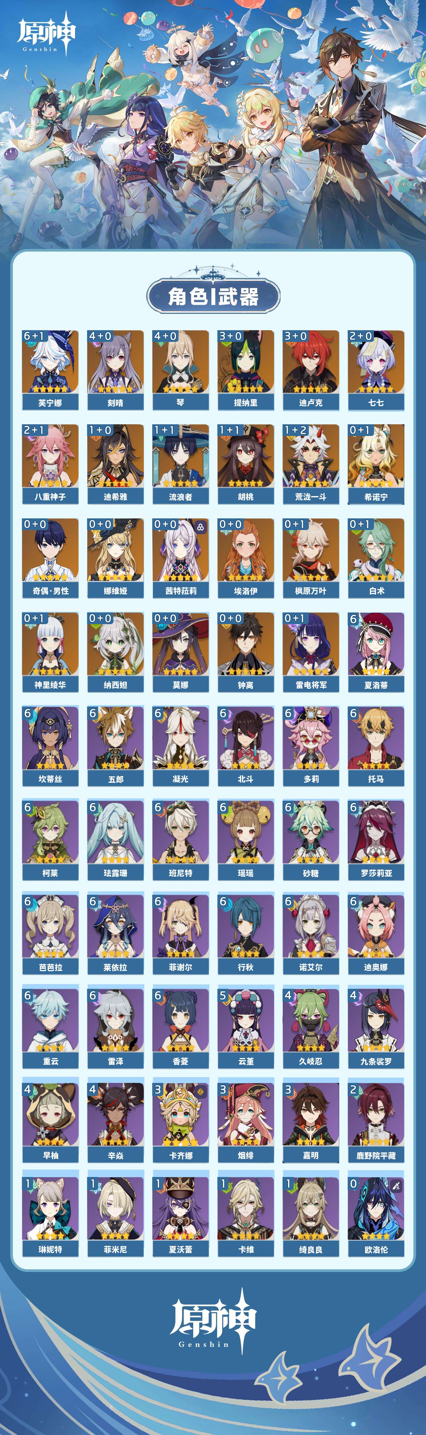 【原神】【lyys10212】冒险等级:60,五星数量:40,五星角色:芙宁娜 6命刻晴 4命琴 4命迪卢克 3命提纳里 3命七七 2命八重神子 2命迪希雅 1命胡桃 1命荒泷一斗 1命流浪者 1命莫娜希诺宁白术神里绫华茜特菈莉钟离娜维娅纳西妲枫原万叶雷电将军__五星武器:无工之剑 3精赤角石溃杵 2精岩峰巡歌碧落之珑静水流涌之辉图莱杜拉的回忆阿莫斯之弓苍古自由之誓风鹰剑护摩之杖天空之傲天空之脊天空之翼雾切之回光薙草之稻光神乐之真意圣显之钥__四星角色:班尼特 6命行秋 6命香菱 6命珐露珊 6命凝光 6命迪奥娜 6命砂糖 6命瑶瑶 6命莱依拉 6命坎蒂丝 6命多莉 6命柯莱 6命芭芭拉 6命托马 6命五郎 6命重云 6命诺艾尔 6命罗莎莉亚 6命雷泽 6命菲谢尔 6命北斗 6命夏洛蒂 6命云堇 5命九条裟罗 4命久岐忍 4命早柚 4命辛焱 4命卡齐娜 3命烟绯 3命嘉明 3命鹿野院平藏 2命绮良良 1命卡维 1命菲米尼 1命琳妮特 1命夏沃蕾 1命埃洛伊奇偶·男性米卡欧洛伦