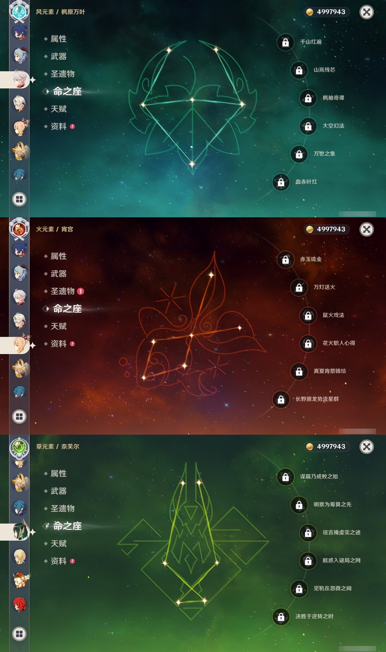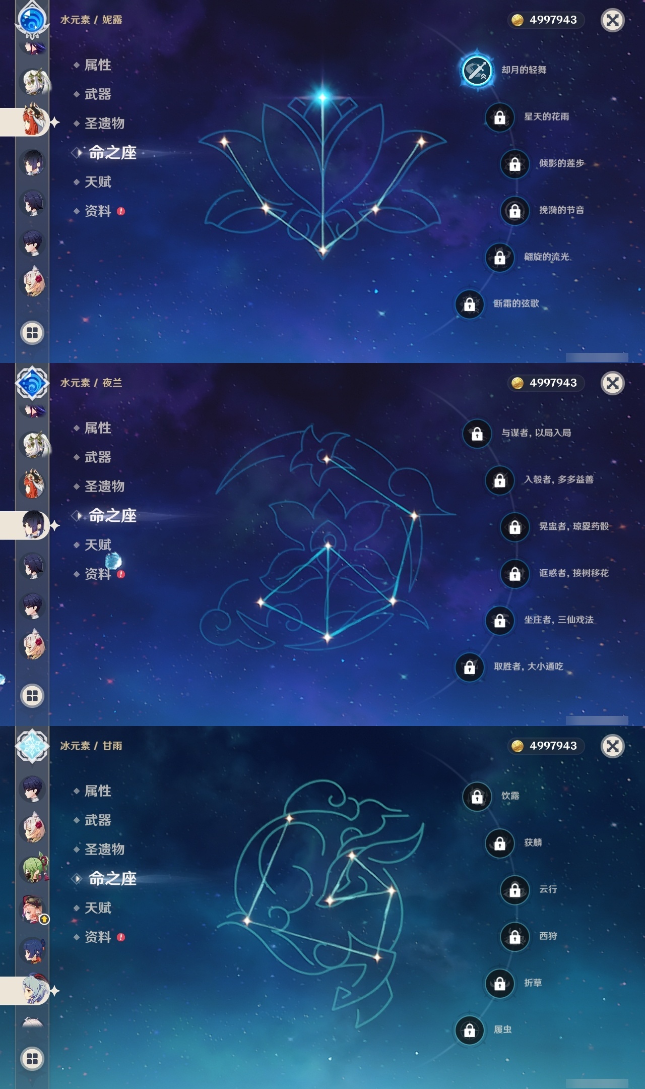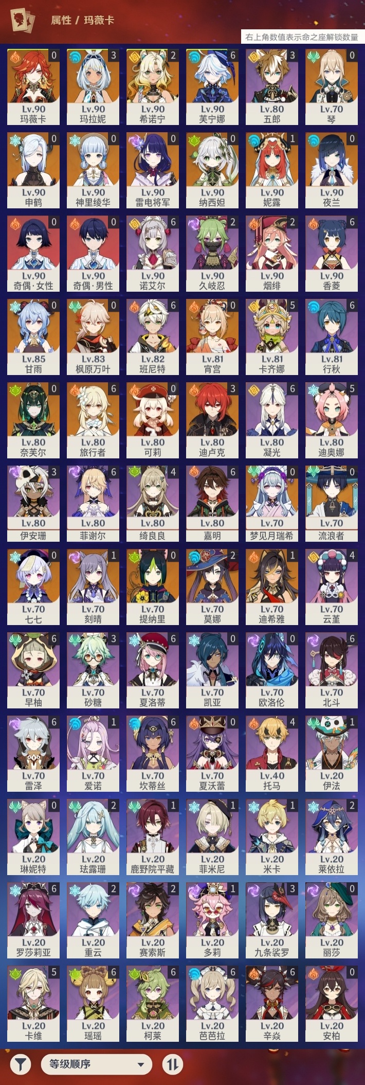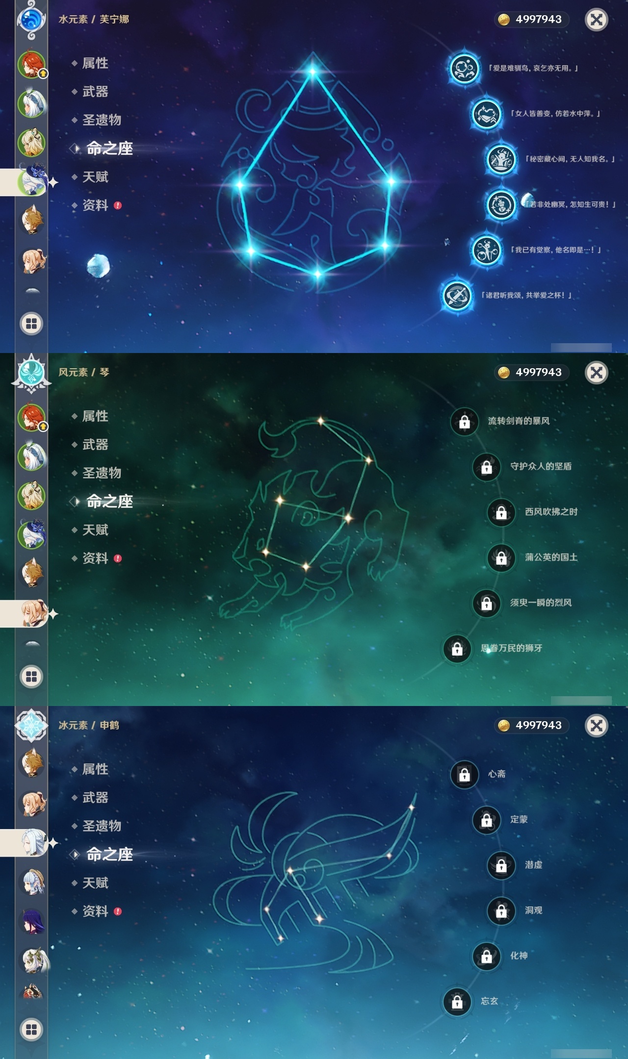 【原神】【lyys10217】冒险等级:60,五星数量:40,五星角色:芙宁娜 6命玛拉妮 3命迪卢克 3命希诺宁 2命莫娜 2命迪希雅 1命刻晴 1命妮露 1命七七琴神里绫华玛薇卡宵宫梦见月瑞希申鹤夜兰提纳里纳西妲奈芙尔流浪者枫原万叶甘雨可莉雷电将军__五星武器:狼的末路 2精冲浪时光岩峰巡歌静水流涌之辉有乐御簾切真语秘匣阿莫斯之弓和璞鸢四风原典天空之傲天空之脊天空之翼雾切之回光息灾__四星角色:班尼特 6命行秋 6命香菱 6命凝光 6命瑶瑶 6命坎蒂丝 6命柯莱 6命芭芭拉 6命早柚 6命辛焱 6命诺艾尔 6命罗莎莉亚 6命雷泽 6命菲谢尔 6命北斗 6命夏洛蒂 6命嘉明 6命卡齐娜 5命迪奥娜 5命卡维 5命绮良良 4命云堇 4命托马 4命九条裟罗 3命砂糖 3命五郎 3命伊安珊 3命久岐忍 2命珐露珊 2命莱依拉 2命烟绯 2命重云 2命赛索斯 2命鹿野院平藏 1命米卡 1命多莉 1命菲米尼 1命伊法 1命爱诺 1命奇偶·女性奇偶·男性欧洛伦琳妮特夏沃蕾