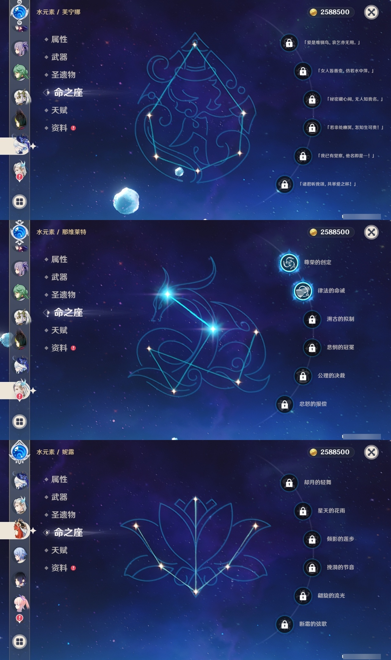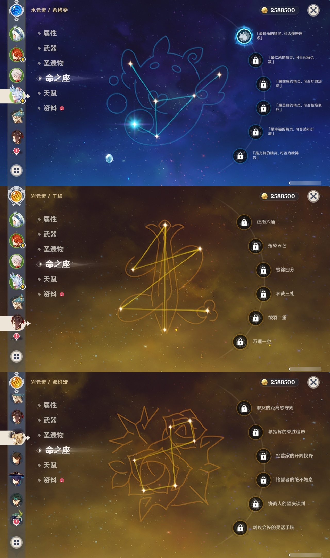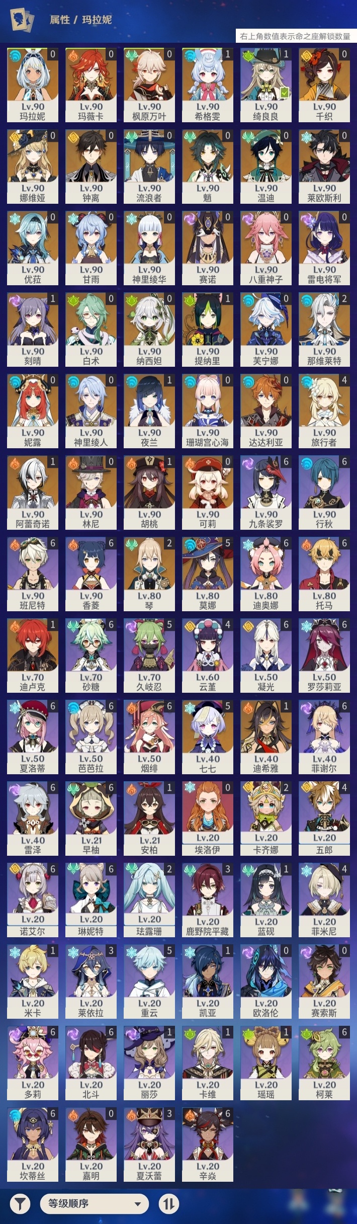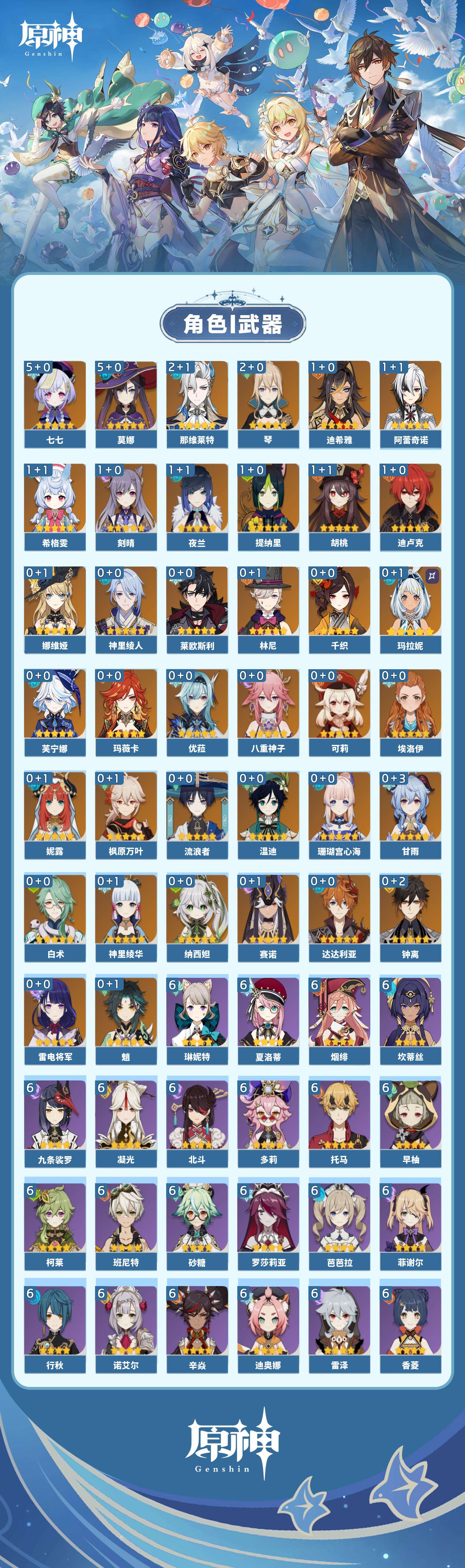 【原神】【lyys10218】冒险等级:60,五星数量:61,五星角色:莫娜 5命七七 5命那维莱特 2命琴 2命迪希雅 1命阿蕾奇诺 1命迪卢克 1命胡桃 1命刻晴 1命夜兰 1命提纳里 1命希格雯 1命玛拉妮珊瑚宫心海白术神里绫华温迪玛薇卡优菈钟离达达利亚八重神子神里绫人林尼莱欧斯利芙宁娜娜维娅千织赛诺妮露纳西妲流浪者枫原万叶甘雨魈可莉雷电将军__五星武器:阿莫斯之弓 3精贯虹之槊 2精冲浪时光最初的大魔术万世流涌大典裁断赤月之形苍古自由之誓风鹰剑和璞鸢护摩之杖磐岩结绿天空之傲天空之脊天空之卷天空之刃天空之翼无工之剑雾切之回光若水赤沙之杖圣显之钥白雨心弦__四星角色:班尼特 6命行秋 6命九条裟罗 6命香菱 6命凝光 6命迪奥娜 6命砂糖 6命坎蒂丝 6命多莉 6命柯莱 6命芭芭拉 6命早柚 6命托马 6命烟绯 6命辛焱 6命诺艾尔 6命罗莎莉亚 6命雷泽 6命菲谢尔 6命北斗 6命琳妮特 6命夏洛蒂 6命久岐忍 5命重云 5命云堇 4命五郎 4命菲米尼 4命鹿野院平藏 3命莱依拉 3命夏沃蕾 3命卡齐娜 2命珐露珊 2命绮良良 1命瑶瑶 1命米卡 1命卡维 1命蓝砚 1命埃洛伊欧洛伦嘉明赛索斯