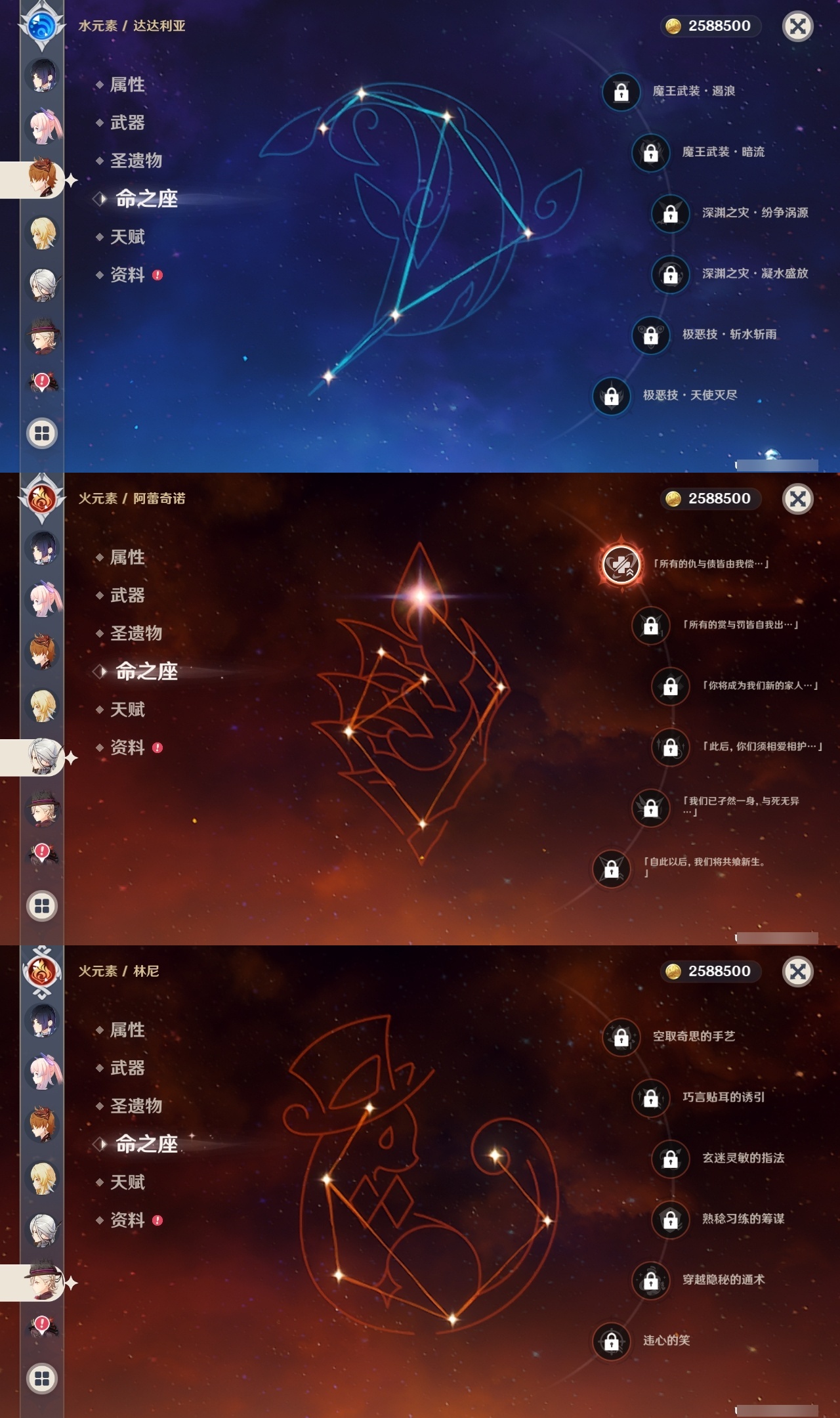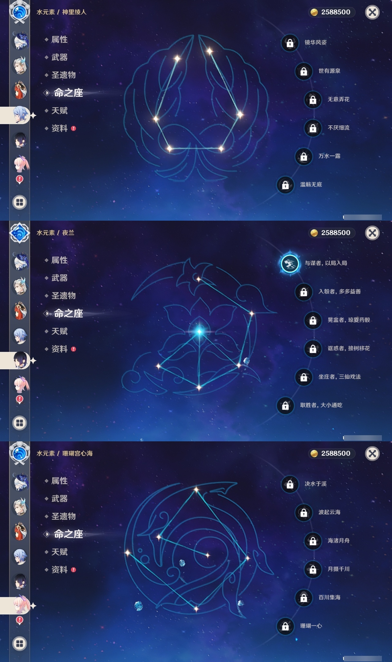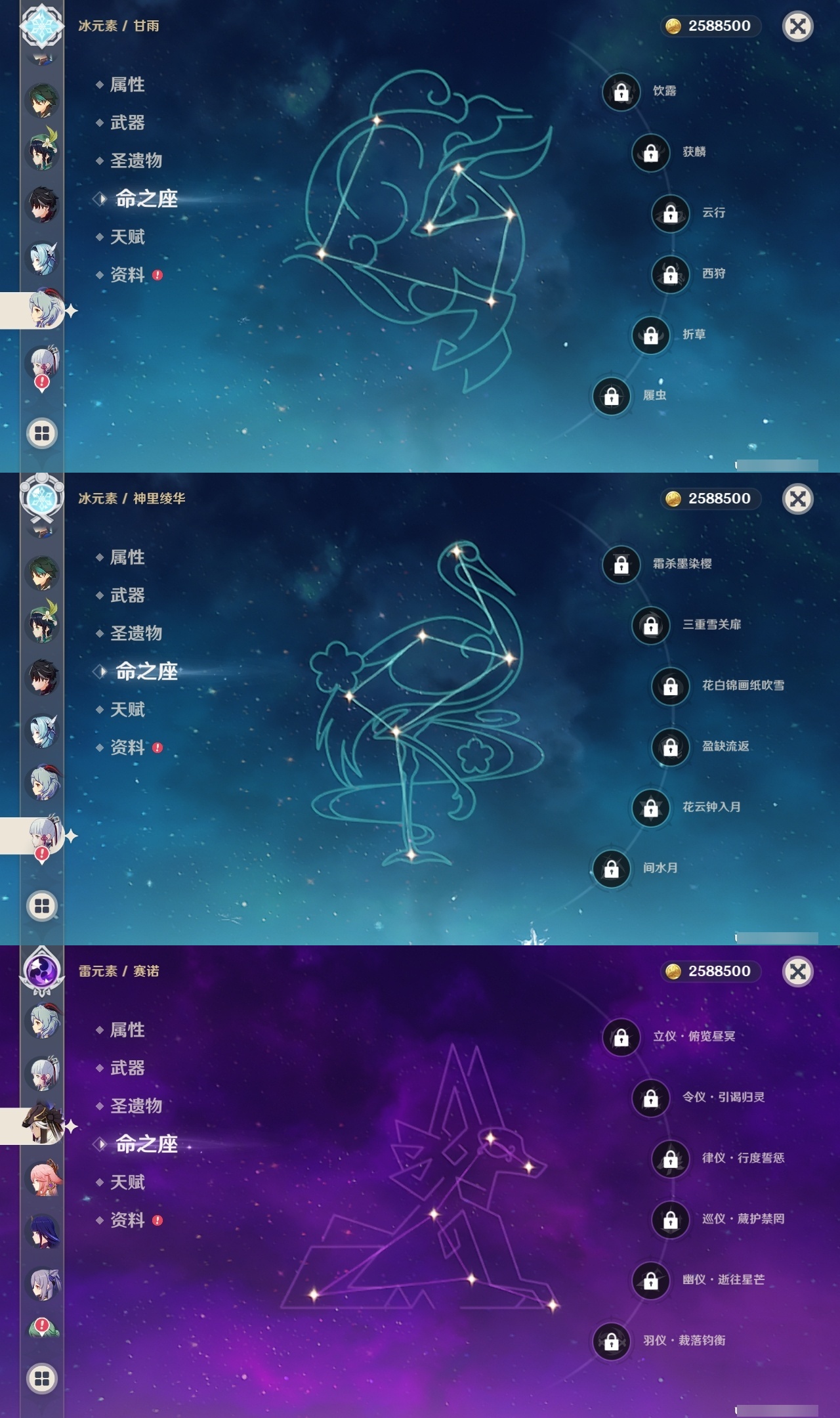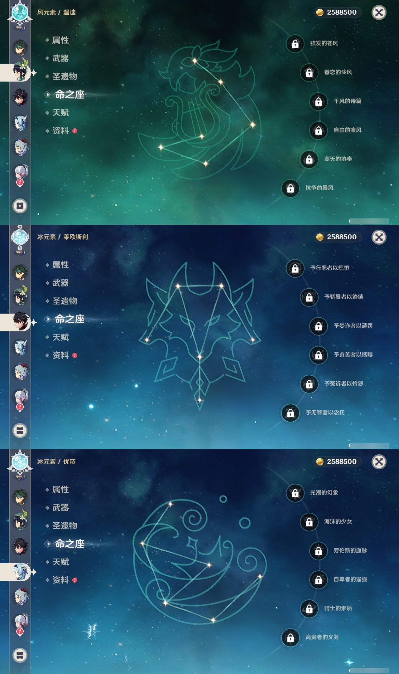 【原神】【lyys10218】冒险等级:60,五星数量:61,五星角色:莫娜 5命七七 5命那维莱特 2命琴 2命迪希雅 1命阿蕾奇诺 1命迪卢克 1命胡桃 1命刻晴 1命夜兰 1命提纳里 1命希格雯 1命玛拉妮珊瑚宫心海白术神里绫华温迪玛薇卡优菈钟离达达利亚八重神子神里绫人林尼莱欧斯利芙宁娜娜维娅千织赛诺妮露纳西妲流浪者枫原万叶甘雨魈可莉雷电将军__五星武器:阿莫斯之弓 3精贯虹之槊 2精冲浪时光最初的大魔术万世流涌大典裁断赤月之形苍古自由之誓风鹰剑和璞鸢护摩之杖磐岩结绿天空之傲天空之脊天空之卷天空之刃天空之翼无工之剑雾切之回光若水赤沙之杖圣显之钥白雨心弦__四星角色:班尼特 6命行秋 6命九条裟罗 6命香菱 6命凝光 6命迪奥娜 6命砂糖 6命坎蒂丝 6命多莉 6命柯莱 6命芭芭拉 6命早柚 6命托马 6命烟绯 6命辛焱 6命诺艾尔 6命罗莎莉亚 6命雷泽 6命菲谢尔 6命北斗 6命琳妮特 6命夏洛蒂 6命久岐忍 5命重云 5命云堇 4命五郎 4命菲米尼 4命鹿野院平藏 3命莱依拉 3命夏沃蕾 3命卡齐娜 2命珐露珊 2命绮良良 1命瑶瑶 1命米卡 1命卡维 1命蓝砚 1命埃洛伊欧洛伦嘉明赛索斯
