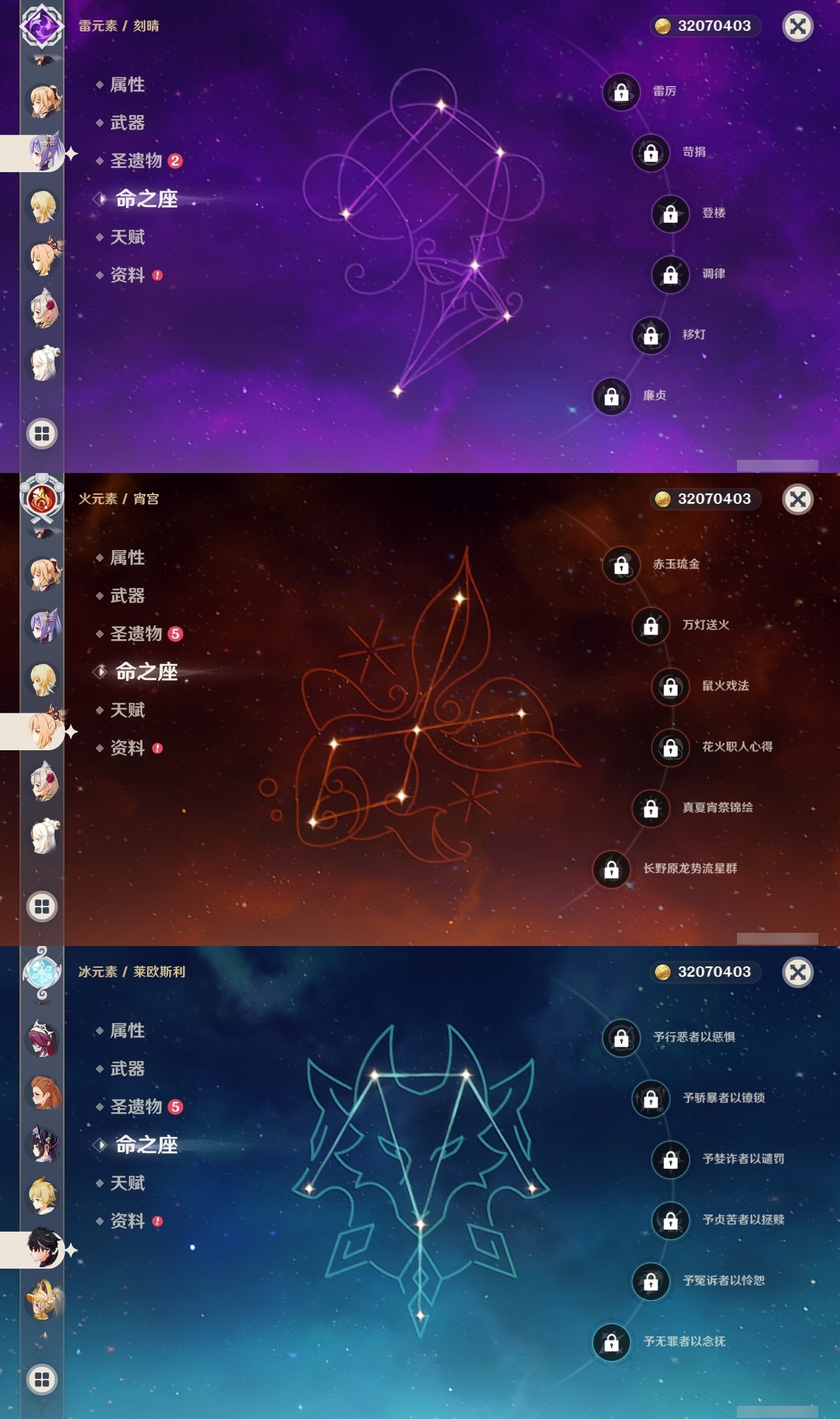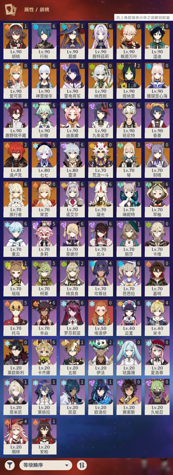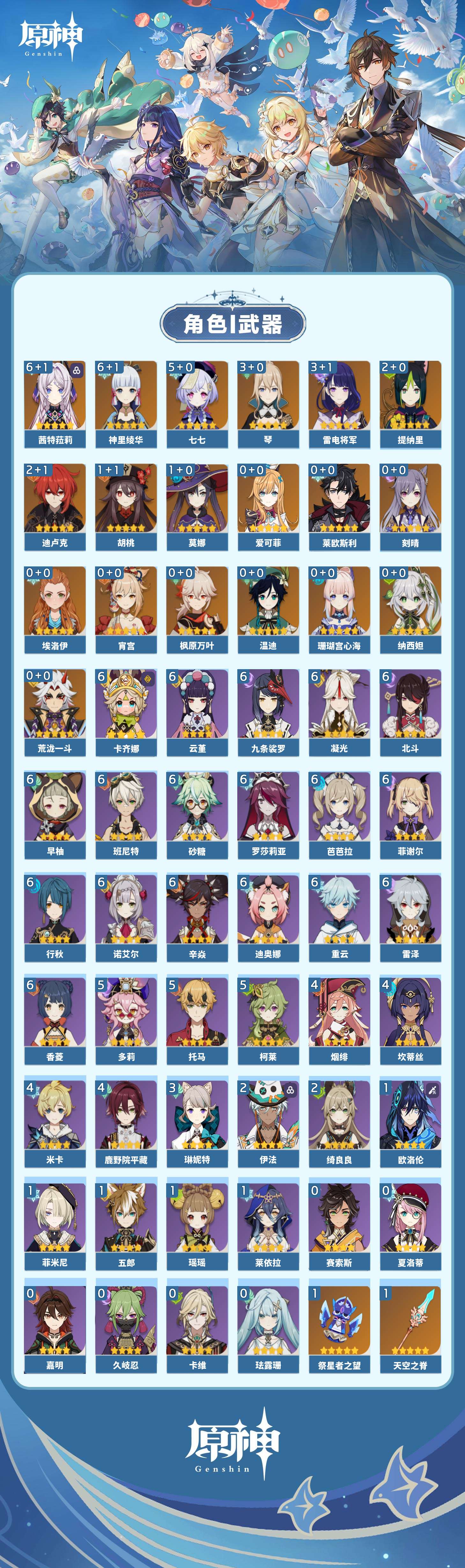 【原神】【lyys10261】冒险等级:60,五星数量:30,五星角色:茜特菈莉 6命神里绫华 6命七七 5命雷电将军 3命琴 3命迪卢克 2命提纳里 2命胡桃 1命莫娜 1命珊瑚宫心海温迪宵宫荒泷一斗莱欧斯利爱可菲纳西妲枫原万叶刻晴__五星武器:祭星者之望风鹰剑护摩之杖狼的末路四风原典天空之脊天空之卷天空之刃无工之剑雾切之回光薙草之稻光__四星角色:卡齐娜 6命班尼特 6命行秋 6命九条裟罗 6命香菱 6命凝光 6命迪奥娜 6命砂糖 6命芭芭拉 6命云堇 6命早柚 6命重云 6命辛焱 6命诺艾尔 6命罗莎莉亚 6命雷泽 6命菲谢尔 6命北斗 6命多莉 5命柯莱 5命托马 5命鹿野院平藏 4命米卡 4命坎蒂丝 4命烟绯 4命琳妮特 3命绮良良 2命伊法 2命瑶瑶 1命莱依拉 1命欧洛伦 1命五郎 1命菲米尼 1命埃洛伊久岐忍珐露珊卡维夏洛蒂嘉明赛索斯184抽