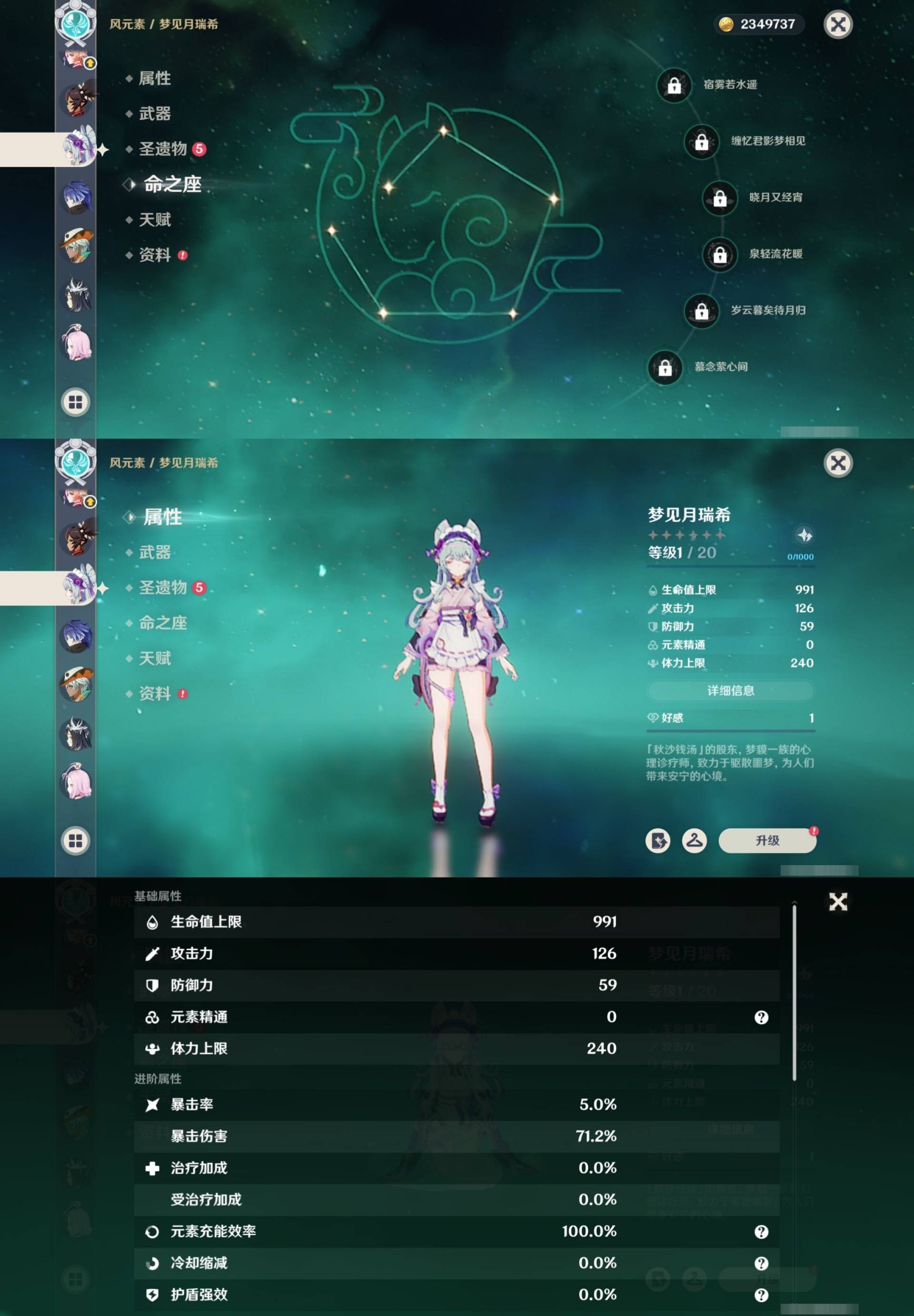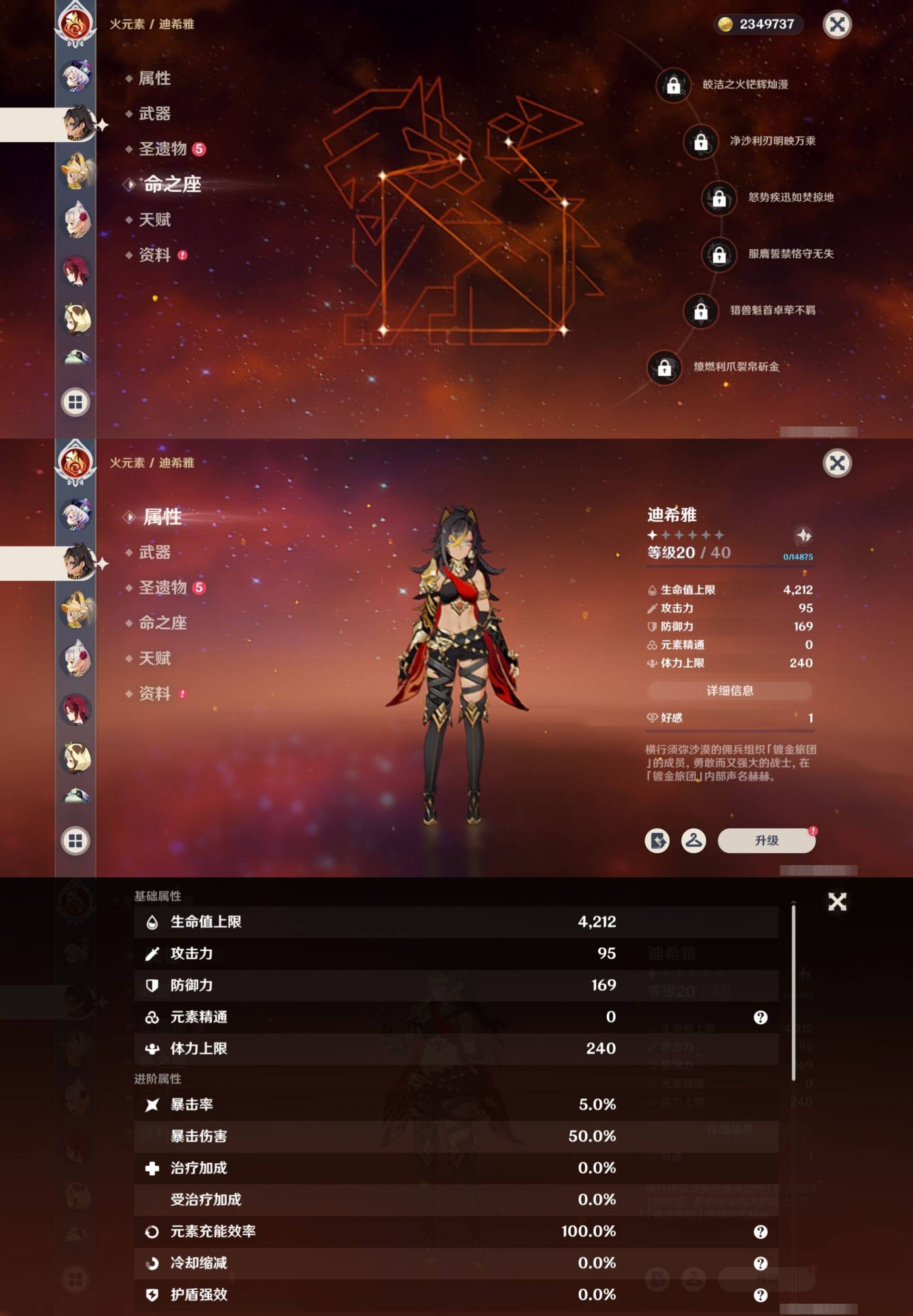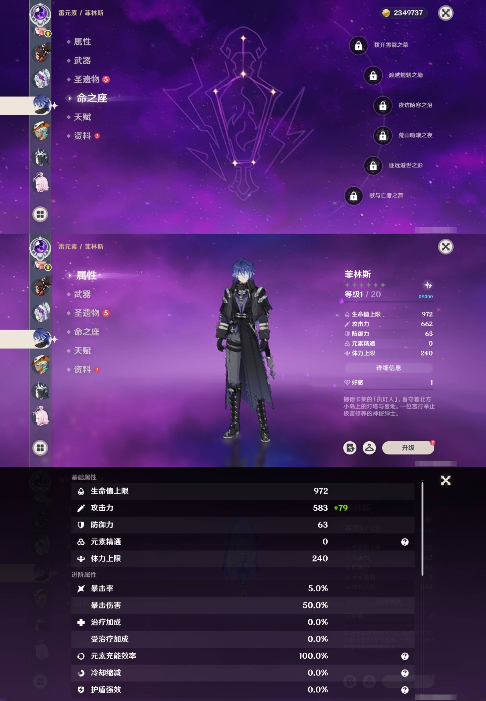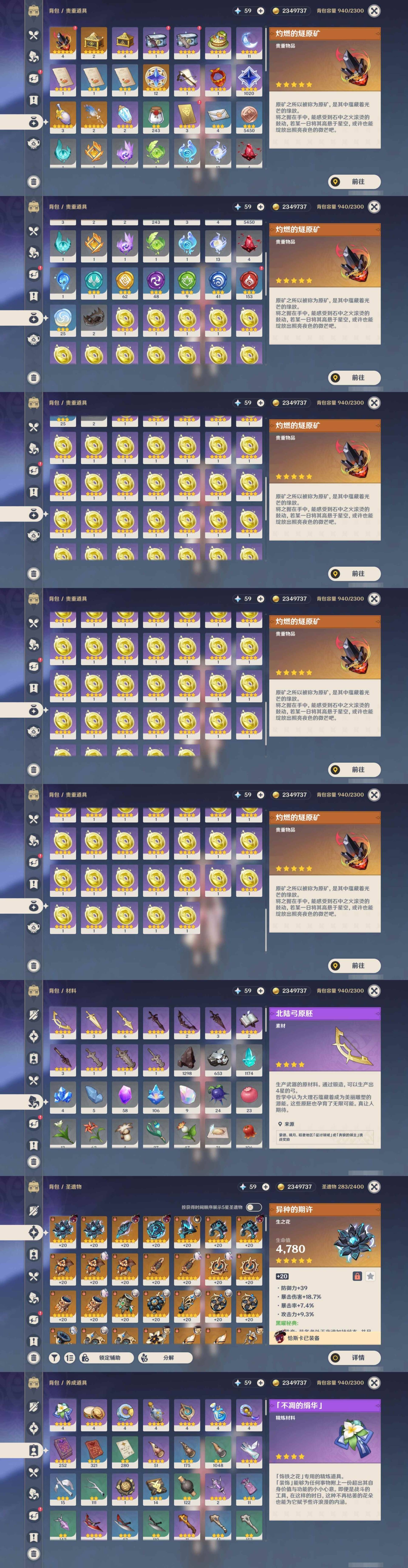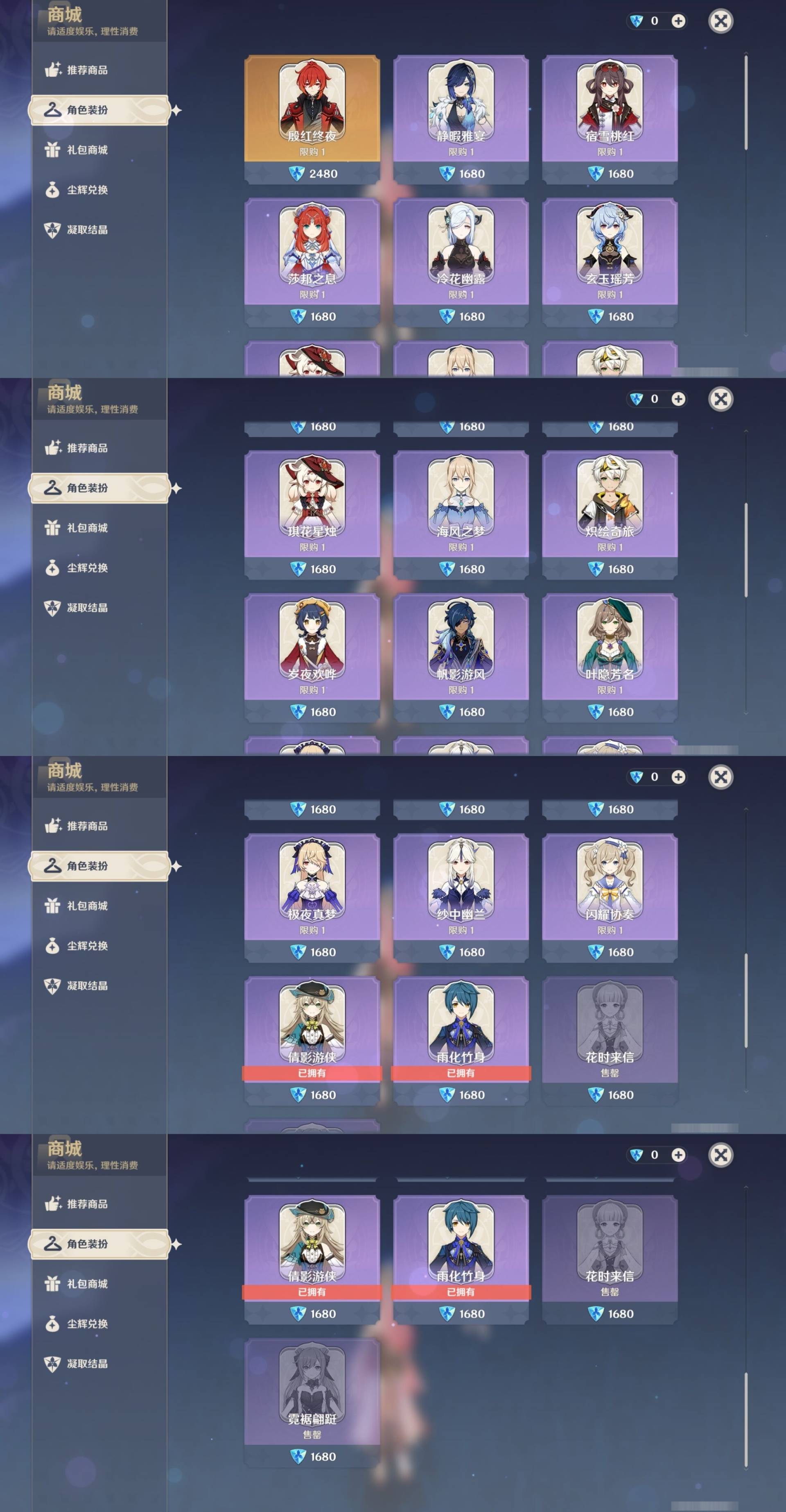 [15415541]51黄 风元素:0命枫原万叶 0命恰斯卡 火元素:0命阿蕾奇诺 水元素:2命芙宁娜 0命夜兰 0命珊瑚宫心海 雷元素:6命八重神子 0命菲林斯 冰元素:0命茜特菈莉 0命神里绫华 岩元素:0命钟离 0命娜维娅 草元素:2命纳西妲 【常驻五星角色及命座】 风元素:0命梦见月瑞希 火元素:1命迪卢克 0命迪希雅 水元素:1命莫娜 雷元素:3命刻晴 冰元素:2命七七 草元素:0命提纳里 单手剑:精1天空之刃 精1雾切之回光 双手剑:精1天空之傲 精1裁断 长柄武器:精2和璞鸢 精1息灾 精1护摩之杖 法器:精1千夜浮梦 精1神乐之真意 弓:精1冬极白星 精1星鹫赤羽 精2阿莫斯之弓 【角色皮肤】 五星角色:神里绫华-花时来信 刻晴-霓裾翩跹 四星角色:绮良良-倩影游侠 行秋-雨化竹身