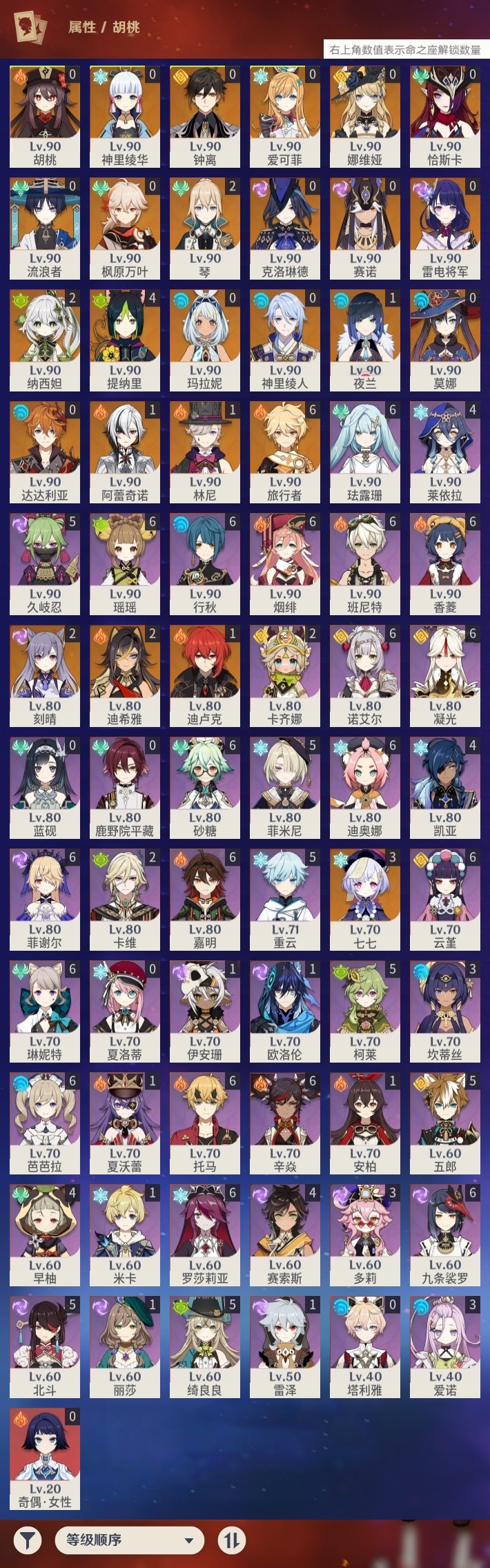 【原神】【lyys10304】冒险等级:60,五星数量:49,五星角色:提纳里 4命七七 3命迪希雅 2命刻晴 2命琴 2命纳西妲 2命林尼 1命阿蕾奇诺 1命迪卢克 1命夜兰 1命莫娜玛拉妮神里绫华恰斯卡钟离达达利亚神里绫人娜维娅赛诺爱可菲流浪者枫原万叶胡桃克洛琳德雷电将军__五星武器:狼的末路 2精天空之脊 2精冲浪时光星鹫赤羽最初的大魔术万世流涌大典赤月之形苍古自由之誓风鹰剑护摩之杖四风原典天空之傲天空之刃天空之翼雾切之回光薙草之稻光赤角石溃杵波乱月白经津若水猎人之径赤沙之杖千夜浮梦赦罪__四星角色:班尼特 6命行秋 6命九条裟罗 6命香菱 6命珐露珊 6命凝光 6命迪奥娜 6命砂糖 6命瑶瑶 6命芭芭拉 6命云堇 6命托马 6命烟绯 6命辛焱 6命诺艾尔 6命罗莎莉亚 6命菲谢尔 6命琳妮特 6命嘉明 6命久岐忍 5命绮良良 5命柯莱 5命五郎 5命重云 5命北斗 5命菲米尼 5命莱依拉 4命早柚 4命赛索斯 4命坎蒂丝 3命多莉 3命爱诺 3命卡齐娜 2命卡维 2命米卡 1命欧洛伦 1命雷泽 1命夏沃蕾 1命伊安珊 1命奇偶·女性鹿野院平藏蓝砚夏洛蒂塔利雅