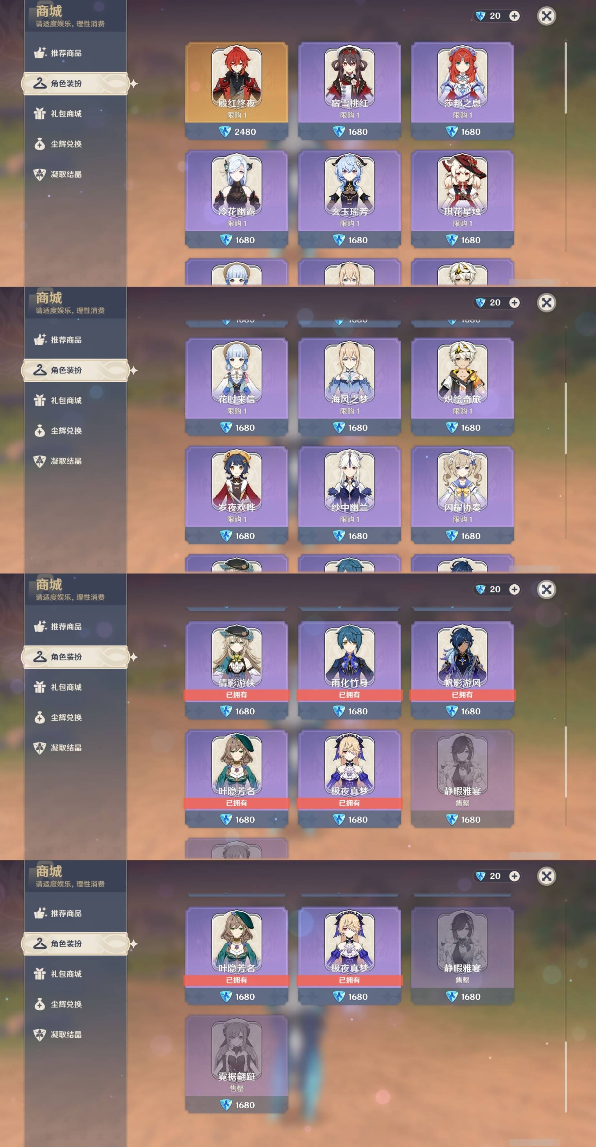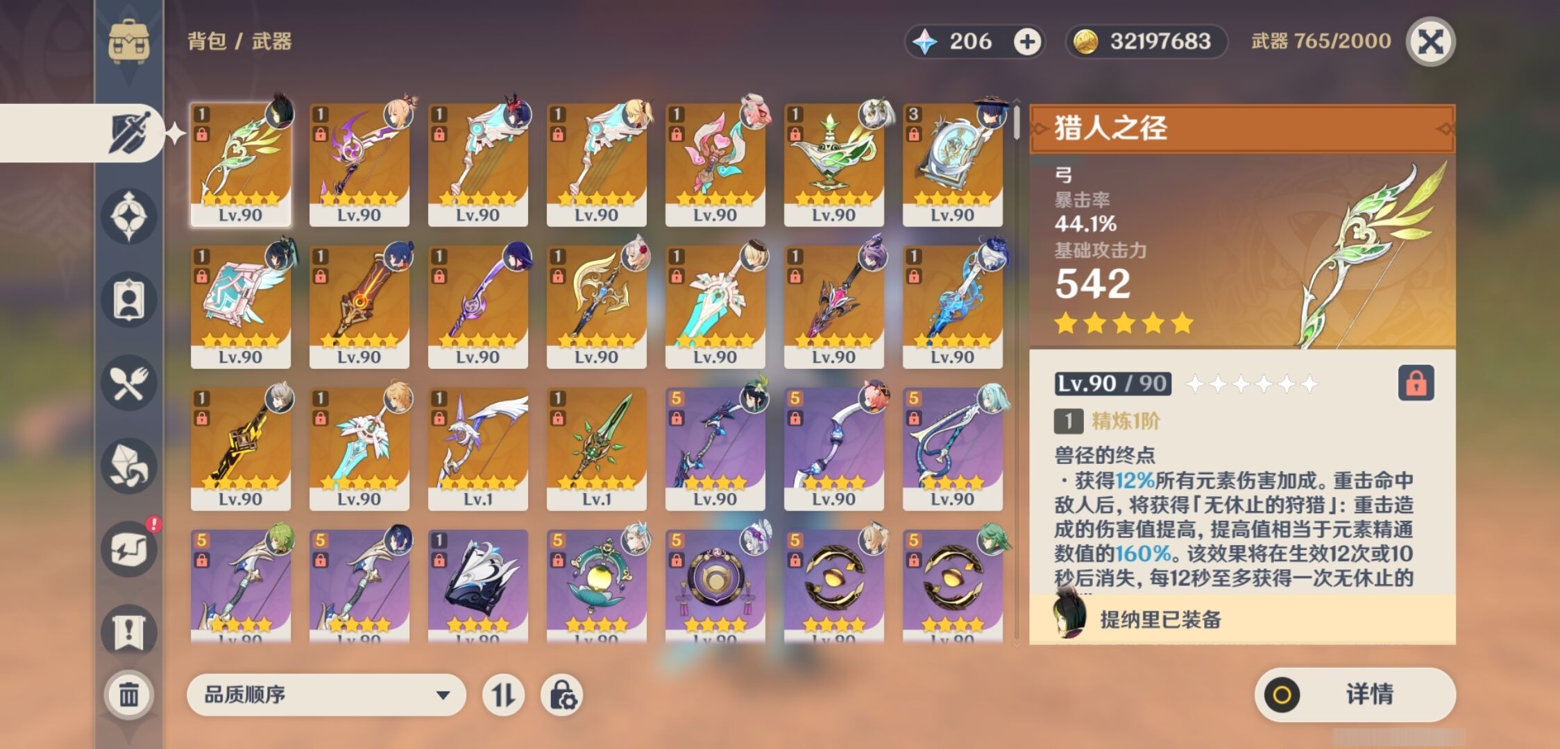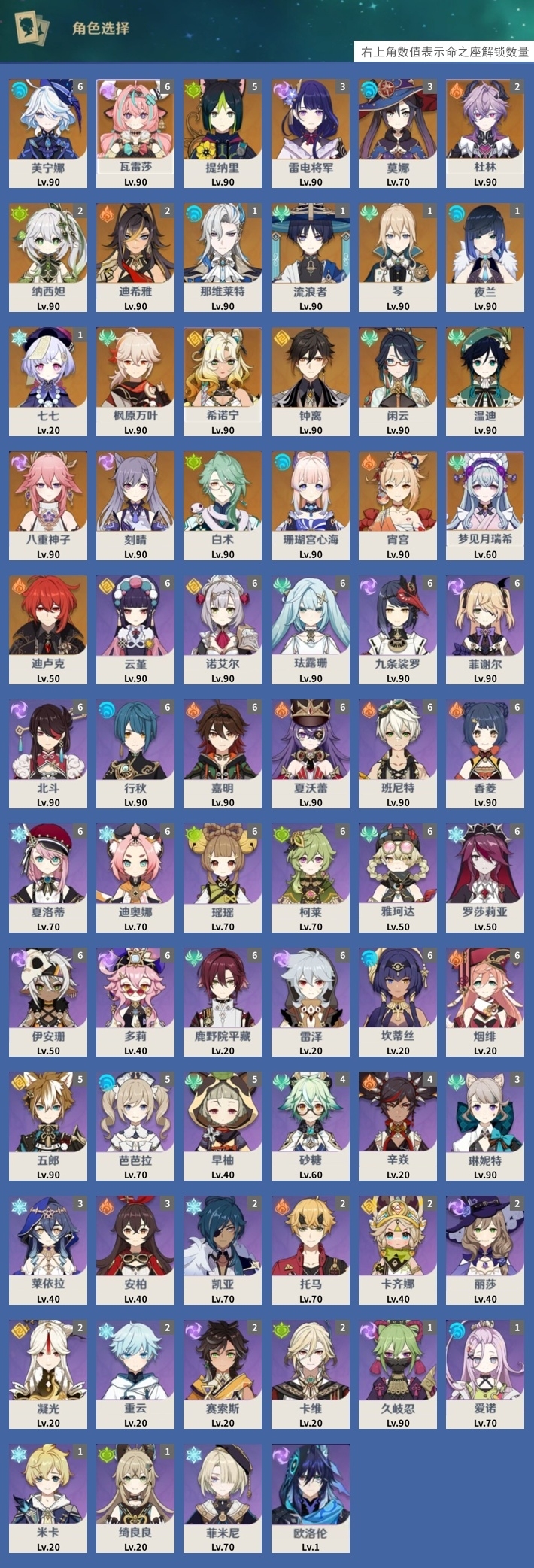 [15444527]79黄 风元素:0命枫原万叶 0命闲云 1命流浪者 0命温迪 火元素:2命杜林 0命宵宫 水元素:1命那维莱特 6命芙宁娜 1命夜兰 0命珊瑚宫心海 雷元素:6命瓦雷莎 0命八重神子 3命雷电将军 岩元素:0命希诺宁 0命钟离 草元素:0命白术 2命纳西妲 【常驻五星角色及命座】 风元素:1命琴 0命梦见月瑞希 火元素:2命迪希雅 0命迪卢克 水元素:3命莫娜 雷元素:0命刻晴 冰元素:1命七七 草元素:5命提纳里 单手剑:精1天空之刃 精1斫峰之刃 精1静水流涌之辉 精1黑蚀 双手剑:精1天空之傲 精1裁断 长柄武器:精1和璞鸢 精1薙草之稻光 精1赤沙之杖 法器:精1千夜浮梦 精3四风原典 精1天空之卷 精1溢彩心念 弓:精1天空之翼 精1天空之翼 精1猎人之径 精1阿莫斯之弓 精1飞雷之弦振 【角色皮肤】 五星角色:夜兰-静暇雅宴 刻晴-霓裾翩跹 四星角色:行秋-雨化竹身 菲谢尔-极夜真梦 凯亚-帆影游风 绮良良-倩影游侠 丽莎-叶隐芳名