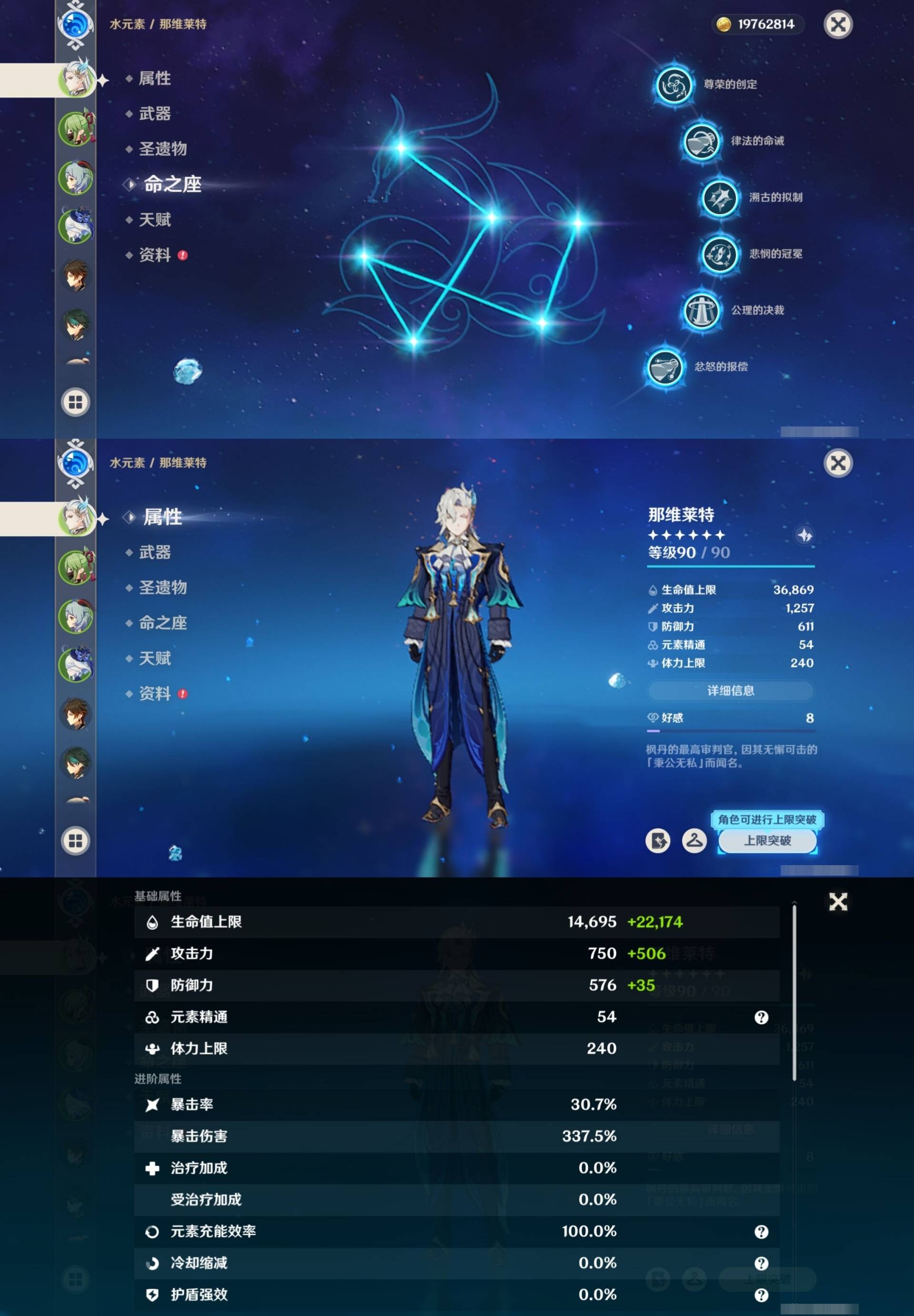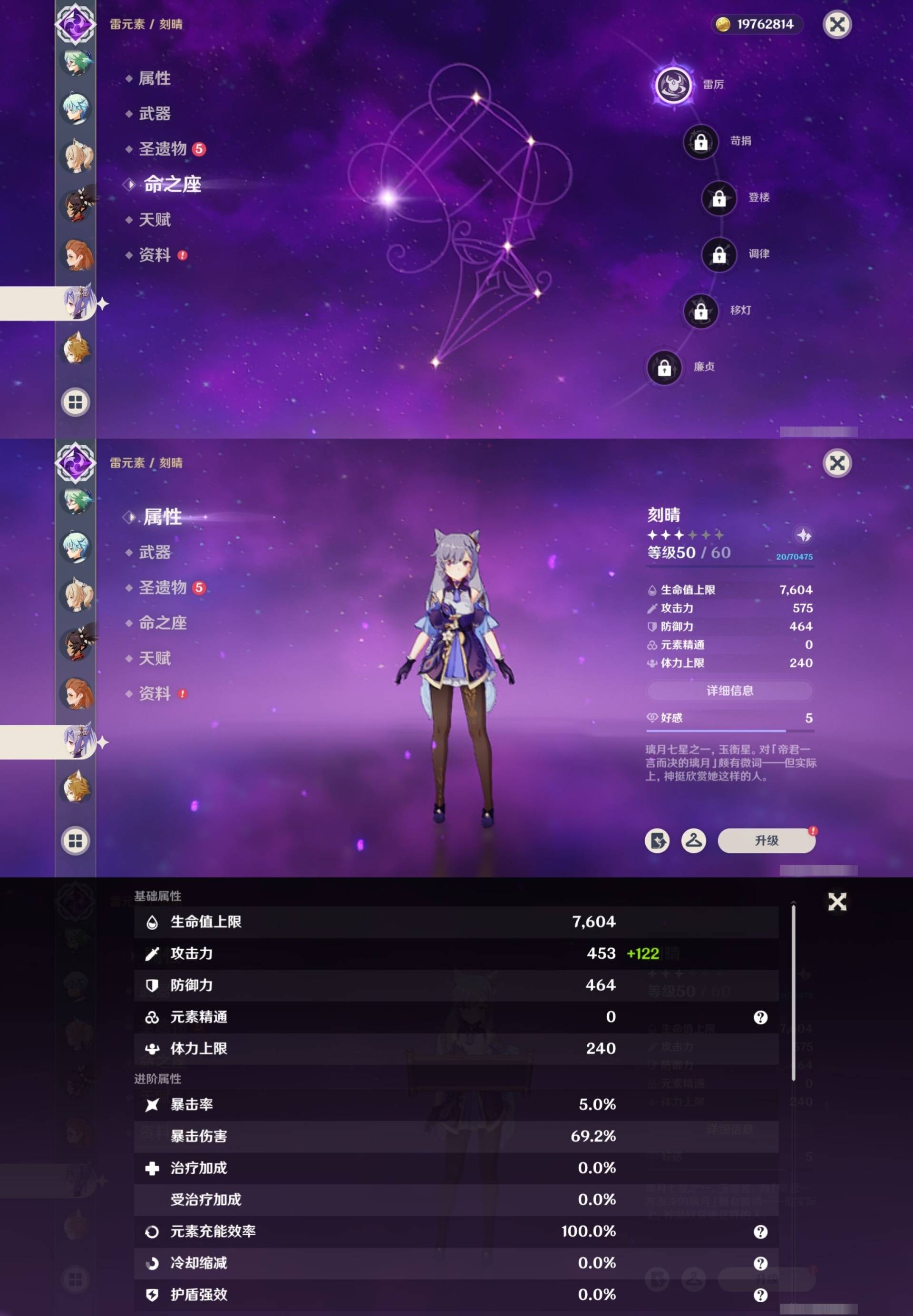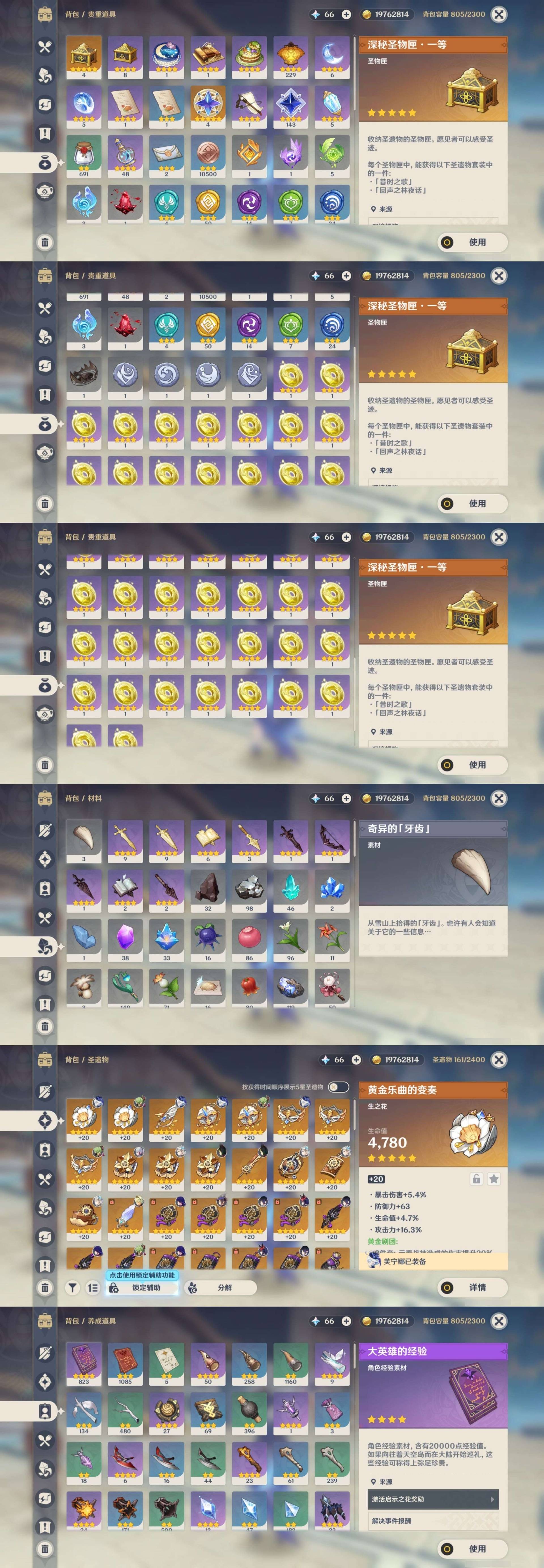 [15456586]58黄 风元素:0命魈 火元素:1命胡桃 0命宵宫 水元素:6命那维莱特 0命芙宁娜 1命夜兰 0命达达利亚 雷元素:4命雷电将军 冰元素:0命甘雨 2命神里绫华 0命申鹤 0命埃洛伊 岩元素:0命钟离 【常驻五星角色及命座】 风元素:1命琴 水元素:4命莫娜 雷元素:1命刻晴 冰元素:3命七七 草元素:1命提纳里 单手剑:精1磐岩结绿 精1雾切之回光 双手剑:精1狼的末路 长柄武器:精1和璞鸢 精1护摩之杖 精1薙草之稻光 法器:精1万世流涌大典 精1天空之卷 弓:精1冬极白星 精1冬极白星 精1终末嗟叹之诗 精1若水 精4阿莫斯之弓 【角色皮肤】 四星角色:丽莎-叶隐芳名 凝光-纱中幽兰