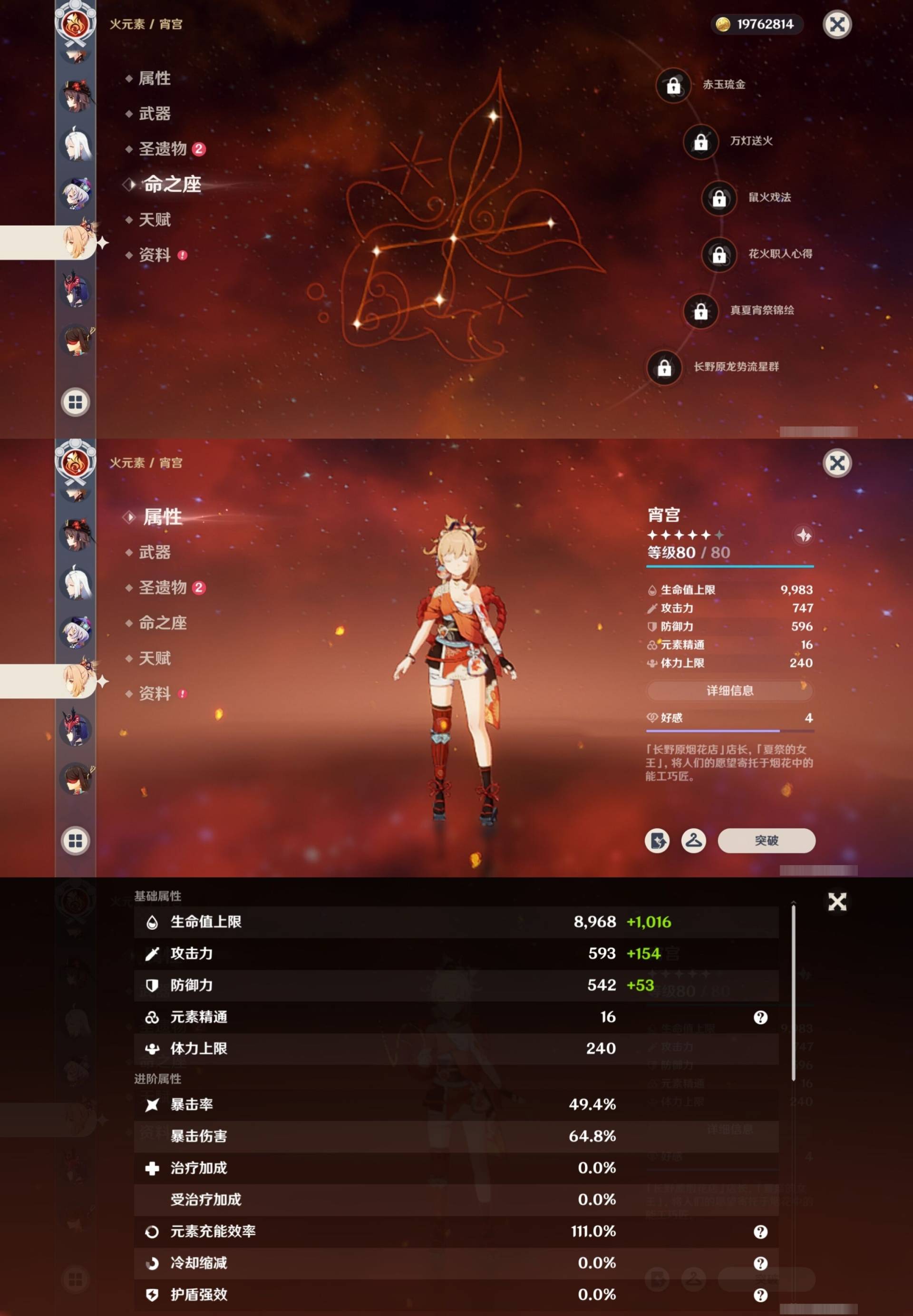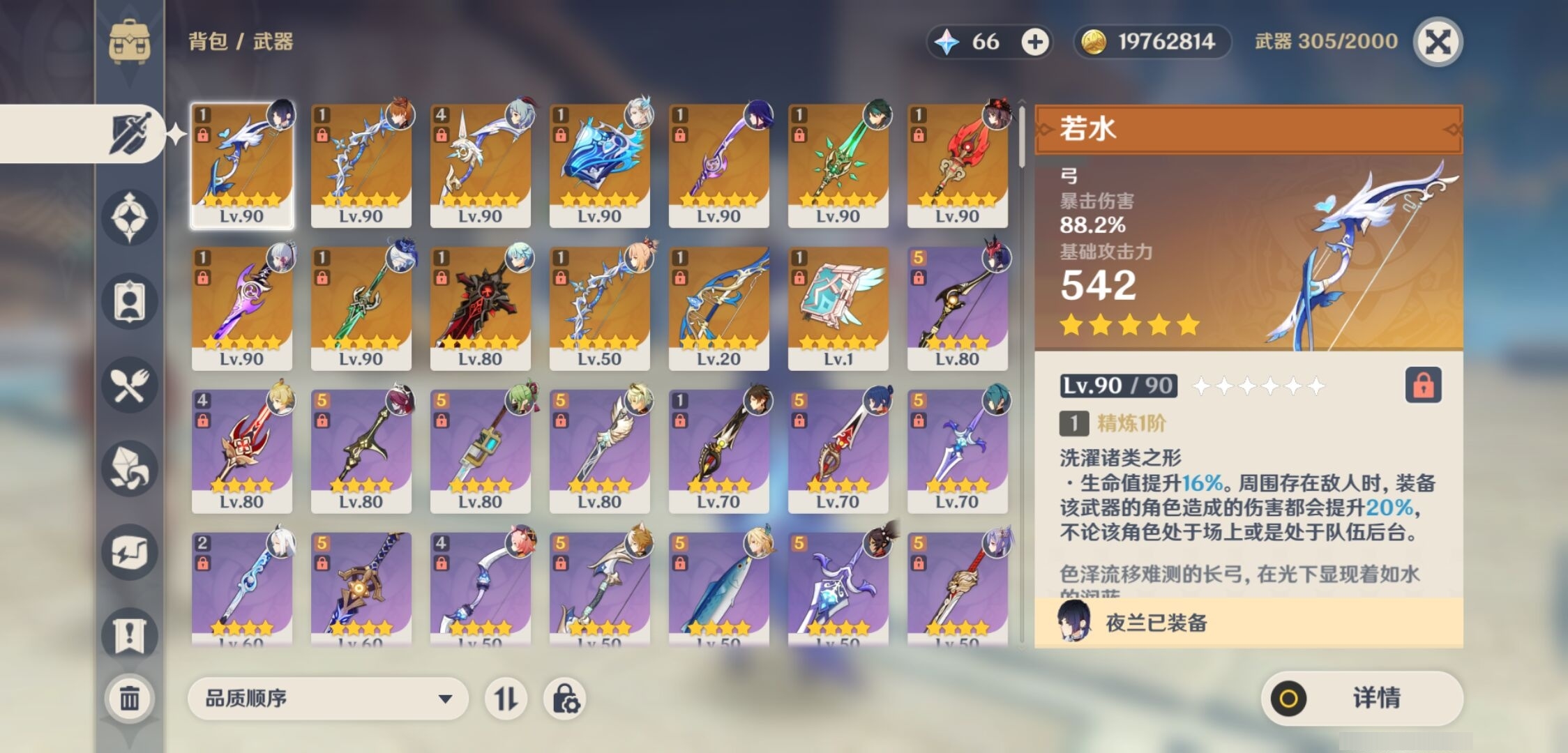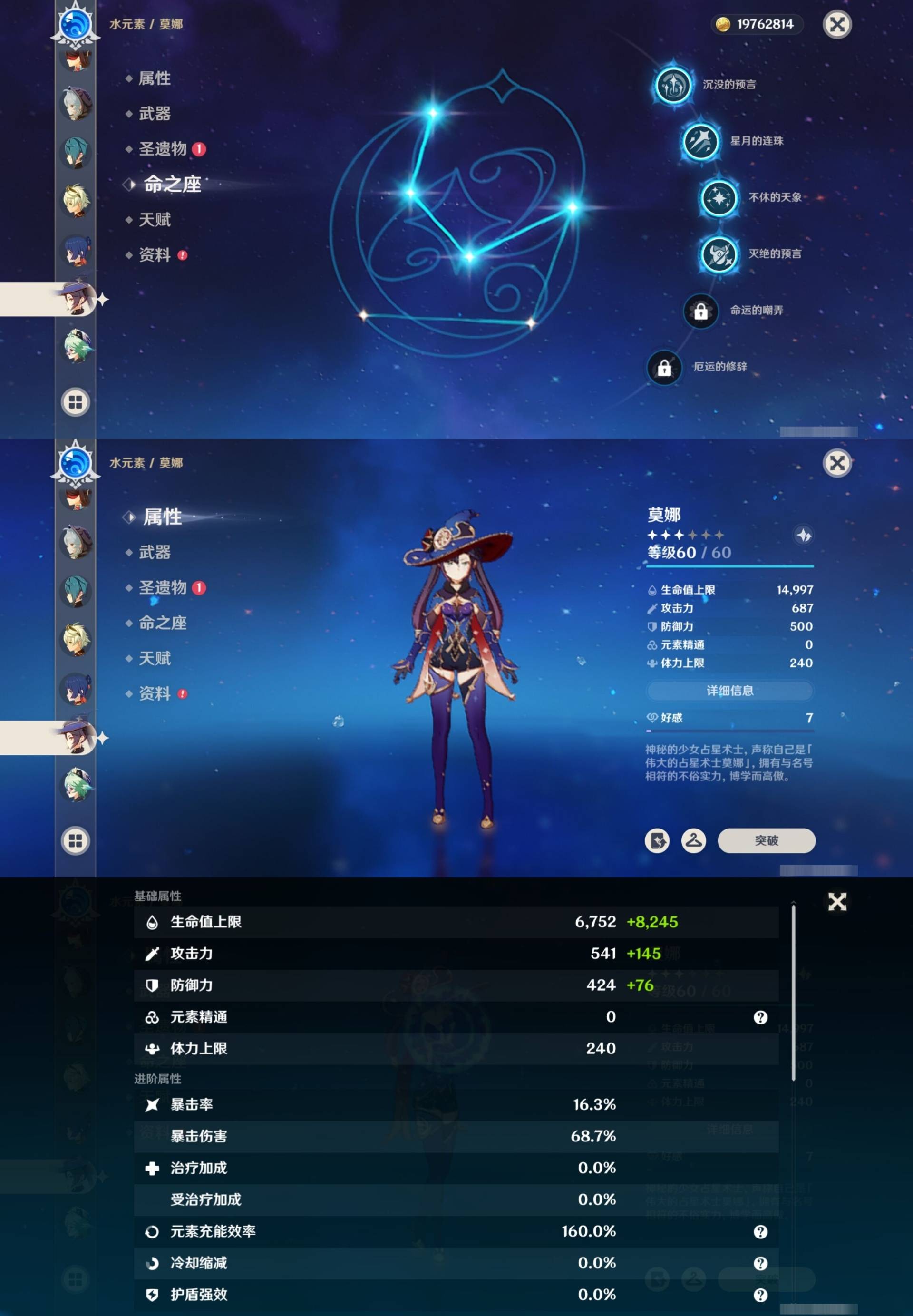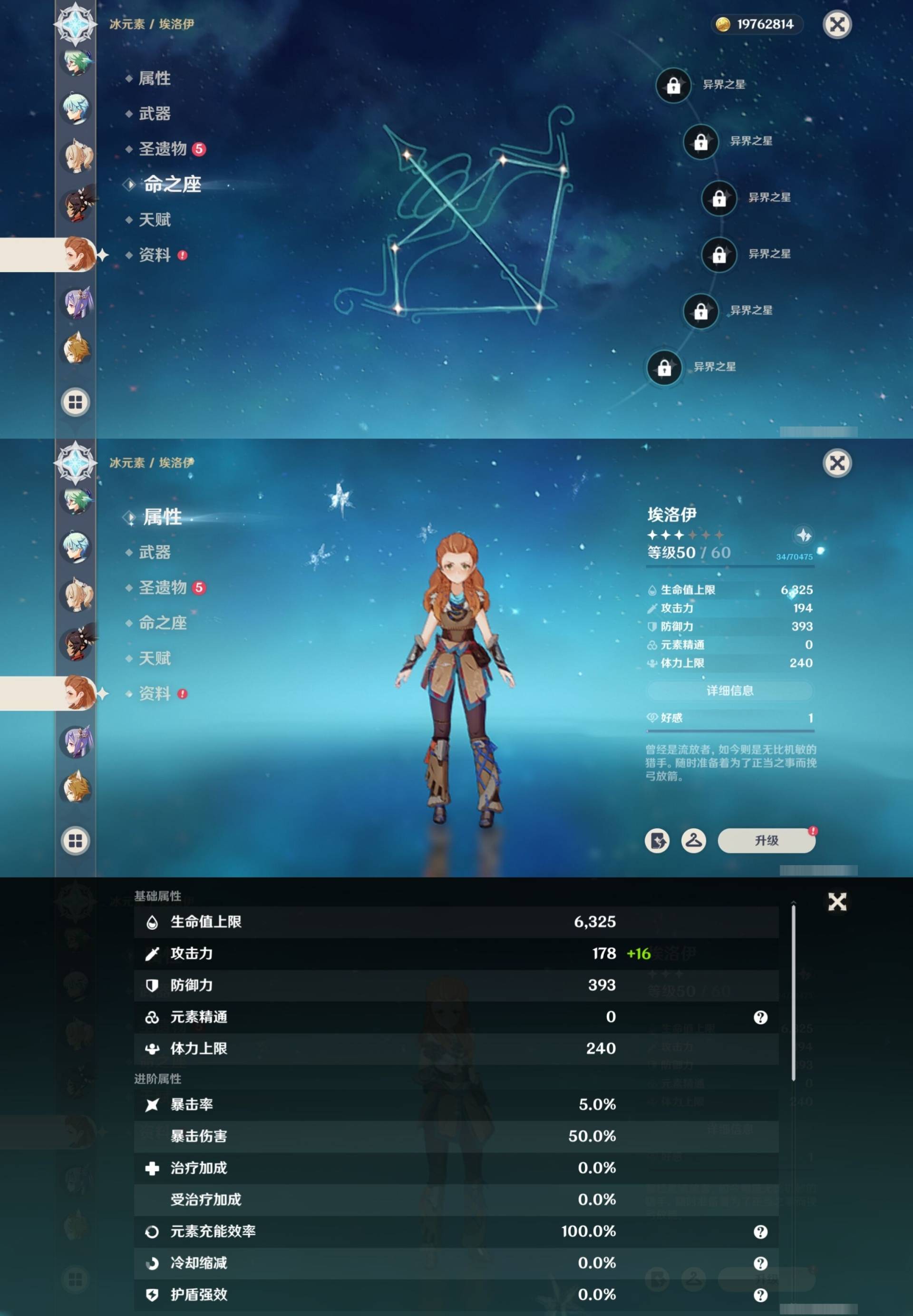 [15456586]58黄 风元素:0命魈 火元素:1命胡桃 0命宵宫 水元素:6命那维莱特 0命芙宁娜 1命夜兰 0命达达利亚 雷元素:4命雷电将军 冰元素:0命甘雨 2命神里绫华 0命申鹤 0命埃洛伊 岩元素:0命钟离 【常驻五星角色及命座】 风元素:1命琴 水元素:4命莫娜 雷元素:1命刻晴 冰元素:3命七七 草元素:1命提纳里 单手剑:精1磐岩结绿 精1雾切之回光 双手剑:精1狼的末路 长柄武器:精1和璞鸢 精1护摩之杖 精1薙草之稻光 法器:精1万世流涌大典 精1天空之卷 弓:精1冬极白星 精1冬极白星 精1终末嗟叹之诗 精1若水 精4阿莫斯之弓 【角色皮肤】 四星角色:丽莎-叶隐芳名 凝光-纱中幽兰