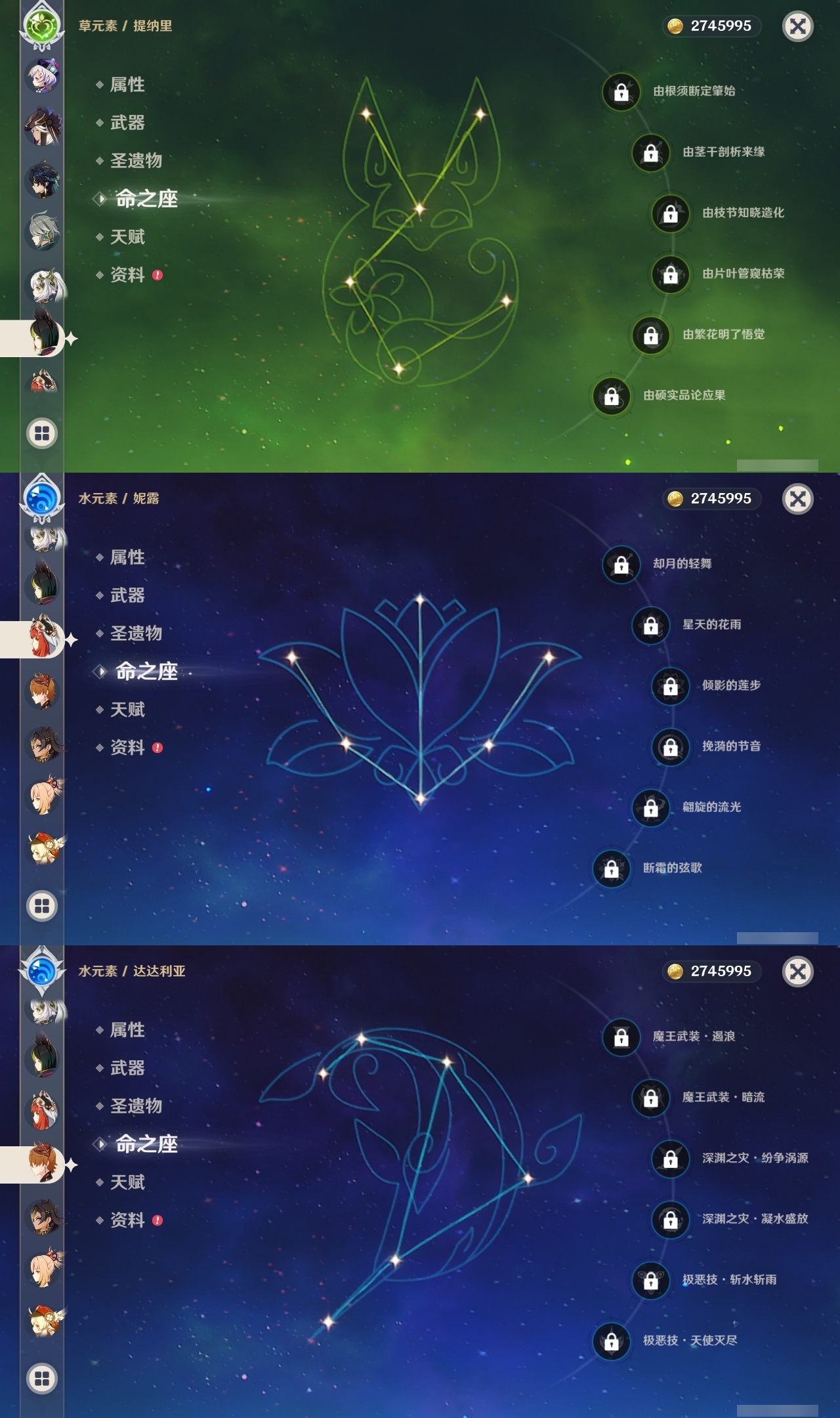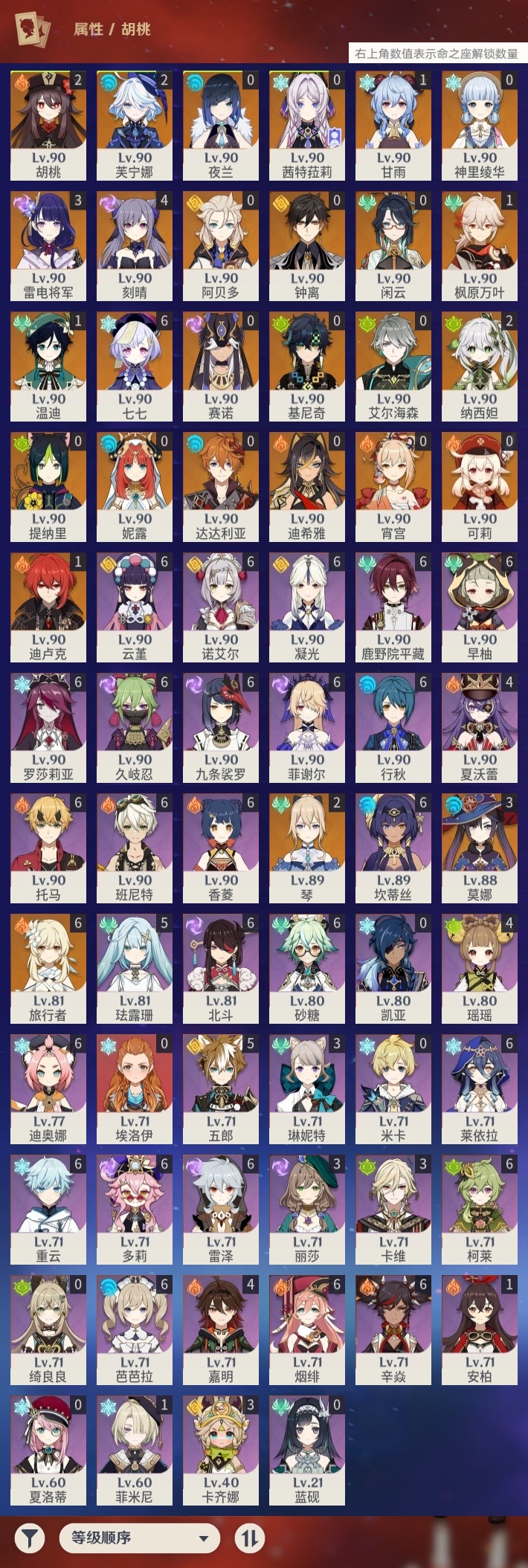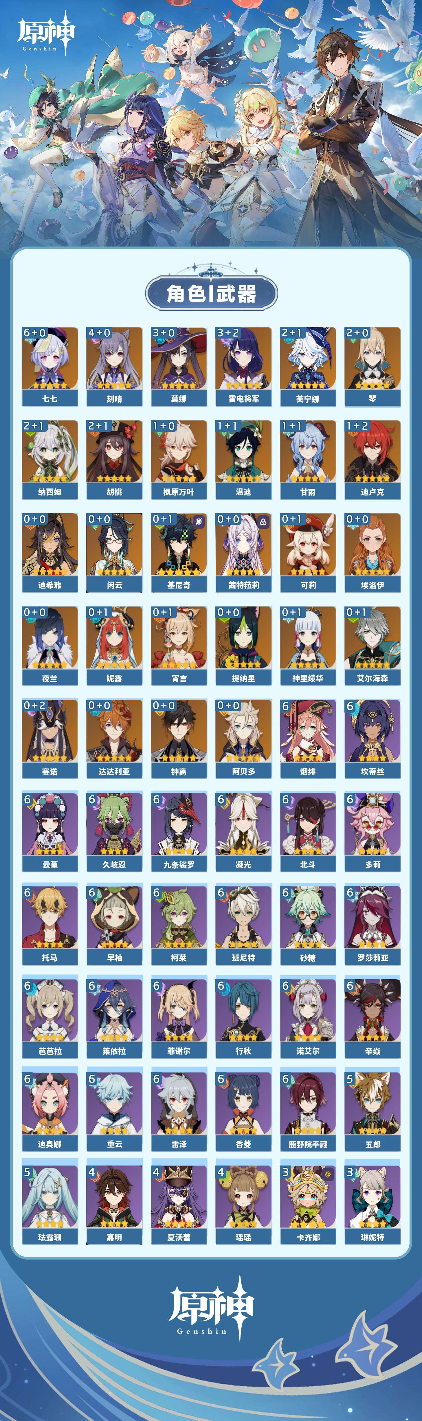【原神】【lyys10355】冒险等级:60,五星数量:50,五星角色:七七 6命刻晴 4命雷电将军 3命莫娜 3命芙宁娜 2命胡桃 2命琴 2命纳西妲 2命迪卢克 1命枫原万叶 1命甘雨 1命温迪 1命基尼奇神里绫华茜特菈莉宵宫迪希雅钟离达达利亚阿贝多夜兰提纳里闲云赛诺妮露艾尔海森可莉__五星武器:狼的末路 2精无工之剑 2精薙草之稻光 2精赤沙之杖 2精山王长牙静水流涌之辉裁叶萃光阿莫斯之弓飞雷之弦振风鹰剑和璞鸢护摩之杖磐岩结绿四风原典天空之傲天空之卷天空之刃天空之翼雾切之回光终末嗟叹之诗圣显之钥千夜浮梦__四星角色:班尼特 6命行秋 6命九条裟罗 6命香菱 6命久岐忍 6命鹿野院平藏 6命凝光 6命迪奥娜 6命砂糖 6命莱依拉 6命坎蒂丝 6命多莉 6命柯莱 6命芭芭拉 6命云堇 6命早柚 6命托马 6命烟绯 6命重云 6命辛焱 6命诺艾尔 6命罗莎莉亚 6命雷泽 6命菲谢尔 6命北斗 6命珐露珊 5命五郎 5命瑶瑶 4命夏沃蕾 4命嘉明 4命卡齐娜 3命卡维 3命琳妮特 3命菲米尼 1命埃洛伊绮良良米卡蓝砚夏洛蒂