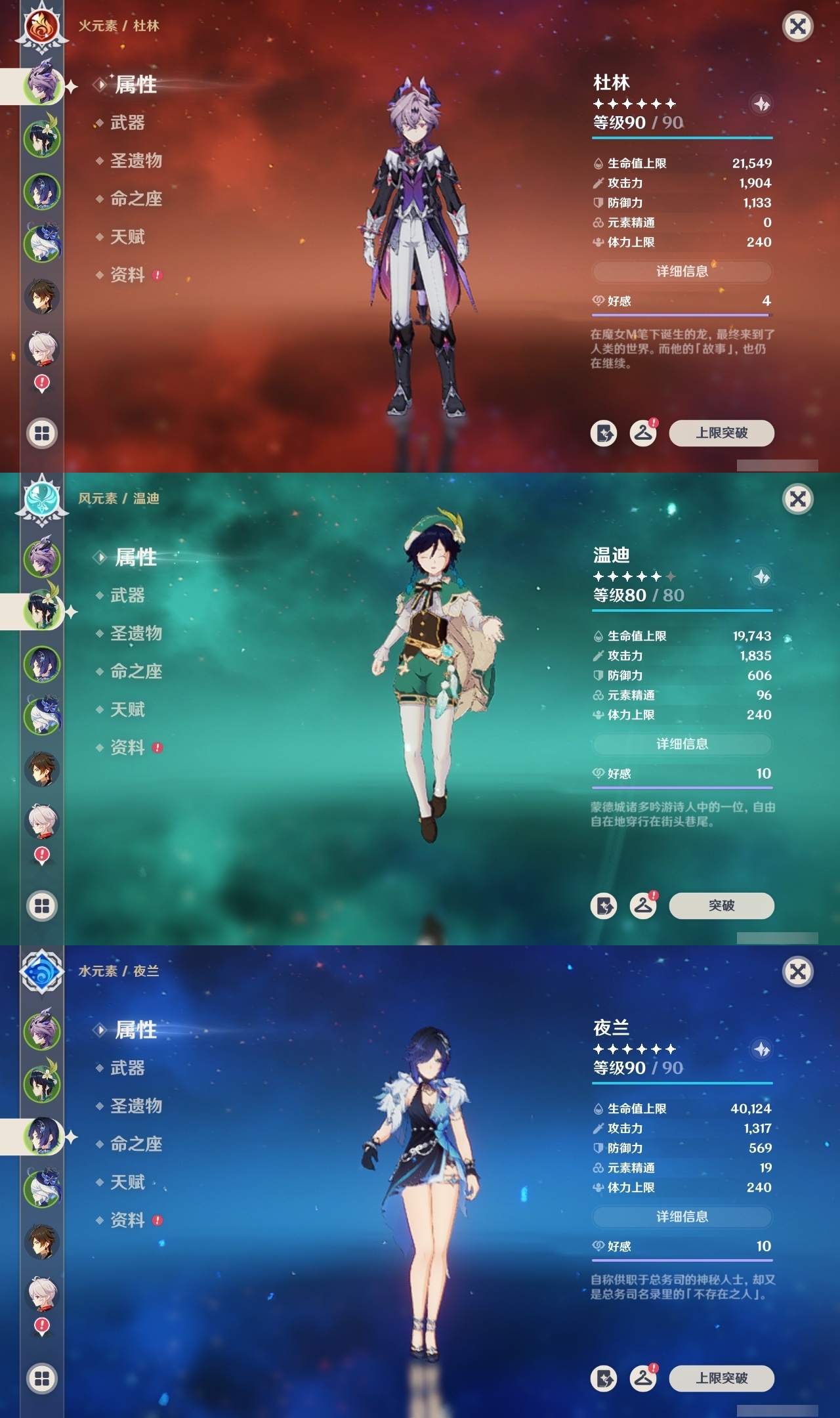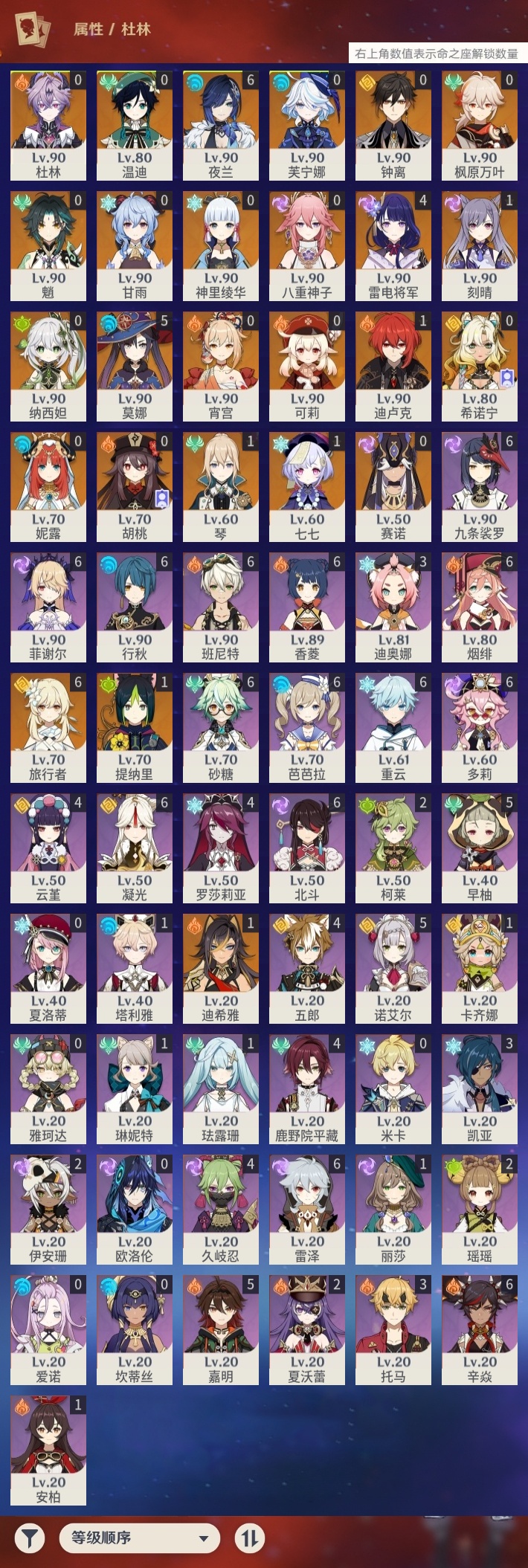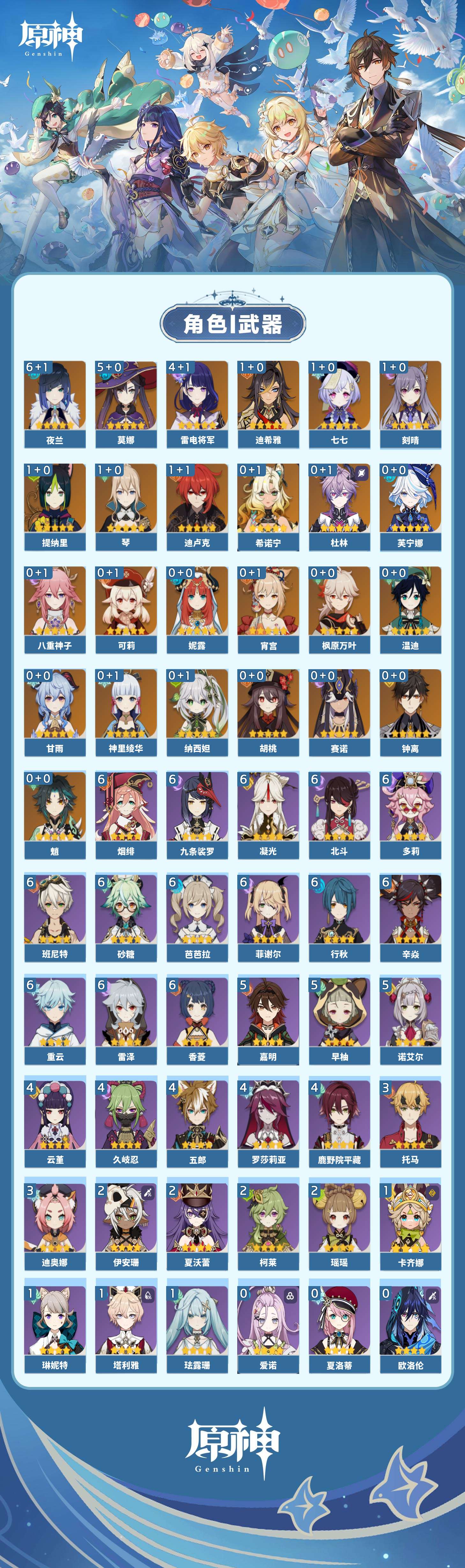 【原神】【lyys10376】冒险等级:60,五星数量:38,五星角色:夜兰 6命莫娜 5命雷电将军 4命迪希雅 1命迪卢克 1命刻晴 1命七七 1命琴 1命提纳里 1命希诺宁神里绫华温迪宵宫钟离八重神子芙宁娜赛诺妮露纳西妲杜林枫原万叶甘雨魈胡桃可莉__五星武器:岩峰巡歌溢彩心念黑蚀飞雷之弦振狼的末路四风原典天空之卷雾切之回光薙草之稻光息灾神乐之真意若水千夜浮梦__四星角色:班尼特 6命行秋 6命九条裟罗 6命香菱 6命凝光 6命砂糖 6命多莉 6命芭芭拉 6命烟绯 6命重云 6命辛焱 6命雷泽 6命菲谢尔 6命北斗 6命早柚 5命诺艾尔 5命嘉明 5命久岐忍 4命鹿野院平藏 4命云堇 4命五郎 4命罗莎莉亚 4命迪奥娜 3命托马 3命瑶瑶 2命柯莱 2命夏沃蕾 2命伊安珊 2命卡齐娜 1命珐露珊 1命琳妮特 1命塔利雅 1命米卡坎蒂丝欧洛伦夏洛蒂爱诺