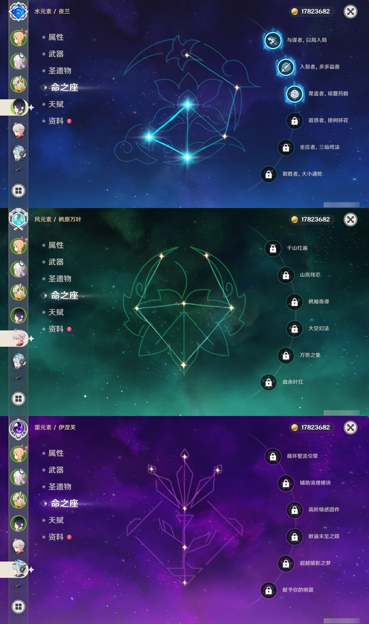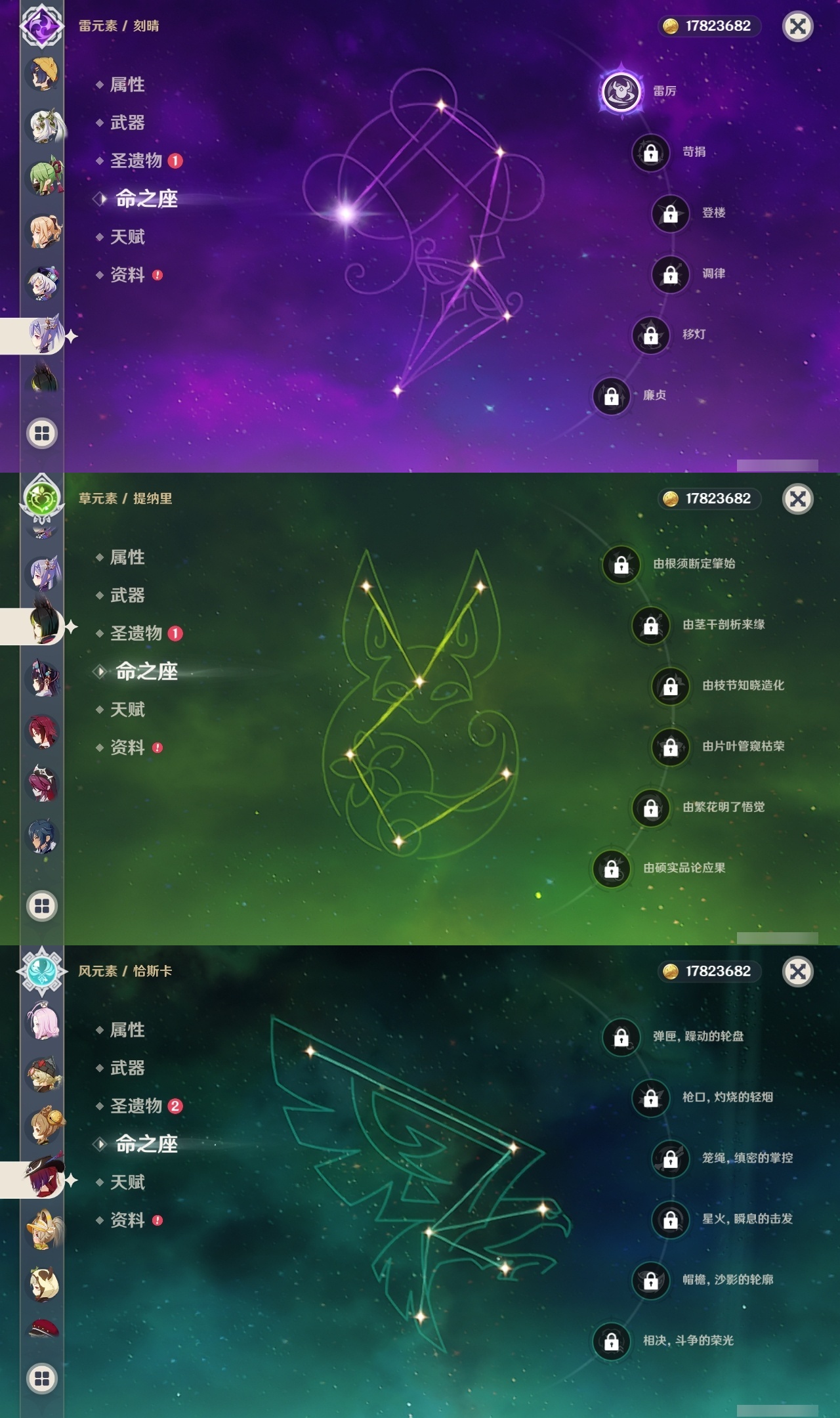 【原神】【lyys10368】冒险等级:60,五星数量:31,五星角色:宵宫 6命希诺宁 3命莫娜 3命琴 3命夜兰 3命七七 2命玛薇卡 1命迪希雅 1命刻晴 1命恰斯卡茜特菈莉提纳里伊涅芙纳西妲枫原万叶克洛琳德__五星武器:裁断 2精阿莫斯之弓 2精飞雷之弦振 2精和璞鸢 2精岩峰巡歌万世流涌大典支离轮光苍古自由之誓风鹰剑狼的末路四风原典天空之翼雾切之回光若水__四星角色:卡齐娜 6命班尼特 6命行秋 6命香菱 6命凝光 6命绮良良 6命坎蒂丝 6命多莉 6命柯莱 6命芭芭拉 6命云堇 6命五郎 6命烟绯 6命重云 6命北斗 6命夏沃蕾 6命赛索斯 6命迪奥娜 5命早柚 5命托马 5命雷泽 5命九条裟罗 4命诺艾尔 4命罗莎莉亚 4命菲谢尔 4命久岐忍 3命鹿野院平藏 3命珐露珊 3命砂糖 3命米卡 2命莱依拉 1命辛焱 1命菲米尼 1命夏洛蒂 1命奇偶·女性瑶瑶卡维欧洛伦蓝砚琳妮特嘉明伊法伊安珊爱诺