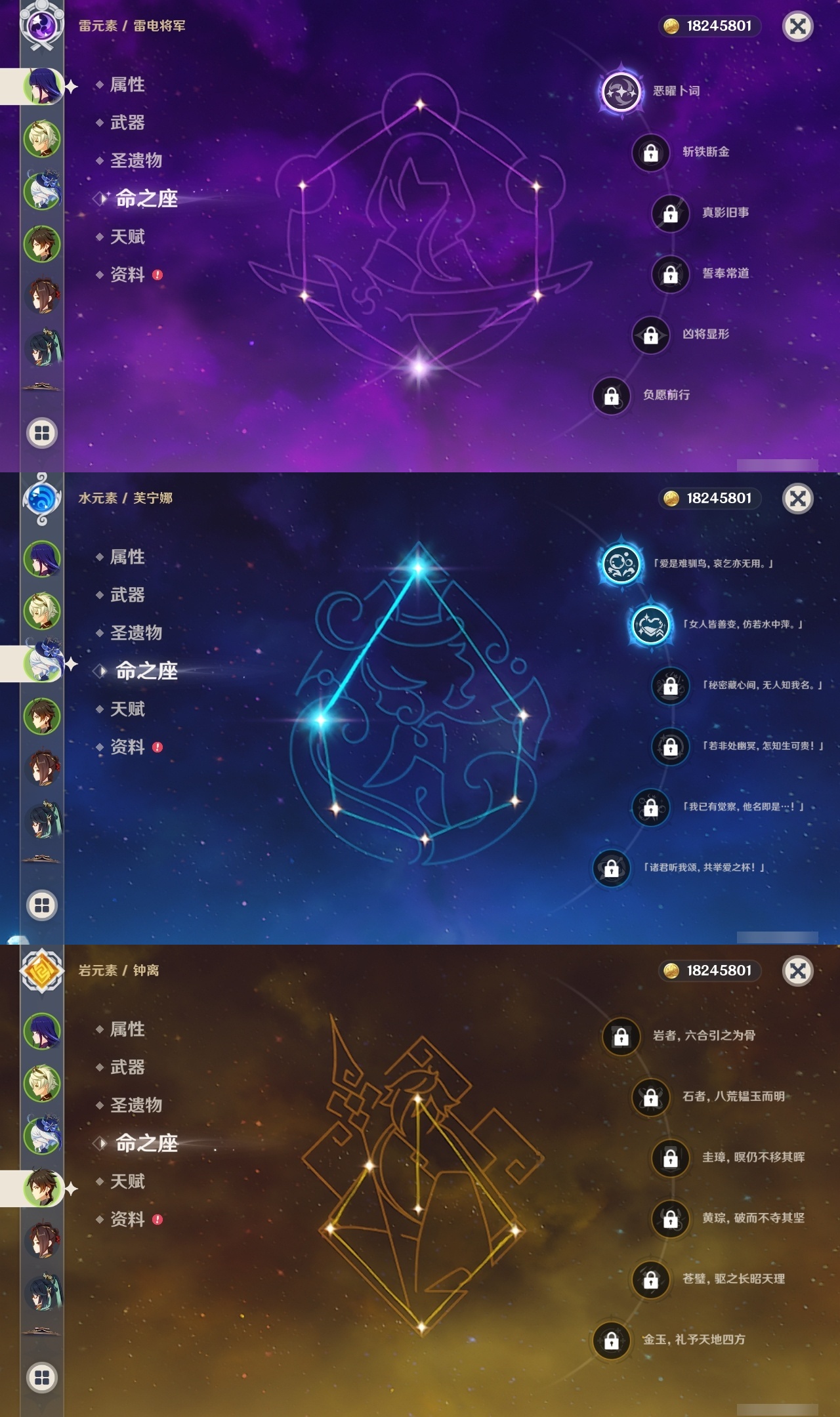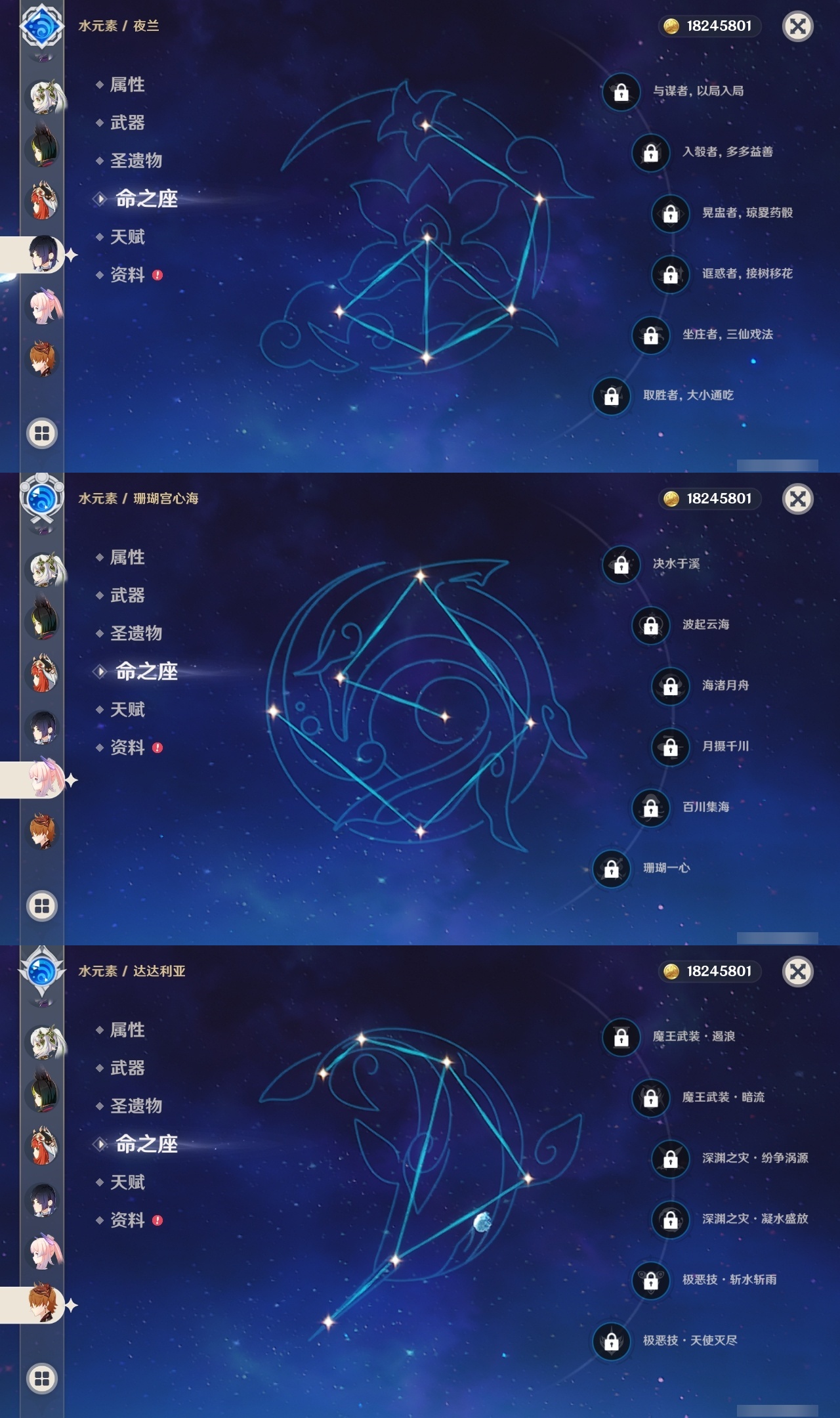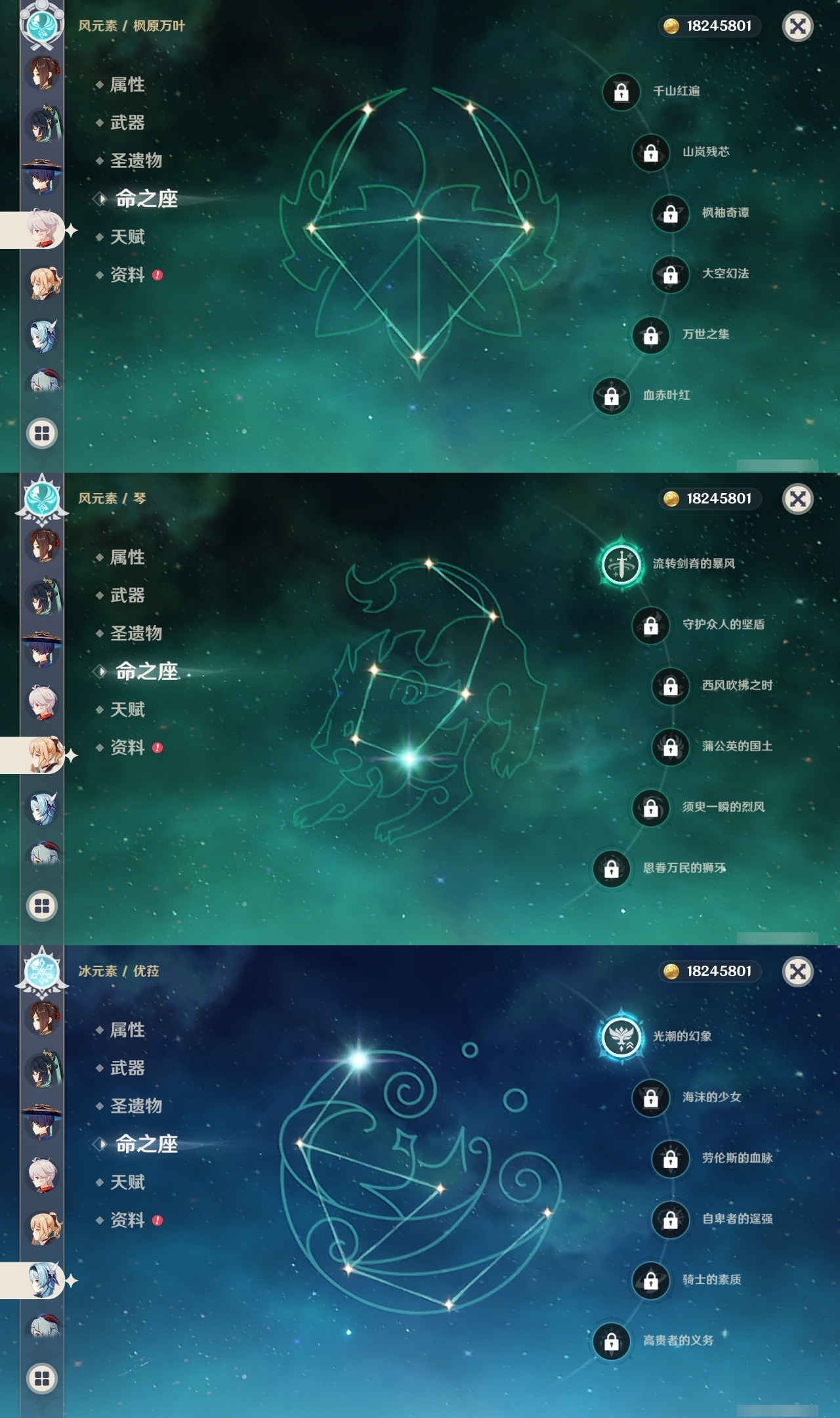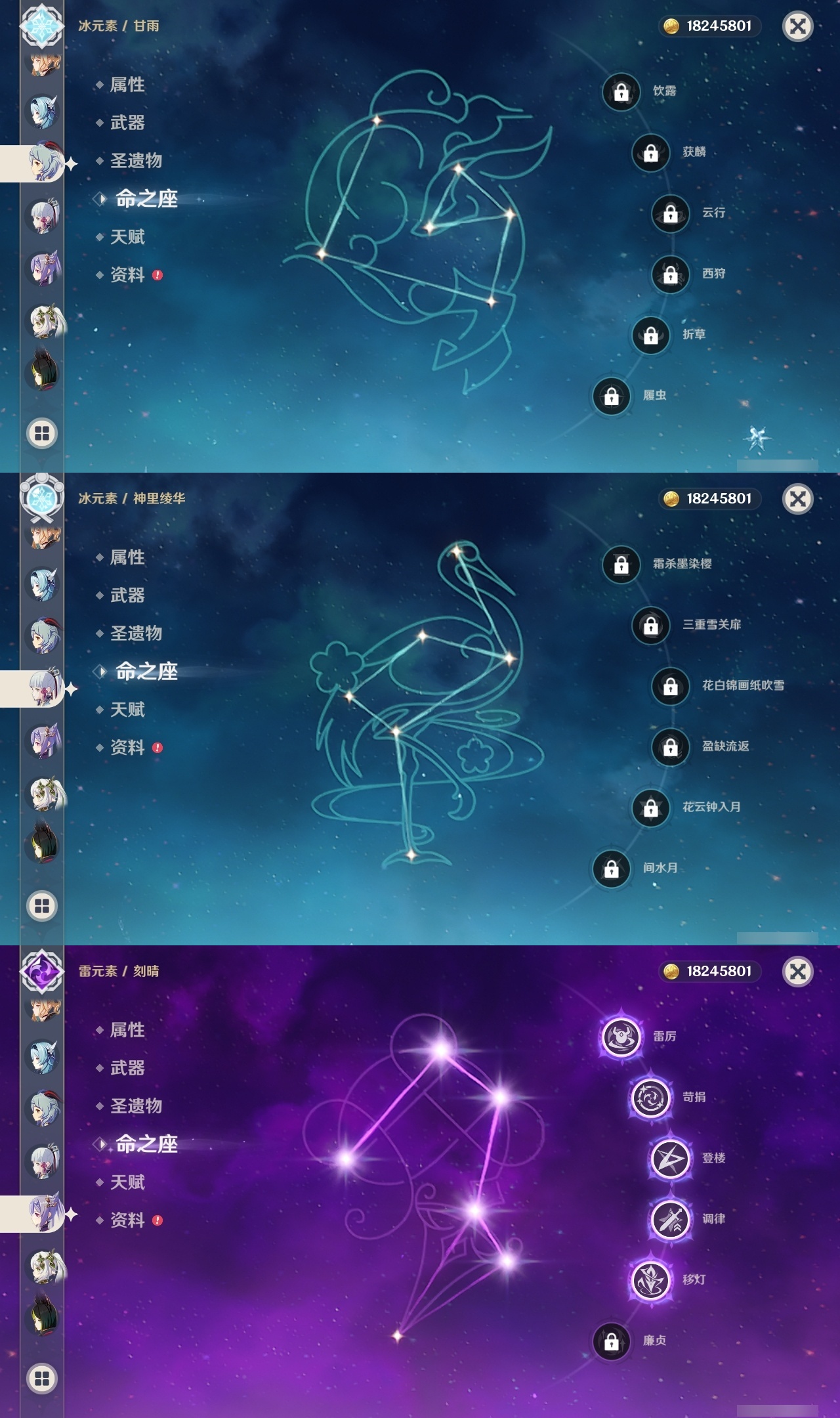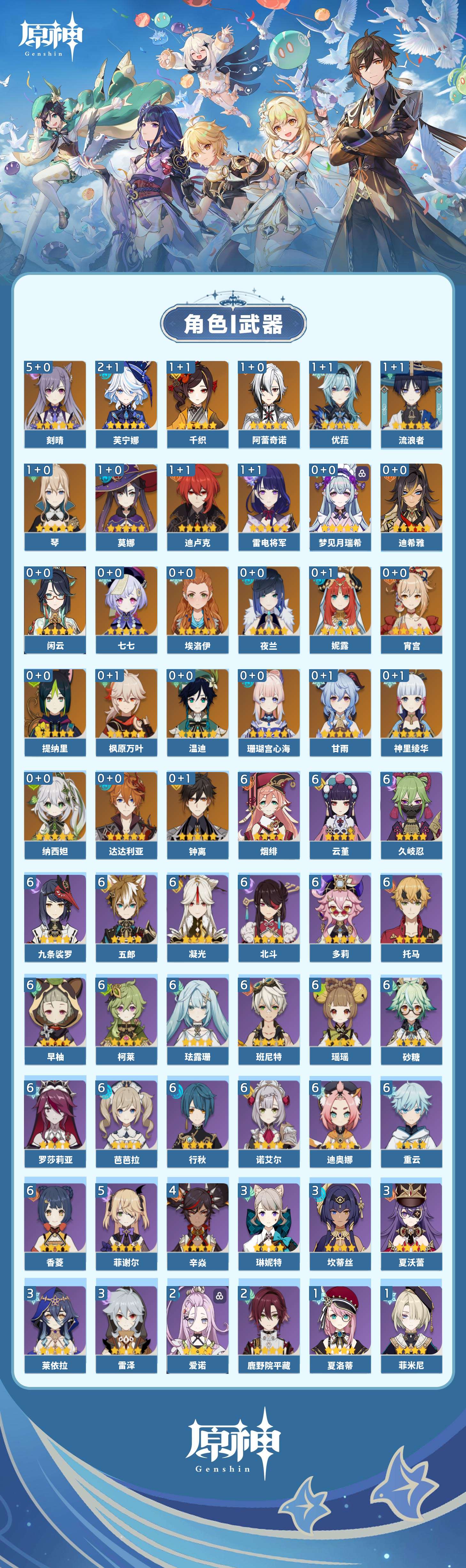 【原神】【lyys10388】冒险等级:60,五星数量:51,五星角色:刻晴 5命芙宁娜 2命千织 1命阿蕾奇诺 1命迪卢克 1命雷电将军 1命莫娜 1命琴 1命优菈 1命流浪者 1命七七珊瑚宫心海神里绫华温迪宵宫迪希雅钟离达达利亚梦见月瑞希夜兰提纳里闲云妮露纳西妲枫原万叶甘雨__五星武器:碧落之珑最初的大魔术金流监督静水流涌之辉有乐御簾切图莱杜拉的回忆阿莫斯之弓苍古自由之誓风鹰剑狼的末路松籁响起之时天空之傲天空之卷天空之翼无工之剑雾切之回光薙草之稻光息灾神乐之真意贯虹之槊赤沙之杖圣显之钥赦罪__四星角色:班尼特 6命行秋 6命九条裟罗 6命香菱 6命久岐忍 6命珐露珊 6命凝光 6命迪奥娜 6命砂糖 6命瑶瑶 6命多莉 6命柯莱 6命芭芭拉 6命云堇 6命早柚 6命托马 6命五郎 6命烟绯 6命重云 6命诺艾尔 6命罗莎莉亚 6命北斗 6命菲谢尔 5命辛焱 4命莱依拉 3命坎蒂丝 3命雷泽 3命琳妮特 3命夏沃蕾 3命鹿野院平藏 2命爱诺 2命绮良良 1命蓝砚 1命菲米尼 1命夏洛蒂 1命嘉明 1命埃洛伊奇偶·女性卡齐娜米卡伊法塔利雅赛索斯