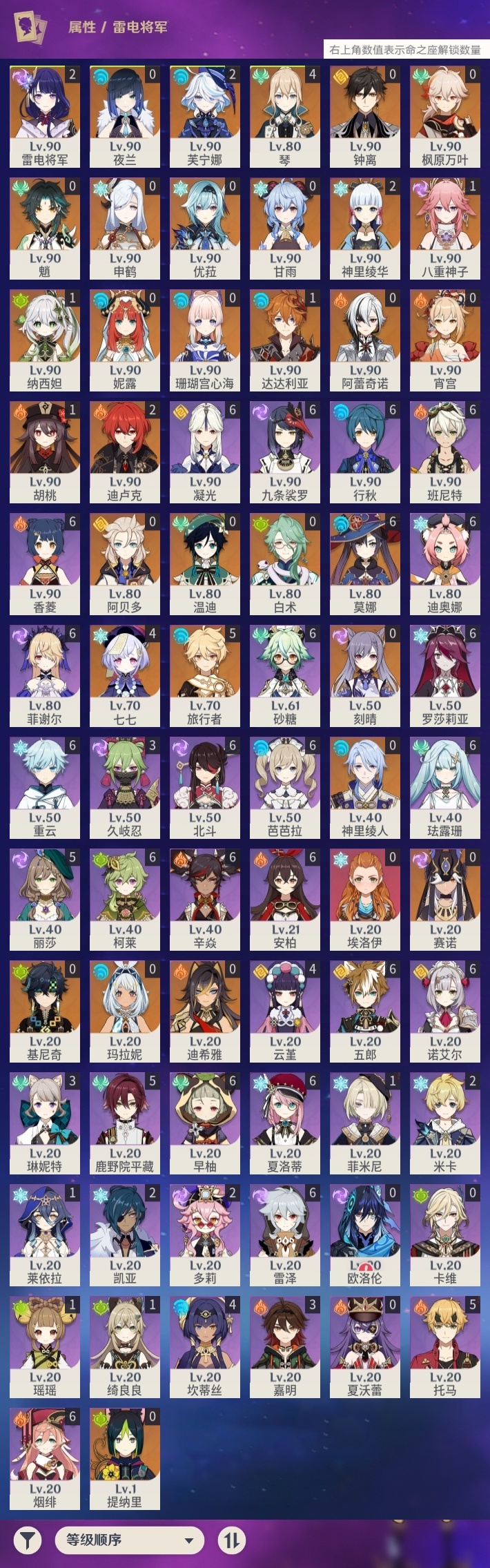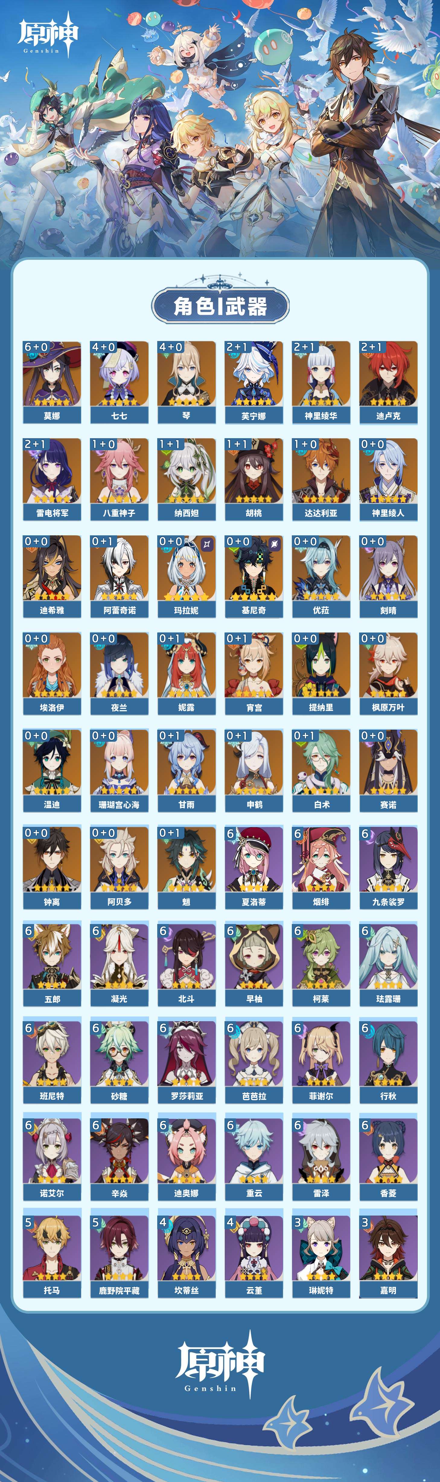 【原神】【lyys10493】冒险等级:60,五星数量:50,五星角色:莫娜 6命七七 4命琴 4命芙宁娜 2命迪卢克 2命雷电将军 2命神里绫华 2命达达利亚 1命胡桃 1命八重神子 1命纳西妲 1命玛拉妮基尼奇珊瑚宫心海白术温迪宵宫优菈迪希雅钟离申鹤神里绫人阿贝多夜兰提纳里赛诺阿蕾奇诺妮露枫原万叶甘雨魈刻晴__五星武器:碧落之珑静水流涌之辉赤月之形阿莫斯之弓飞雷之弦振和璞鸢护摩之杖狼的末路磐岩结绿天空之傲天空之脊天空之翼雾切之回光薙草之稻光息灾圣显之钥千夜浮梦__四星角色:班尼特 6命行秋 6命九条裟罗 6命香菱 6命珐露珊 6命凝光 6命迪奥娜 6命砂糖 6命柯莱 6命芭芭拉 6命早柚 6命五郎 6命烟绯 6命重云 6命辛焱 6命诺艾尔 6命罗莎莉亚 6命雷泽 6命菲谢尔 6命北斗 6命夏洛蒂 6命鹿野院平藏 5命托马 5命坎蒂丝 4命云堇 4命久岐忍 3命琳妮特 3命嘉明 3命米卡 2命多莉 2命绮良良 1命瑶瑶 1命莱依拉 1命菲米尼 1命埃洛伊卡维欧洛伦夏沃蕾【原神】【lyys10493】冒险等级:60,五星数量:50,五星角色:莫娜 6命七七 4命琴 4命芙宁娜 2命迪卢克 2命雷电将军 2命神里绫华 2命达达利亚 1命胡桃 1命八重神子 1命纳西妲 1命玛拉妮基尼奇珊瑚宫心海白术温迪宵宫优菈迪希雅钟离申鹤神里绫人阿贝多夜兰提纳里赛诺阿蕾奇诺妮露枫原万叶甘雨魈刻晴__五星武器:碧落之珑静水流涌之辉赤月之形阿莫斯之弓飞雷之弦振和璞鸢护摩之杖狼的末路磐岩结绿天空之傲天空之脊天空之翼雾切之回光薙草之稻光息灾圣显之钥千夜浮梦__四星角色:班尼特 6命行秋 6命九条裟罗 6命香菱 6命珐露珊 6命凝光 6命迪奥娜 6命砂糖 6命柯莱 6命芭芭拉 6命早柚 6命五郎 6命烟绯 6命重云 6命辛焱 6命诺艾尔 6命罗莎莉亚 6命雷泽 6命菲谢尔 6命北斗 6命夏洛蒂 6命鹿野院平藏 5命托马 5命坎蒂丝 4命云堇 4命久岐忍 3命琳妮特 3命嘉明 3命米卡 2命多莉 2命绮良良 1命瑶瑶 1命莱依拉 1命菲米尼 1命埃洛伊卡维欧洛伦夏沃蕾