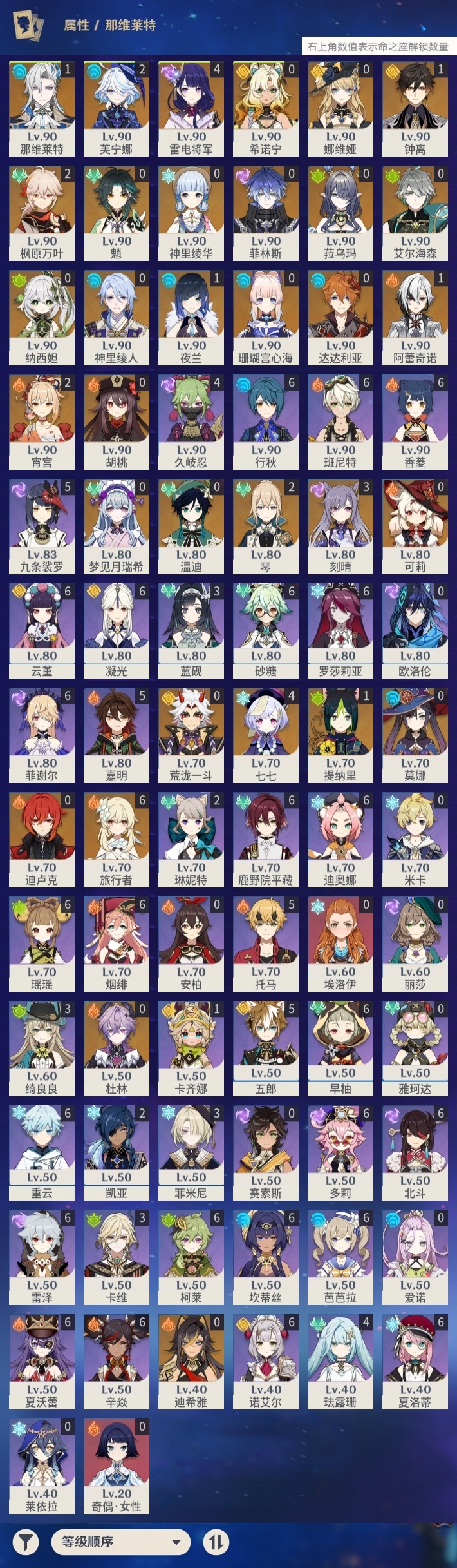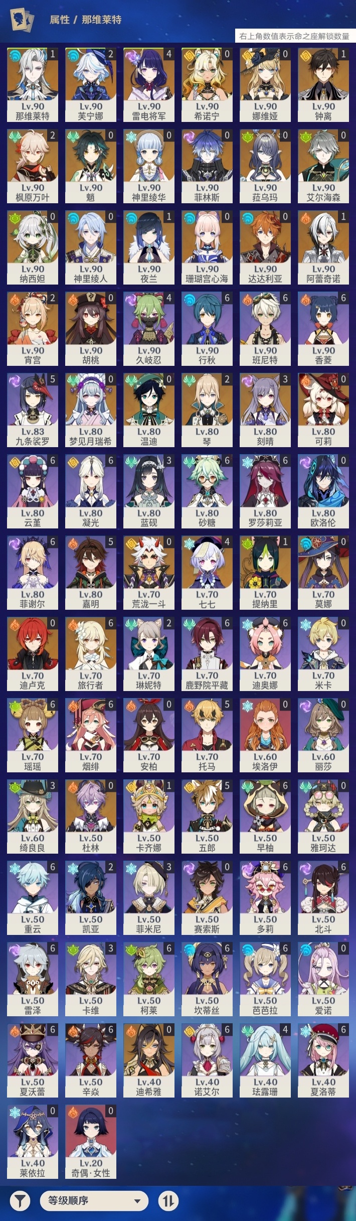 【原神】【lyys10484】冒险等级:60,五星数量:51,五星角色:雷电将军 4命七七 4命刻晴 3命芙宁娜 2命枫原万叶 2命琴 2命宵宫 2命那维莱特 1命阿蕾奇诺 1命钟离 1命夜兰 1命提纳里 1命莫娜珊瑚宫心海希诺宁神里绫华温迪迪希雅荒泷一斗达达利亚梦见月瑞希神里绫人娜维娅纳西妲菈乌玛菲林斯艾尔海森杜林迪卢克魈胡桃可莉__五星武器:碧落之珑万世流涌大典静水流涌之辉不灭月华苍古自由之誓和璞鸢护摩之杖狼的末路四风原典天空之卷天空之刃天空之翼雾切之回光薙草之稻光冬极白星息灾波乱月白经津__四星角色:班尼特 6命行秋 6命香菱 6命鹿野院平藏 6命凝光 6命迪奥娜 6命砂糖 6命瑶瑶 6命坎蒂丝 6命多莉 6命柯莱 6命芭芭拉 6命云堇 6命早柚 6命烟绯 6命重云 6命辛焱 6命诺艾尔 6命罗莎莉亚 6命雷泽 6命菲谢尔 6命北斗 6命夏洛蒂 6命夏沃蕾 6命九条裟罗 5命托马 5命五郎 5命嘉明 5命久岐忍 4命珐露珊 4命绮良良 3命卡维 3命蓝砚 3命菲米尼 3命琳妮特 2命卡齐娜 1命埃洛伊奇偶·女性莱依拉米卡欧洛伦爱诺赛索斯【原神】【lyys10484】冒险等级:60,五星数量:51,五星角色:雷电将军 4命七七 4命刻晴 3命芙宁娜 2命枫原万叶 2命琴 2命宵宫 2命那维莱特 1命阿蕾奇诺 1命钟离 1命夜兰 1命提纳里 1命莫娜珊瑚宫心海希诺宁神里绫华温迪迪希雅荒泷一斗达达利亚梦见月瑞希神里绫人娜维娅纳西妲菈乌玛菲林斯艾尔海森杜林迪卢克魈胡桃可莉__五星武器:碧落之珑万世流涌大典静水流涌之辉不灭月华苍古自由之誓和璞鸢护摩之杖狼的末路四风原典天空之卷天空之刃天空之翼雾切之回光薙草之稻光冬极白星息灾波乱月白经津__四星角色:班尼特 6命行秋 6命香菱 6命鹿野院平藏 6命凝光 6命迪奥娜 6命砂糖 6命瑶瑶 6命坎蒂丝 6命多莉 6命柯莱 6命芭芭拉 6命云堇 6命早柚 6命烟绯 6命重云 6命辛焱 6命诺艾尔 6命罗莎莉亚 6命雷泽 6命菲谢尔 6命北斗 6命夏洛蒂 6命夏沃蕾 6命九条裟罗 5命托马 5命五郎 5命嘉明 5命久岐忍 4命珐露珊 4命绮良良 3命卡维 3命蓝砚 3命菲米尼 3命琳妮特 2命卡齐娜 1命埃洛伊奇偶·女性莱依拉米卡欧洛伦爱诺赛索斯