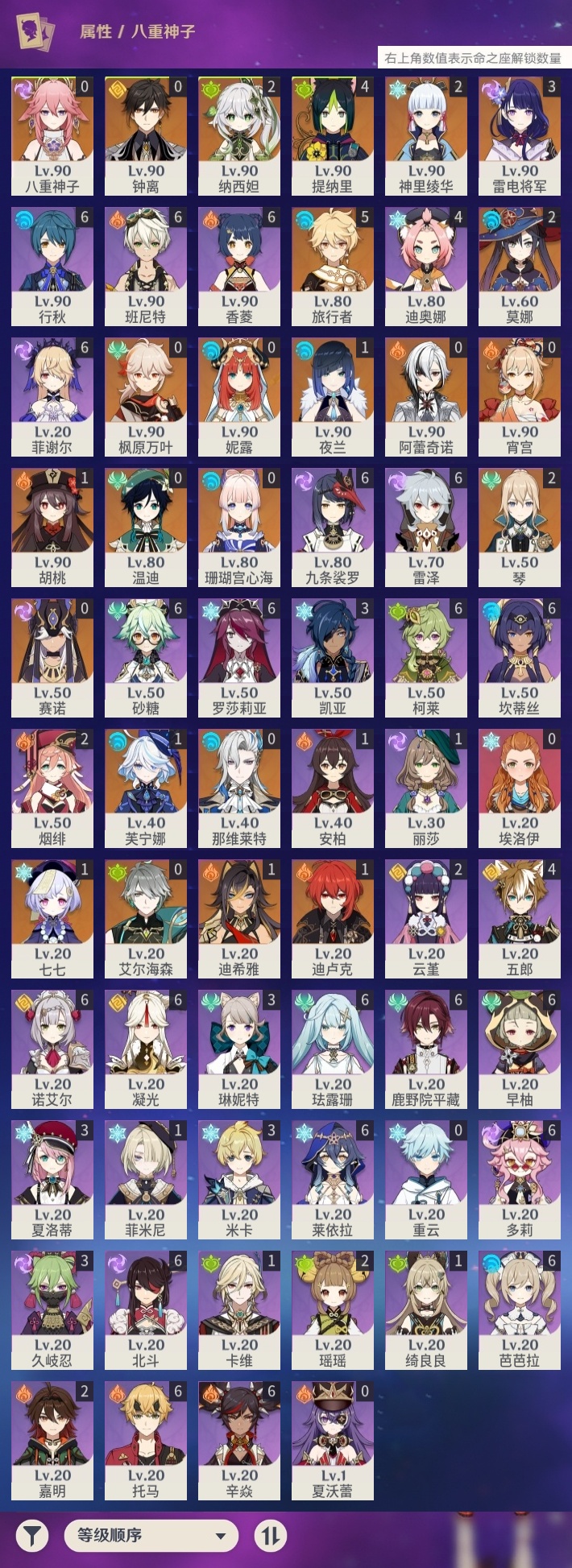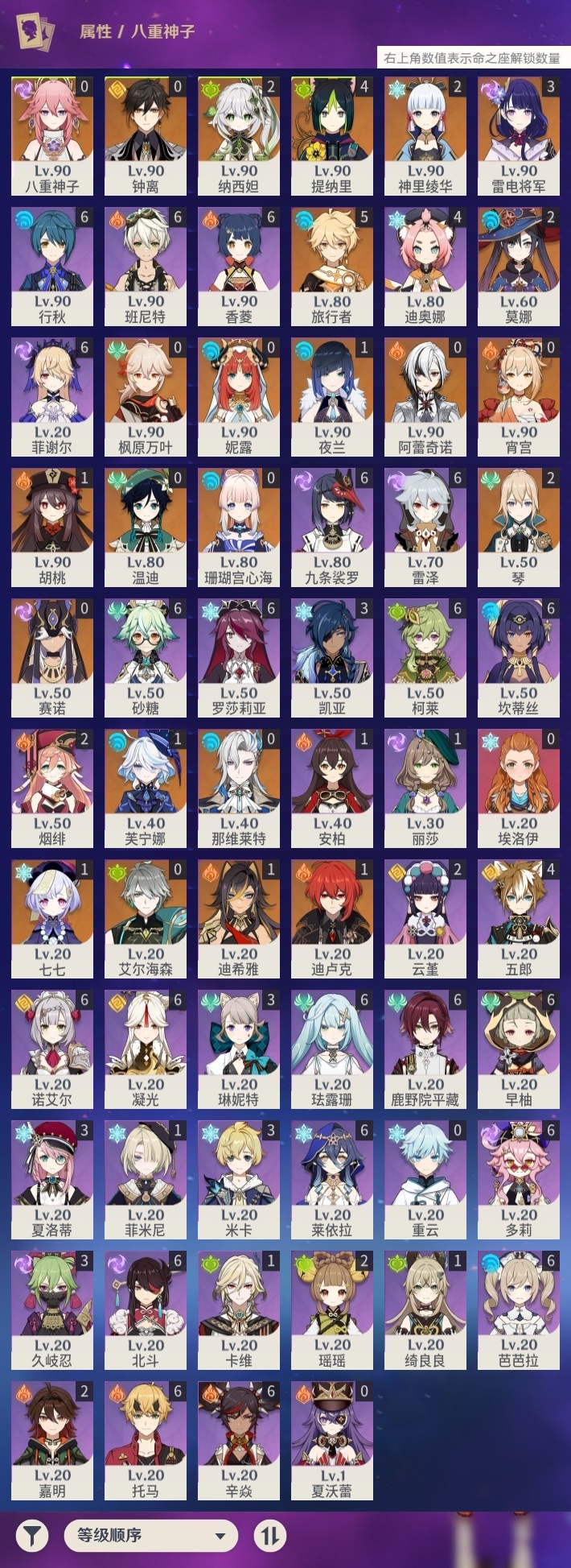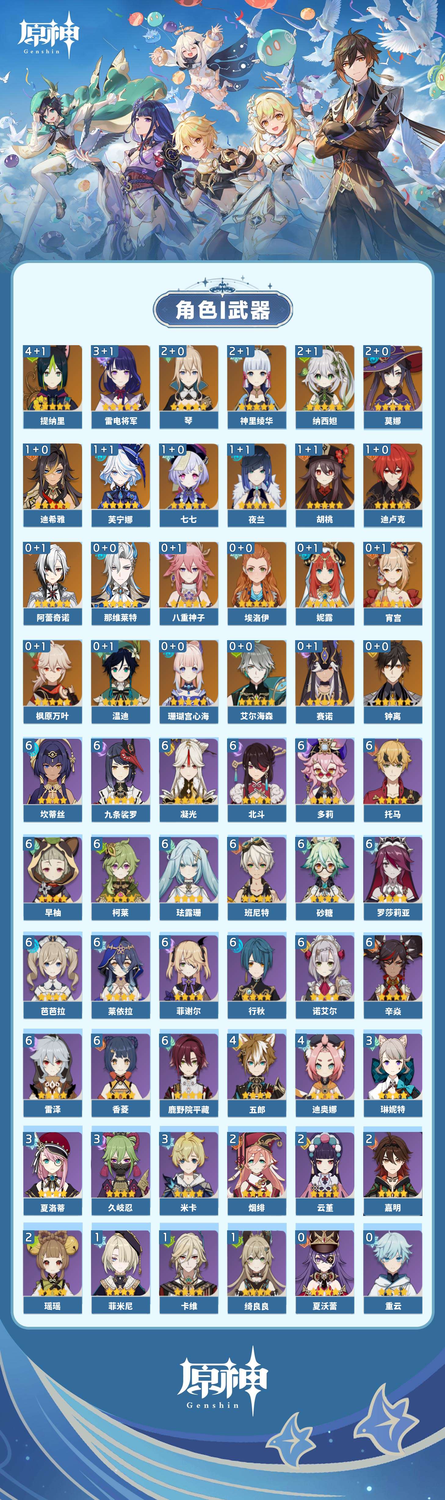 【原神】【lyys10476】冒险等级:58,五星数量:44,五星角色:提纳里 4命雷电将军 3命莫娜 2命琴 2命神里绫华 2命纳西妲 2命迪希雅 1命芙宁娜 1命迪卢克 1命胡桃 1命七七 1命夜兰 1命珊瑚宫心海温迪宵宫钟离八重神子那维莱特赛诺阿蕾奇诺妮露艾尔海森枫原万叶__五星武器:最初的大魔术静水流涌之辉赤月之形阿莫斯之弓苍古自由之誓飞雷之弦振护摩之杖天空之傲天空之脊天空之卷雾切之回光薙草之稻光终末嗟叹之诗冬极白星神乐之真意若水猎人之径赤沙之杖圣显之钥千夜浮梦__四星角色:班尼特 6命行秋 6命九条裟罗 6命香菱 6命鹿野院平藏 6命珐露珊 6命凝光 6命砂糖 6命莱依拉 6命坎蒂丝 6命多莉 6命柯莱 6命芭芭拉 6命早柚 6命托马 6命辛焱 6命诺艾尔 6命罗莎莉亚 6命雷泽 6命菲谢尔 6命北斗 6命迪奥娜 4命五郎 4命久岐忍 3命米卡 3命琳妮特 3命夏洛蒂 3命瑶瑶 2命云堇 2命烟绯 2命嘉明 2命绮良良 1命卡维 1命菲米尼 1命埃洛伊重云夏沃蕾【原神】【lyys10476】冒险等级:58,五星数量:44,五星角色:提纳里 4命雷电将军 3命莫娜 2命琴 2命神里绫华 2命纳西妲 2命迪希雅 1命芙宁娜 1命迪卢克 1命胡桃 1命七七 1命夜兰 1命珊瑚宫心海温迪宵宫钟离八重神子那维莱特赛诺阿蕾奇诺妮露艾尔海森枫原万叶__五星武器:最初的大魔术静水流涌之辉赤月之形阿莫斯之弓苍古自由之誓飞雷之弦振护摩之杖天空之傲天空之脊天空之卷雾切之回光薙草之稻光终末嗟叹之诗冬极白星神乐之真意若水猎人之径赤沙之杖圣显之钥千夜浮梦__四星角色:班尼特 6命行秋 6命九条裟罗 6命香菱 6命鹿野院平藏 6命珐露珊 6命凝光 6命砂糖 6命莱依拉 6命坎蒂丝 6命多莉 6命柯莱 6命芭芭拉 6命早柚 6命托马 6命辛焱 6命诺艾尔 6命罗莎莉亚 6命雷泽 6命菲谢尔 6命北斗 6命迪奥娜 4命五郎 4命久岐忍 3命米卡 3命琳妮特 3命夏洛蒂 3命瑶瑶 2命云堇 2命烟绯 2命嘉明 2命绮良良 1命卡维 1命菲米尼 1命埃洛伊重云夏沃蕾