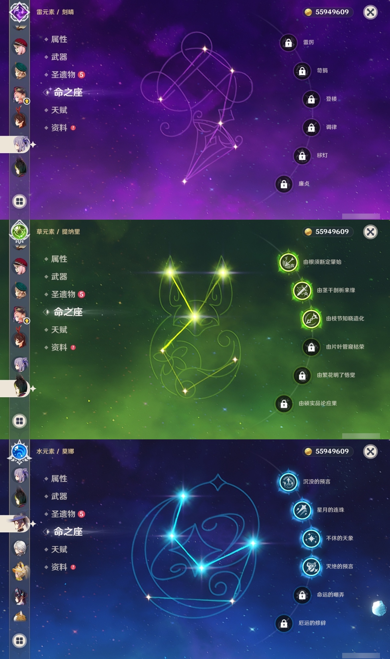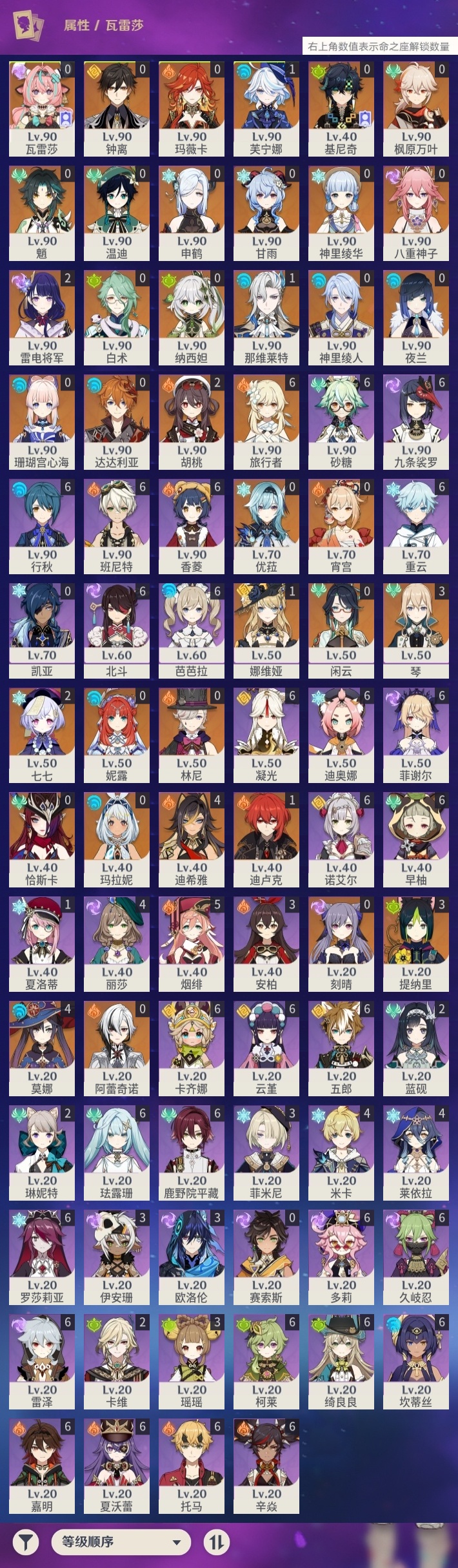 【原神】【lyys10520】冒险等级:60,五星数量:54,五星角色:迪希雅 4命莫娜 4命琴 3命提纳里 3命胡桃 2命雷电将军 2命七七 2命那维莱特 1命芙宁娜 1命娜维娅 1命迪卢克 1命玛拉妮基尼奇珊瑚宫心海白术神里绫华温迪恰斯卡玛薇卡宵宫优菈钟离达达利亚申鹤瓦雷莎八重神子神里绫人林尼夜兰闲云阿蕾奇诺妮露纳西妲枫原万叶甘雨魈刻晴__五星武器:冲浪时光碧落之珑溢彩心念万世流涌大典静水流涌之辉鹤鸣余音不灭月华苍古自由之誓飞雷之弦振护摩之杖狼的末路四风原典天空之刃天空之翼雾切之回光薙草之稻光千夜浮梦__四星角色:卡齐娜 6命班尼特 6命行秋 6命九条裟罗 6命香菱 6命久岐忍 6命鹿野院平藏 6命珐露珊 6命凝光 6命迪奥娜 6命砂糖 6命绮良良 6命坎蒂丝 6命多莉 6命柯莱 6命芭芭拉 6命云堇 6命早柚 6命托马 6命五郎 6命重云 6命辛焱 6命诺艾尔 6命罗莎莉亚 6命雷泽 6命菲谢尔 6命北斗 6命夏沃蕾 6命嘉明 6命烟绯 5命莱依拉 4命米卡 4命瑶瑶 3命欧洛伦 3命菲米尼 3命伊安珊 3命卡维 2命蓝砚 2命琳妮特 2命夏洛蒂 1命赛索斯