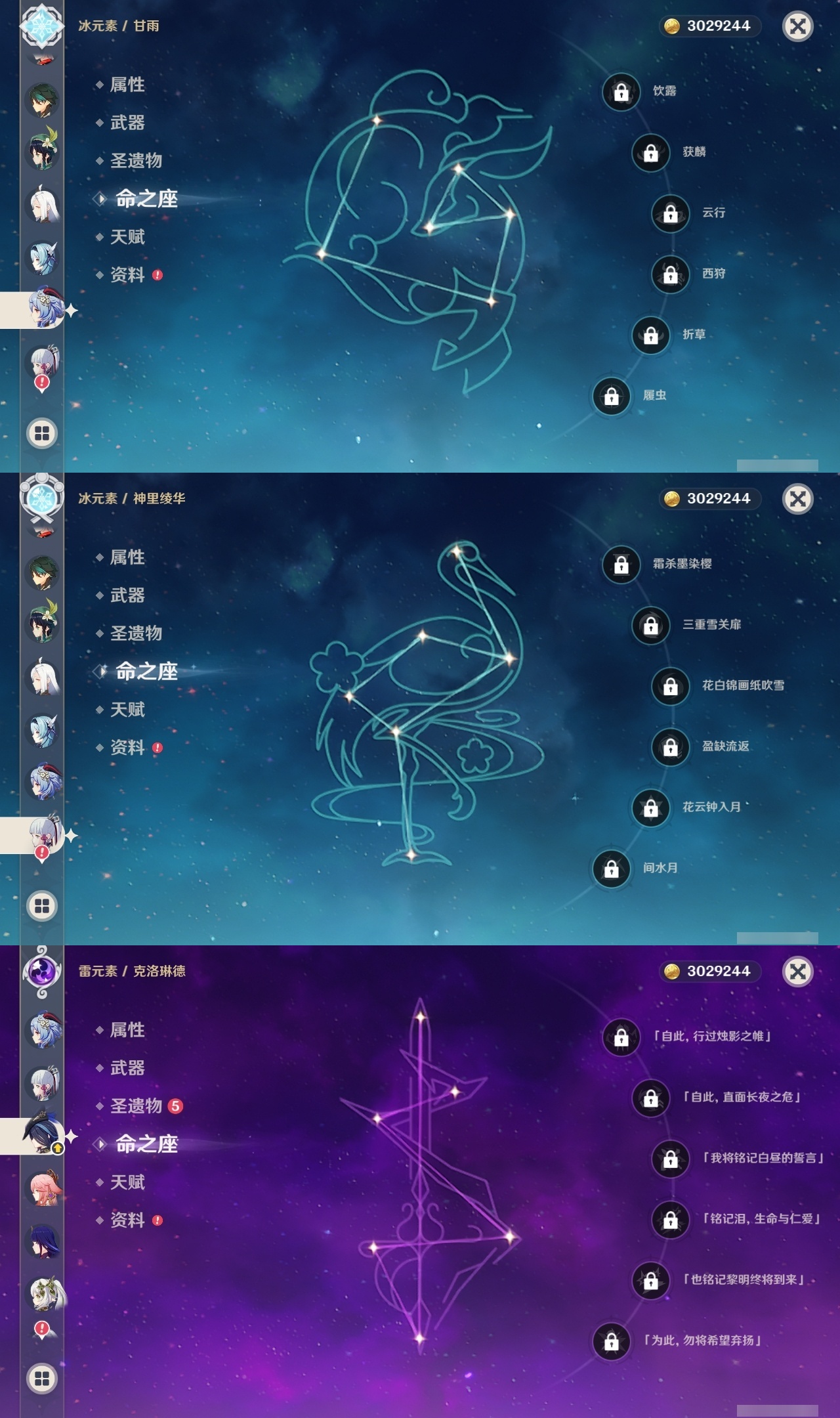 【原神】【lyys10536】冒险等级:60,五星数量:43,五星角色:刻晴 4命莫娜 3命迪希雅 2命雷电将军 2命七七 2命达达利亚 1命魈 1命胡桃 1命琴 1命玛拉妮希诺宁神里绫华温迪恰斯卡优菈钟离申鹤八重神子那维莱特夜兰芙宁娜提纳里闲云阿蕾奇诺纳西妲迪卢克枫原万叶甘雨克洛琳德希格雯__五星武器:万世流涌大典阿莫斯之弓风鹰剑和璞鸢四风原典天空之傲天空之脊天空之刃雾切之回光薙草之稻光贯虹之槊若水__四星角色:班尼特 6命行秋 6命九条裟罗 6命香菱 6命久岐忍 6命鹿野院平藏 6命珐露珊 6命凝光 6命迪奥娜 6命砂糖 6命绮良良 6命瑶瑶 6命多莉 6命柯莱 6命云堇 6命早柚 6命托马 6命五郎 6命辛焱 6命诺艾尔 6命罗莎莉亚 6命雷泽 6命菲谢尔 6命北斗 6命琳妮特 6命米卡 5命芭芭拉 5命烟绯 5命莱依拉 4命重云 4命夏沃蕾 4命爱诺 4命嘉明 3命卡齐娜 2命塔利雅 2命坎蒂丝 1命卡维 1命欧洛伦 1命赛索斯 1命奇偶·女性蓝砚菲米尼夏洛蒂伊法伊安珊