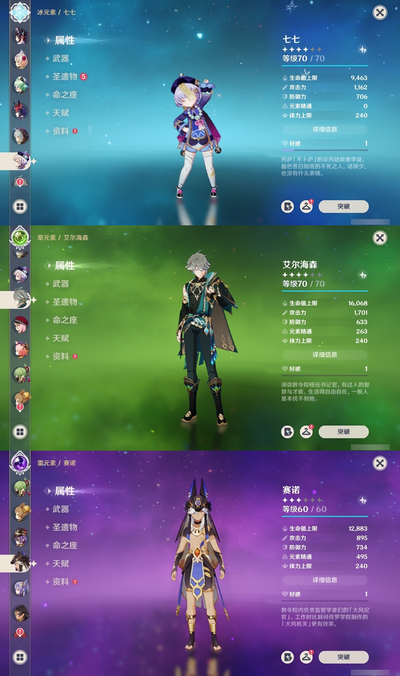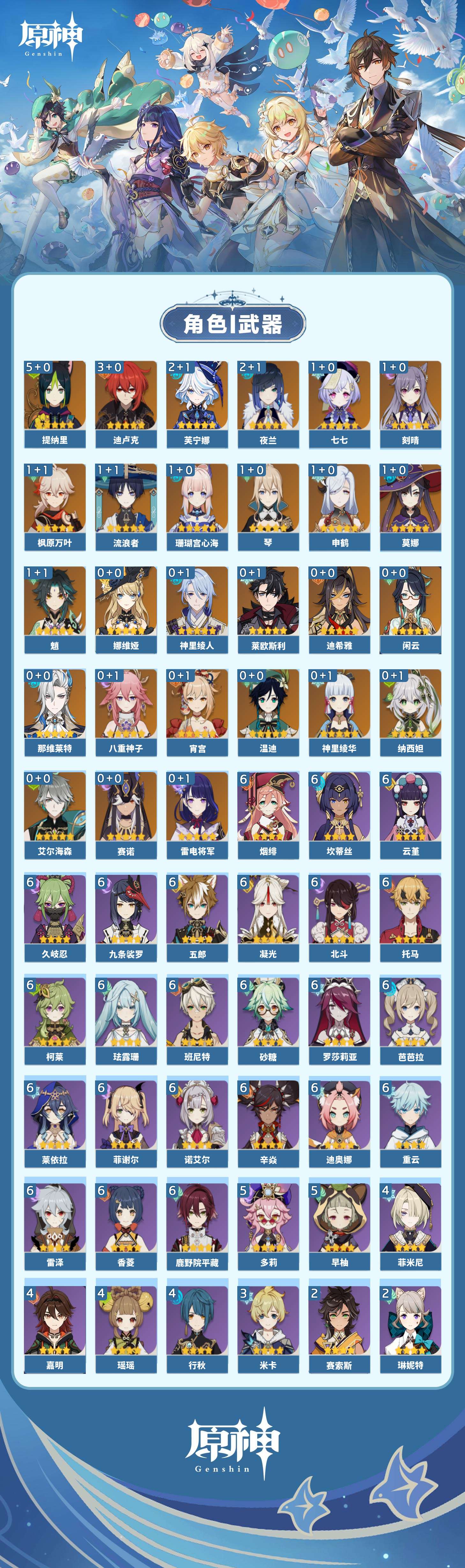 【原神】【lyys10535】冒险等级:60,五星数量:48,五星角色:提纳里 5命迪卢克 3命芙宁娜 2命夜兰 2命枫原万叶 1命魈 1命刻晴 1命莫娜 1命七七 1命琴 1命珊瑚宫心海 1命申鹤 1命流浪者 1命神里绫华温迪宵宫迪希雅八重神子神里绫人那维莱特莱欧斯利娜维娅闲云赛诺纳西妲艾尔海森雷电将军__五星武器:风鹰剑 3精金流监督静水流涌之辉图莱杜拉的回忆苍古自由之誓尘世之锁飞雷之弦振和璞鸢天空之傲天空之脊天空之卷天空之刃天空之翼无工之剑雾切之回光薙草之稻光赤角石溃杵神乐之真意波乱月白经津若水千夜浮梦__四星角色:班尼特 6命九条裟罗 6命香菱 6命久岐忍 6命鹿野院平藏 6命珐露珊 6命凝光 6命迪奥娜 6命砂糖 6命莱依拉 6命坎蒂丝 6命柯莱 6命芭芭拉 6命云堇 6命托马 6命五郎 6命烟绯 6命重云 6命辛焱 6命诺艾尔 6命罗莎莉亚 6命雷泽 6命菲谢尔 6命北斗 6命多莉 5命早柚 5命行秋 4命瑶瑶 4命菲米尼 4命嘉明 4命米卡 3命绮良良 2命琳妮特 2命赛索斯 2命卡齐娜 1命夏洛蒂 1命夏沃蕾 1命卡维伊法