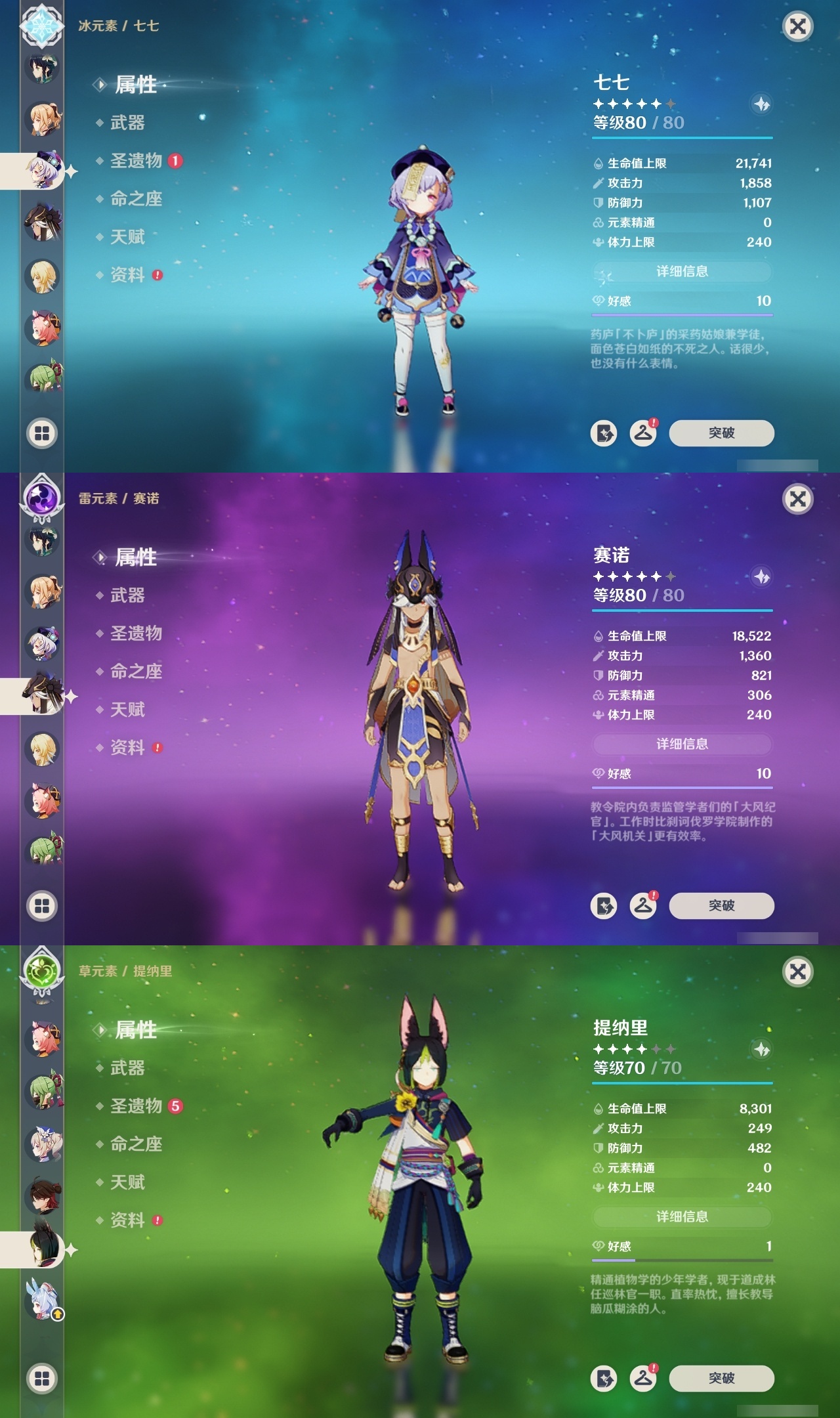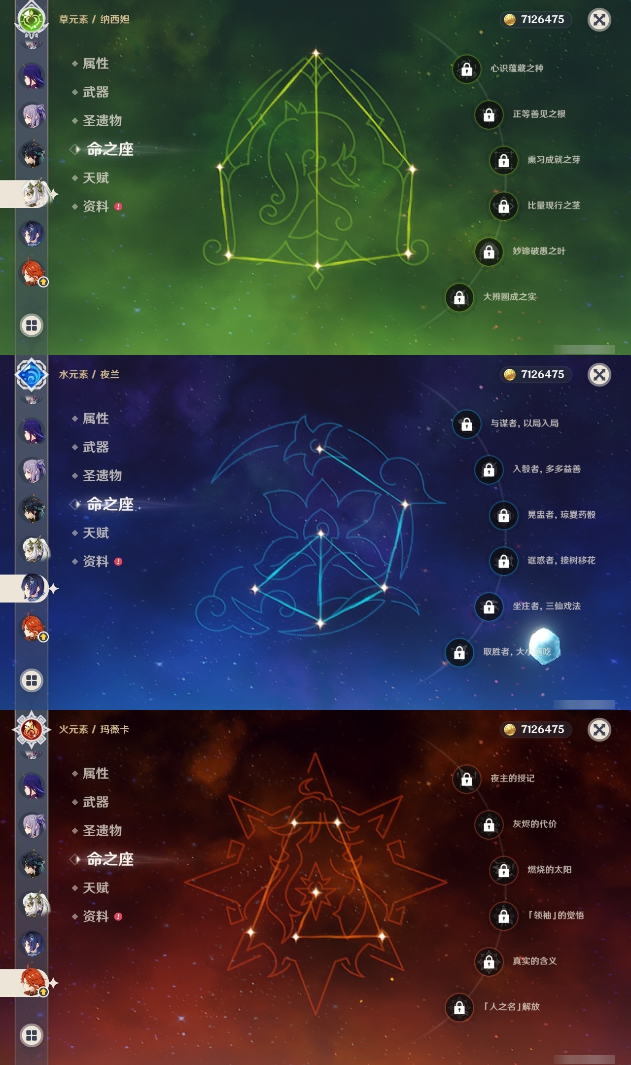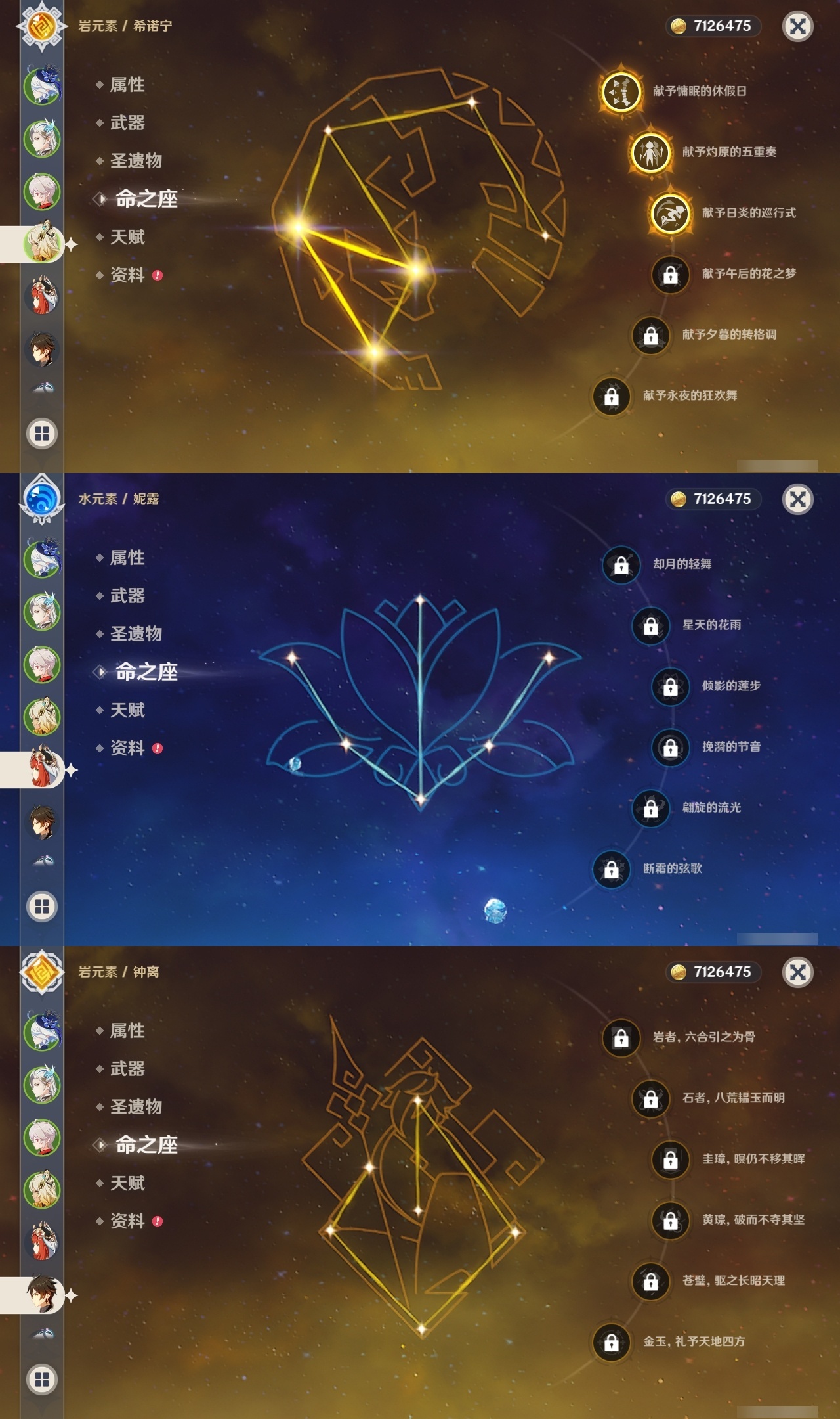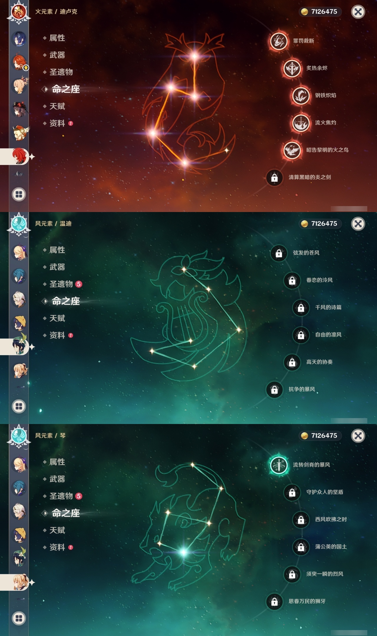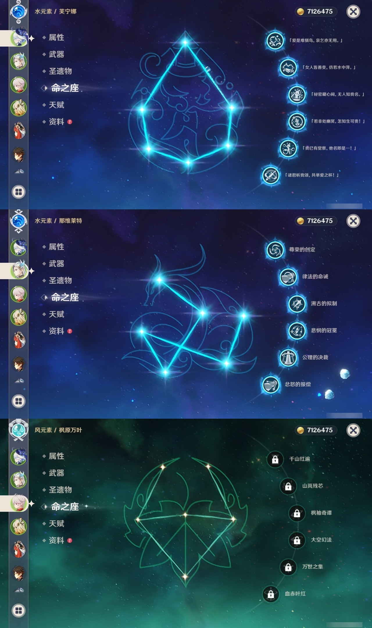 【原神】满命,冒险等级:60,五星数量:51,五星角色:迪希雅 6命那维莱特 6命芙宁娜 6命迪卢克 5命提纳里 4命希诺宁 3命七七 3命赛诺 2命胡桃 1命莫娜 1命琴 1命基尼奇神里绫华温迪玛薇卡茜特菈莉宵宫钟离夜兰妮露纳西妲枫原万叶甘雨希格雯可莉刻晴雷电将军__五星武器:阿莫斯之弓 2精白雨心弦 2精柔灯挽歌碧落之珑焚曜千阳寝正月初晴万世流涌大典静水流涌之辉飞雷之弦振护摩之杖狼的末路磐岩结绿四风原典天空之傲天空之脊天空之卷天空之刃天空之翼雾切之回光贯虹之槊赤沙之杖圣显之钥千夜浮梦__四星角色:班尼特 6命行秋 6命九条裟罗 6命香菱 6命鹿野院平藏 6命珐露珊 6命凝光 6命迪奥娜 6命砂糖 6命瑶瑶 6命柯莱 6命芭芭拉 6命托马 6命五郎 6命烟绯 6命重云 6命辛焱 6命诺艾尔 6命罗莎莉亚 6命雷泽 6命菲谢尔 6命北斗 6命夏沃蕾 6命嘉明 6命伊安珊 6命莱依拉 5命坎蒂丝 5命琳妮特 5命久岐忍 4命卡维 4命早柚 4命夏洛蒂 4命欧洛伦 2命云堇 2命卡齐娜 1命绮良良 1命米卡 1命蓝砚 1命爱诺 1命埃洛伊多莉菲米尼伊法赛索斯