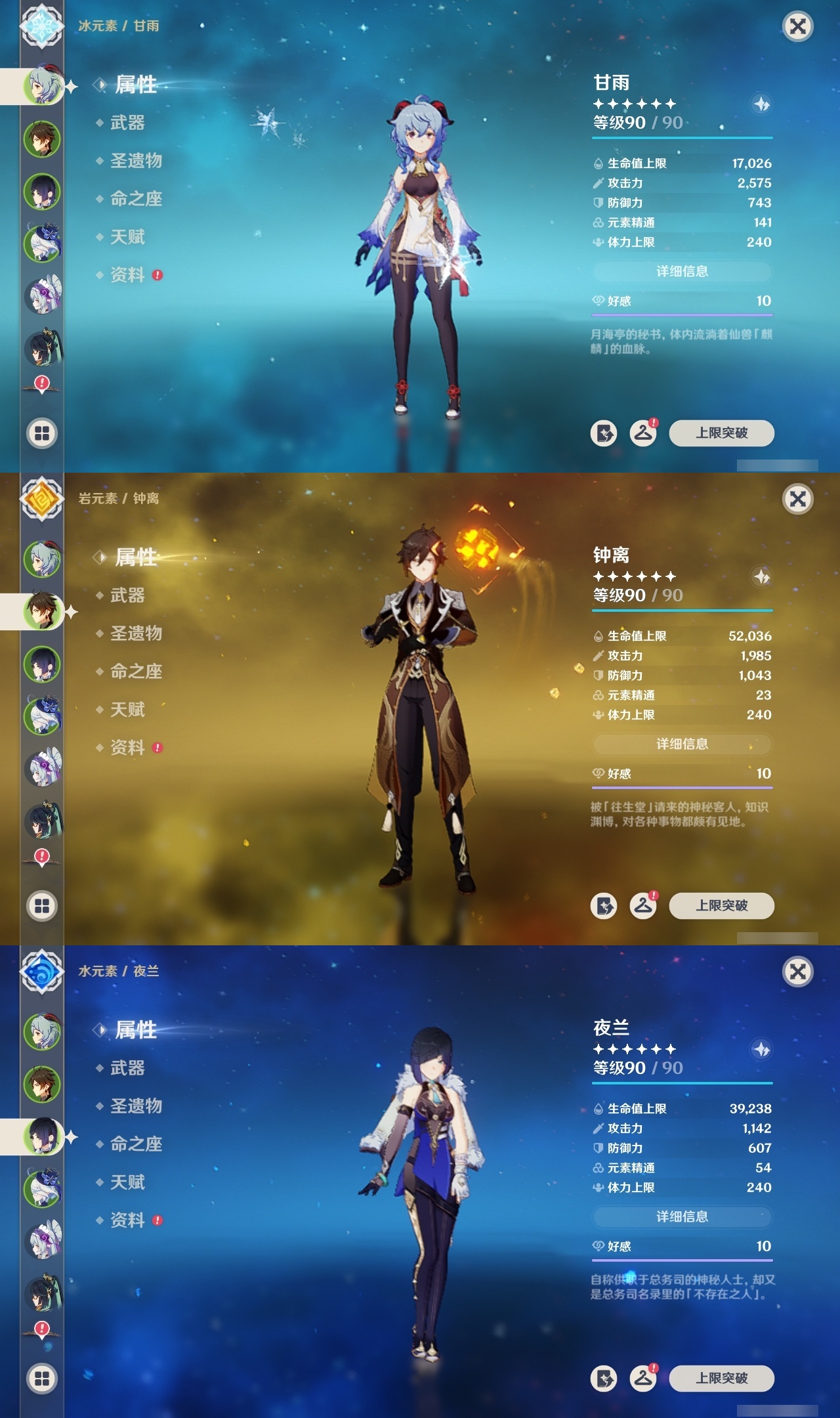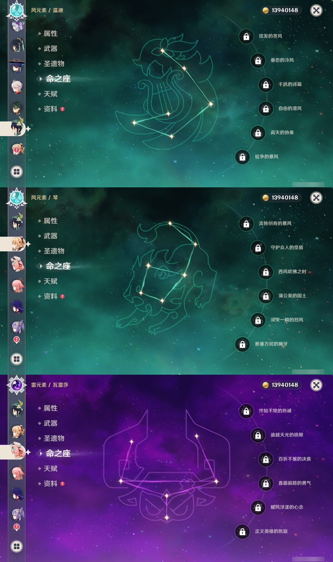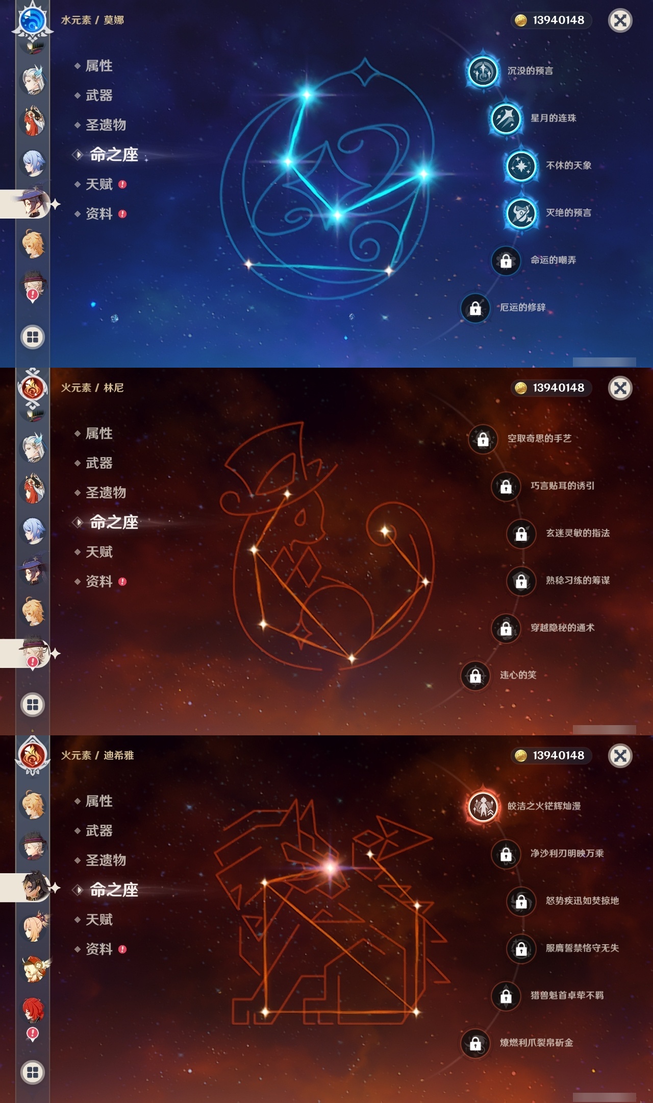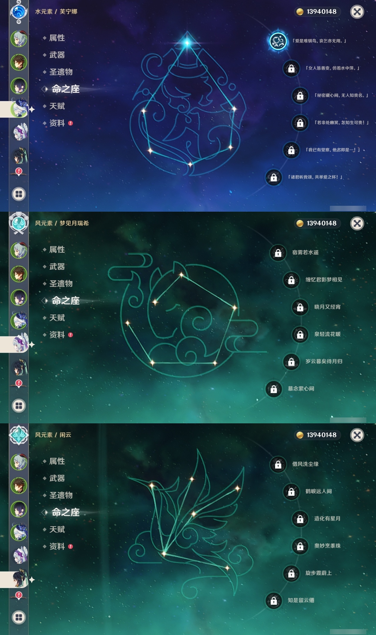【原神】【lyys10575】冒险等级:60,五星数量:52,五星角色:魈 6命八重神子 6命莫娜 4命七七 4命迪卢克 3命刻晴 3命夜兰 2命纳西妲 2命迪希雅 1命芙宁娜 1命提纳里 1命琴希诺宁温迪宵宫钟离梦见月瑞希瓦雷莎神里绫人林尼那维莱特闲云妮露艾尔海森流浪者枫原万叶甘雨可莉雷电将军__五星武器:飞雷之弦振 2精护摩之杖 2精狼的末路 2精四风原典 2精天空之刃 2精裁叶萃光 2精最初的大魔术万世流涌大典金流监督有乐御簾切图莱杜拉的回忆阿莫斯之弓不灭月华和璞鸢磐岩结绿天空之傲天空之翼斫峰之刃神乐之真意若水圣显之钥千夜浮梦__四星角色:班尼特 6命行秋 6命香菱 6命久岐忍 6命鹿野院平藏 6命珐露珊 6命凝光 6命迪奥娜 6命砂糖 6命绮良良 6命多莉 6命芭芭拉 6命云堇 6命托马 6命五郎 6命烟绯 6命重云 6命辛焱 6命诺艾尔 6命罗莎莉亚 6命雷泽 6命菲谢尔 6命北斗 6命瑶瑶 5命早柚 5命九条裟罗 4命坎蒂丝 4命莱依拉 3命琳妮特 3命夏沃蕾 3命米卡 2命柯莱 2命爱诺 2命卡维 1命菲米尼 1命嘉明 1命埃洛伊卡齐娜蓝砚夏洛蒂塔利雅赛索斯