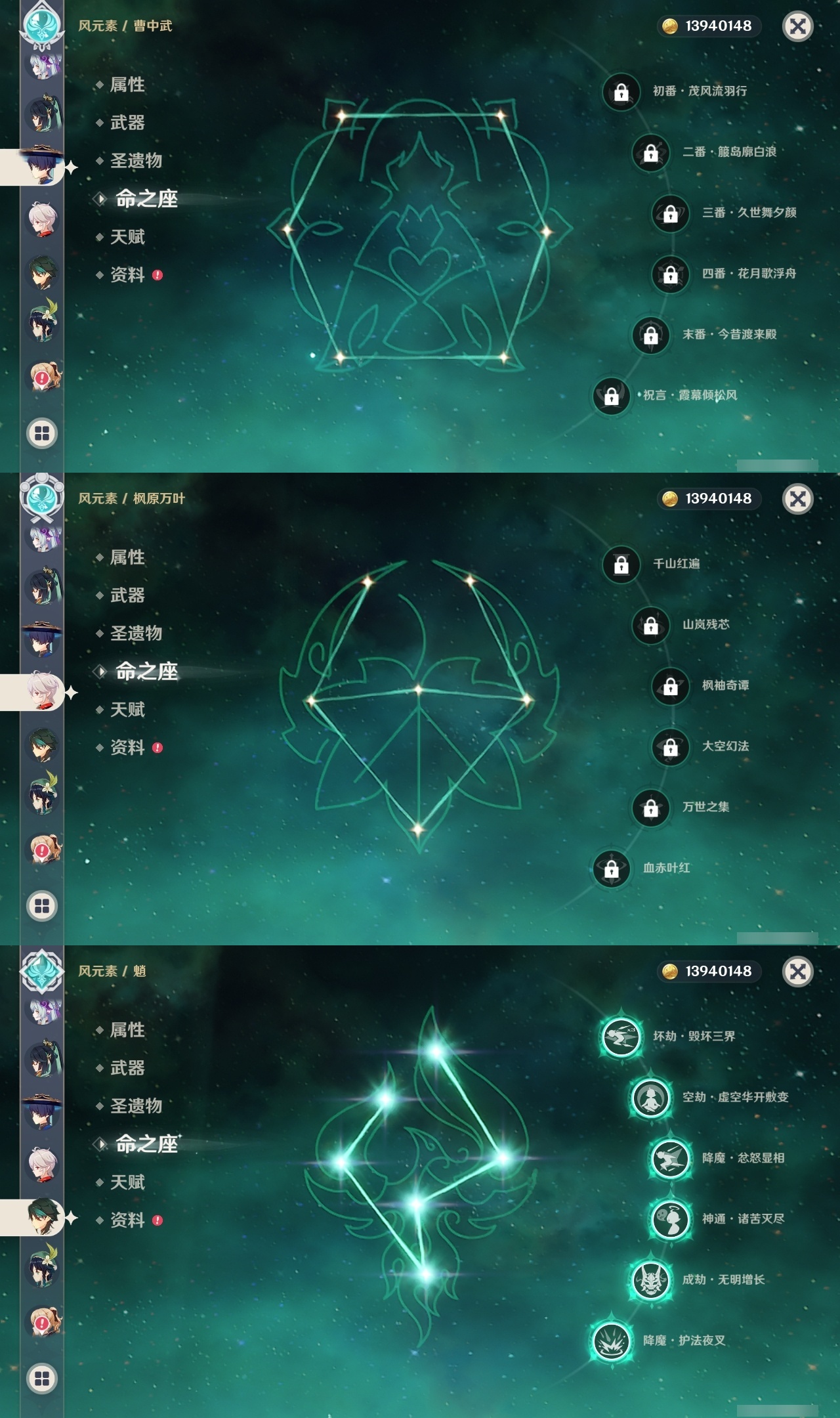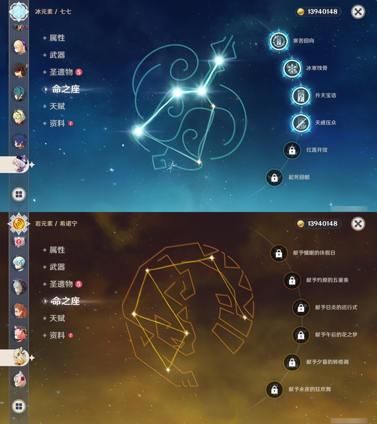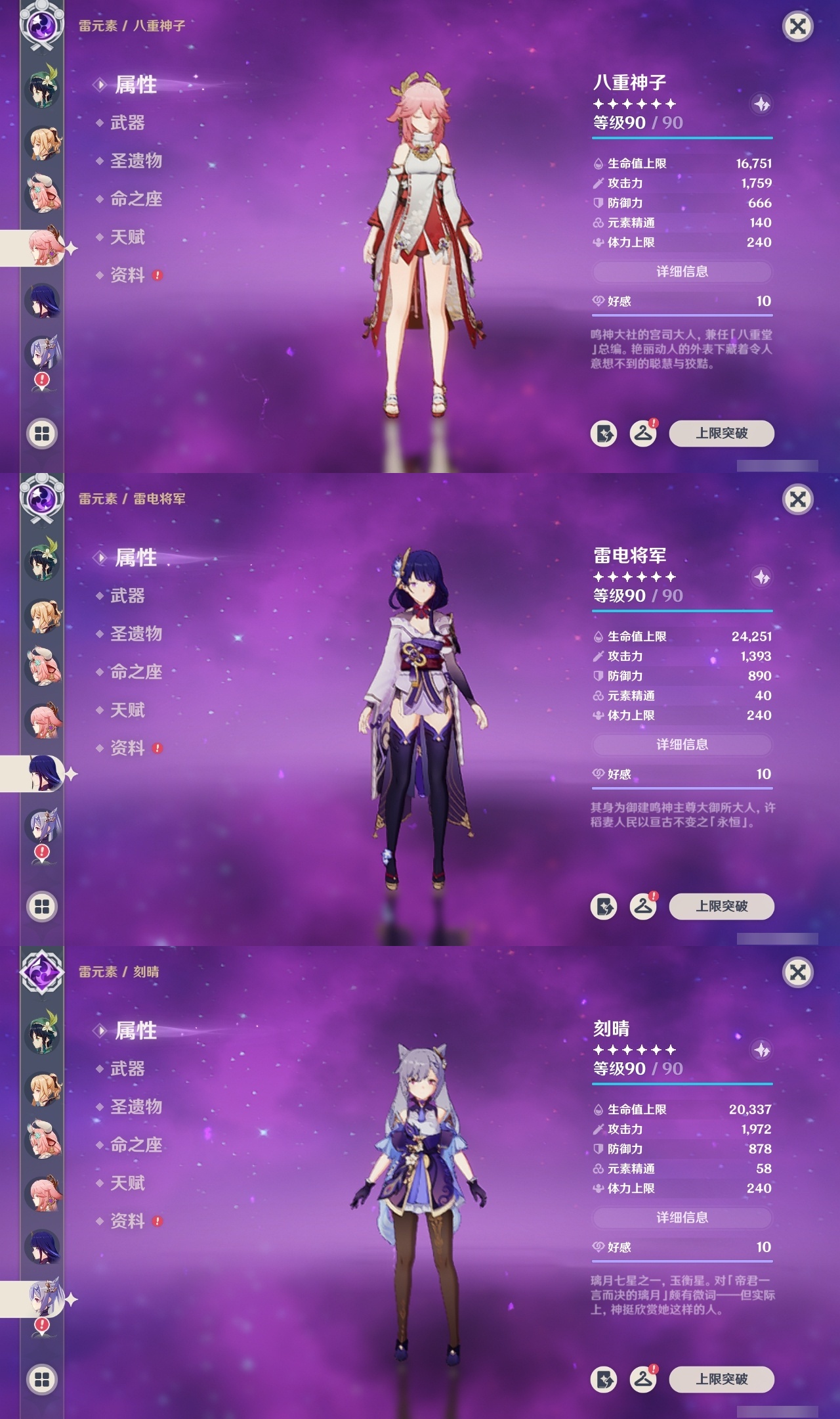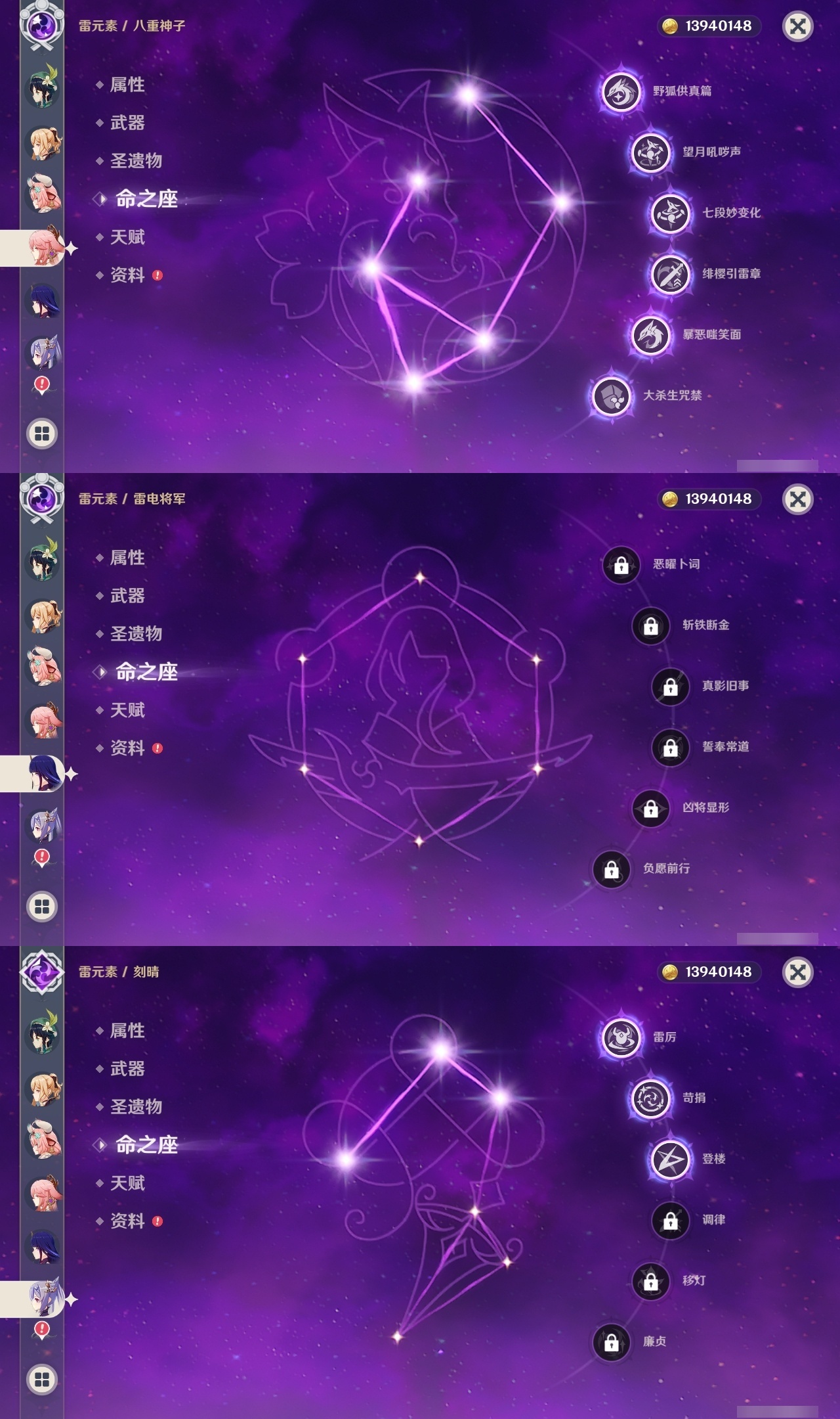 【原神】【lyys10575】冒险等级:60,五星数量:52,五星角色:魈 6命八重神子 6命莫娜 4命七七 4命迪卢克 3命刻晴 3命夜兰 2命纳西妲 2命迪希雅 1命芙宁娜 1命提纳里 1命琴希诺宁温迪宵宫钟离梦见月瑞希瓦雷莎神里绫人林尼那维莱特闲云妮露艾尔海森流浪者枫原万叶甘雨可莉雷电将军__五星武器:飞雷之弦振 2精护摩之杖 2精狼的末路 2精四风原典 2精天空之刃 2精裁叶萃光 2精最初的大魔术万世流涌大典金流监督有乐御簾切图莱杜拉的回忆阿莫斯之弓不灭月华和璞鸢磐岩结绿天空之傲天空之翼斫峰之刃神乐之真意若水圣显之钥千夜浮梦__四星角色:班尼特 6命行秋 6命香菱 6命久岐忍 6命鹿野院平藏 6命珐露珊 6命凝光 6命迪奥娜 6命砂糖 6命绮良良 6命多莉 6命芭芭拉 6命云堇 6命托马 6命五郎 6命烟绯 6命重云 6命辛焱 6命诺艾尔 6命罗莎莉亚 6命雷泽 6命菲谢尔 6命北斗 6命瑶瑶 5命早柚 5命九条裟罗 4命坎蒂丝 4命莱依拉 3命琳妮特 3命夏沃蕾 3命米卡 2命柯莱 2命爱诺 2命卡维 1命菲米尼 1命嘉明 1命埃洛伊卡齐娜蓝砚夏洛蒂塔利雅赛索斯