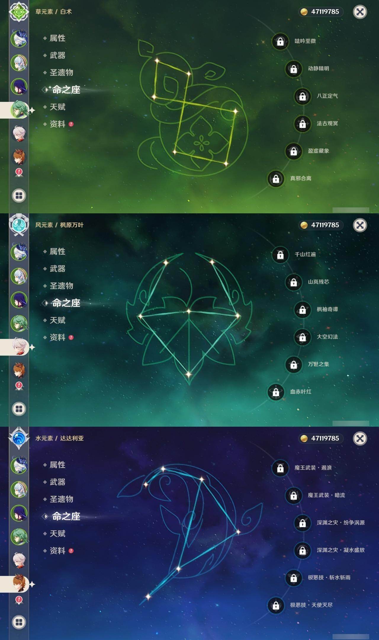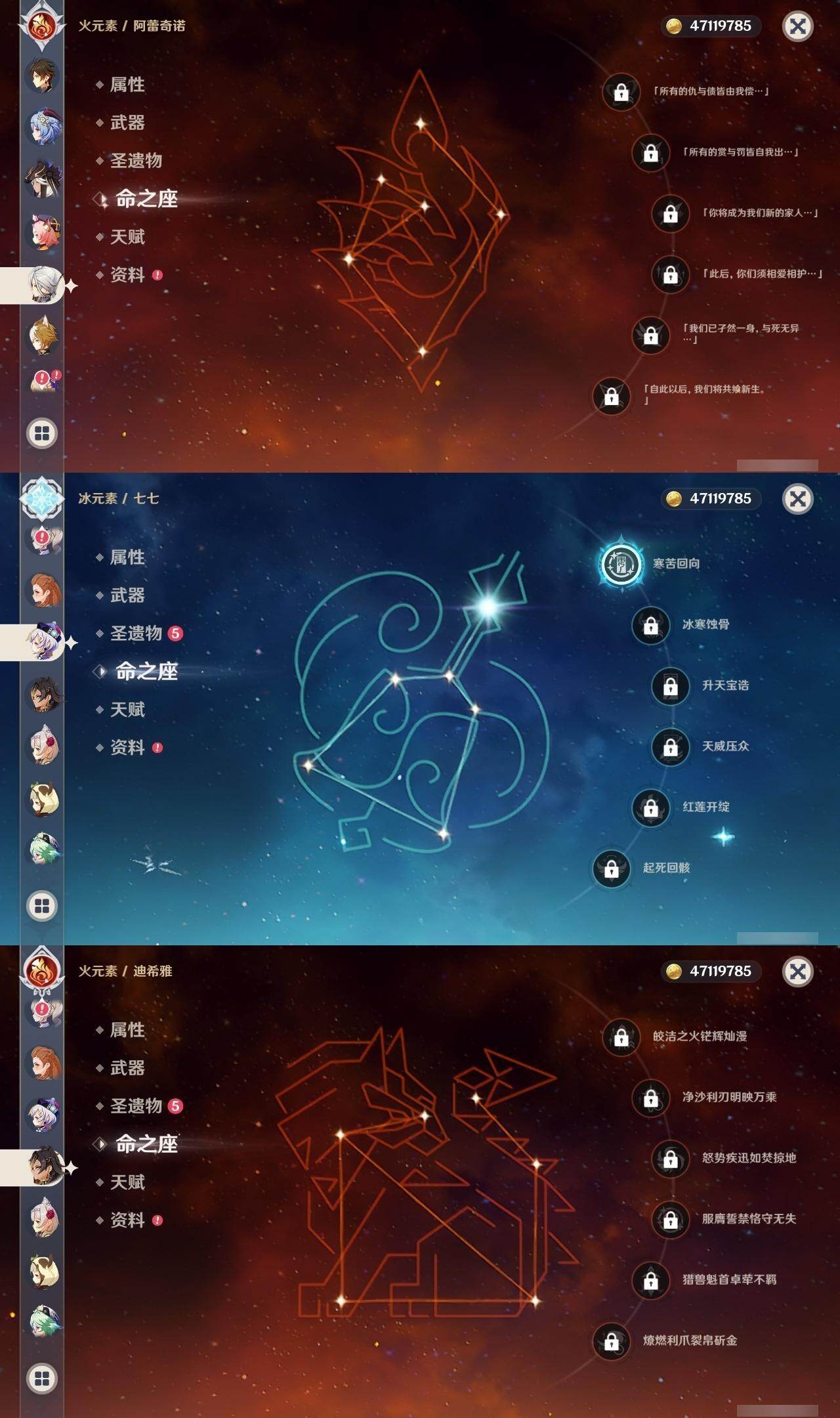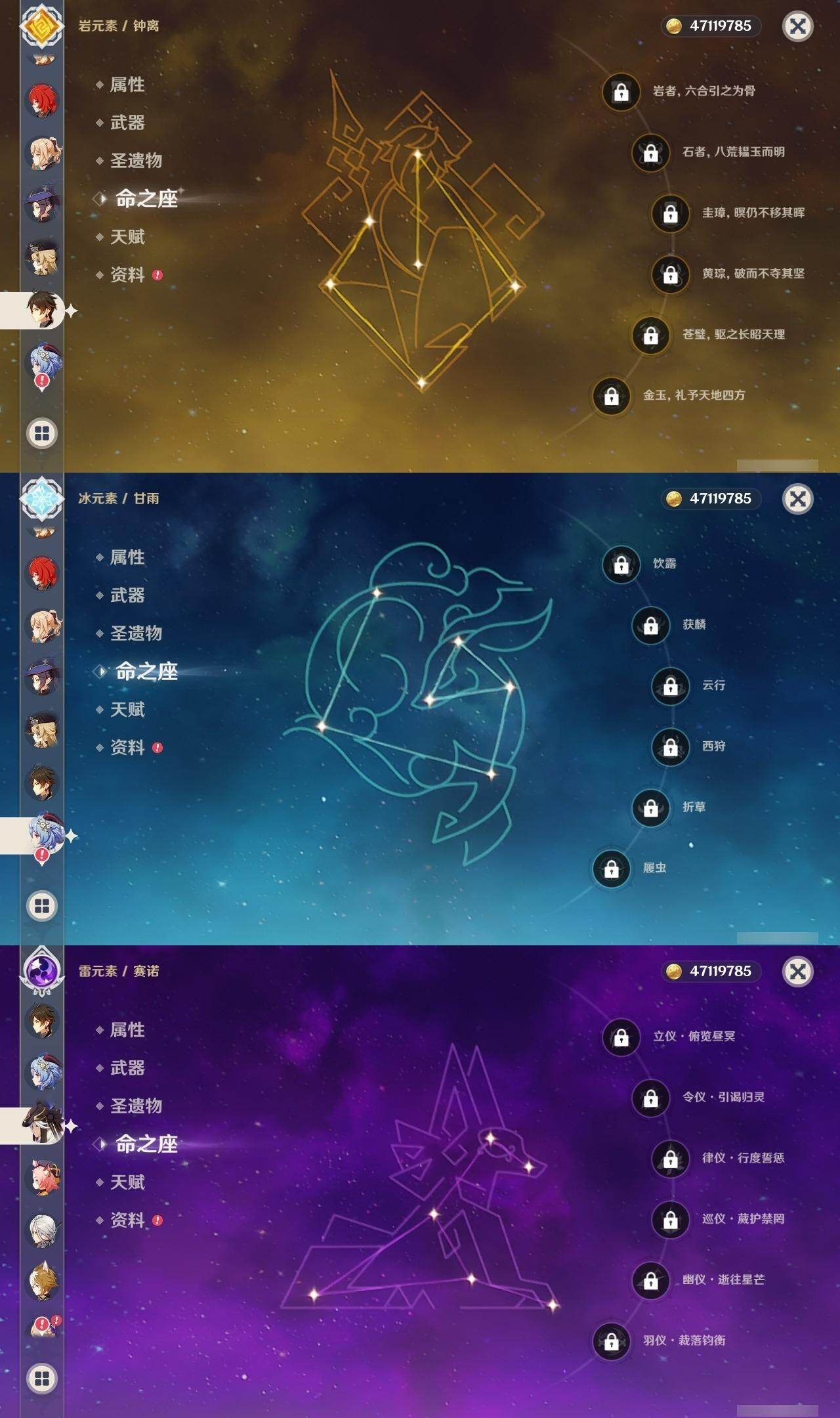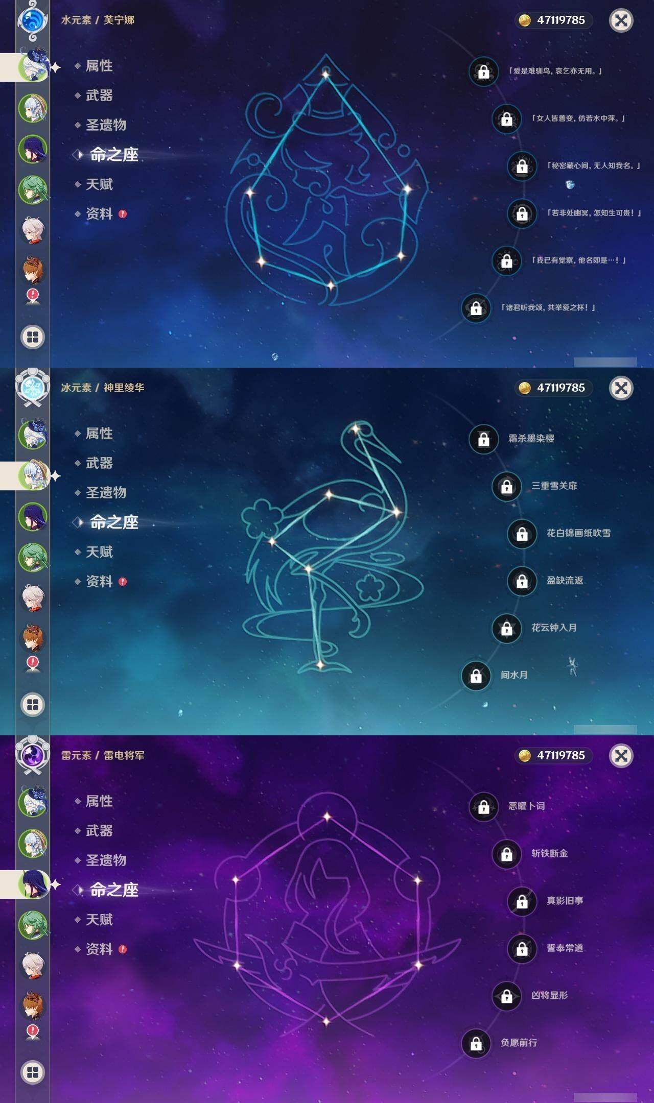 60级/48黄/女主/20个五星角色/22个五星武器 0命阿蕾奇诺0命娜维娅0命芙宁娜0命白术0命迪希雅0命赛诺0命提纳里0命雷电将军0命枫原万叶0命神里绫华0命钟离0命甘雨0命宵宫0命可莉0命达达利亚1命刻晴1命七七0命琴1命莫娜3命迪卢克精1裁断精1静水流涌之辉精1最初的大魔术精1碧落之珑精1苇海信标精1千夜浮梦精1终末嗟叹之诗精1冬极白星精1飞雷之弦振精1雾切之回光精1和璞鸢精1天空之脊精1天空之翼精1阿莫斯之弓精1天空之刃精1尘世之锁精1风鹰剑精1狼的末路
