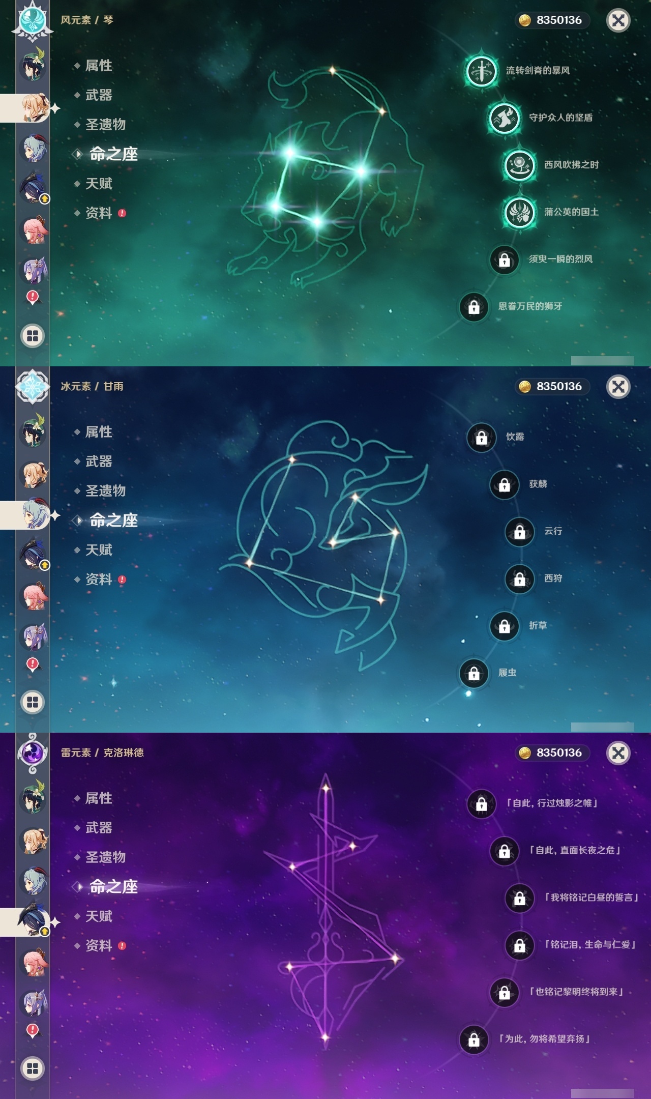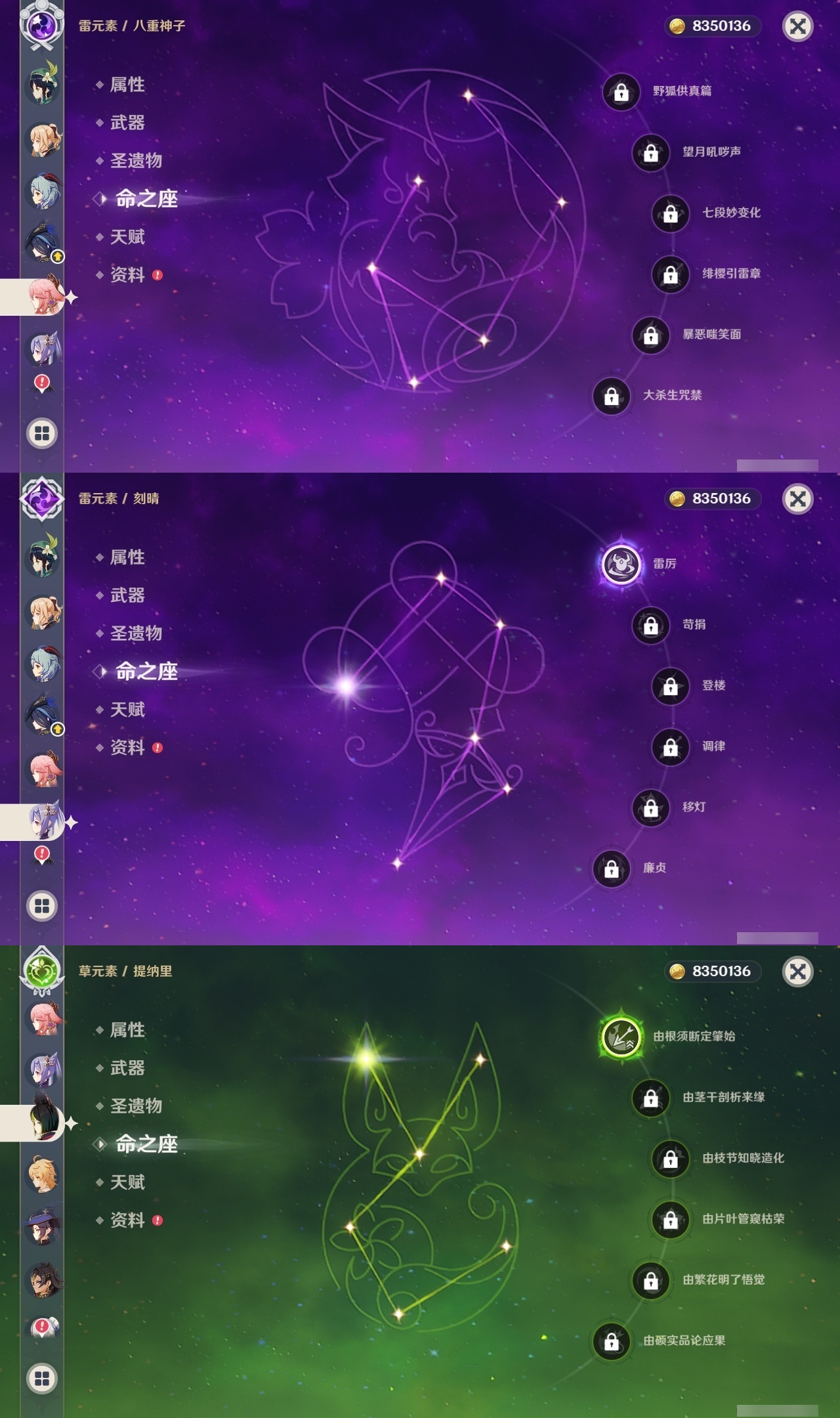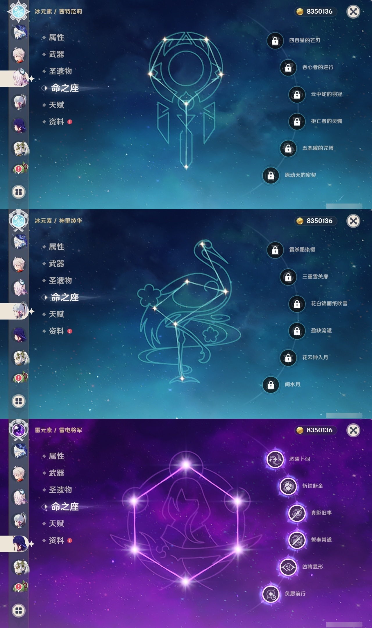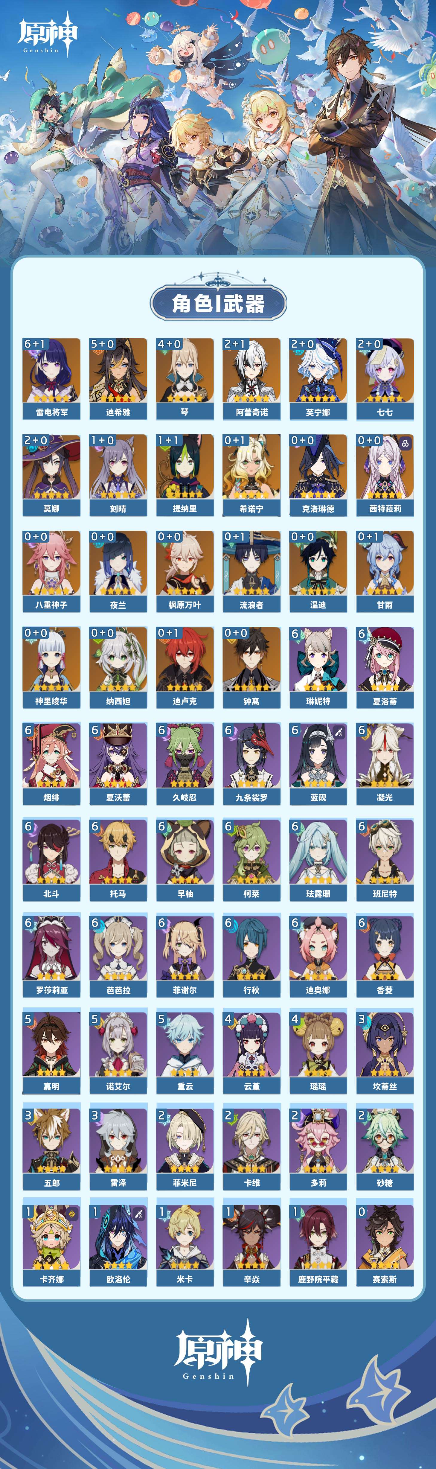 【原神】【lyys10613】冒险等级:60,五星数量:35,五星角色:雷电将军 6命迪希雅 5命琴 4命芙宁娜 2命阿蕾奇诺 2命莫娜 2命七七 2命刻晴 1命提纳里 1命希诺宁神里绫华温迪茜特菈莉钟离八重神子夜兰纳西妲流浪者迪卢克枫原万叶甘雨克洛琳德__五星武器:岩峰巡歌赤月之形图莱杜拉的回忆阿莫斯之弓和璞鸢狼的末路四风原典天空之傲天空之翼薙草之稻光猎人之径白雨心弦__四星角色:班尼特 6命行秋 6命九条裟罗 6命香菱 6命久岐忍 6命珐露珊 6命凝光 6命迪奥娜 6命柯莱 6命芭芭拉 6命蓝砚 6命早柚 6命托马 6命烟绯 6命罗莎莉亚 6命菲谢尔 6命北斗 6命琳妮特 6命夏洛蒂 6命夏沃蕾 6命重云 5命诺艾尔 5命嘉明 5命瑶瑶 4命云堇 4命坎蒂丝 3命五郎 3命雷泽 3命砂糖 2命多莉 2命卡维 2命菲米尼 2命卡齐娜 1命鹿野院平藏 1命米卡 1命欧洛伦 1命辛焱 1命奇偶·女性绮良良莱依拉伊法伊安珊爱诺赛索斯