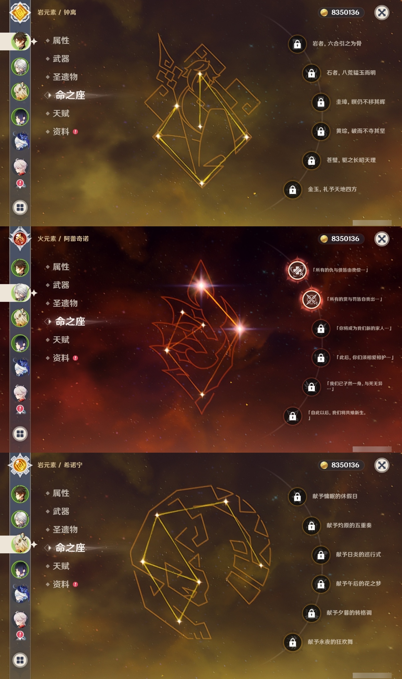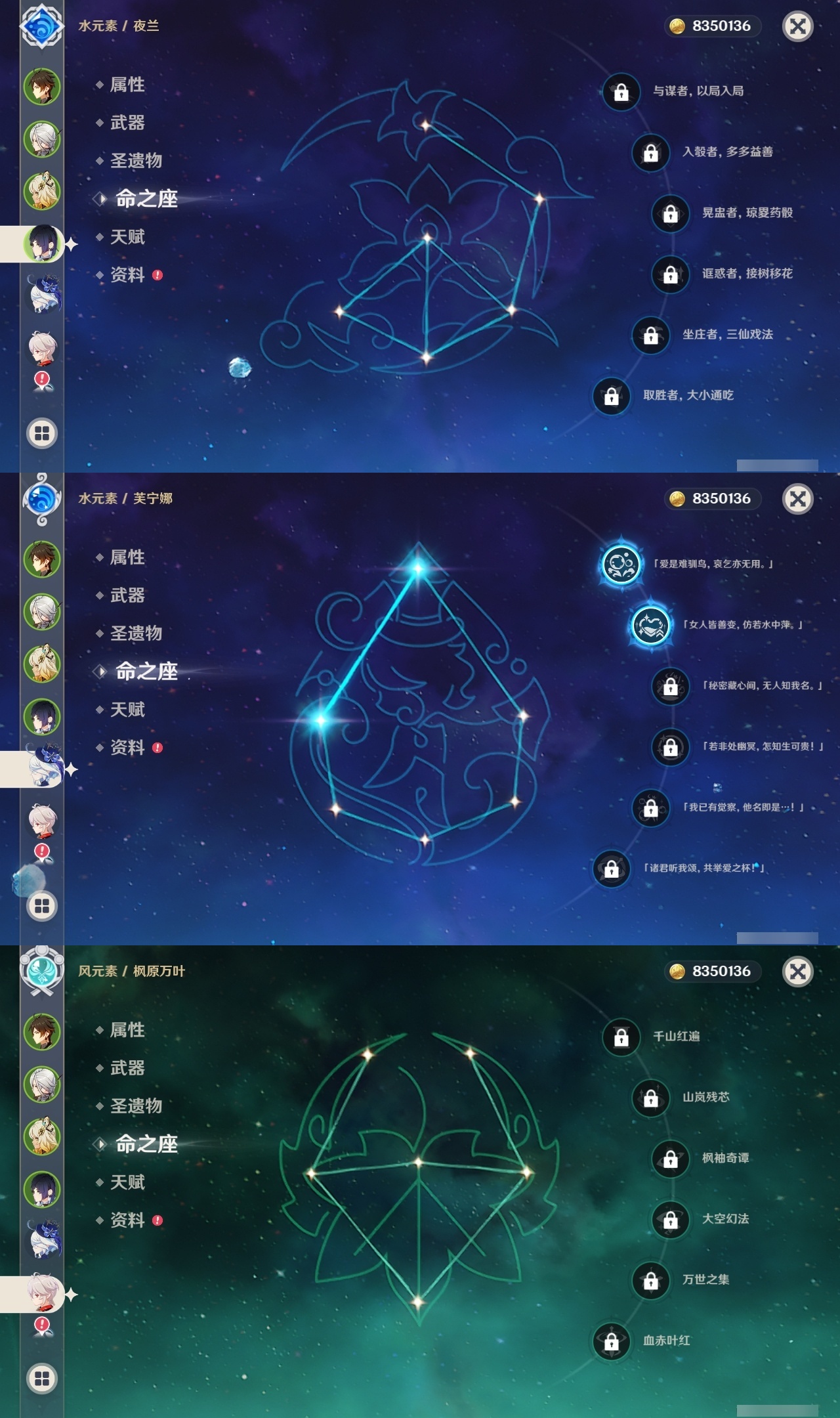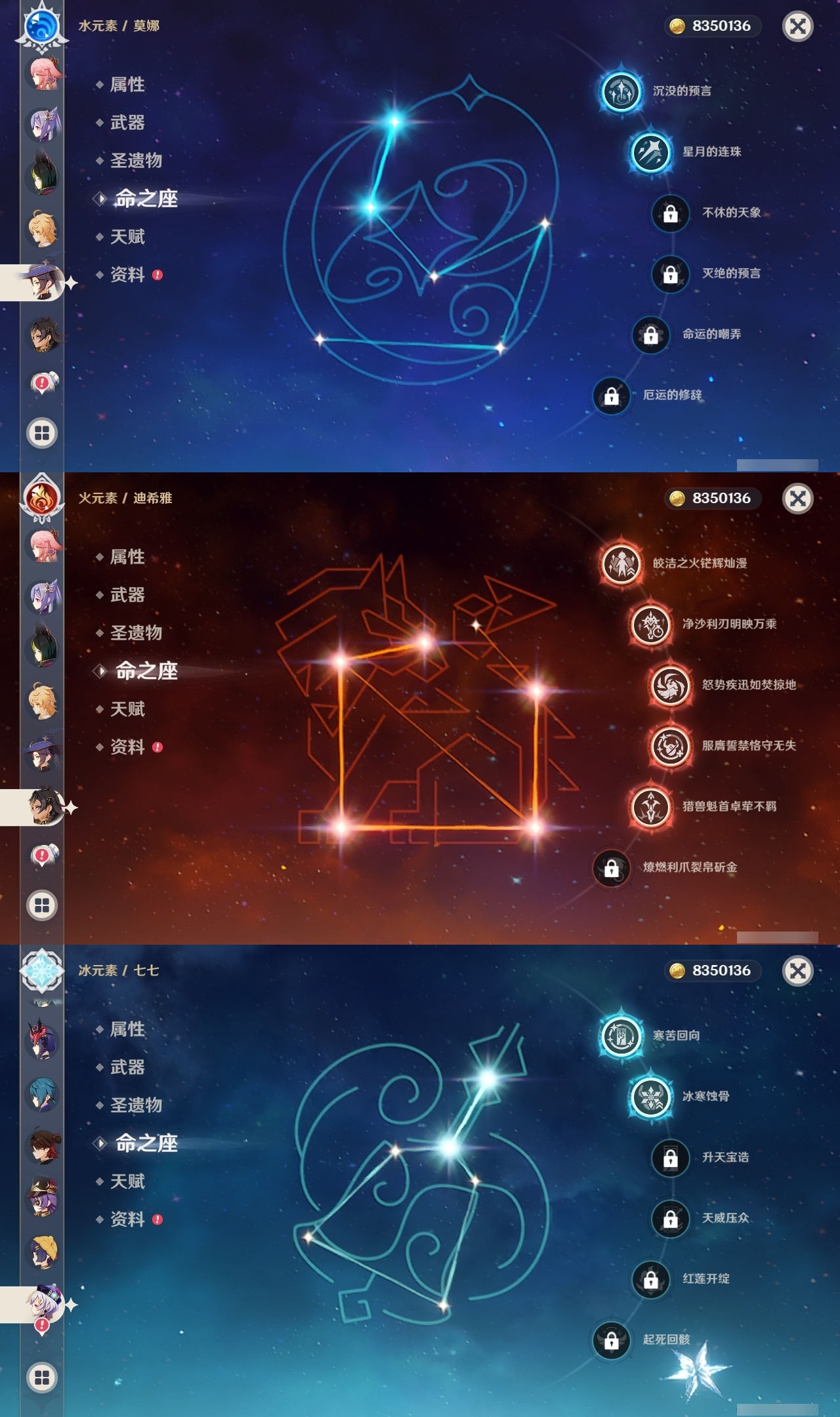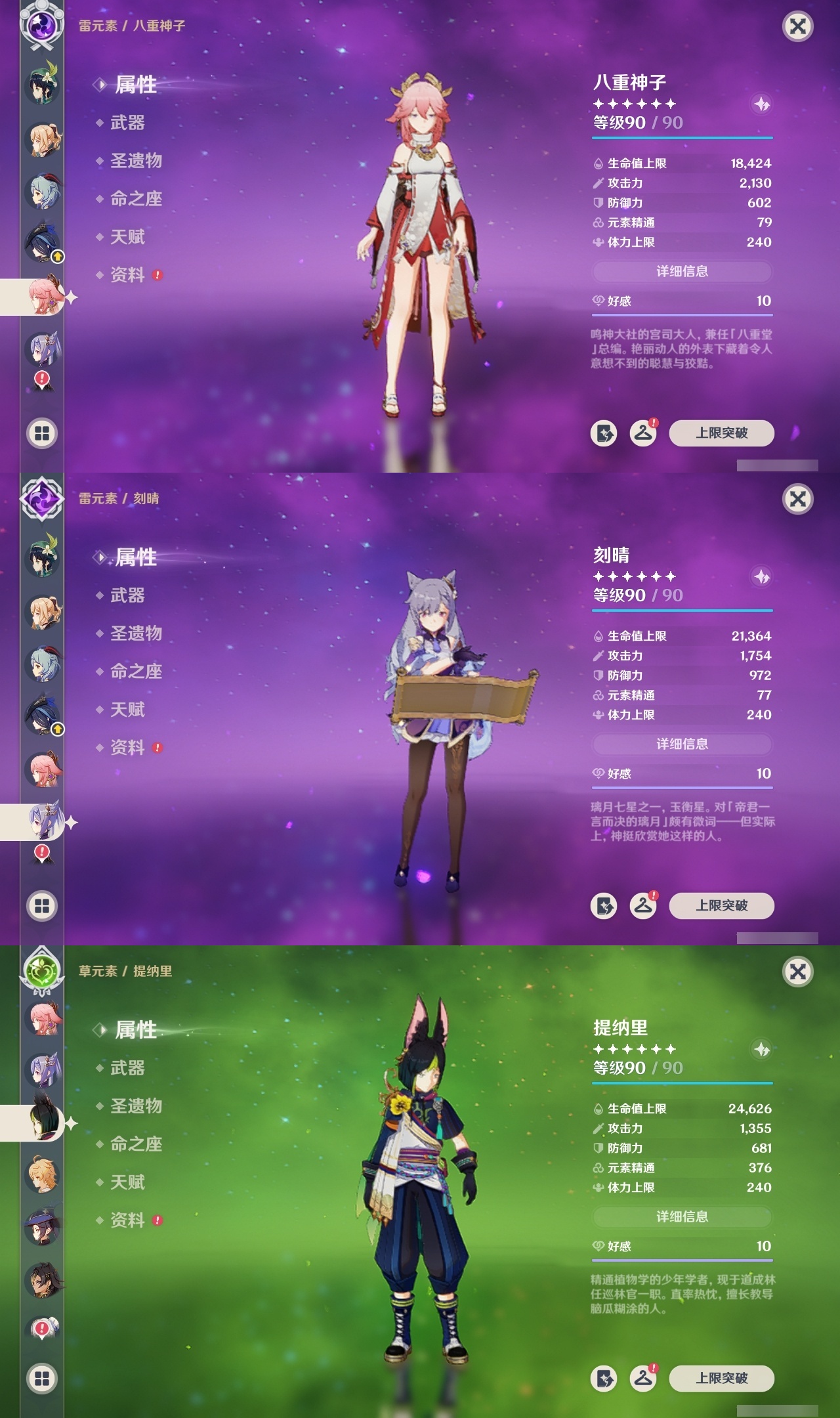 【原神】【lyys10613】冒险等级:60,五星数量:35,五星角色:雷电将军 6命迪希雅 5命琴 4命芙宁娜 2命阿蕾奇诺 2命莫娜 2命七七 2命刻晴 1命提纳里 1命希诺宁神里绫华温迪茜特菈莉钟离八重神子夜兰纳西妲流浪者迪卢克枫原万叶甘雨克洛琳德__五星武器:岩峰巡歌赤月之形图莱杜拉的回忆阿莫斯之弓和璞鸢狼的末路四风原典天空之傲天空之翼薙草之稻光猎人之径白雨心弦__四星角色:班尼特 6命行秋 6命九条裟罗 6命香菱 6命久岐忍 6命珐露珊 6命凝光 6命迪奥娜 6命柯莱 6命芭芭拉 6命蓝砚 6命早柚 6命托马 6命烟绯 6命罗莎莉亚 6命菲谢尔 6命北斗 6命琳妮特 6命夏洛蒂 6命夏沃蕾 6命重云 5命诺艾尔 5命嘉明 5命瑶瑶 4命云堇 4命坎蒂丝 3命五郎 3命雷泽 3命砂糖 2命多莉 2命卡维 2命菲米尼 2命卡齐娜 1命鹿野院平藏 1命米卡 1命欧洛伦 1命辛焱 1命奇偶·女性绮良良莱依拉伊法伊安珊爱诺赛索斯