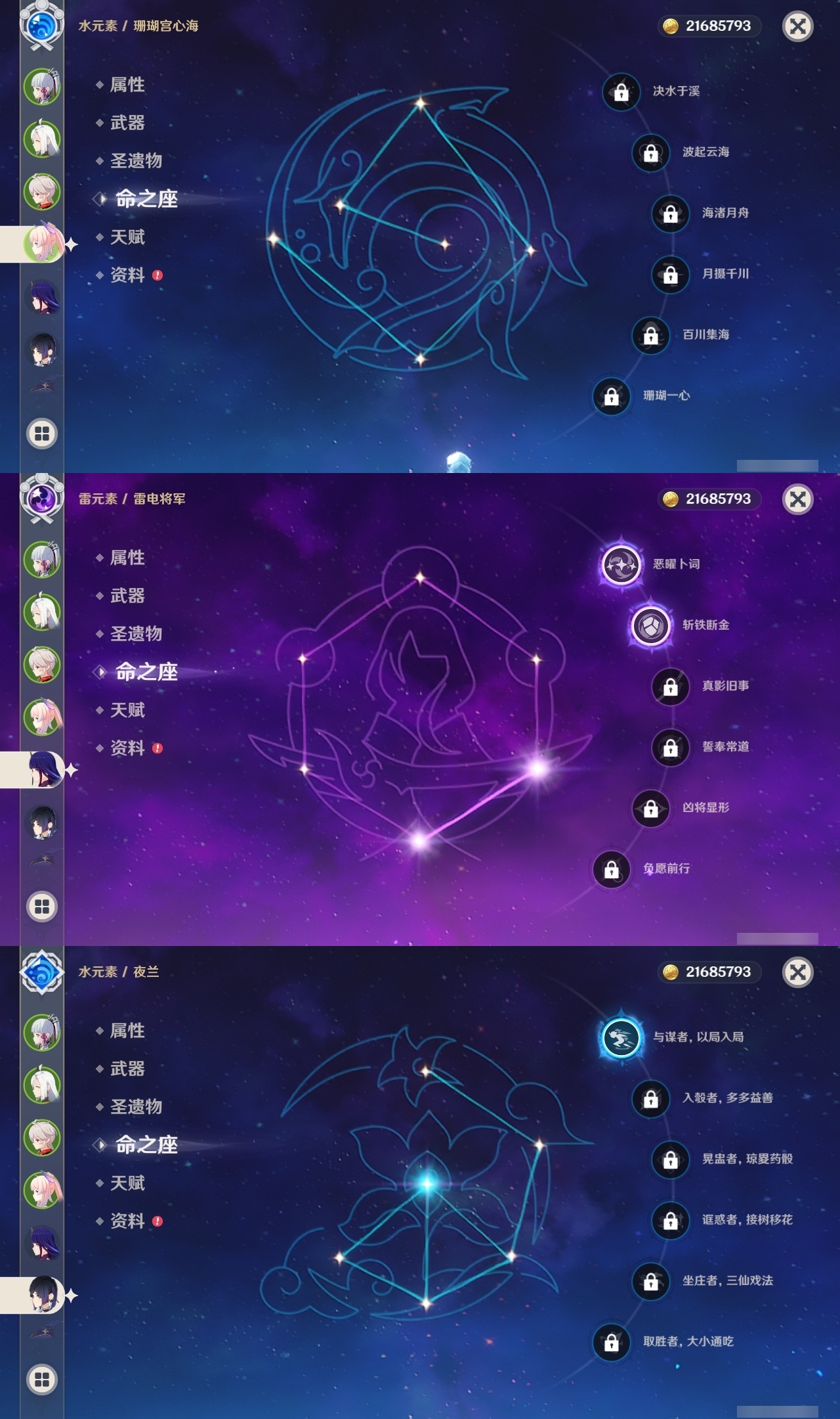 【原神】【lyys10615】冒险等级:60,五星数量:39,五星角色:迪卢克 4命阿蕾奇诺 3命枫原万叶 2命雷电将军 2命莫娜 2命神里绫华 2命提纳里 2命芙宁娜 1命刻晴 1命七七 1命琴 1命夜兰 1命珊瑚宫心海温迪玛薇卡茜特菈莉迪希雅钟离达达利亚梦见月瑞希申鹤妮露纳西妲艾尔海森胡桃__五星武器:冲浪时光最初的大魔术赤月之形飞雷之弦振和璞鸢护摩之杖四风原典天空之脊天空之卷天空之刃雾切之回光冬极白星波乱月白经津__四星角色:班尼特 6命行秋 6命九条裟罗 6命香菱 6命珐露珊 6命迪奥娜 6命砂糖 6命多莉 6命柯莱 6命芭芭拉 6命烟绯 6命重云 6命辛焱 6命诺艾尔 6命罗莎莉亚 6命雷泽 6命菲谢尔 6命北斗 6命琳妮特 6命凝光 5命坎蒂丝 5命托马 5命嘉明 5命鹿野院平藏 4命绮良良 4命云堇 4命早柚 4命菲米尼 4命卡齐娜 2命久岐忍 2命瑶瑶 2命莱依拉 2命米卡 2命赛索斯 2命五郎 1命塔利雅 1命埃洛伊蓝砚夏洛蒂