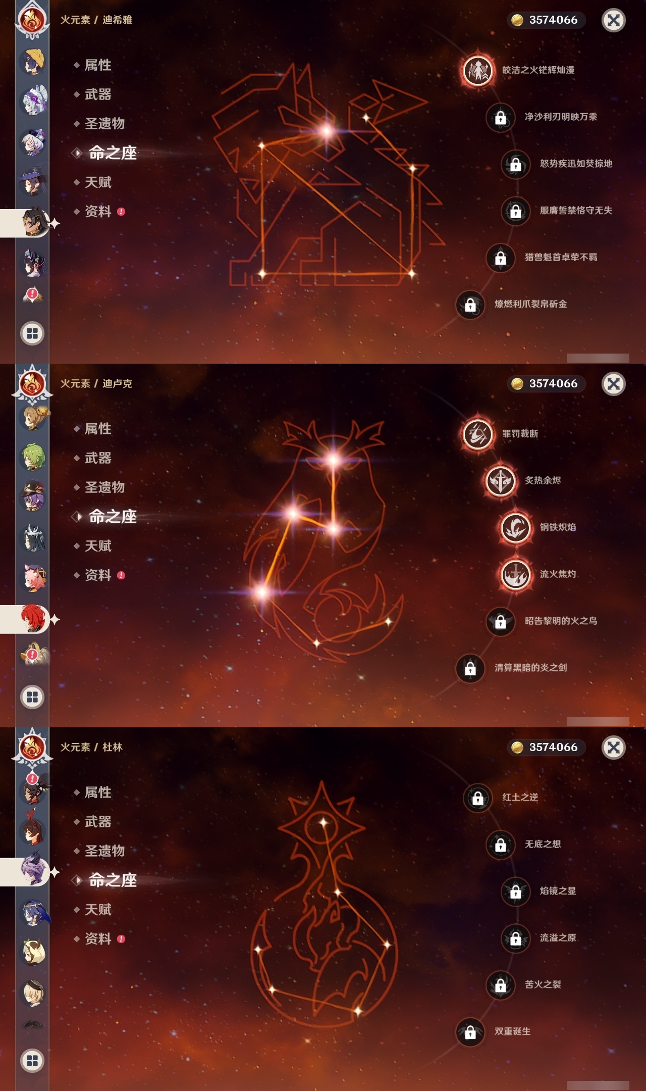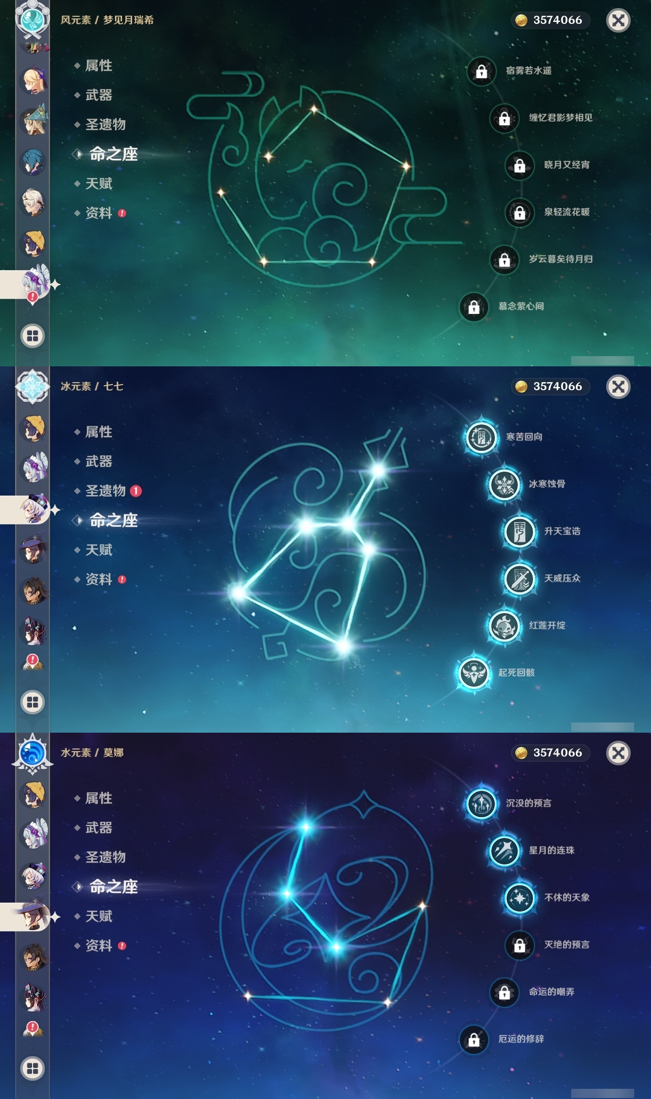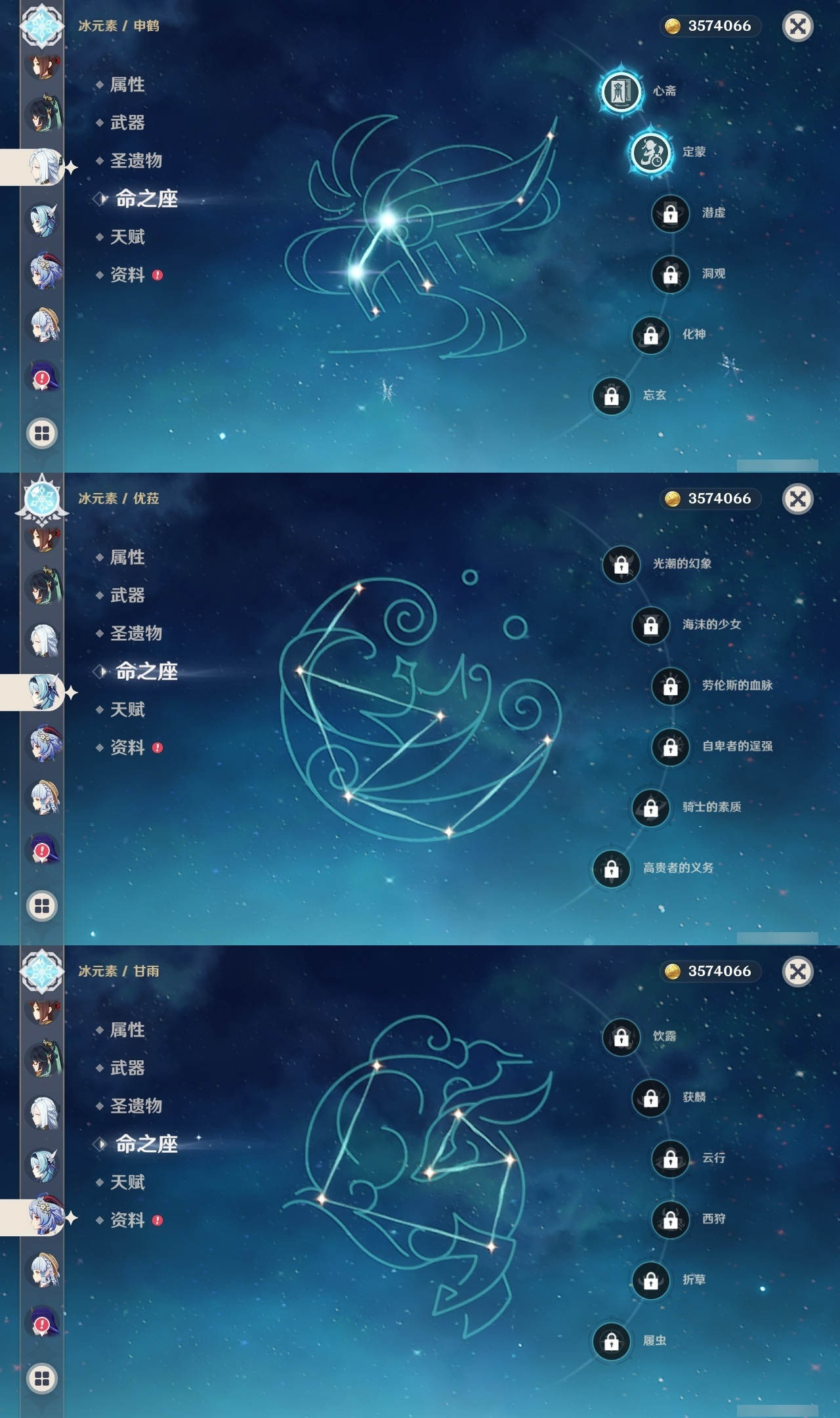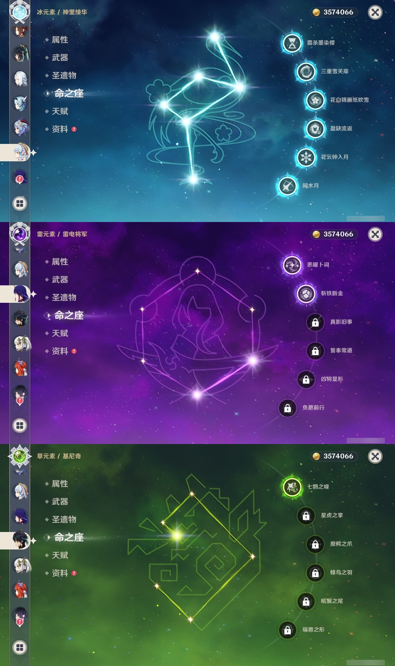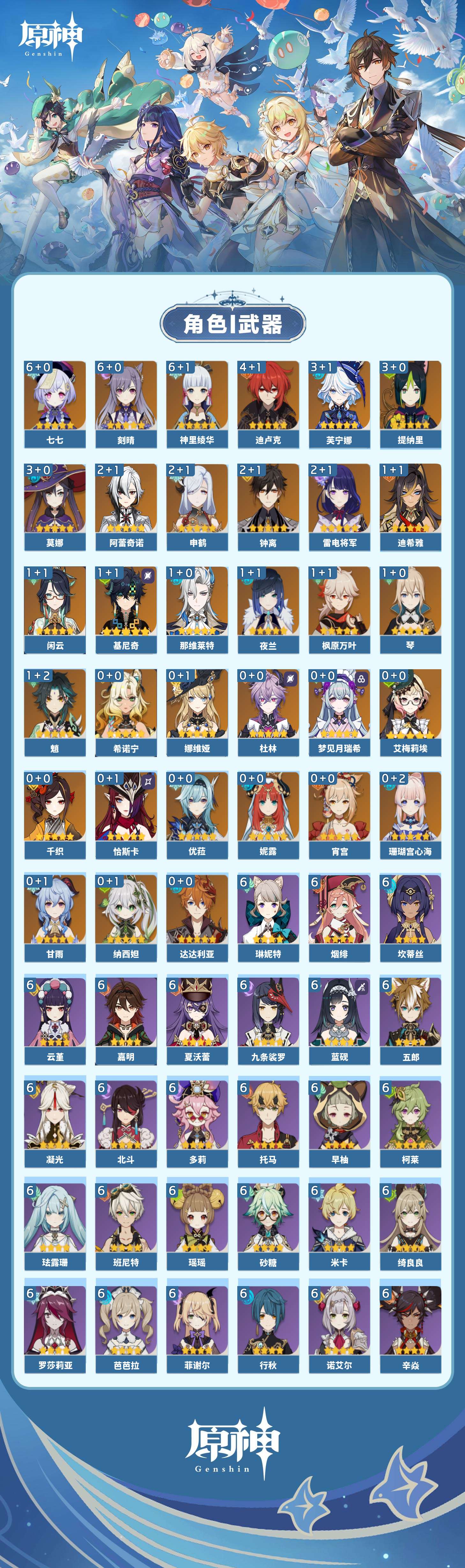 【原神】满命,冒险等级:60,五星数量:61,五星角色:刻晴 6命七七 6命神里绫华 6命迪卢克 4命芙宁娜 3命莫娜 3命提纳里 3命阿蕾奇诺 2命雷电将军 2命钟离 2命申鹤 2命基尼奇 1命迪希雅 1命那维莱特 1命闲云 1命枫原万叶 1命魈 1命琴 1命夜兰 1命艾梅莉埃珊瑚宫心海希诺宁恰斯卡宵宫优菈达达利亚梦见月瑞希娜维娅千织妮露纳西妲杜林甘雨__五星武器:不灭月华 2精和璞鸢 2精山王长牙星鹫赤羽苇海信标最初的大魔术金流监督静水流涌之辉裁断鹤鸣余音赤月之形阿莫斯之弓苍古自由之誓风鹰剑护摩之杖狼的末路磐岩结绿天空之傲天空之脊天空之刃天空之翼雾切之回光薙草之稻光息灾贯虹之槊若水赤沙之杖千夜浮梦__四星角色:班尼特 6命行秋 6命九条裟罗 6命香菱 6命鹿野院平藏 6命珐露珊 6命凝光 6命迪奥娜 6命砂糖 6命绮良良 6命瑶瑶 6命米卡 6命坎蒂丝 6命多莉 6命柯莱 6命芭芭拉 6命云堇 6命蓝砚 6命早柚 6命托马 6命五郎 6命烟绯 6命重云 6命辛焱 6命诺艾尔 6命罗莎莉亚 6命雷泽 6命菲谢尔 6命北斗 6命琳妮特 6命夏沃蕾 6命嘉明 6命久岐忍 5命卡齐娜 4命莱依拉 4命卡维 4命菲米尼 3命赛索斯 2命欧洛伦 1命伊法 1命夏洛蒂伊安珊塔利雅爱诺