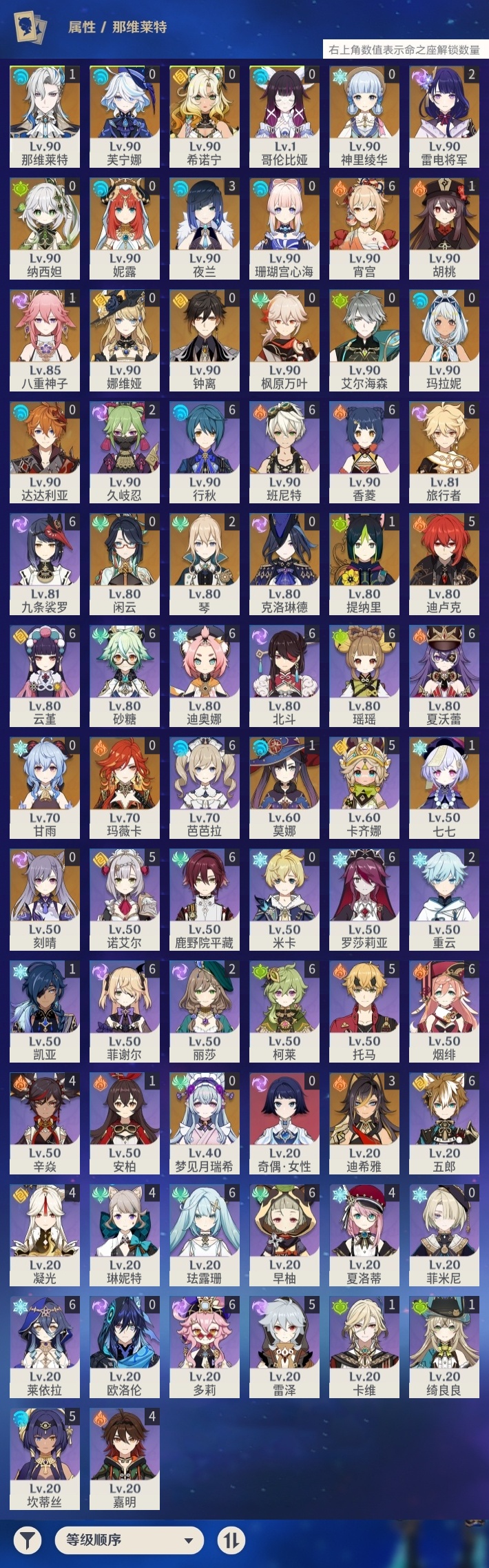 【原神】【lyys10633】冒险等级:60,五星数量:47,五星角色:宵宫 6命迪卢克 5命迪希雅 3命夜兰 3命雷电将军 2命琴 2命那维莱特 1命胡桃 1命莫娜 1命七七 1命八重神子 1命提纳里 1命玛拉妮珊瑚宫心海希诺宁神里绫华玛薇卡钟离达达利亚梦见月瑞希芙宁娜娜维娅闲云妮露纳西妲艾尔海森哥伦比娅枫原万叶甘雨克洛琳德刻晴__五星武器:岩峰巡歌 2精万世流涌大典裁断鹤鸣余音裁叶萃光飞雷之弦振风鹰剑护摩之杖狼的末路四风原典天空之傲天空之卷雾切之回光薙草之稻光若水__四星角色:班尼特 6命行秋 6命九条裟罗 6命香菱 6命鹿野院平藏 6命珐露珊 6命迪奥娜 6命砂糖 6命瑶瑶 6命莱依拉 6命多莉 6命柯莱 6命芭芭拉 6命云堇 6命早柚 6命五郎 6命烟绯 6命罗莎莉亚 6命菲谢尔 6命北斗 6命夏沃蕾 6命卡齐娜 5命坎蒂丝 5命托马 5命诺艾尔 5命雷泽 5命凝光 4命辛焱 4命琳妮特 4命夏洛蒂 4命嘉明 4命久岐忍 2命重云 2命绮良良 1命卡维 1命奇偶·女性米卡欧洛伦菲米尼