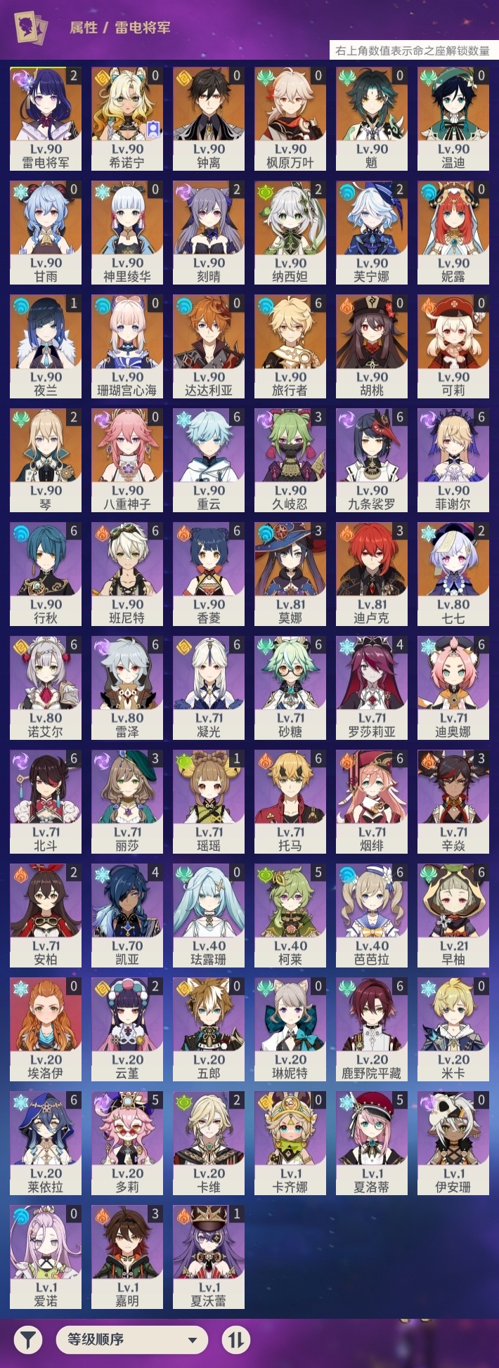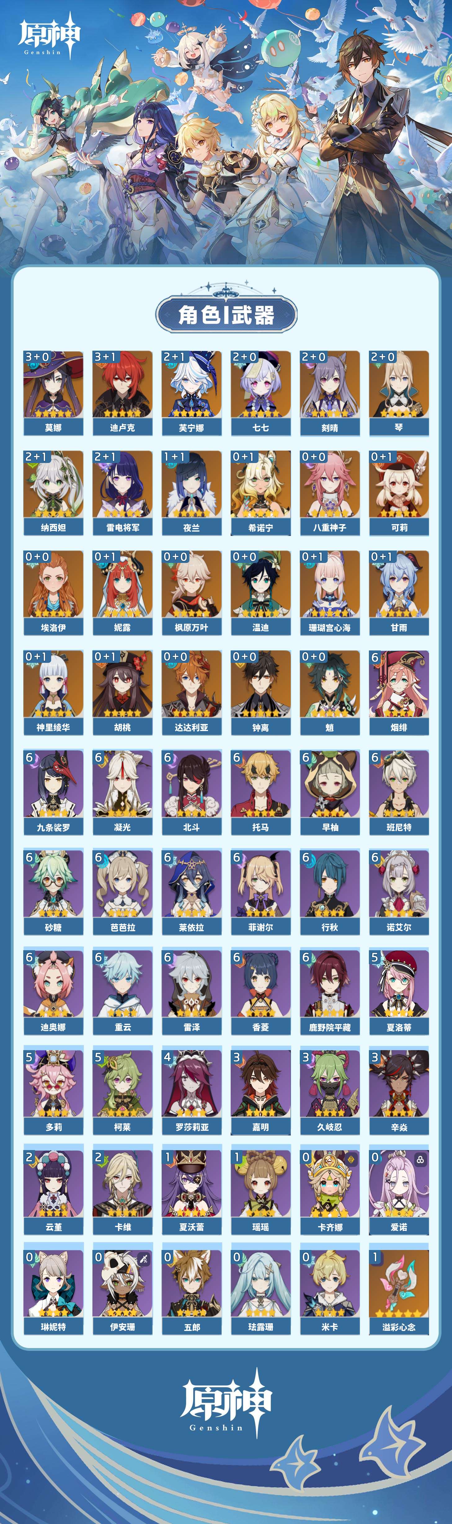 【原神】【lyys10637】冒险等级:60,五星数量:41,五星角色:迪卢克 3命莫娜 3命芙宁娜 2命刻晴 2命雷电将军 2命七七 2命琴 2命纳西妲 2命夜兰 1命珊瑚宫心海希诺宁神里绫华温迪钟离达达利亚八重神子妮露枫原万叶甘雨魈胡桃可莉__五星武器:岩峰巡歌溢彩心念静水流涌之辉阿莫斯之弓不灭月华风鹰剑护摩之杖狼的末路四风原典天空之傲天空之脊天空之卷天空之刃雾切之回光薙草之稻光若水圣显之钥千夜浮梦__四星角色:班尼特 6命行秋 6命九条裟罗 6命香菱 6命鹿野院平藏 6命凝光 6命迪奥娜 6命砂糖 6命莱依拉 6命芭芭拉 6命早柚 6命托马 6命烟绯 6命重云 6命诺艾尔 6命雷泽 6命菲谢尔 6命北斗 6命多莉 5命柯莱 5命夏洛蒂 5命罗莎莉亚 4命久岐忍 3命辛焱 3命嘉明 3命卡维 2命云堇 2命瑶瑶 1命夏沃蕾 1命埃洛伊卡齐娜珐露珊米卡五郎琳妮特伊安珊爱诺