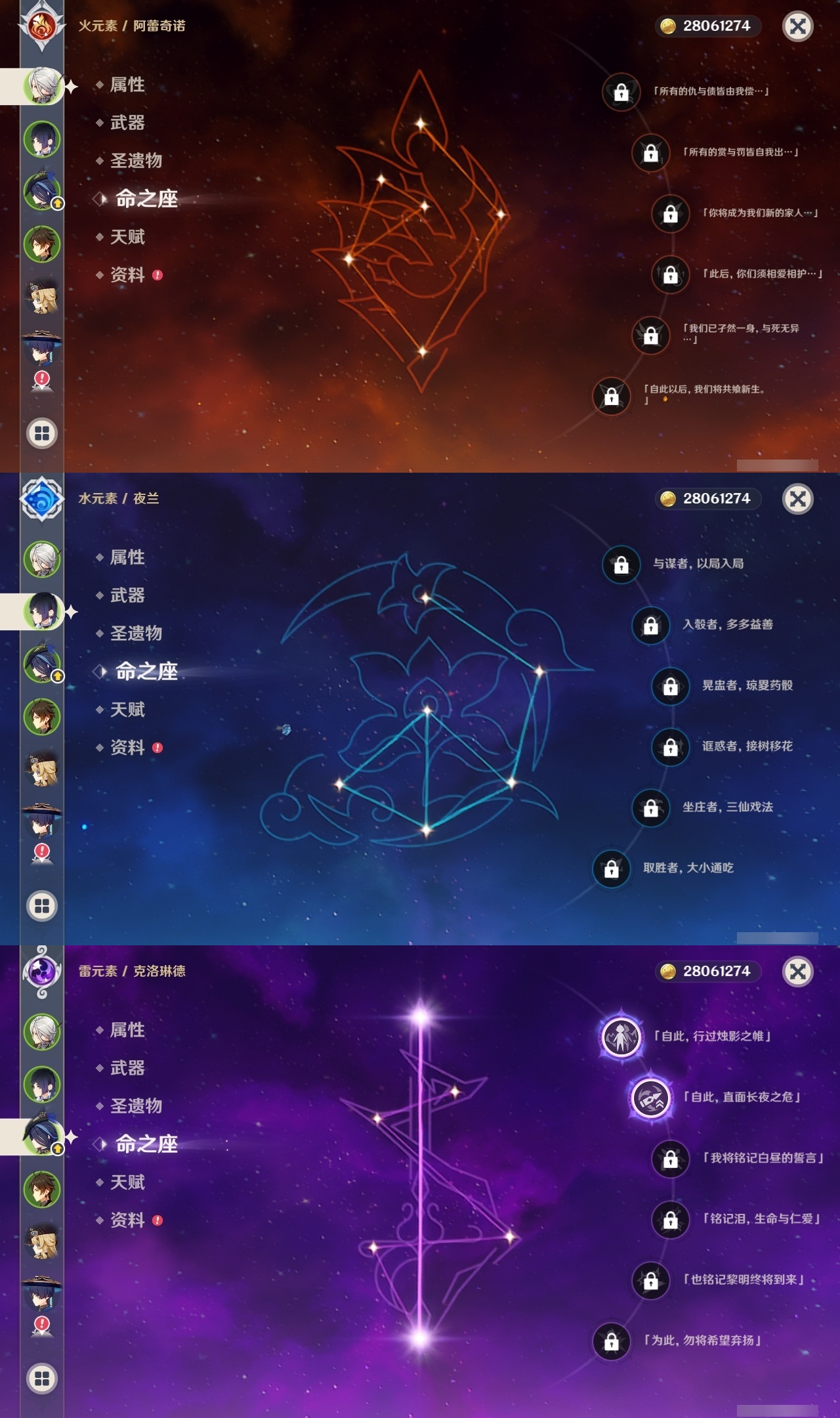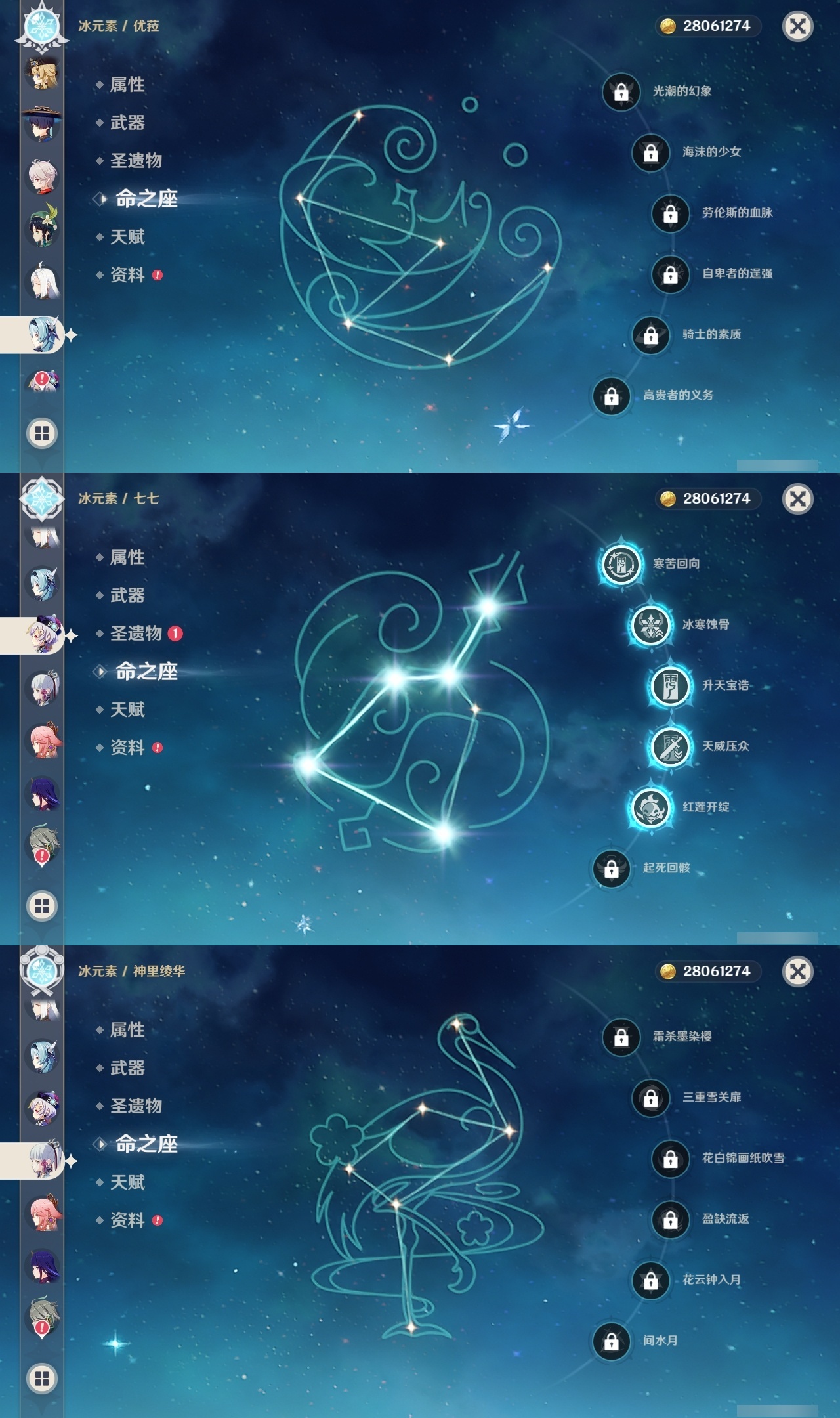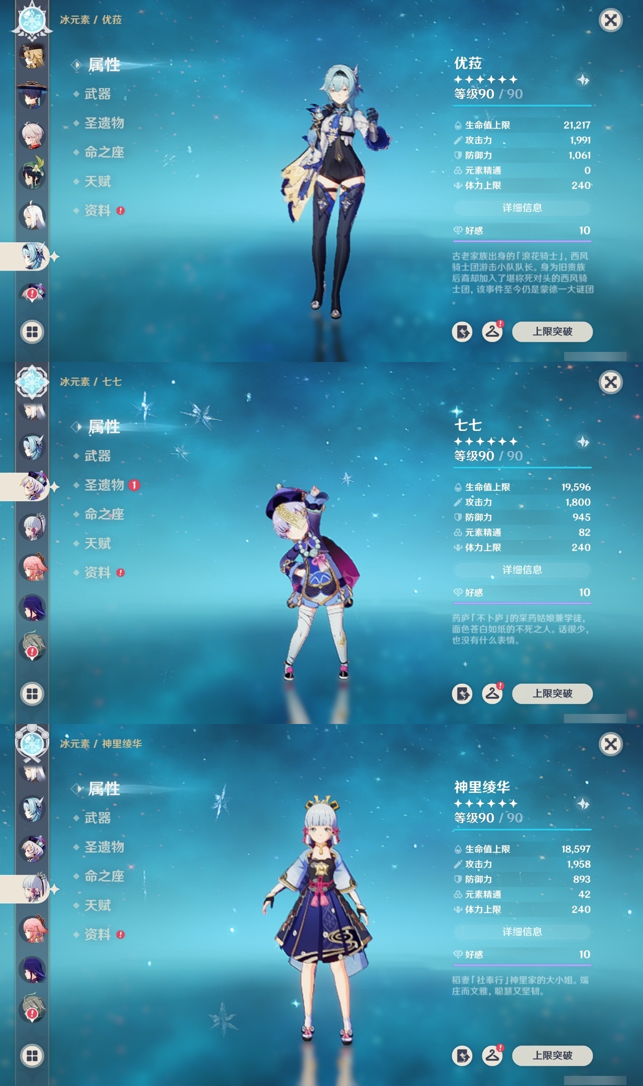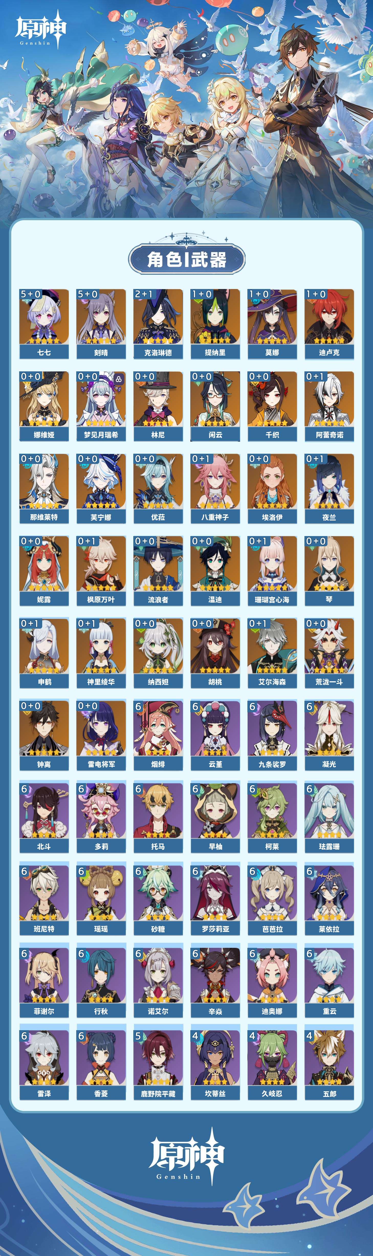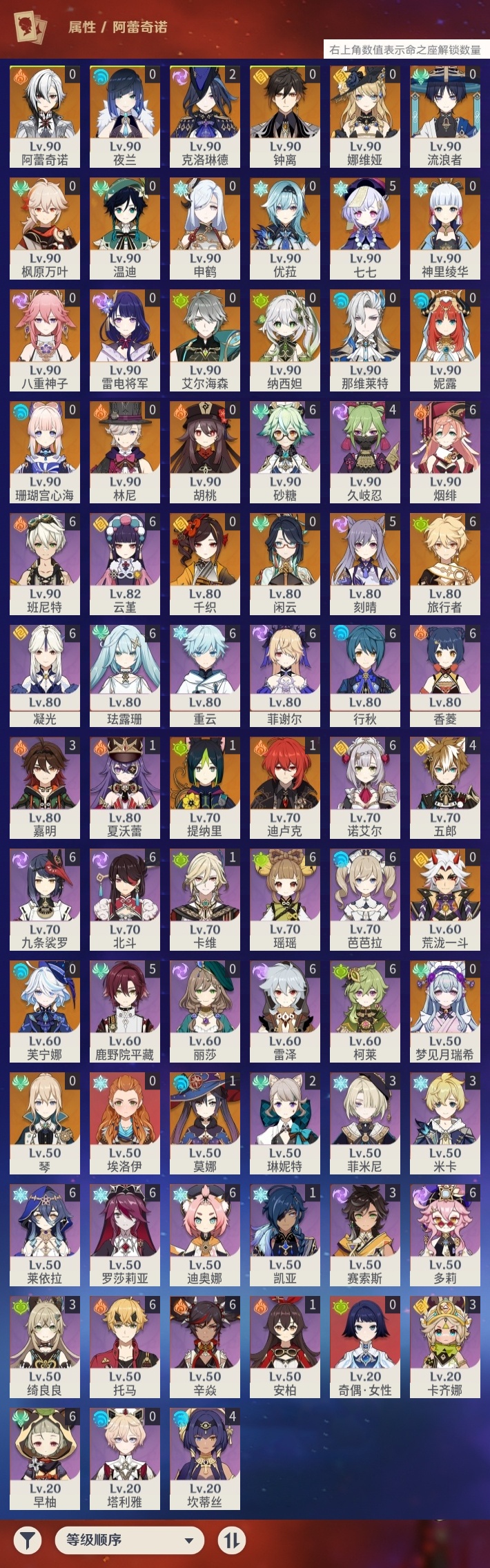 【原神】【lyys10638】冒险等级:60,五星数量:49,五星角色:刻晴 5命七七 5命克洛琳德 2命迪卢克 1命莫娜 1命提纳里 1命琴珊瑚宫心海神里绫华温迪优菈钟离荒泷一斗梦见月瑞希申鹤八重神子林尼那维莱特夜兰芙宁娜娜维娅闲云千织阿蕾奇诺妮露纳西妲艾尔海森流浪者枫原万叶胡桃雷电将军__五星武器:天空之傲 4精阿莫斯之弓 3精天空之翼 2精金流监督赤月之形裁叶萃光不灭月华苍古自由之誓和璞鸢磐岩结绿四风原典雾切之回光息灾神乐之真意若水赦罪__四星角色:班尼特 6命行秋 6命九条裟罗 6命香菱 6命珐露珊 6命凝光 6命迪奥娜 6命砂糖 6命瑶瑶 6命莱依拉 6命多莉 6命柯莱 6命芭芭拉 6命云堇 6命早柚 6命托马 6命烟绯 6命重云 6命辛焱 6命诺艾尔 6命罗莎莉亚 6命雷泽 6命菲谢尔 6命北斗 6命鹿野院平藏 5命久岐忍 4命坎蒂丝 4命五郎 4命卡齐娜 3命绮良良 3命米卡 3命菲米尼 3命嘉明 3命赛索斯 3命琳妮特 2命卡维 1命夏沃蕾 1命埃洛伊奇偶·女性塔利雅