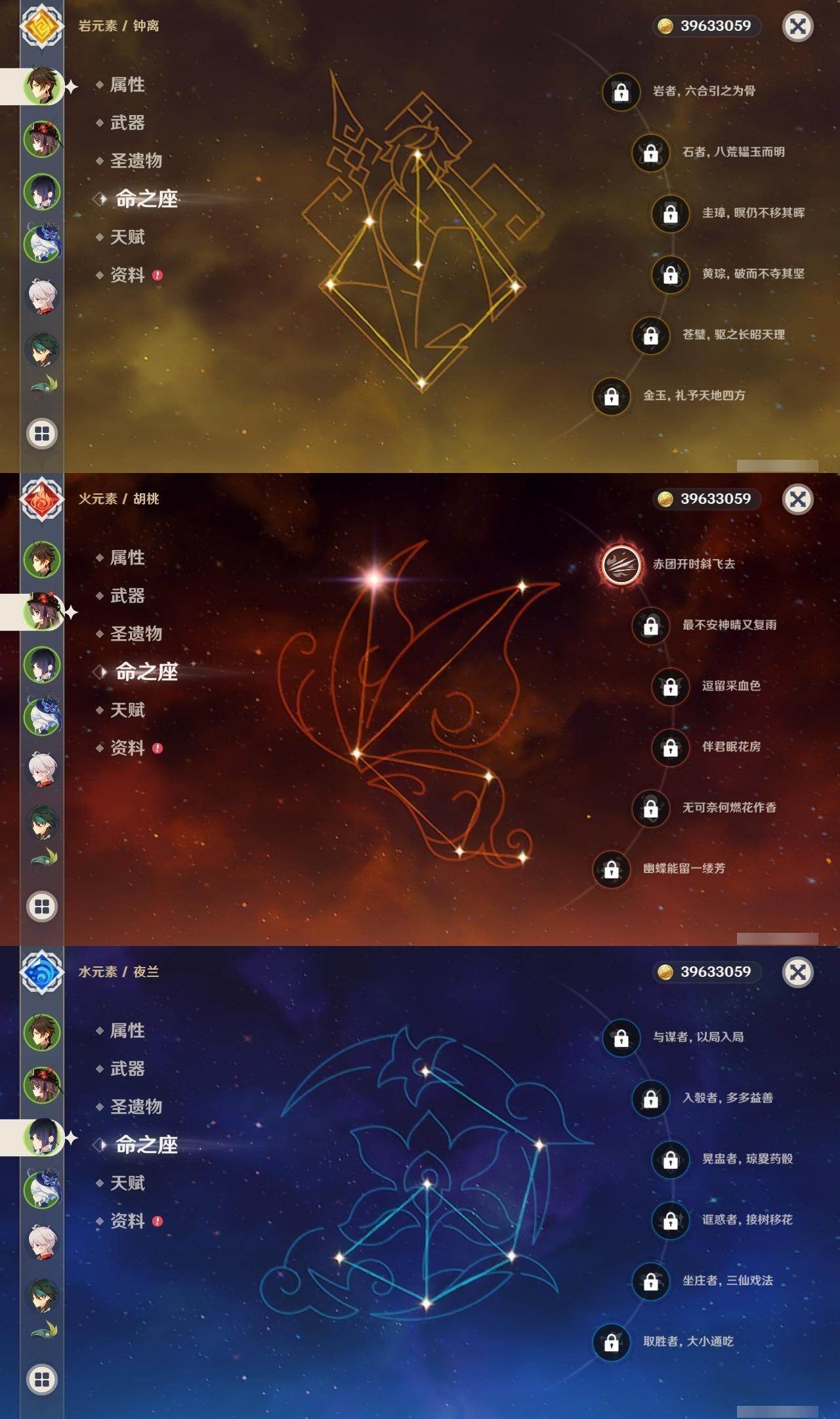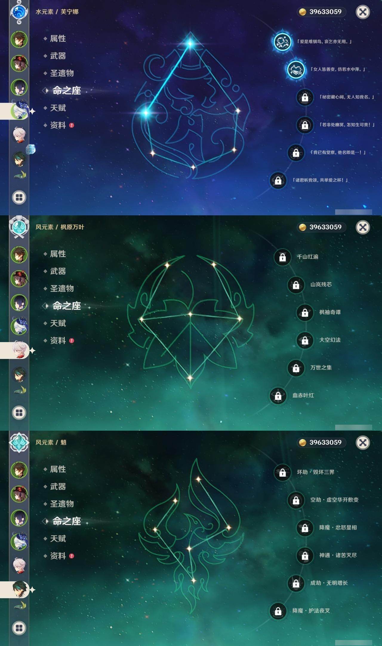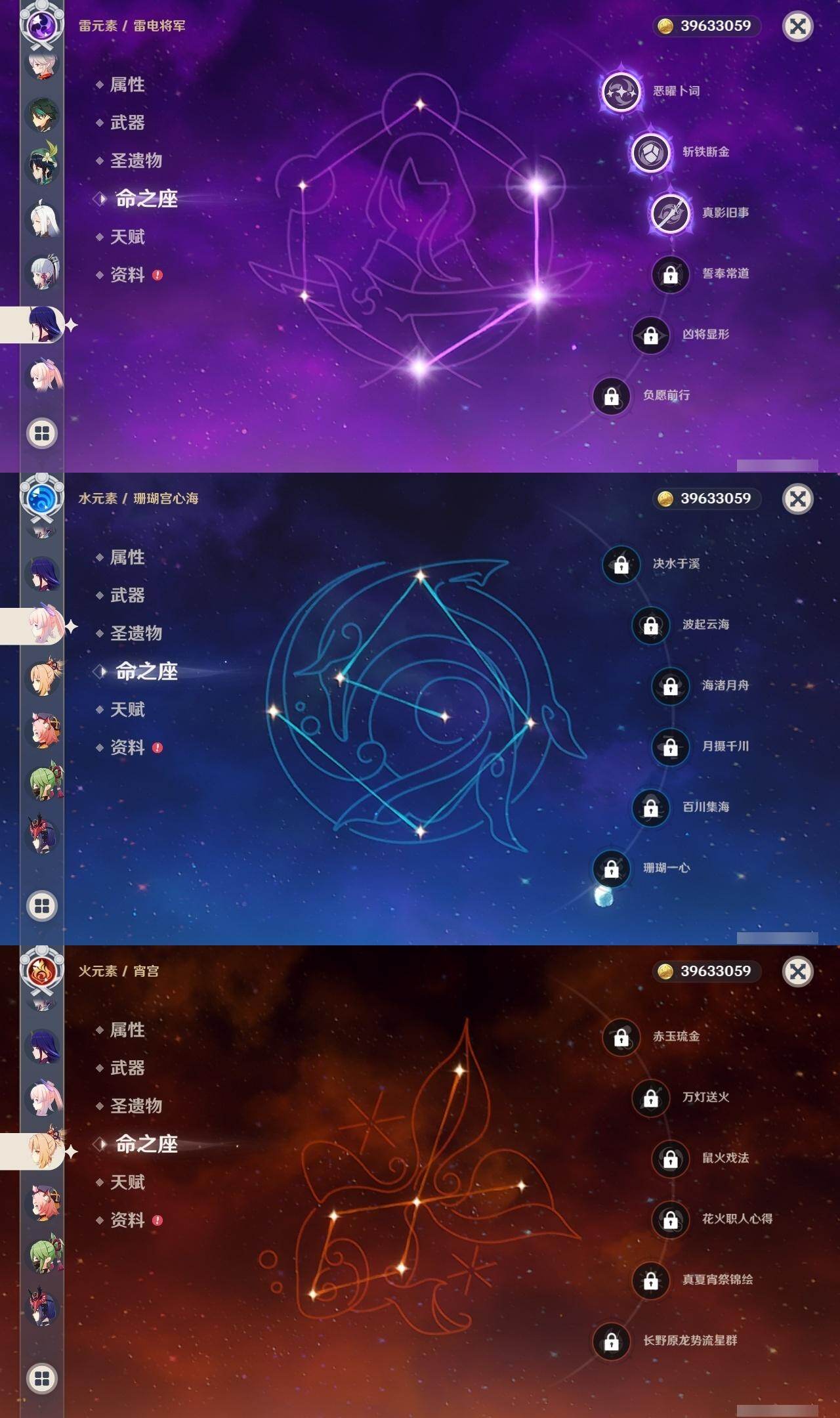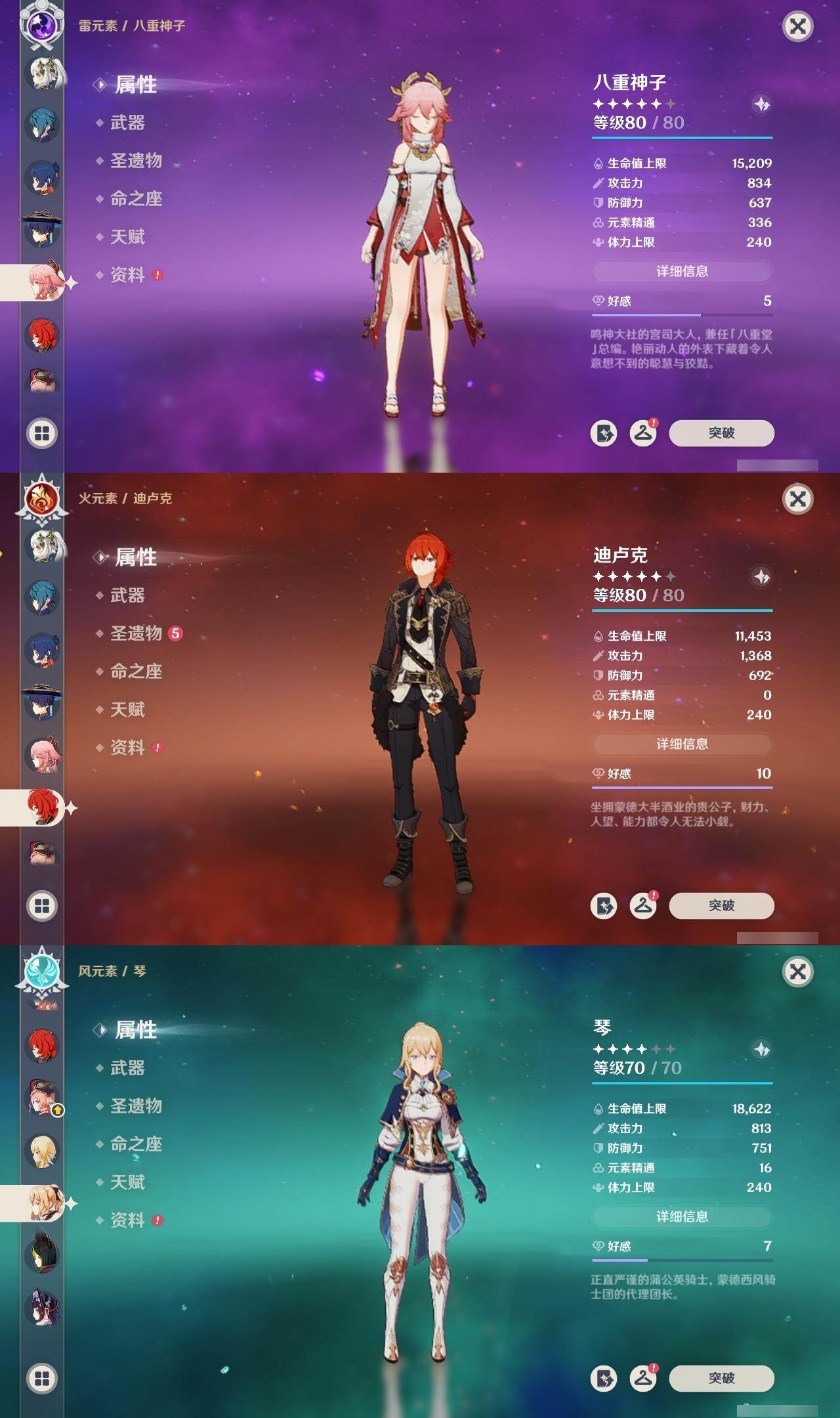 60级/50黄/女主/24个五星角色/7个五星武器 2命芙宁娜0命那维莱特0命流浪者0命纳西妲1命提纳里0命夜兰0命八重神子0命申鹤3命雷电将军0命枫原万叶0命神里绫华0命钟离1命胡桃0命魈0命宵宫0命温迪0命达达利亚0命珊瑚宫心海0命刻晴1命七七满命琴4命莫娜1命迪卢克0命基尼奇精1神乐之真意精1薙草之稻光精1护摩之杖精1风鹰剑精1狼的末路精1天空之傲
