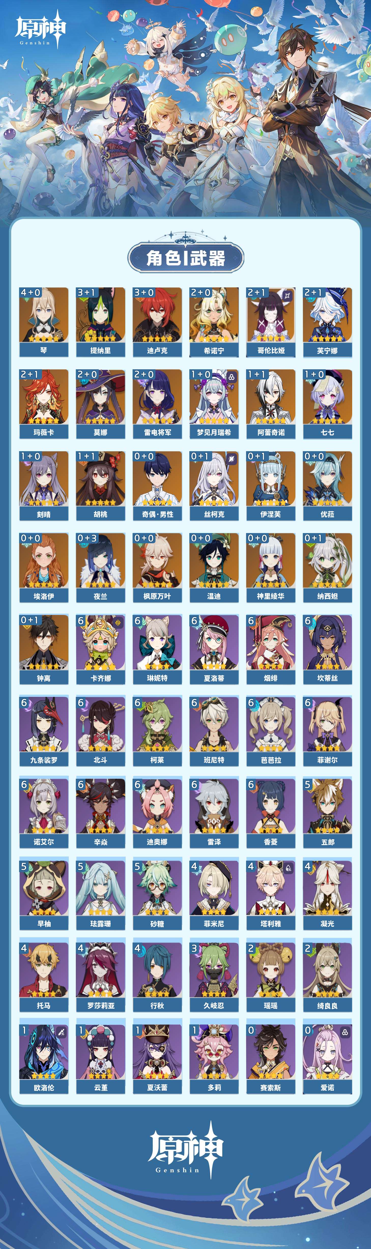 【原神】【lyys9978】冒险等级:60,五星数量:44,五星角色:琴 4命迪卢克 3命提纳里 3命希诺宁 2命玛薇卡 2命芙宁娜 2命哥伦比娅 2命雷电将军 2命莫娜 2命梦见月瑞希 1命阿蕾奇诺 1命胡桃 1命刻晴 1命七七 1命神里绫华温迪优菈钟离夜兰丝柯克伊涅芙纳西妲枫原万叶__五星武器:若水 3精风鹰剑 2精和璞鸢 2精天空之傲 2精焚曜千阳静水流涌之辉赤月之形苍耀支离轮光帷间夜曲护摩之杖四风原典天空之脊息灾贯虹之槊波乱月白经津猎人之径千夜浮梦__四星角色:卡齐娜 6命班尼特 6命九条裟罗 6命香菱 6命迪奥娜 6命坎蒂丝 6命柯莱 6命芭芭拉 6命烟绯 6命辛焱 6命诺艾尔 6命雷泽 6命菲谢尔 6命北斗 6命琳妮特 6命夏洛蒂 6命珐露珊 5命砂糖 5命早柚 5命五郎 5命行秋 4命凝光 4命托马 4命罗莎莉亚 4命菲米尼 4命塔利雅 4命久岐忍 3命绮良良 2命瑶瑶 2命多莉 1命欧洛伦 1命云堇 1命夏沃蕾 1命埃洛伊奇偶·女性奇偶·男性鹿野院平藏莱依拉米卡卡维蓝砚重云嘉明伊法爱诺赛索斯带410抽