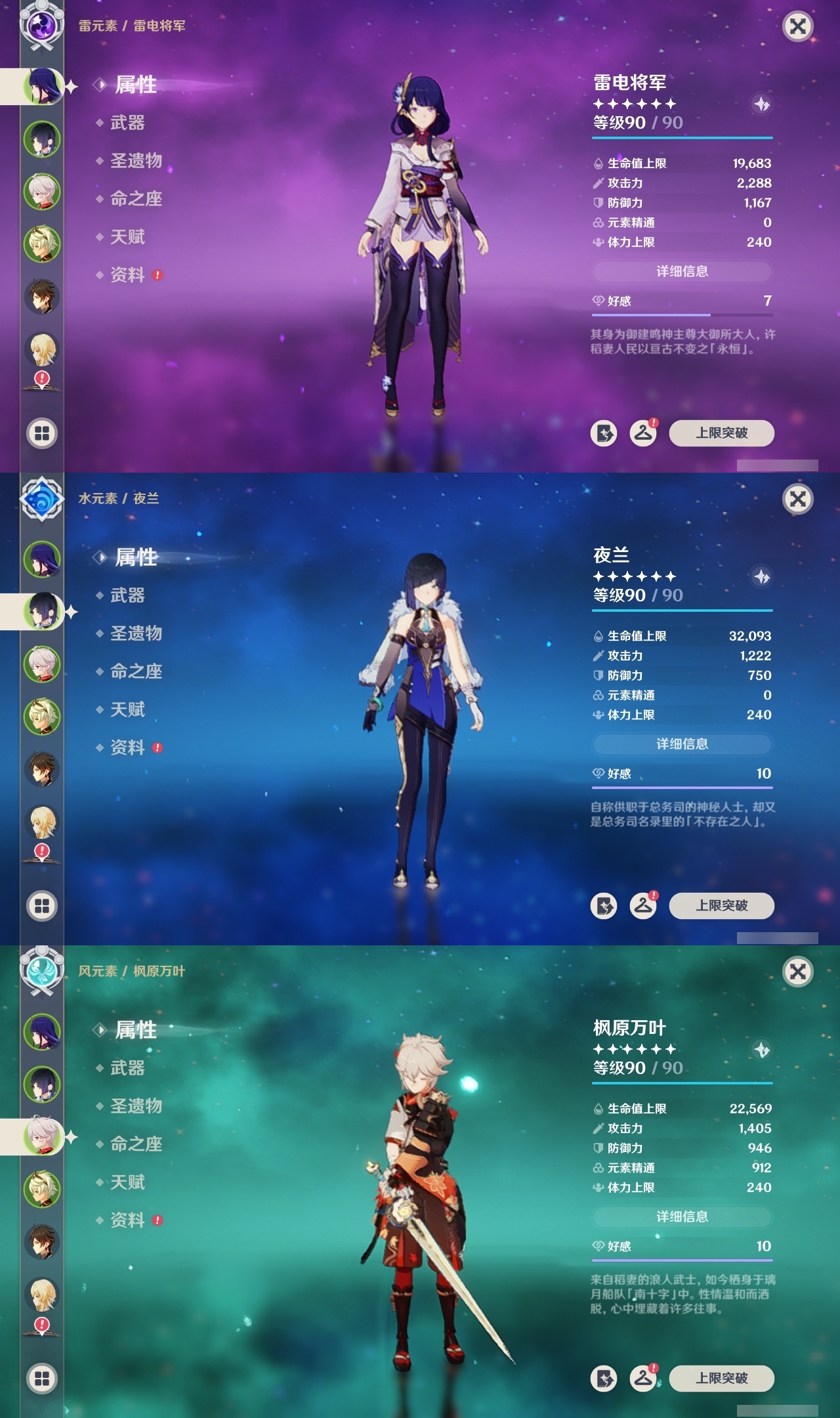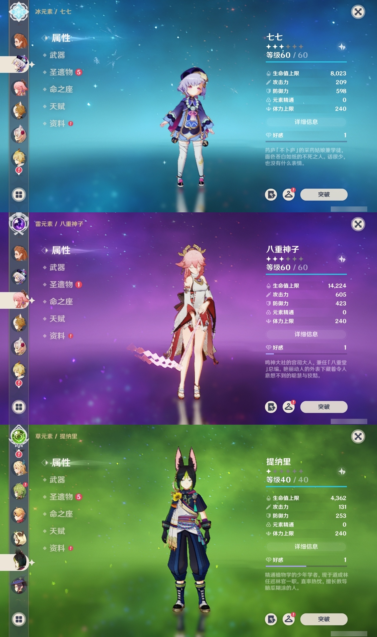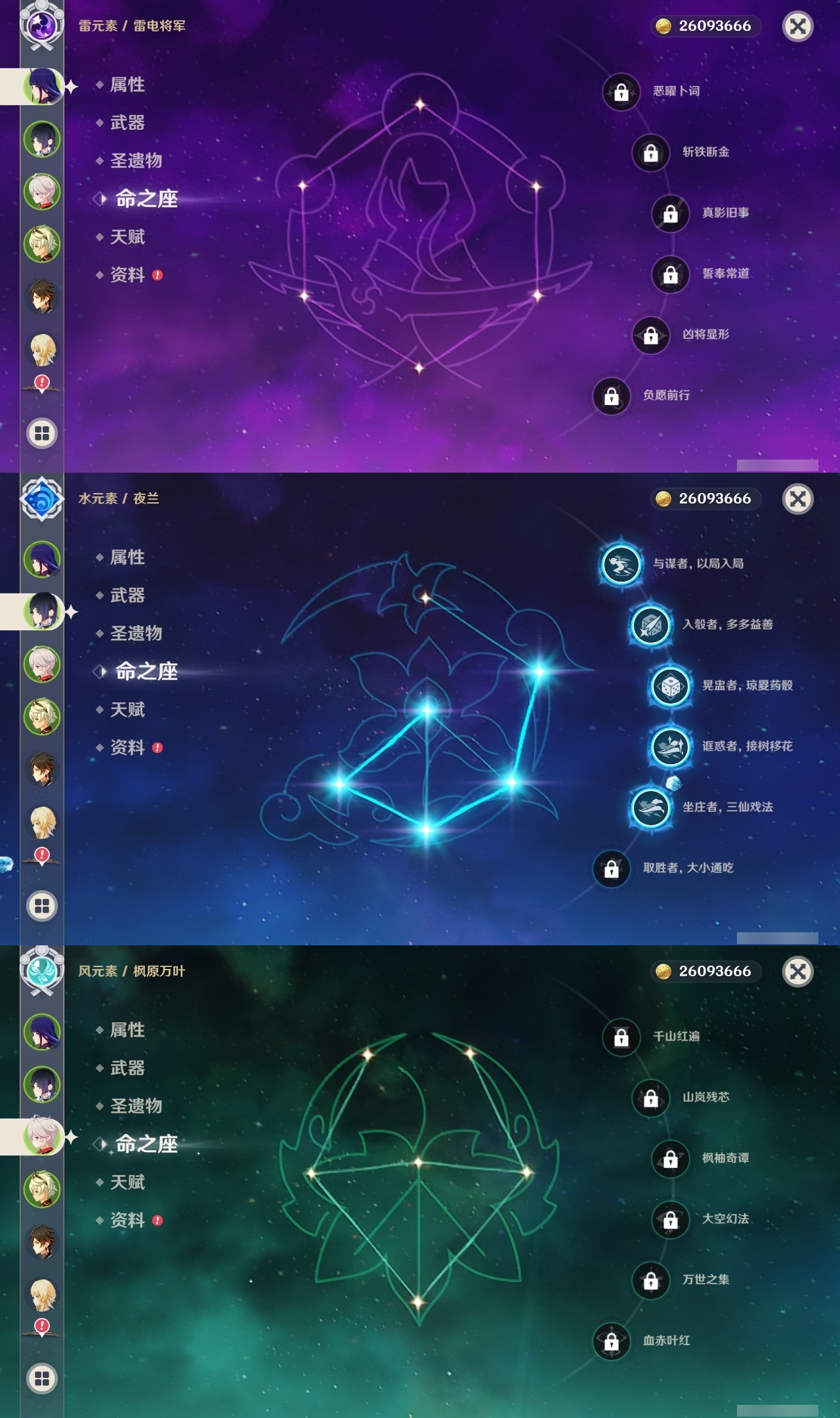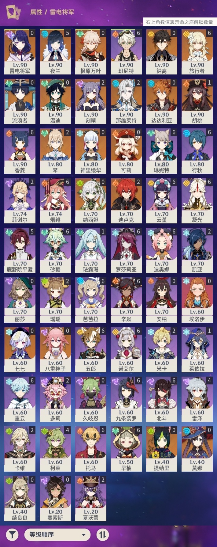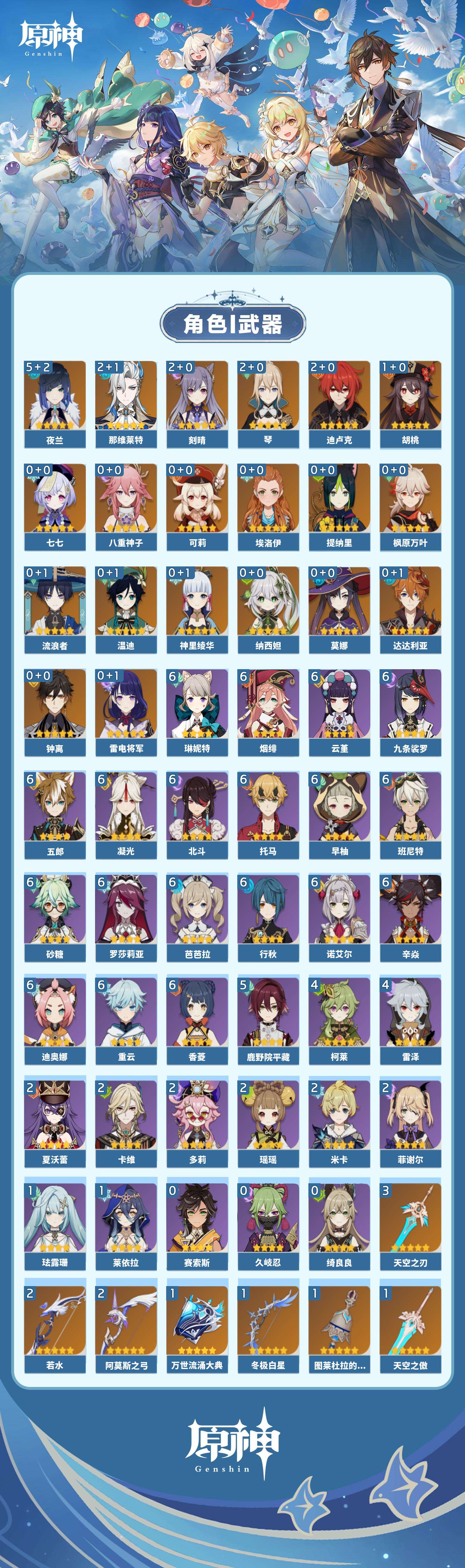 【原神】【lyys10682】冒险等级:60,五星数量:31,五星角色:夜兰 5命那维莱特 2命迪卢克 2命刻晴 2命琴 2命胡桃 1命莫娜七七神里绫华温迪钟离达达利亚八重神子提纳里纳西妲流浪者枫原万叶可莉雷电将军__五星武器:天空之刃 3精阿莫斯之弓 2精若水 2精万世流涌大典图莱杜拉的回忆天空之傲雾切之回光薙草之稻光终末嗟叹之诗冬极白星赤沙之杖__四星角色:班尼特 6命行秋 6命九条裟罗 6命香菱 6命凝光 6命迪奥娜 6命砂糖 6命芭芭拉 6命云堇 6命早柚 6命托马 6命五郎 6命烟绯 6命重云 6命辛焱 6命诺艾尔 6命罗莎莉亚 6命北斗 6命琳妮特 6命鹿野院平藏 5命柯莱 4命雷泽 4命瑶瑶 2命米卡 2命多莉 2命卡维 2命菲谢尔 2命夏沃蕾 2命珐露珊 1命莱依拉 1命埃洛伊久岐忍绮良良赛索斯