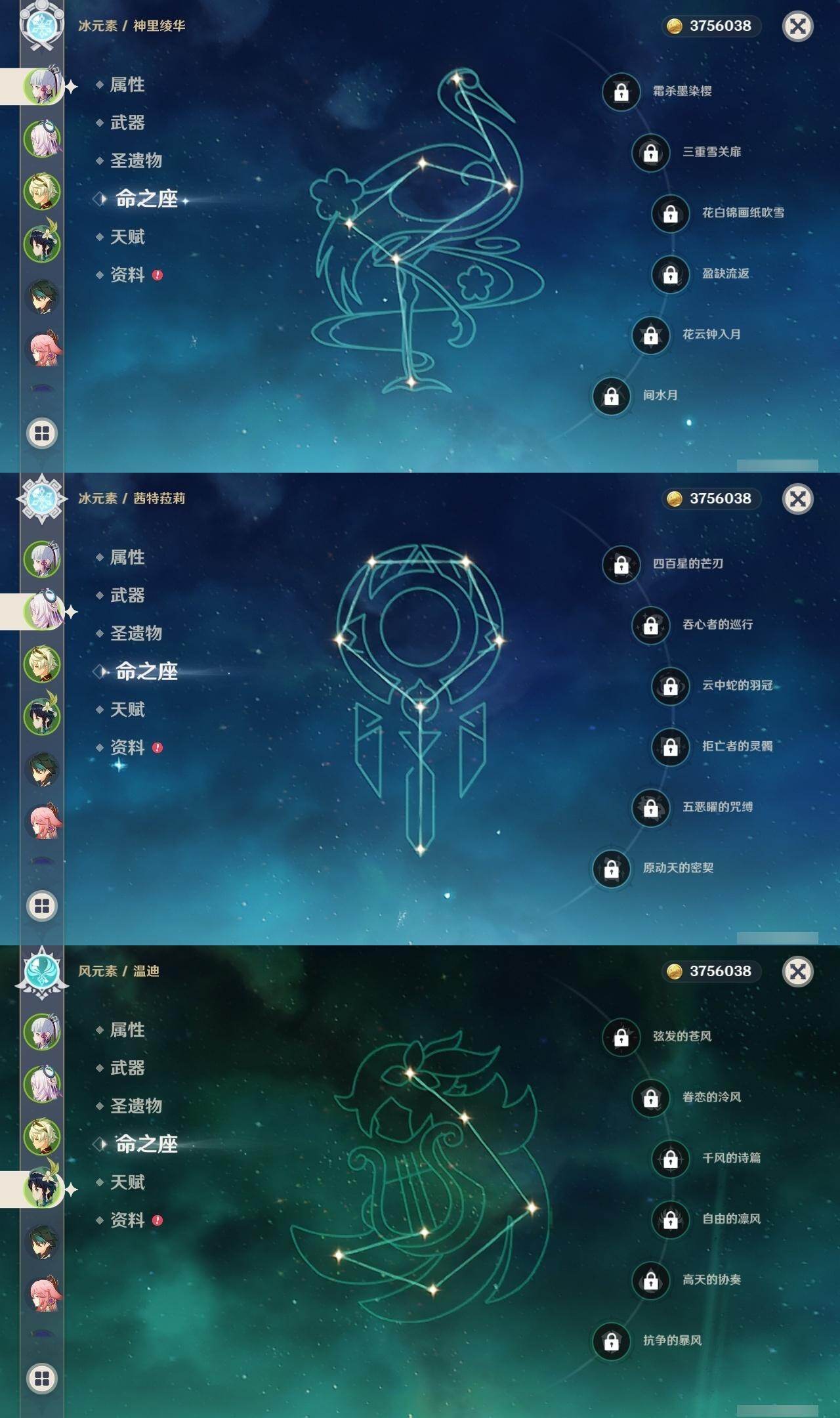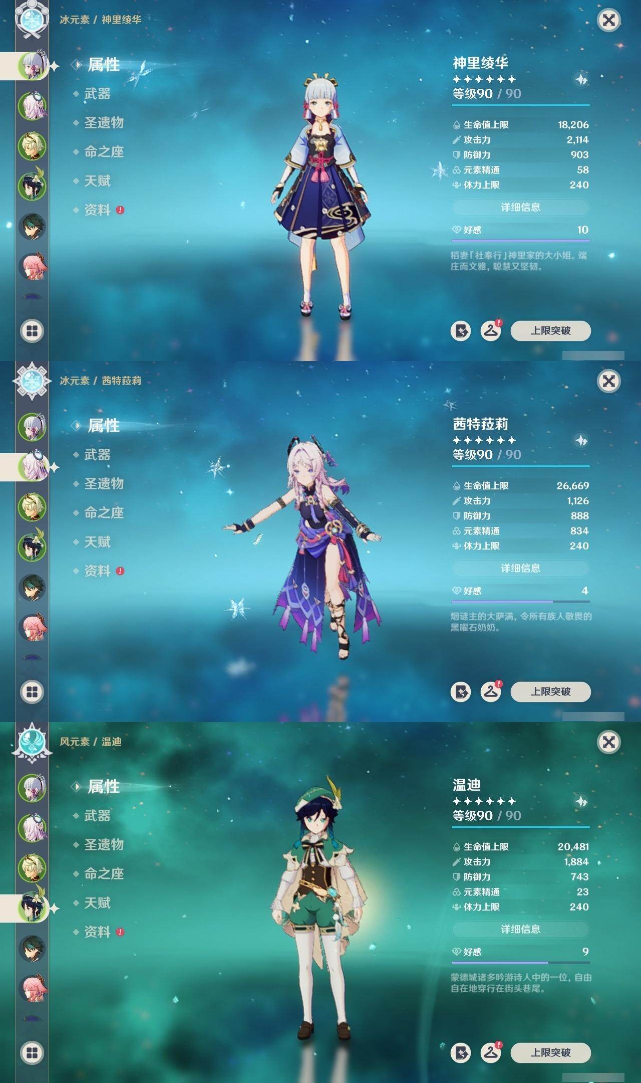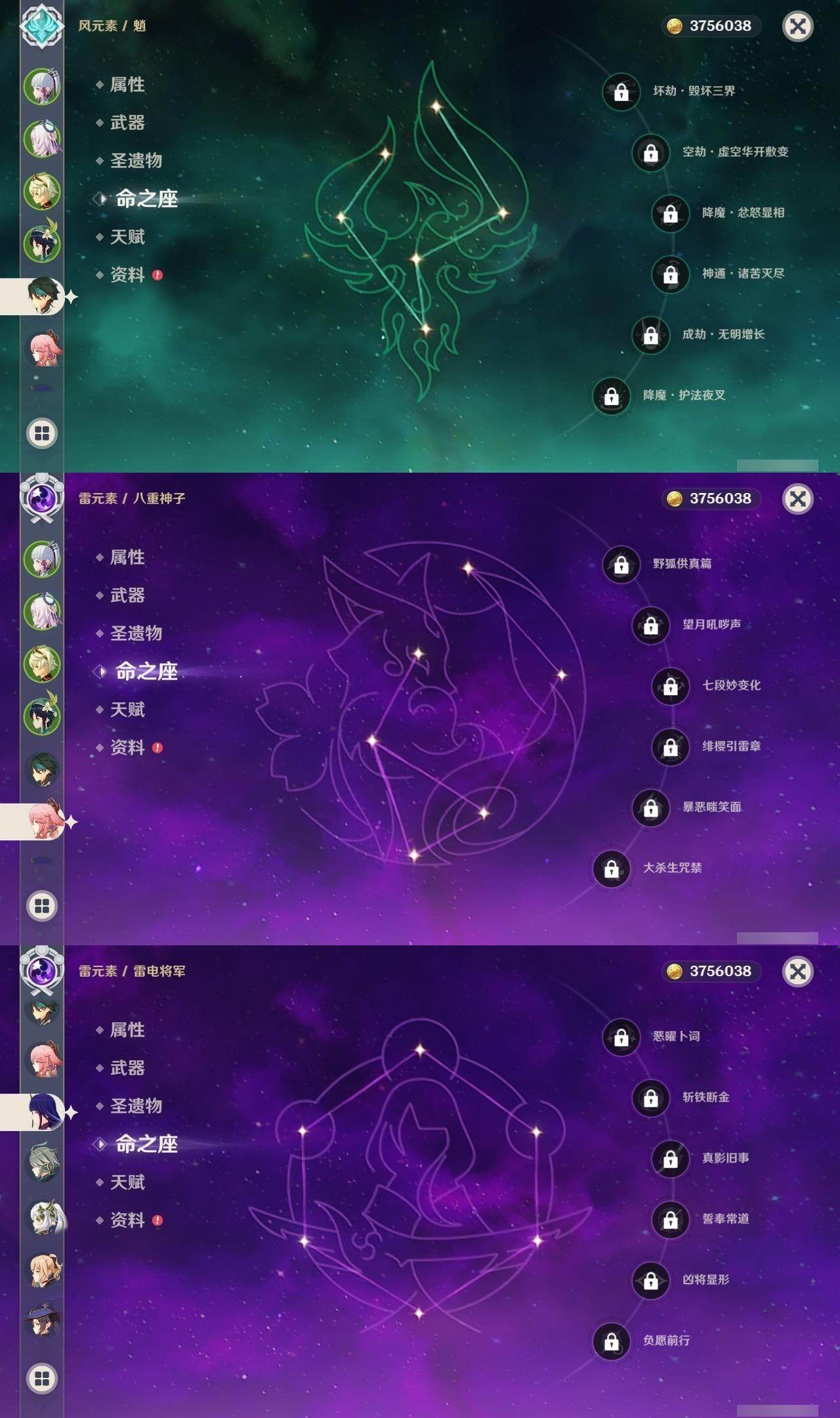 56级/22黄/男主/15个五星角色/4个五星武器 0命迪希雅0命艾尔海森0命纳西妲0命提纳里0命八重神子0命雷电将军0命神里绫华0命魈0命温迪0命七七3命琴0命莫娜0命迪卢克0命茜特菈莉0命梦见月瑞希精1四风原典精1天空之翼精1岩峰巡歌精1祭星者之望