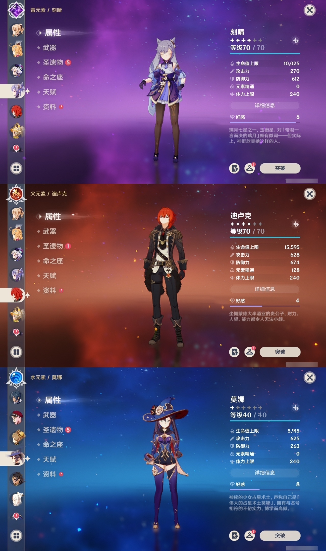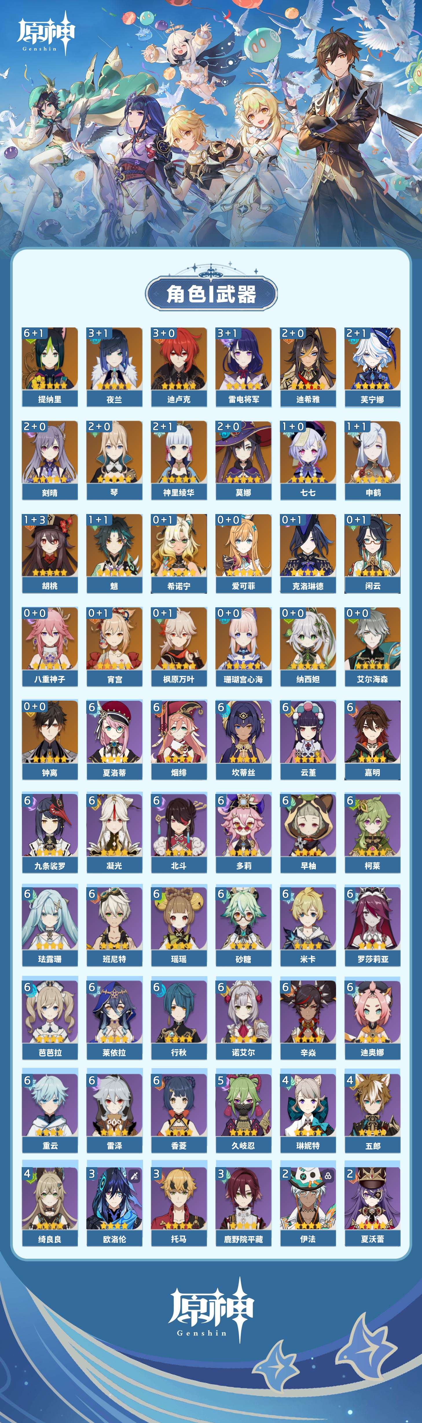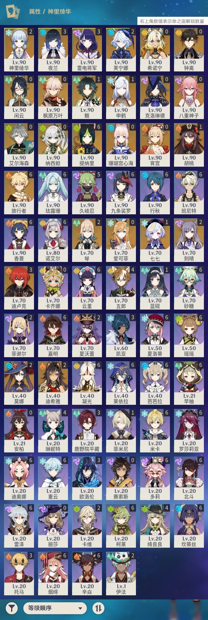 【原神】【lyys10706】冒险等级:60,五星数量:44,五星角色:提纳里 6命迪卢克 3命雷电将军 3命夜兰 3命迪希雅 2命芙宁娜 2命刻晴 2命莫娜 2命琴 2命神里绫华 2命魈 1命胡桃 1命七七 1命申鹤 1命珊瑚宫心海希诺宁宵宫钟离八重神子闲云爱可菲纳西妲艾尔海森枫原万叶克洛琳德__五星武器:护摩之杖 3精四风原典 3精天空之卷 2精波乱月白经津 2精岩峰巡歌静水流涌之辉鹤鸣余音苍古自由之誓飞雷之弦振和璞鸢磐岩结绿天空之傲天空之刃雾切之回光薙草之稻光息灾若水猎人之径赦罪__四星角色:班尼特 6命行秋 6命九条裟罗 6命香菱 6命珐露珊 6命凝光 6命迪奥娜 6命砂糖 6命瑶瑶 6命莱依拉 6命米卡 6命坎蒂丝 6命多莉 6命柯莱 6命芭芭拉 6命云堇 6命早柚 6命烟绯 6命重云 6命辛焱 6命诺艾尔 6命罗莎莉亚 6命雷泽 6命北斗 6命夏洛蒂 6命嘉明 6命久岐忍 5命绮良良 4命五郎 4命琳妮特 4命鹿野院平藏 3命欧洛伦 3命托马 3命卡维 2命菲谢尔 2命夏沃蕾 2命伊法 2命蓝砚 1命菲米尼 1命卡齐娜赛索斯