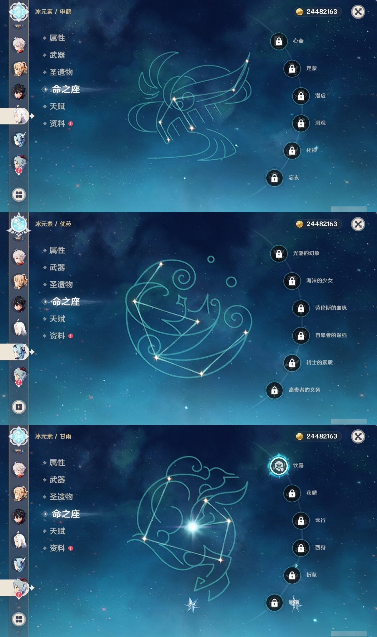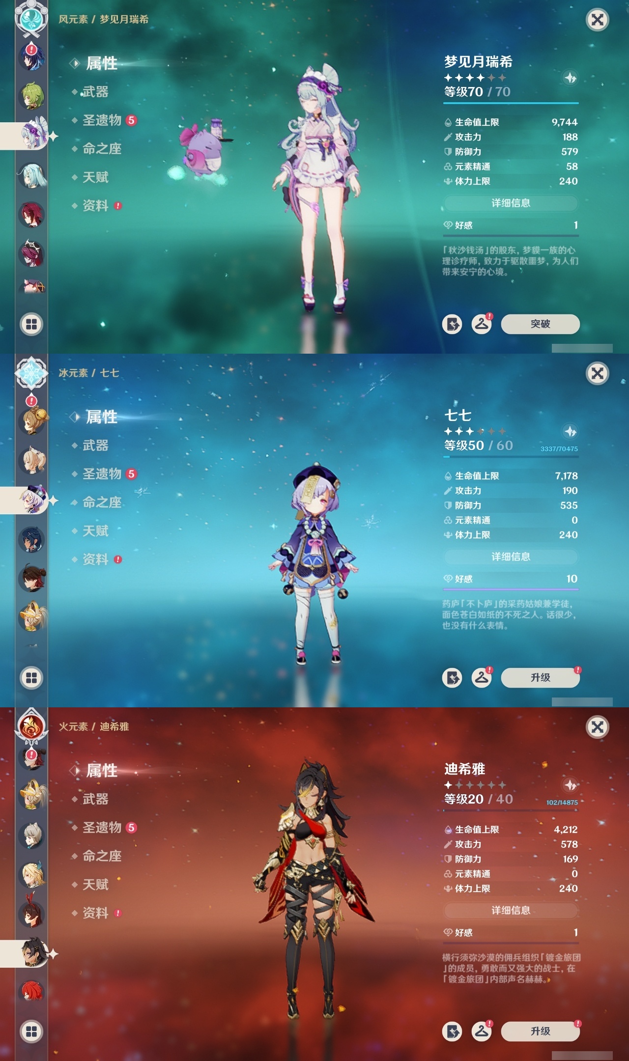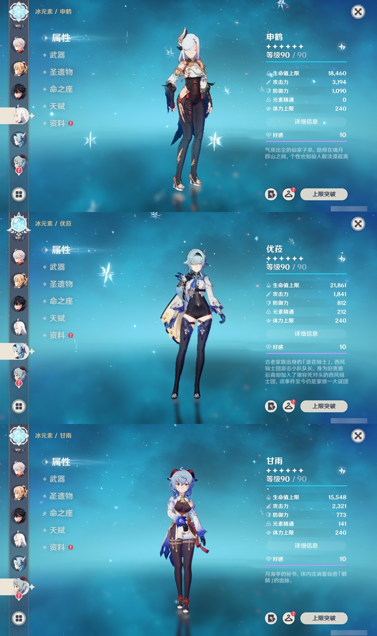 【原神】【lyys10727】冒险等级:60,五星数量:44,五星角色:纳西妲 6命莫娜 5命琴 4命迪卢克 3命刻晴 3命七七 3命芙宁娜 2命雷电将军 2命八重神子 2命夜兰 2命梦见月瑞希 1命那维莱特 1命莱欧斯利 1命甘雨 1命胡桃 1命珊瑚宫心海神里绫华宵宫优菈迪希雅钟离荒泷一斗申鹤娜维娅闲云妮露流浪者杜林枫原万叶__五星武器:万世流涌大典金流监督静水流涌之辉裁断风鹰剑护摩之杖狼的末路磐岩结绿天空之傲天空之脊薙草之稻光息灾神乐之真意若水千夜浮梦__四星角色:班尼特 6命行秋 6命九条裟罗 6命香菱 6命久岐忍 6命凝光 6命迪奥娜 6命米卡 6命柯莱 6命卡维 6命芭芭拉 6命云堇 6命早柚 6命托马 6命烟绯 6命重云 6命辛焱 6命诺艾尔 6命罗莎莉亚 6命雷泽 6命菲谢尔 6命北斗 6命夏洛蒂 6命珐露珊 5命莱依拉 4命坎蒂丝 4命绮良良 3命多莉 3命嘉明 3命鹿野院平藏 2命砂糖 2命瑶瑶 2命五郎 2命琳妮特 2命欧洛伦 1命菲米尼 1命伊法 1命赛索斯 1命卡齐娜蓝砚塔利雅