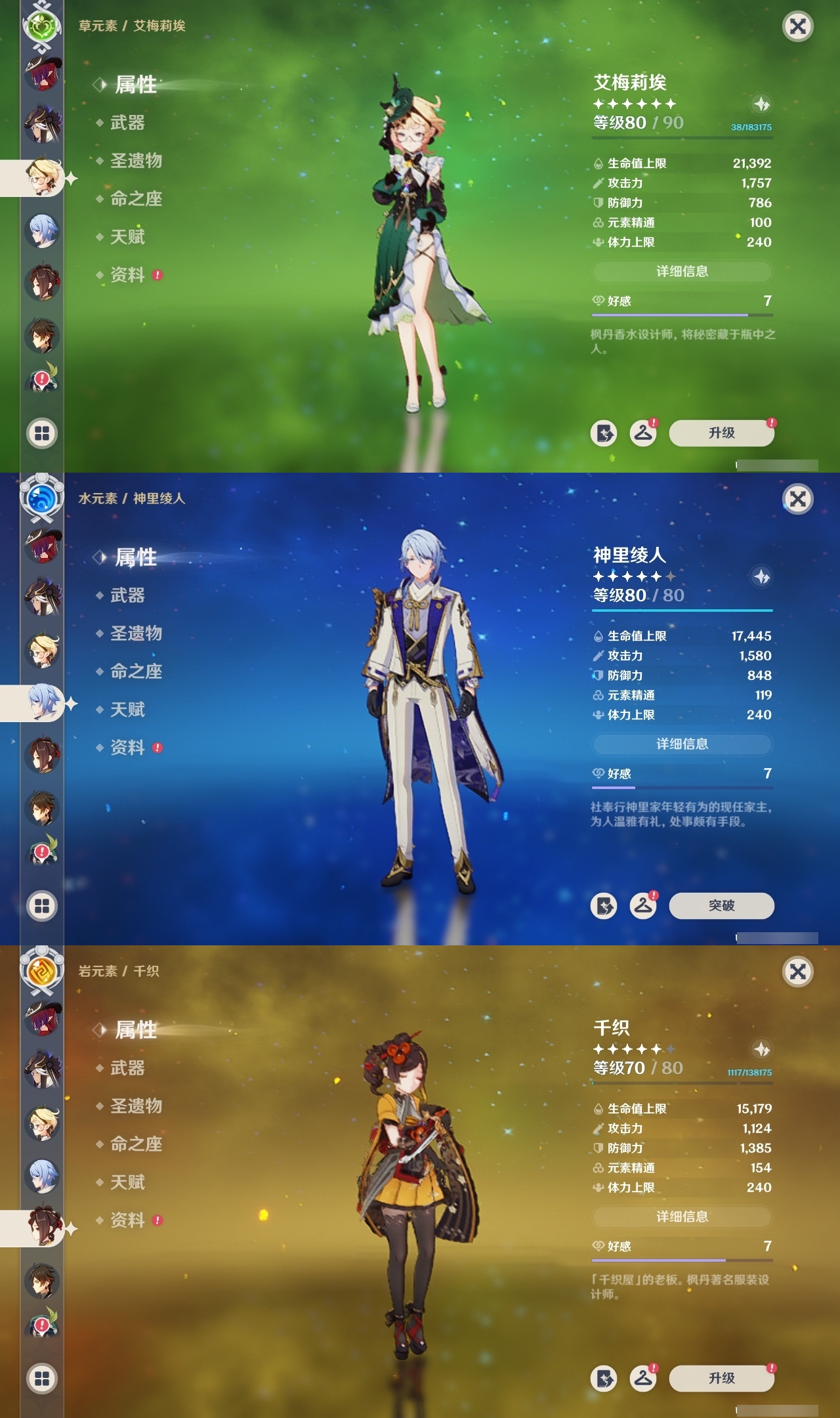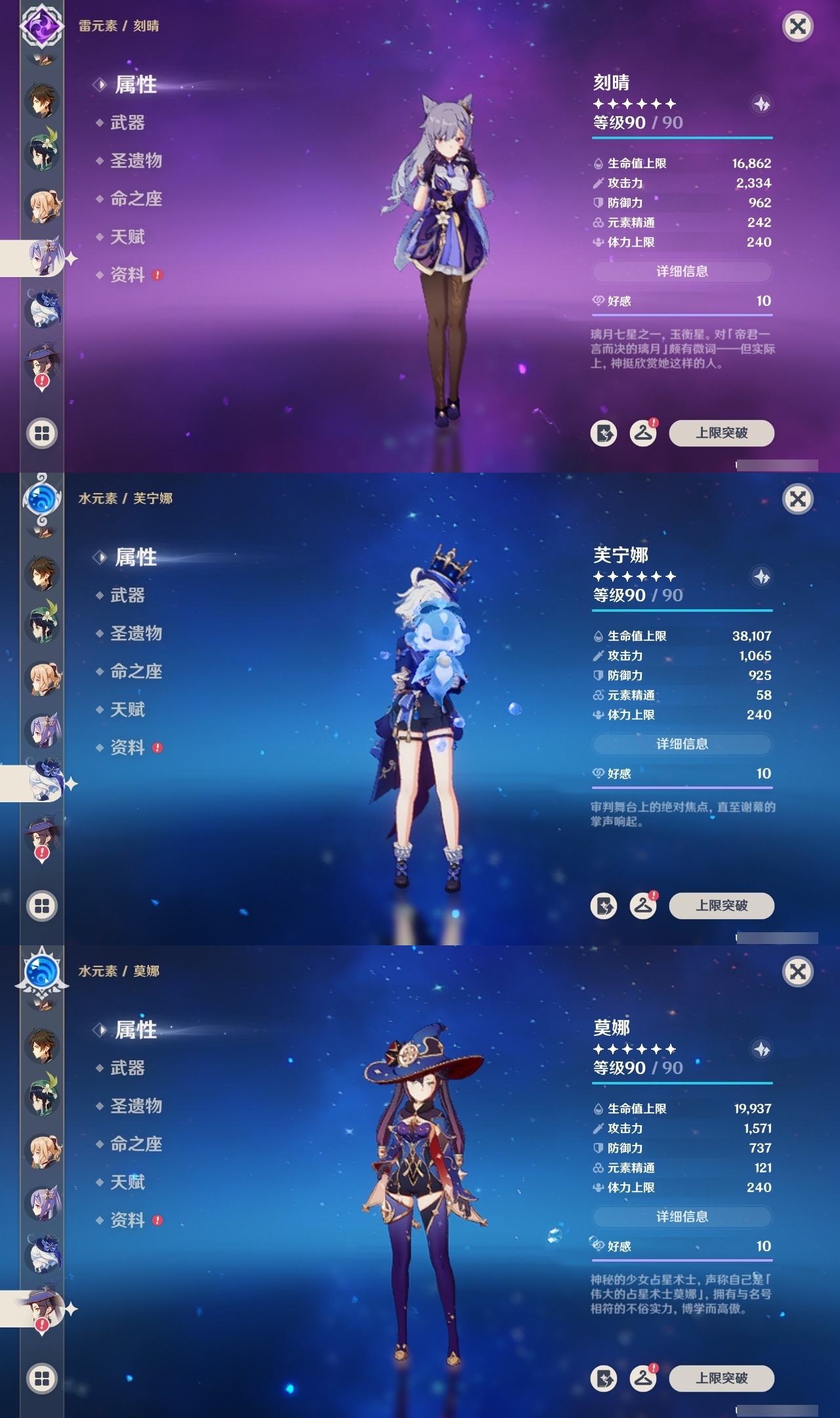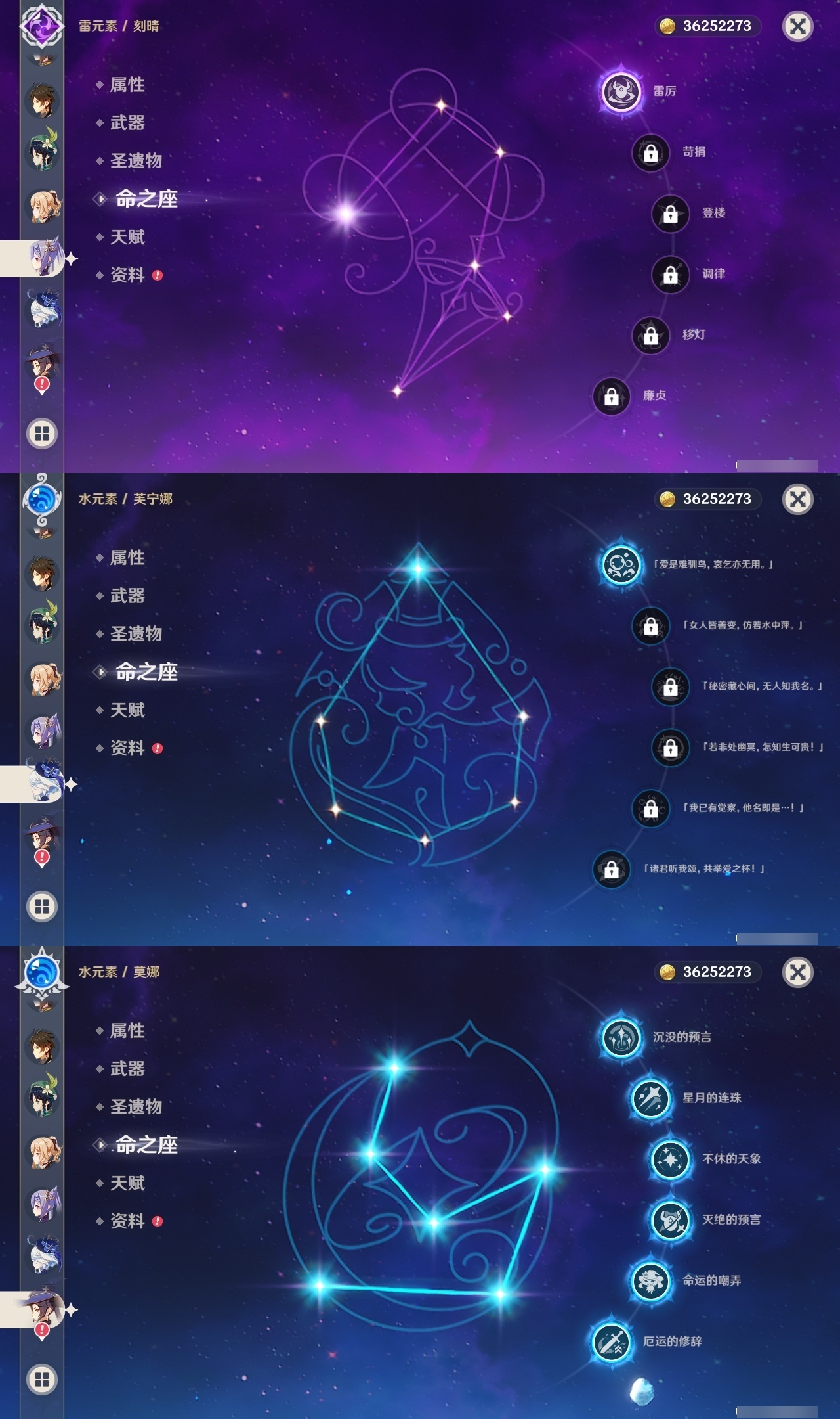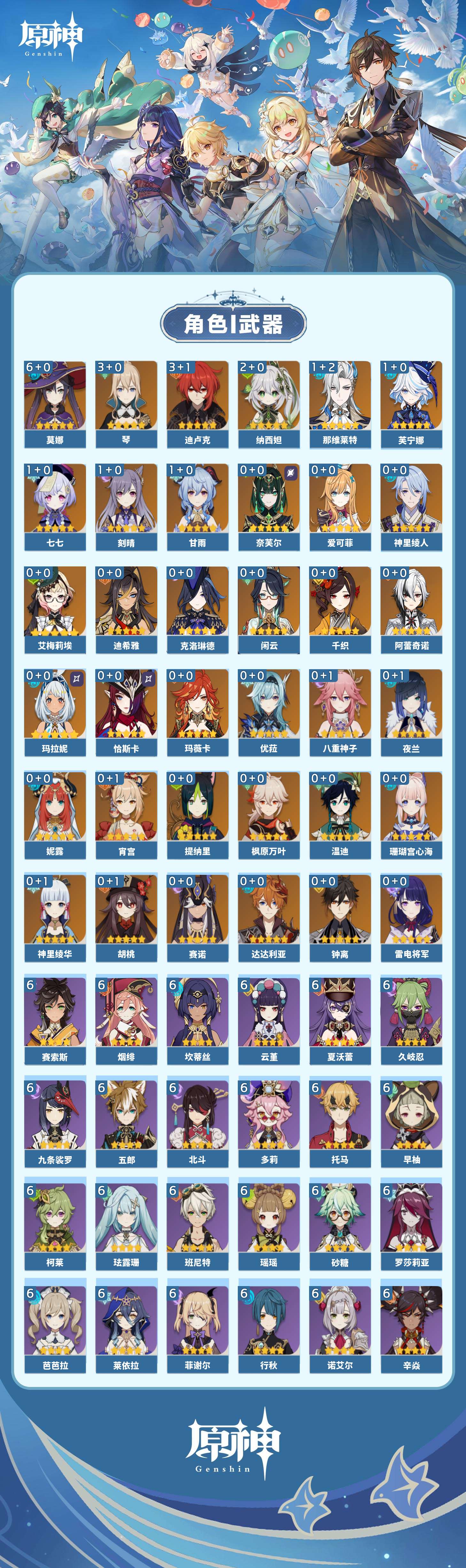 【原神】【lyys10734】冒险等级:60,五星数量:46,五星角色:莫娜 6命迪卢克 3命琴 3命纳西妲 2命那维莱特 1命芙宁娜 1命甘雨 1命刻晴 1命七七 1命艾梅莉埃玛拉妮珊瑚宫心海神里绫华温迪恰斯卡玛薇卡宵宫优菈迪希雅钟离达达利亚八重神子神里绫人夜兰提纳里闲云千织赛诺爱可菲阿蕾奇诺妮露奈芙尔枫原万叶胡桃克洛琳德雷电将军__五星武器:万世流涌大典 2精天空之卷 2精飞雷之弦振和璞鸢护摩之杖狼的末路天空之傲雾切之回光神乐之真意若水__四星角色:班尼特 6命行秋 6命九条裟罗 6命香菱 6命久岐忍 6命珐露珊 6命迪奥娜 6命砂糖 6命瑶瑶 6命莱依拉 6命坎蒂丝 6命多莉 6命柯莱 6命芭芭拉 6命云堇 6命早柚 6命托马 6命五郎 6命烟绯 6命辛焱 6命诺艾尔 6命罗莎莉亚 6命雷泽 6命菲谢尔 6命北斗 6命夏沃蕾 6命赛索斯 6命米卡 5命重云 5命凝光 4命嘉明 4命卡齐娜 3命鹿野院平藏 3命绮良良 3命蓝砚 3命菲米尼 3命琳妮特 3命夏洛蒂 3命欧洛伦 2命塔利雅 2命卡维 1命伊法伊安珊爱诺