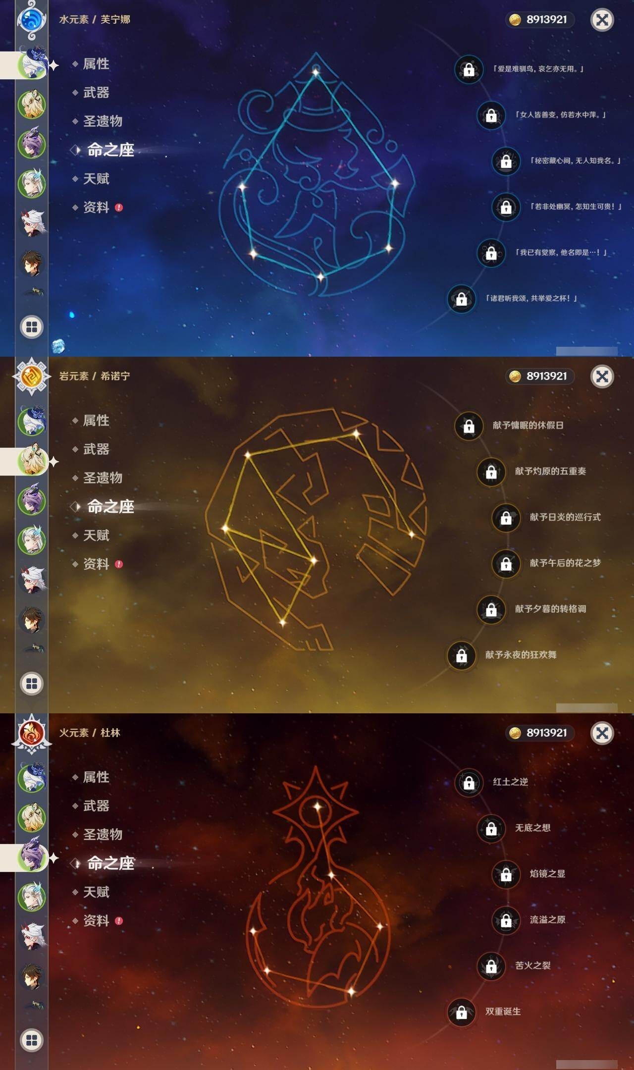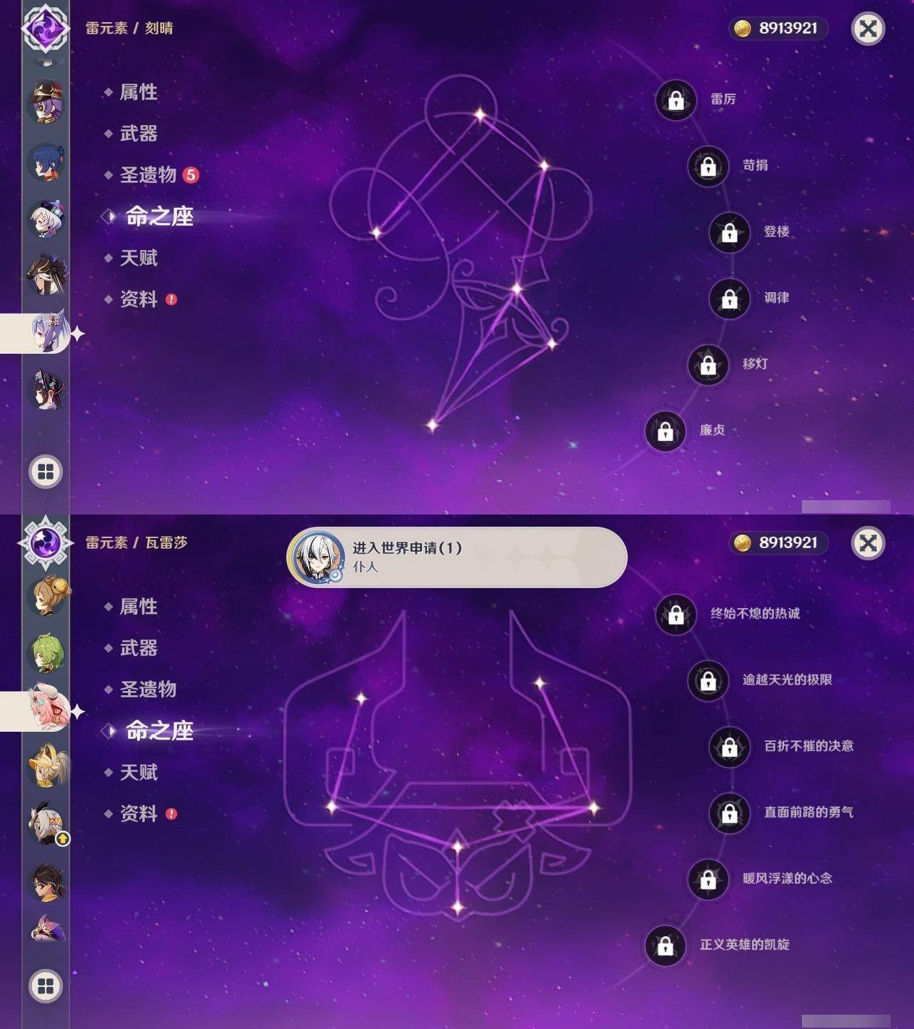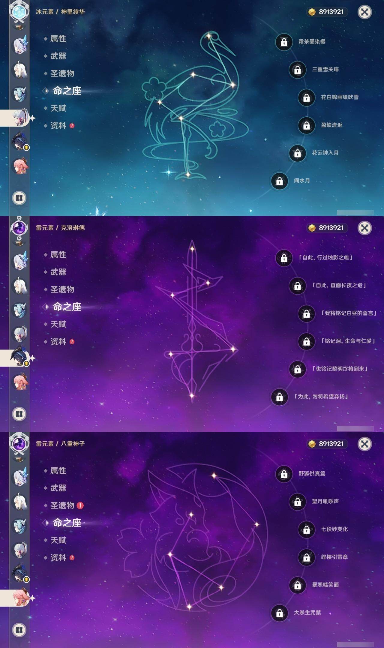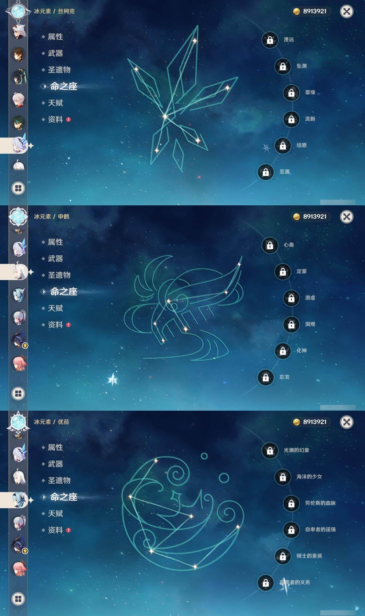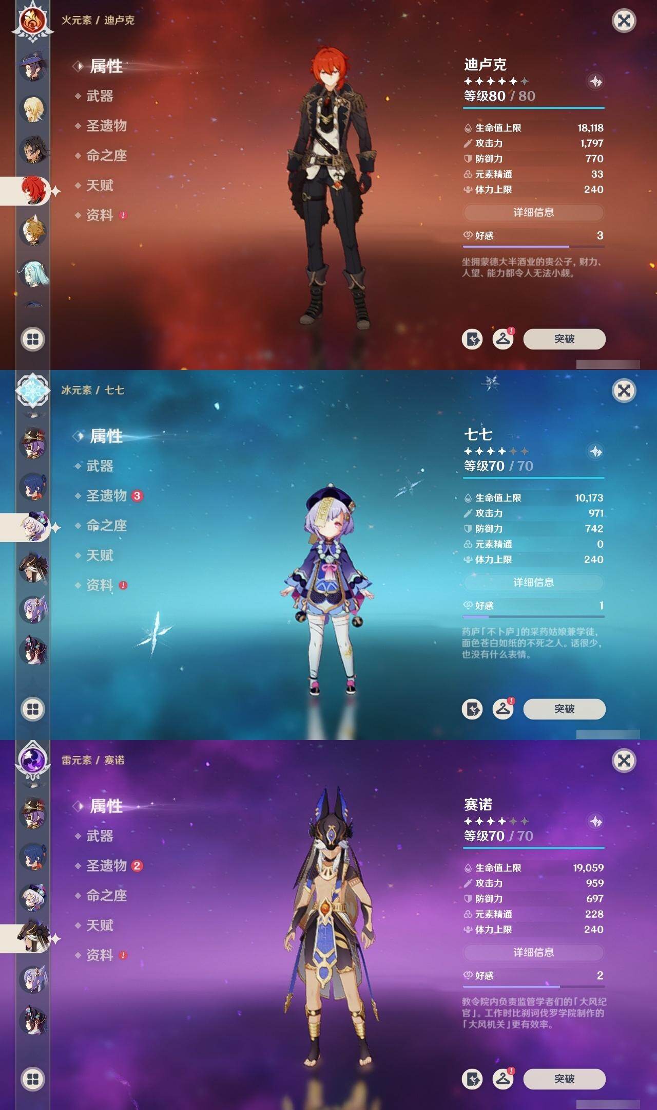 60级/61黄/女主/32个五星角色/19个五星武器 0命克洛琳德0命阿蕾奇诺0命闲云0命芙宁娜0命那维莱特0命迪希雅0命纳西妲0命赛诺1命提纳里0命夜兰0命神里绫人0命八重神子0命申鹤1命荒泷一斗0命优菈2命雷电将军0命枫原万叶0命神里绫华0命钟离0命魈0命宵宫0命达达利亚0命刻晴1命七七3命琴2命莫娜0命迪卢克0命希诺宁0命艾梅莉埃0命瓦雷莎0命丝柯克0命杜林精1赦罪精1鹤鸣余音精1碧落之珑精1赤角石溃杵精1薙草之稻光精1飞雷之弦振精1雾切之回光精1无工之剑精1和璞鸢精1天空之脊精1天空之卷精1风鹰剑精1狼的末路精1天空之傲精1黑蚀
