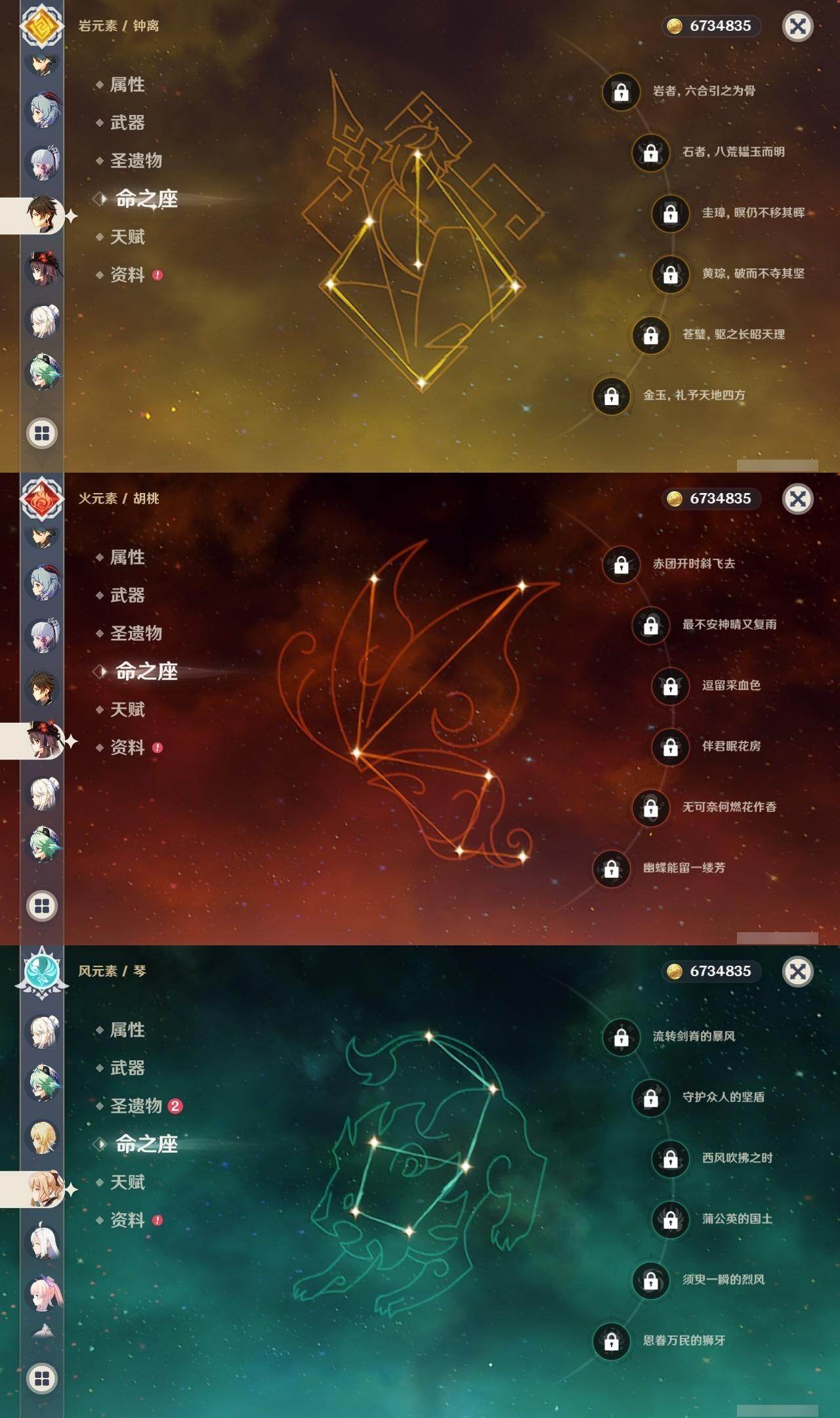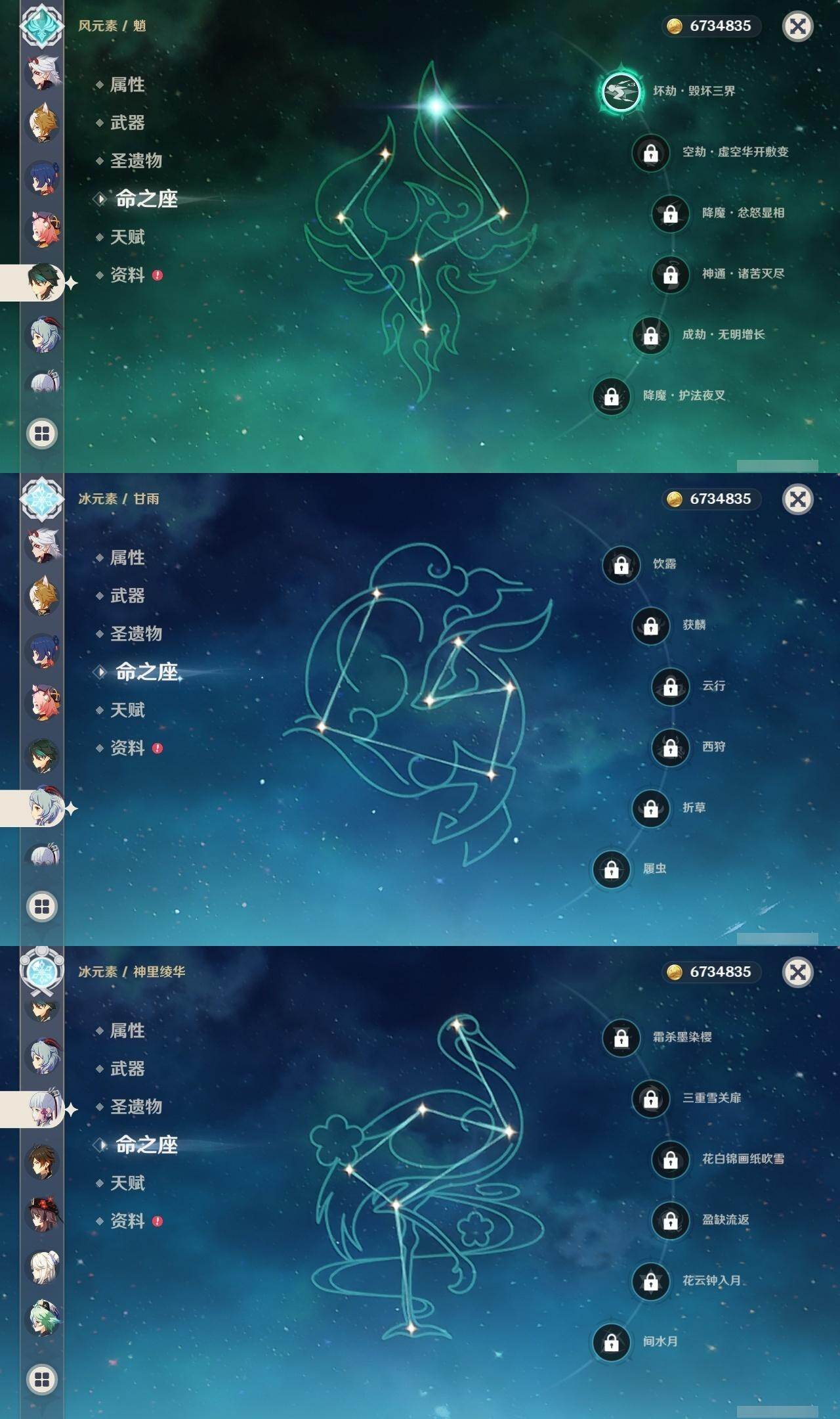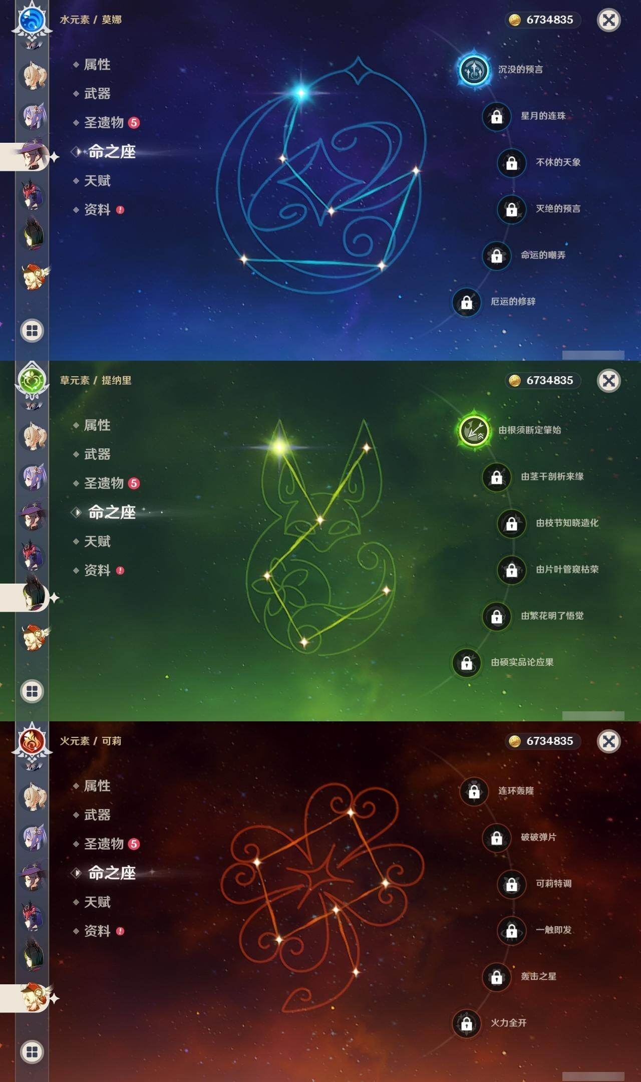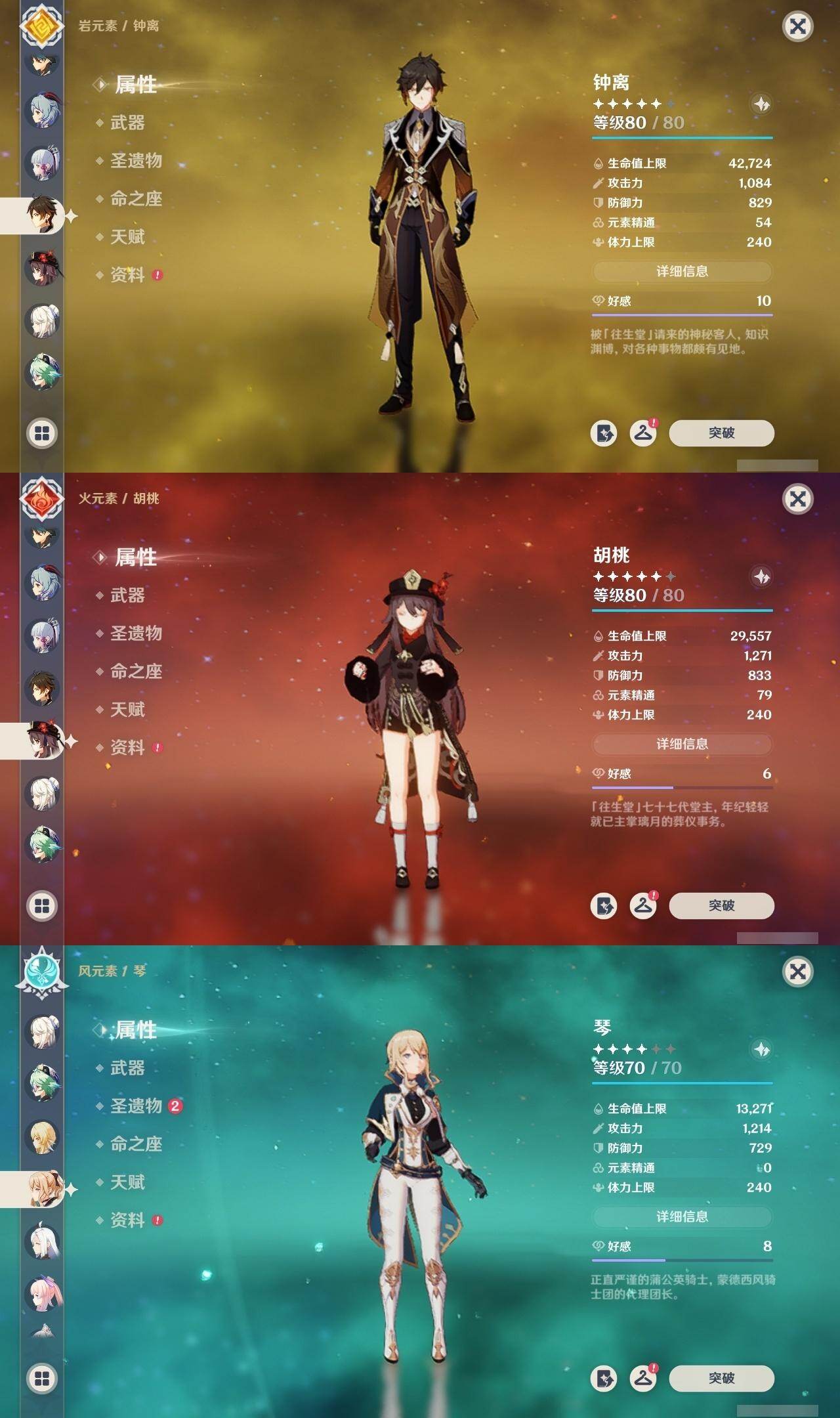 56级/34黄/女主/16个五星角色/10个五星武器 1命提纳里0命申鹤1命荒泷一斗2命雷电将军0命枫原万叶0命神里绫华0命钟离0命胡桃0命甘雨1命魈0命可莉0命珊瑚宫心海1命刻晴1命七七0命琴1命莫娜精1若水精1神乐之真意精1薙草之稻光精1雾切之回光精1无工之剑精1护摩之杖精1天空之脊精1阿莫斯之弓精1天空之刃精1天空之卷